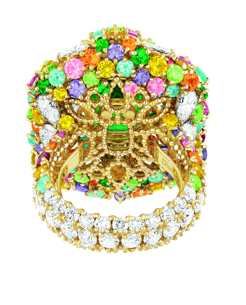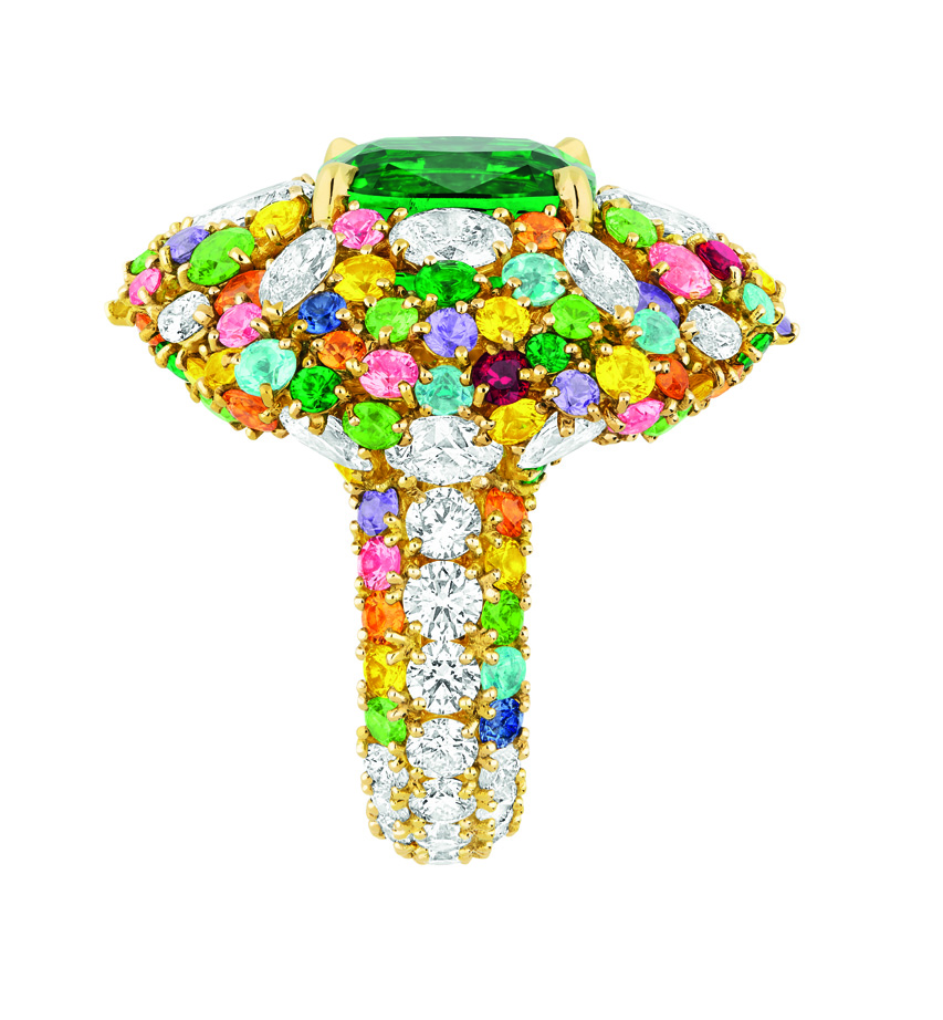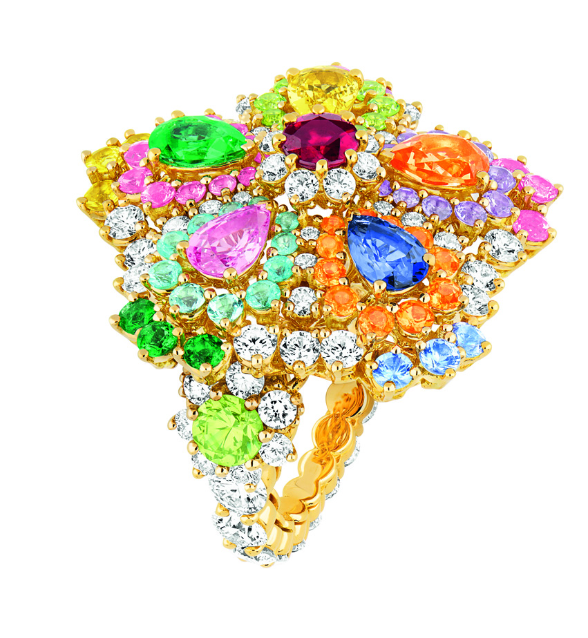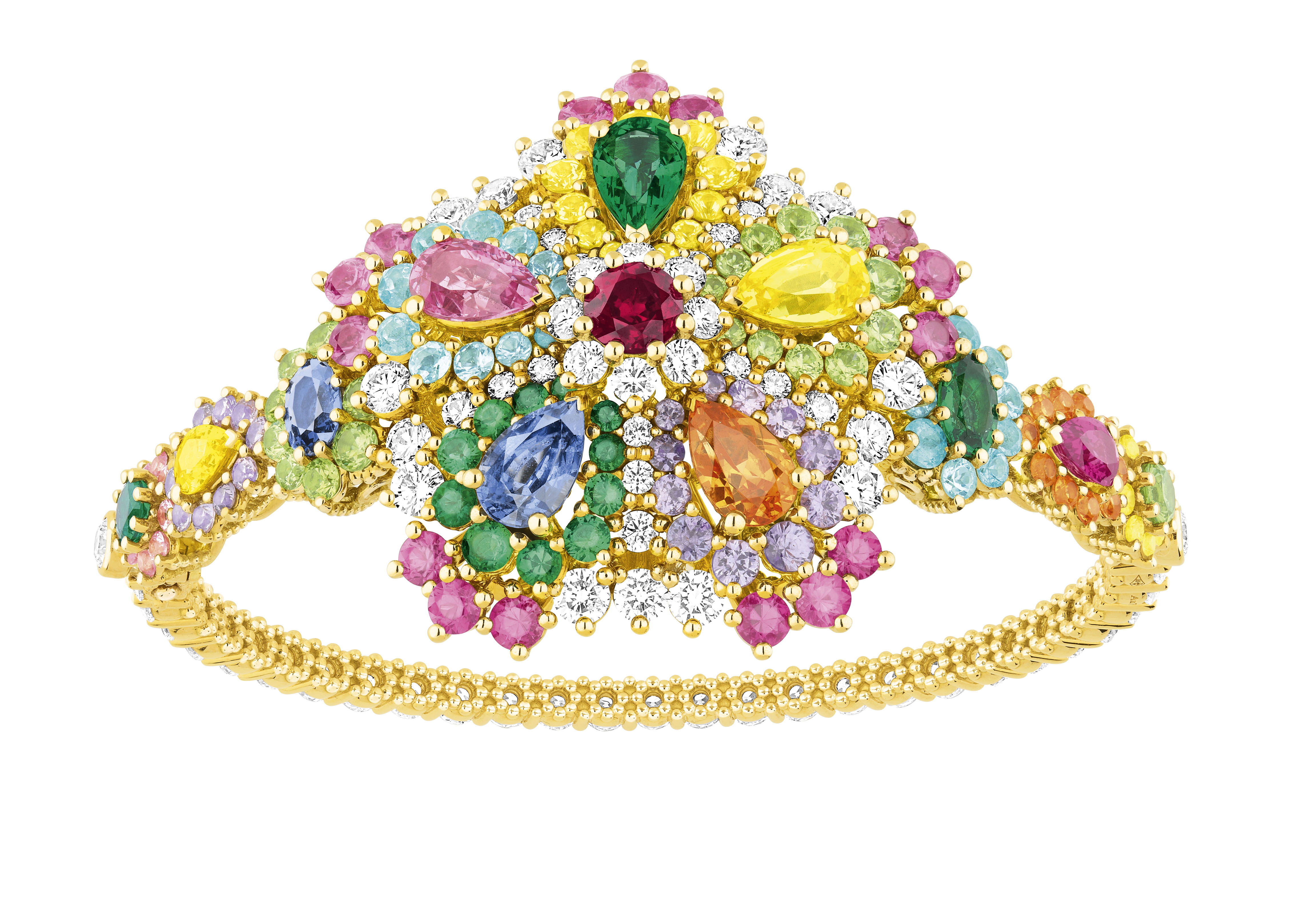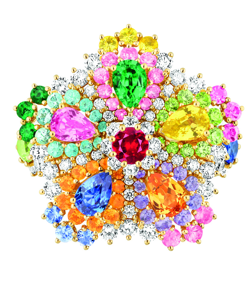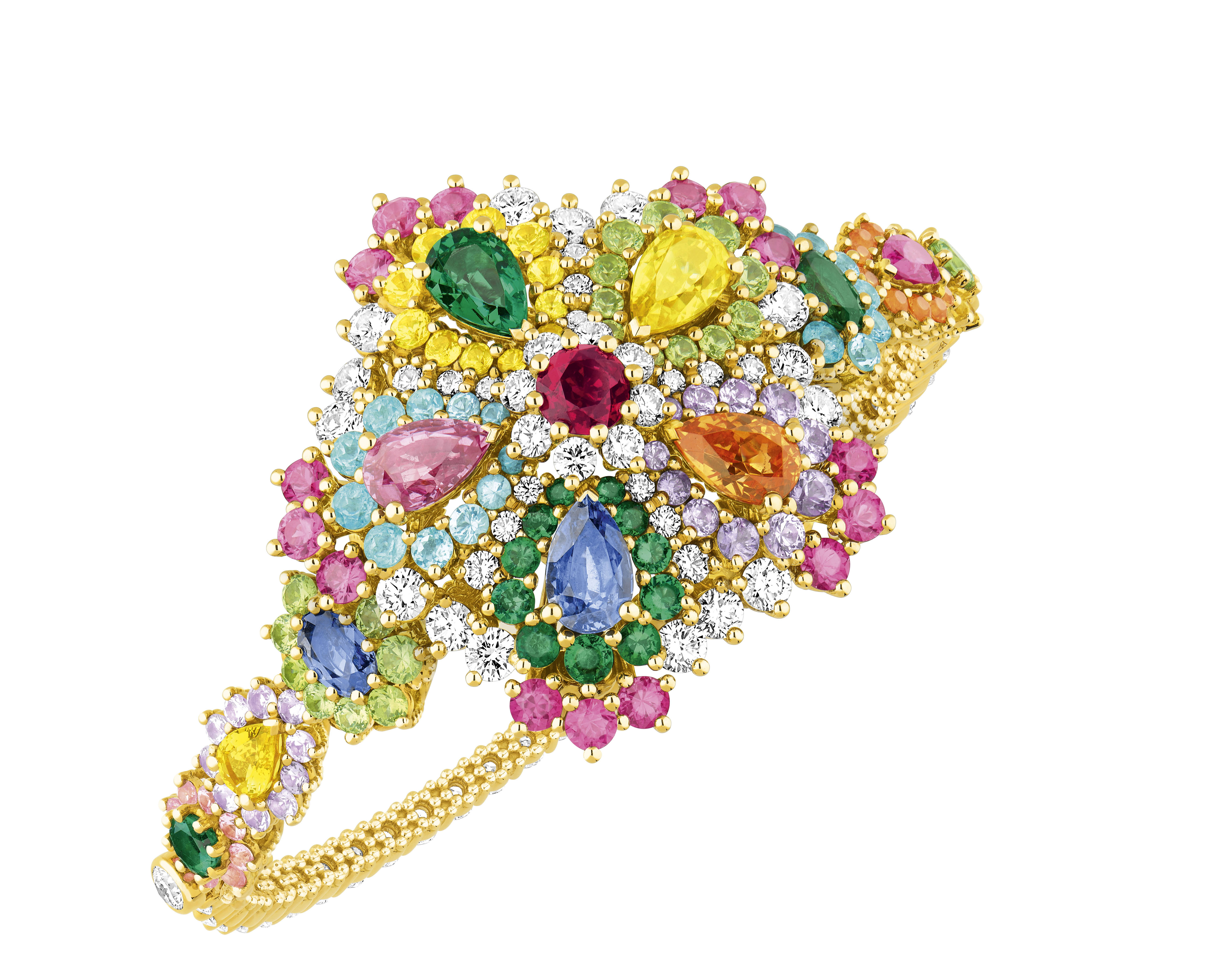 Creative and meticulous, the settings express the full richness of Victoire de Castellane’s color palette: gradations, cameos, contrasts, even eruptions, like fireworks.