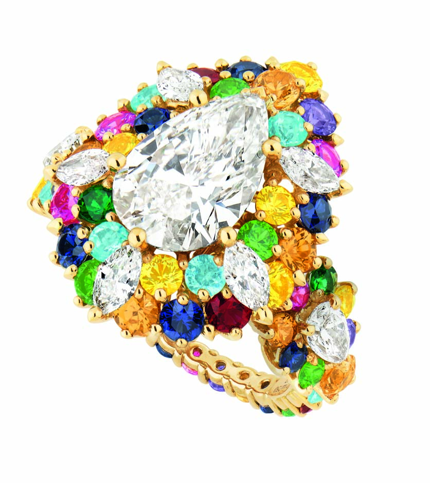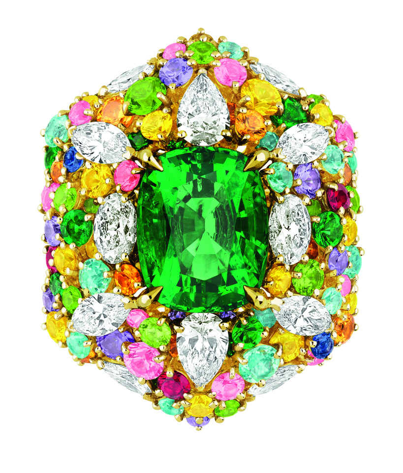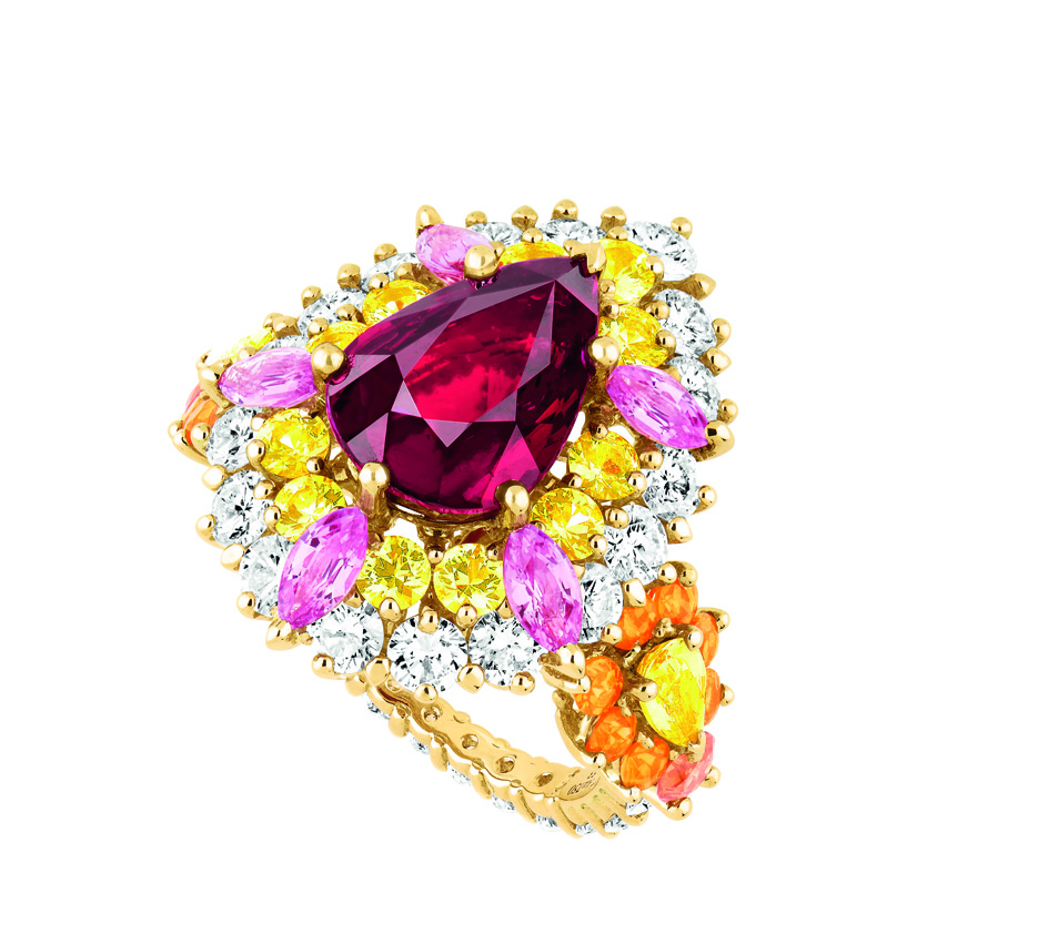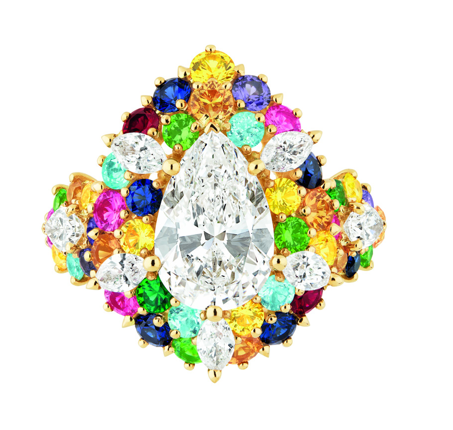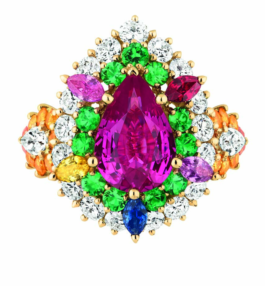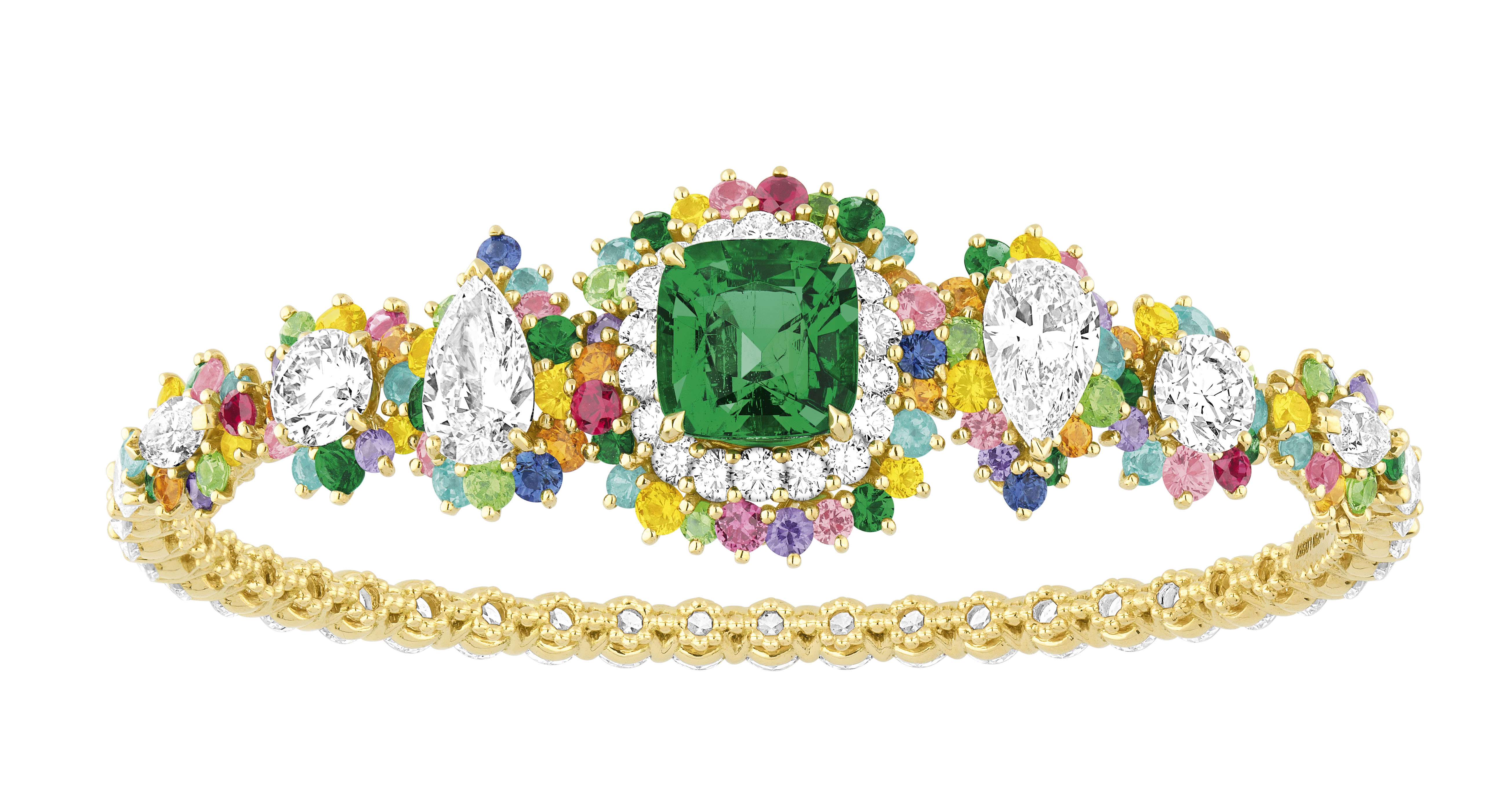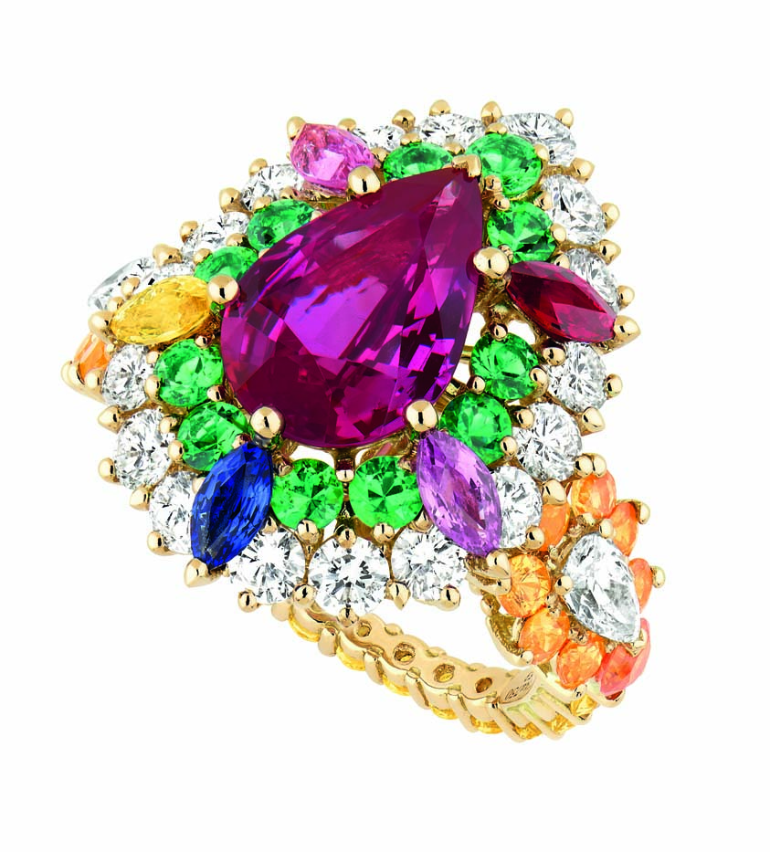 Creative and meticulous, the settings express the full richness of Victoire de Castellane’s color palette: gradations, cameos, contrasts, even eruptions, like fireworks.