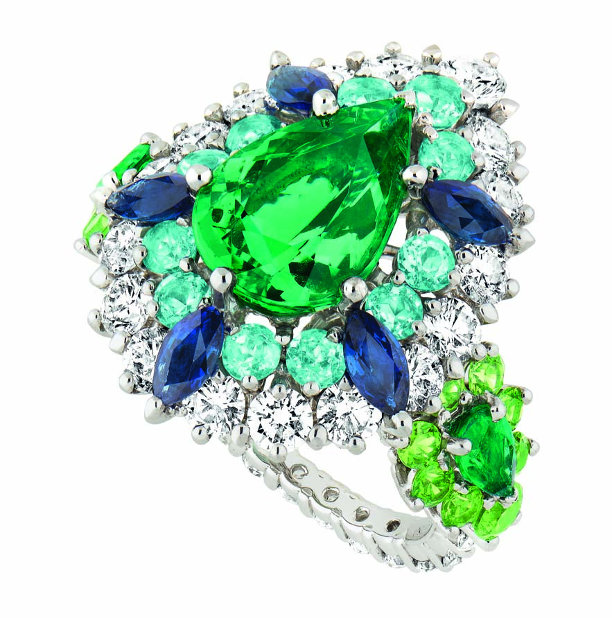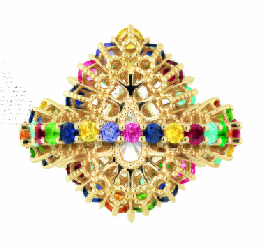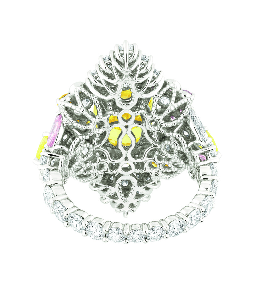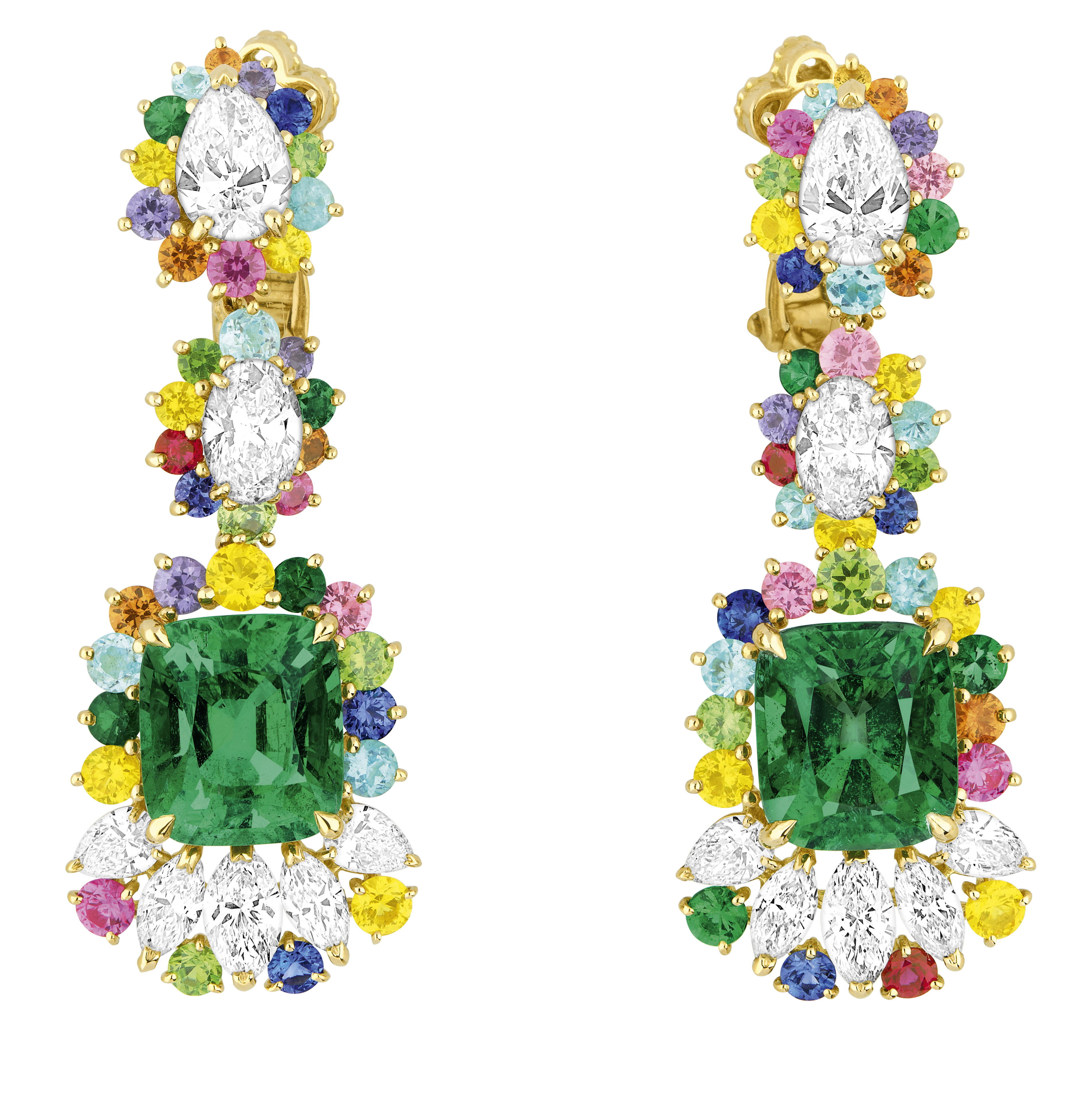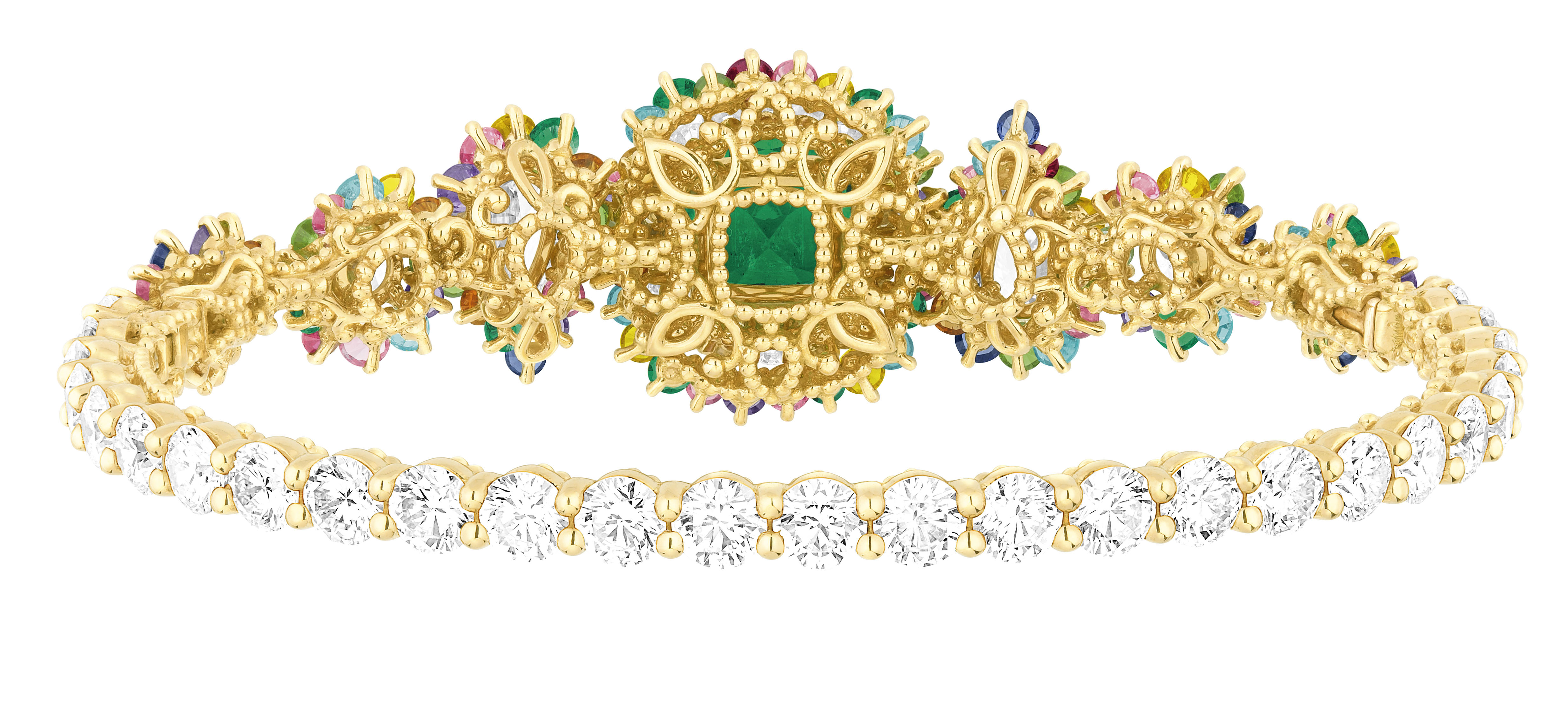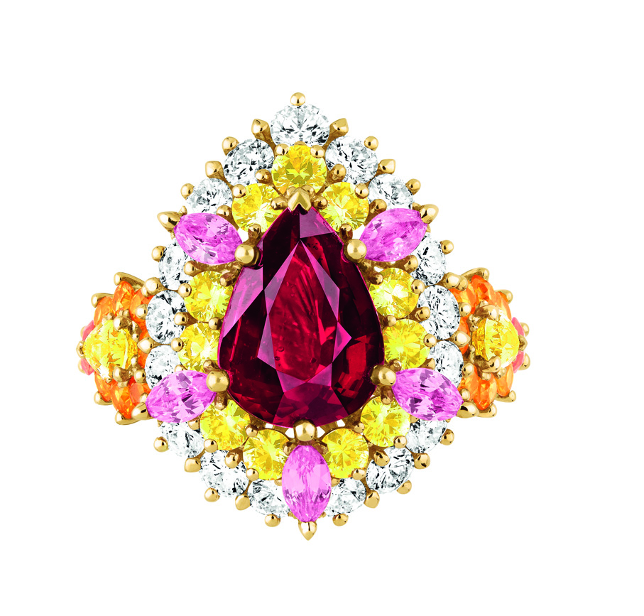 Creative and meticulous, the settings express the full richness of Victoire de Castellane’s color palette: gradations, cameos, contrasts, even eruptions, like fireworks.
