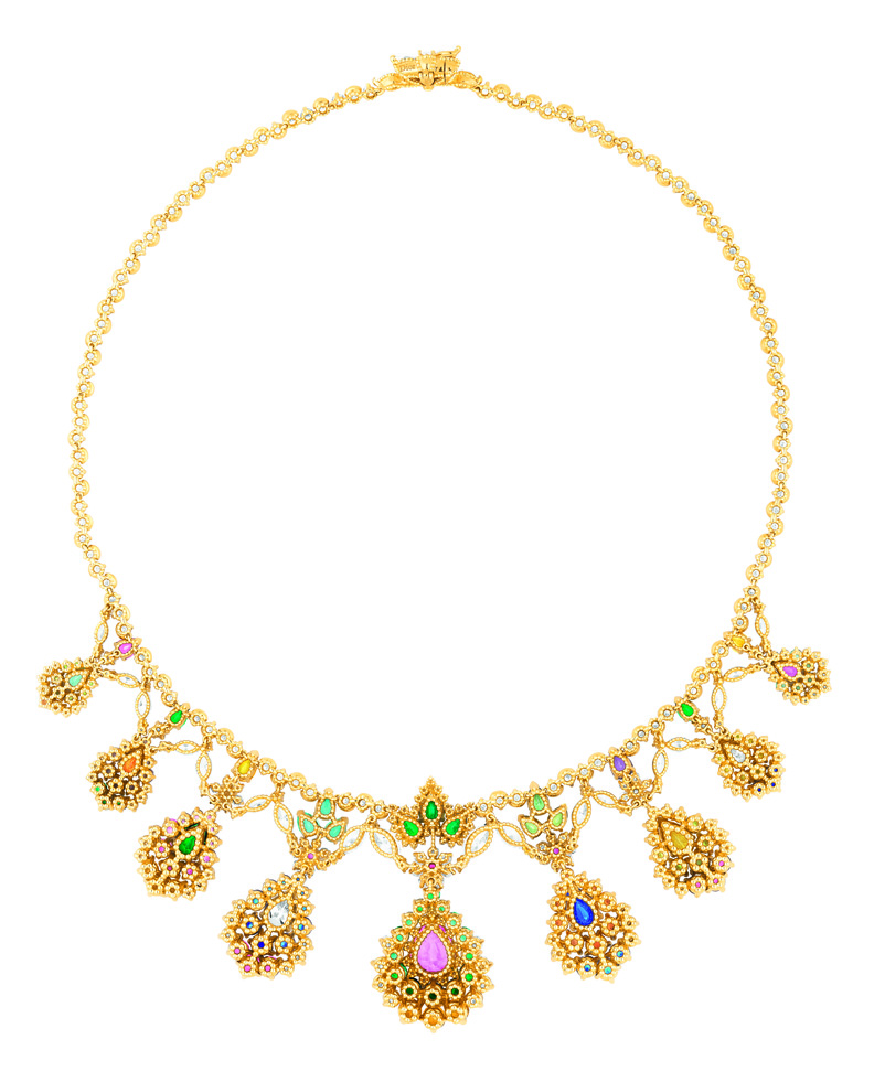 ” Jewelry is all about color. They add radiance to the face”, said Christian Dior back in 1956. And he added: “Nothing is more elegant than a black sweater and skirt worn with a necklace of multiple sparkling stones.”