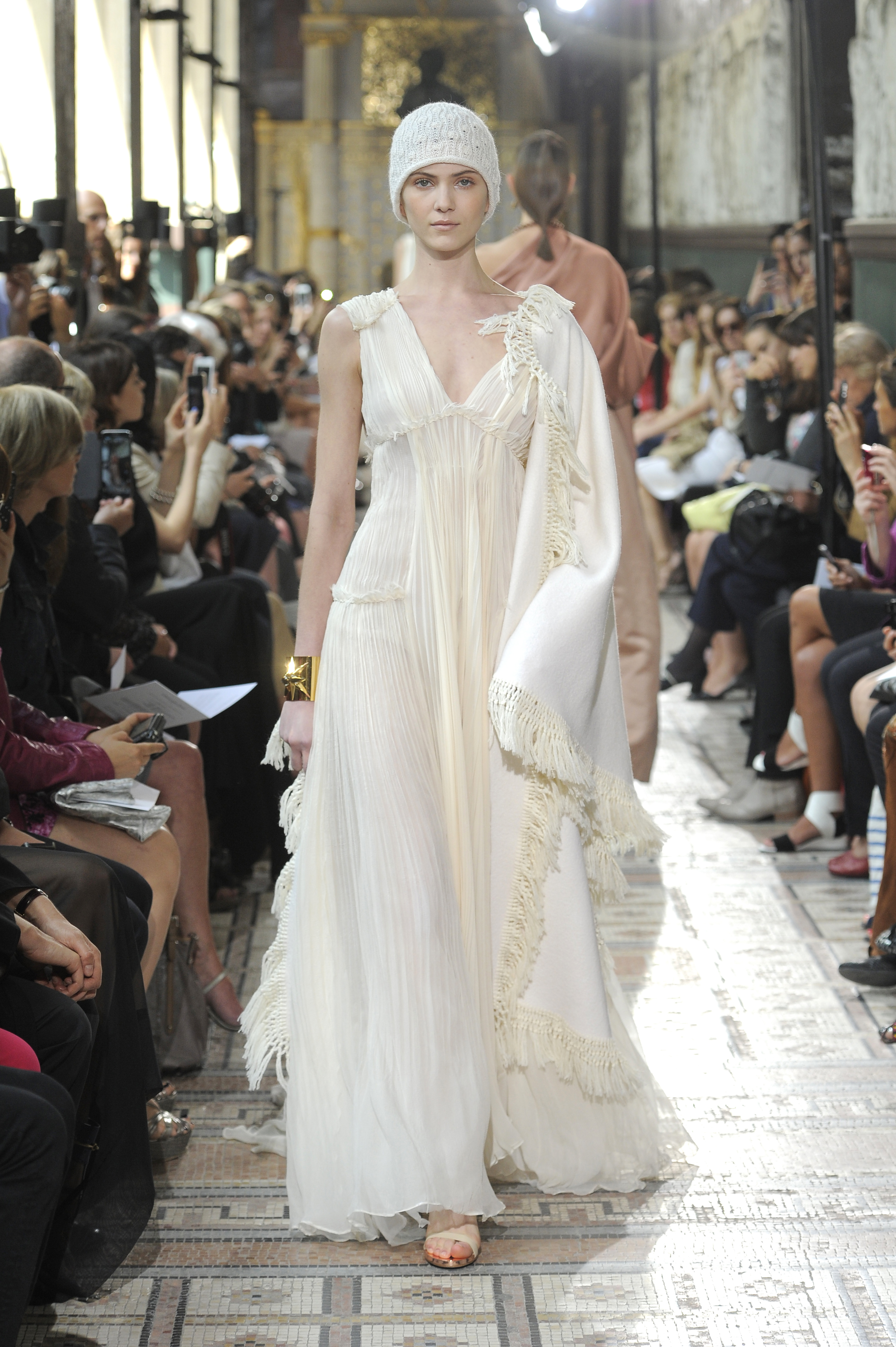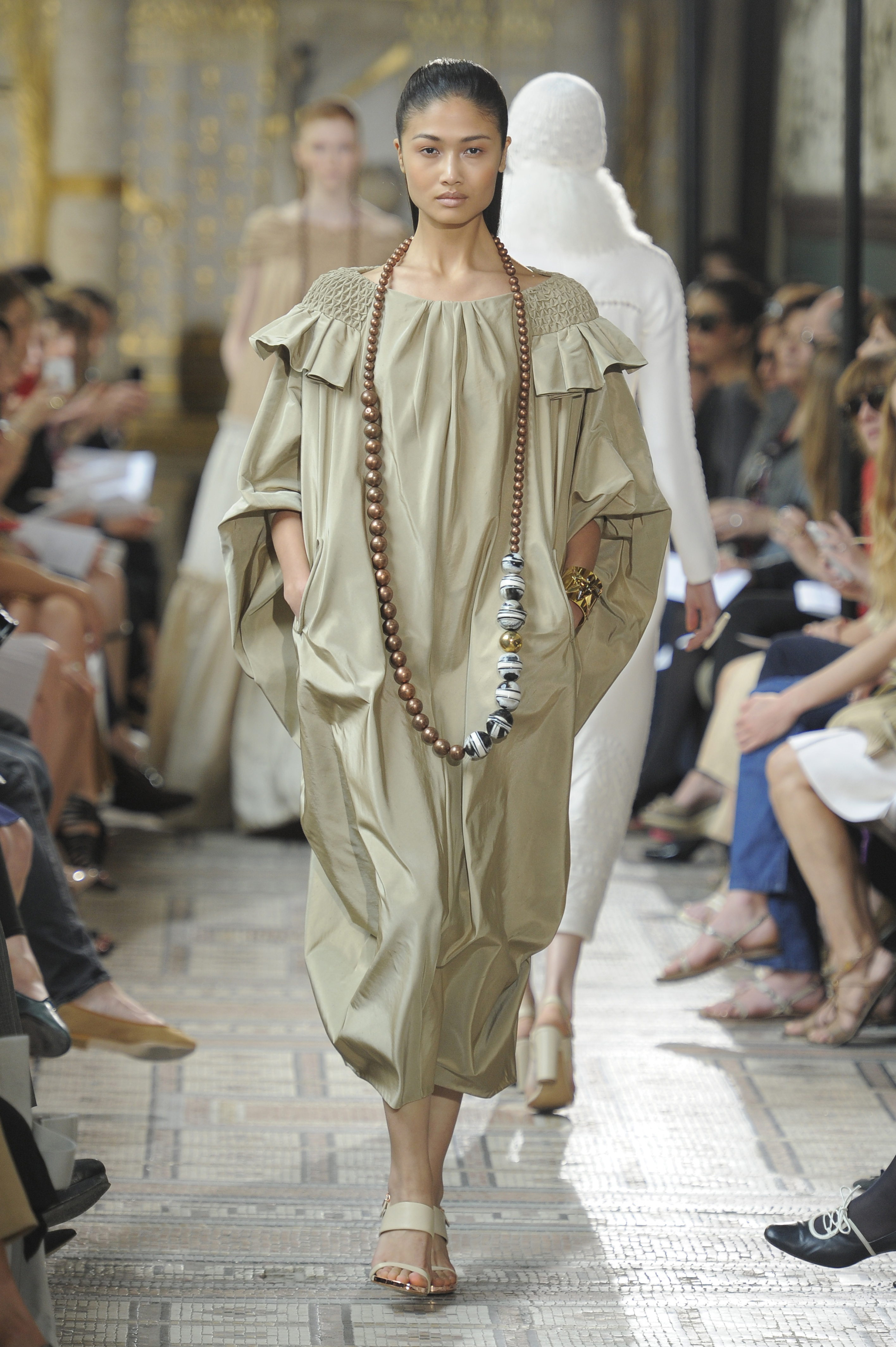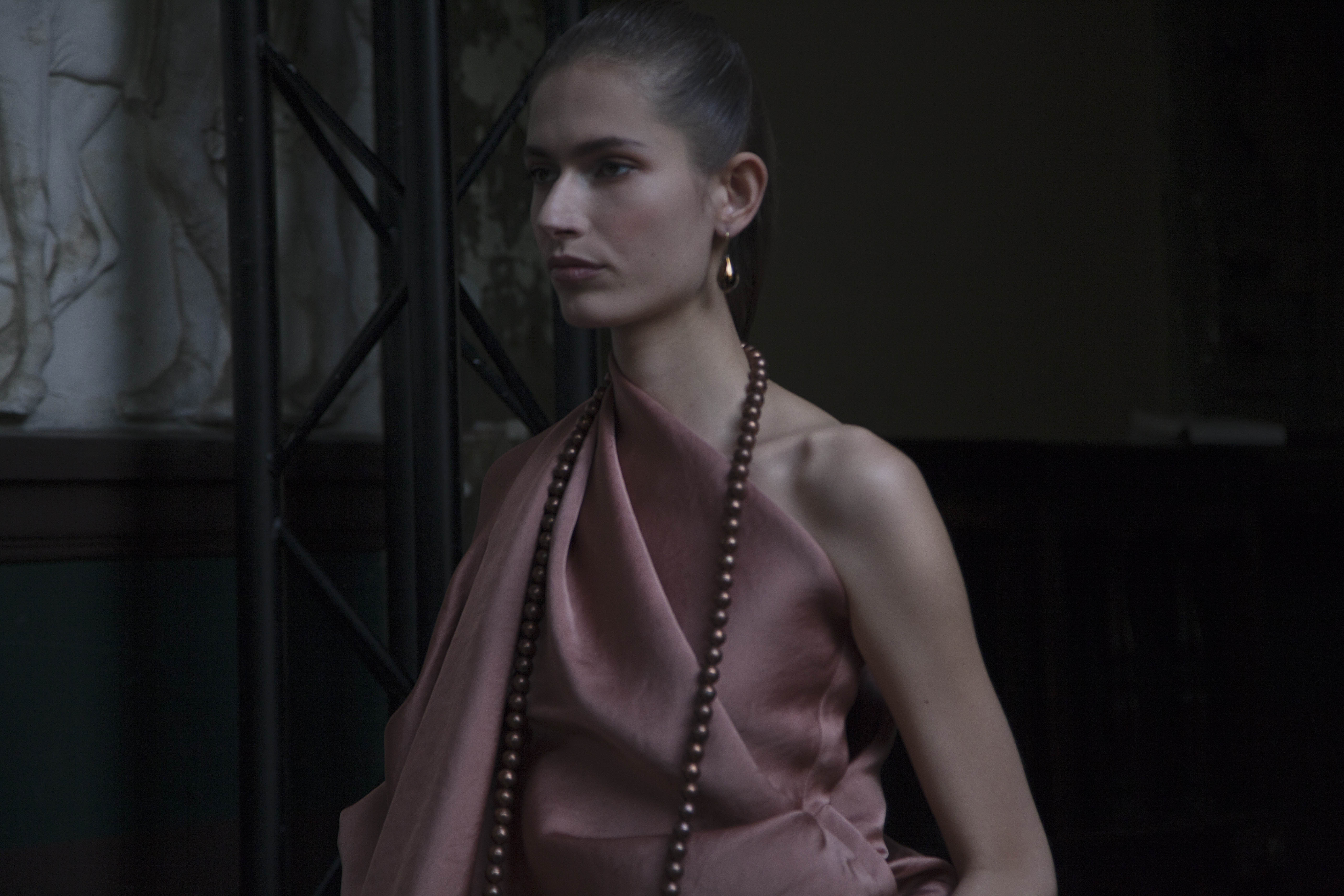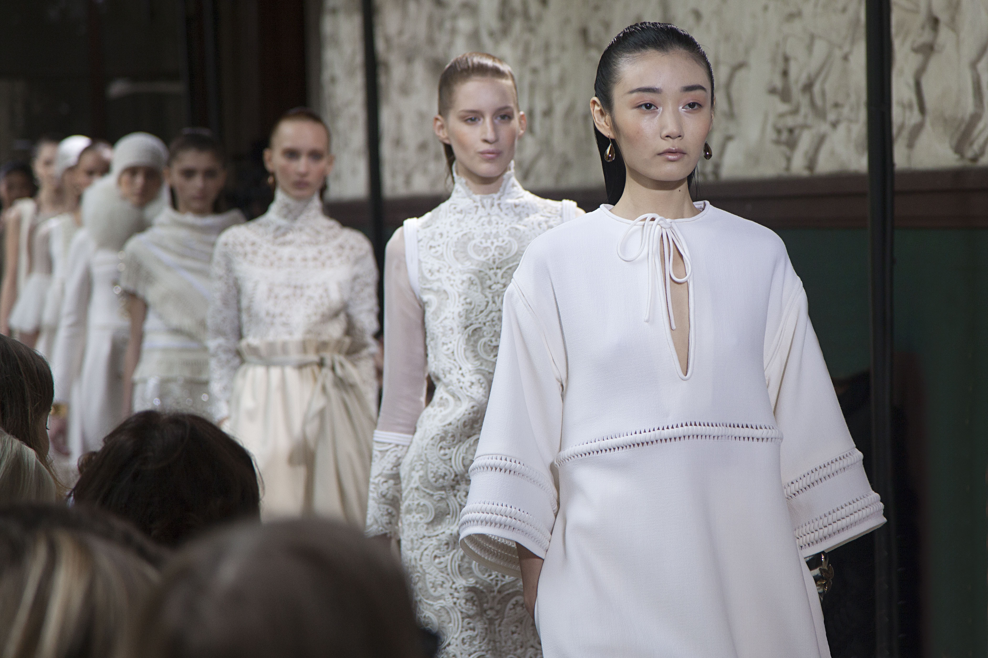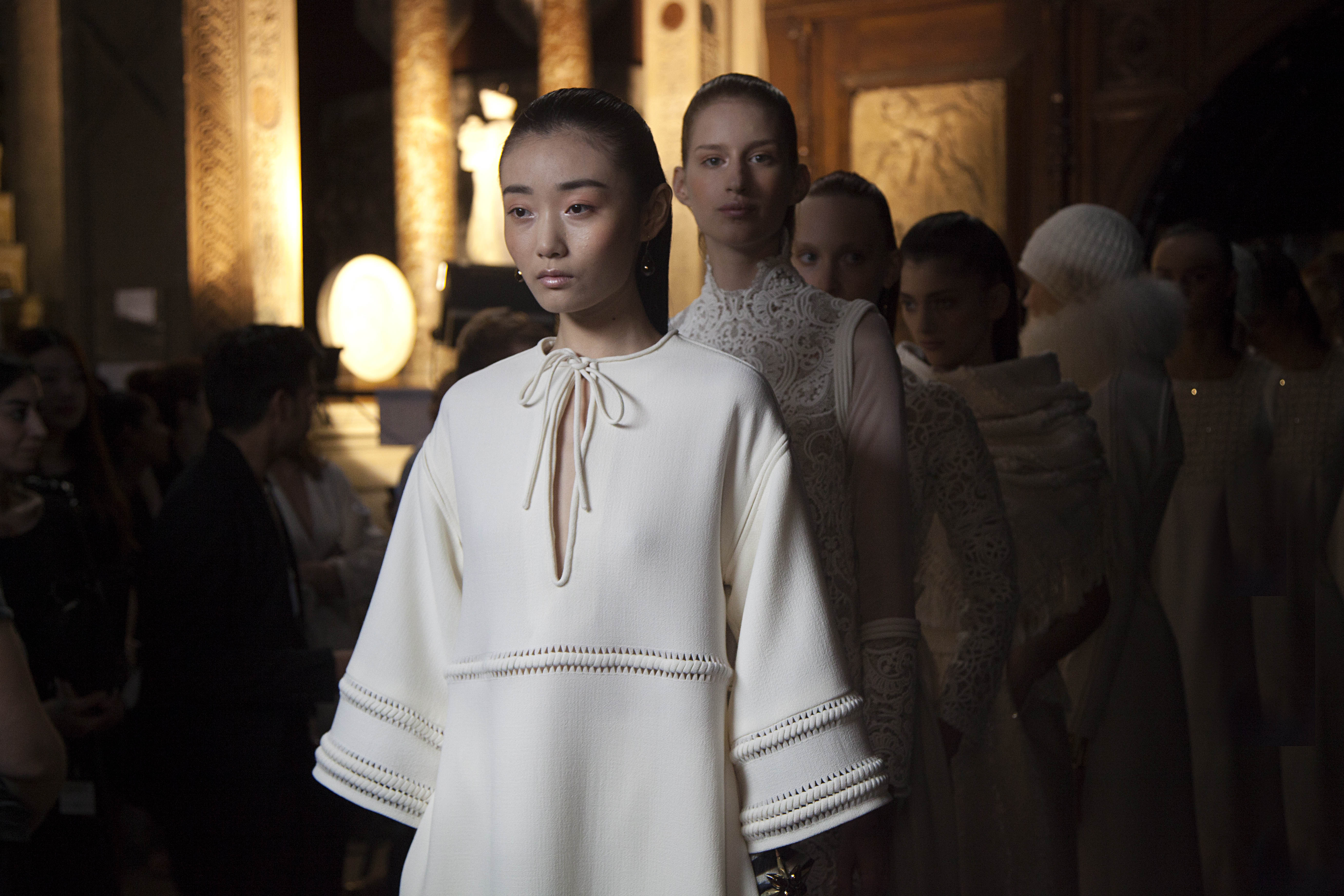 The ensemble consists of a succession of opalescent silhouettes, ethereal images of a steppe woman whose luxury lies in her infinite discretion.