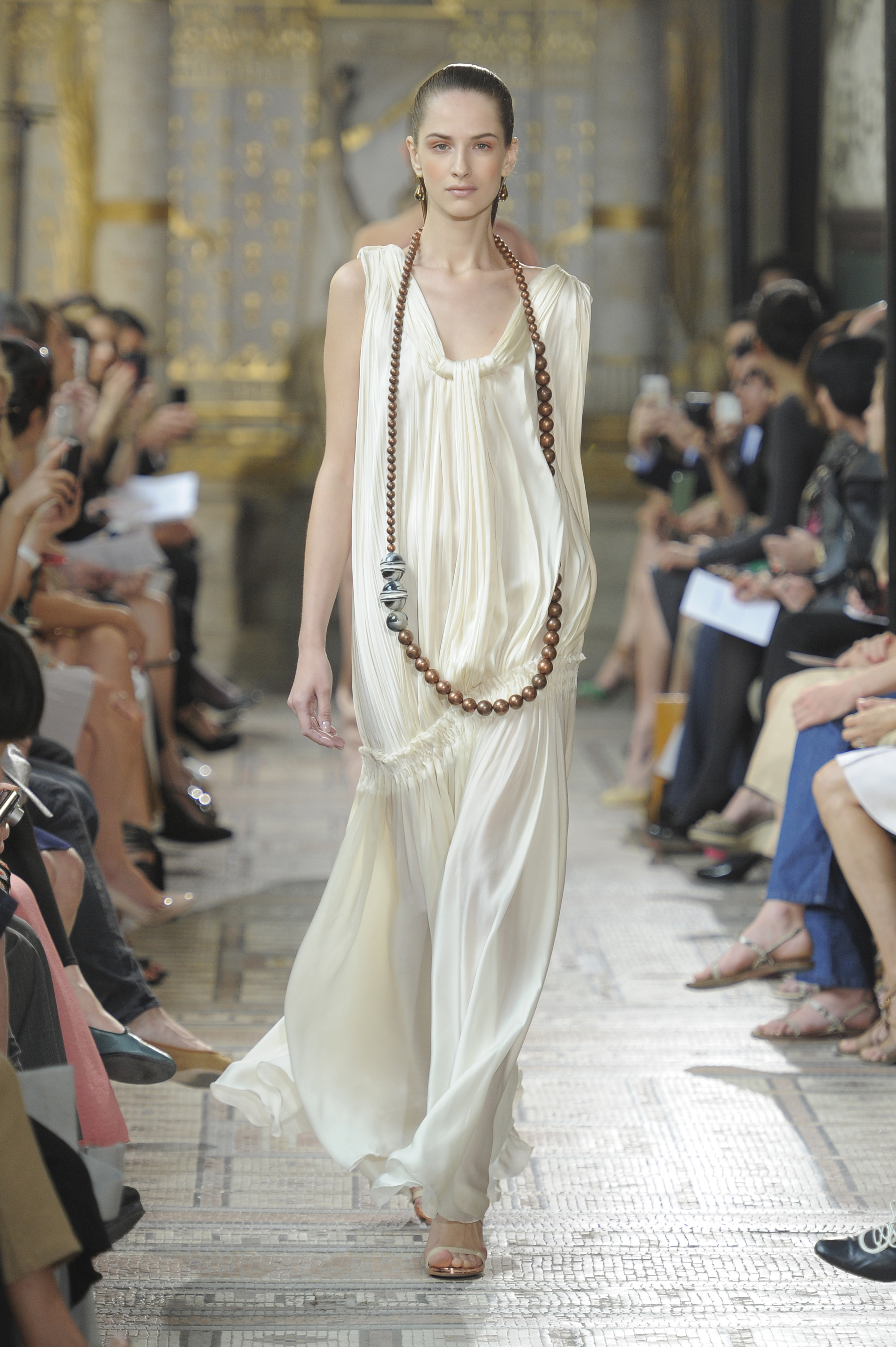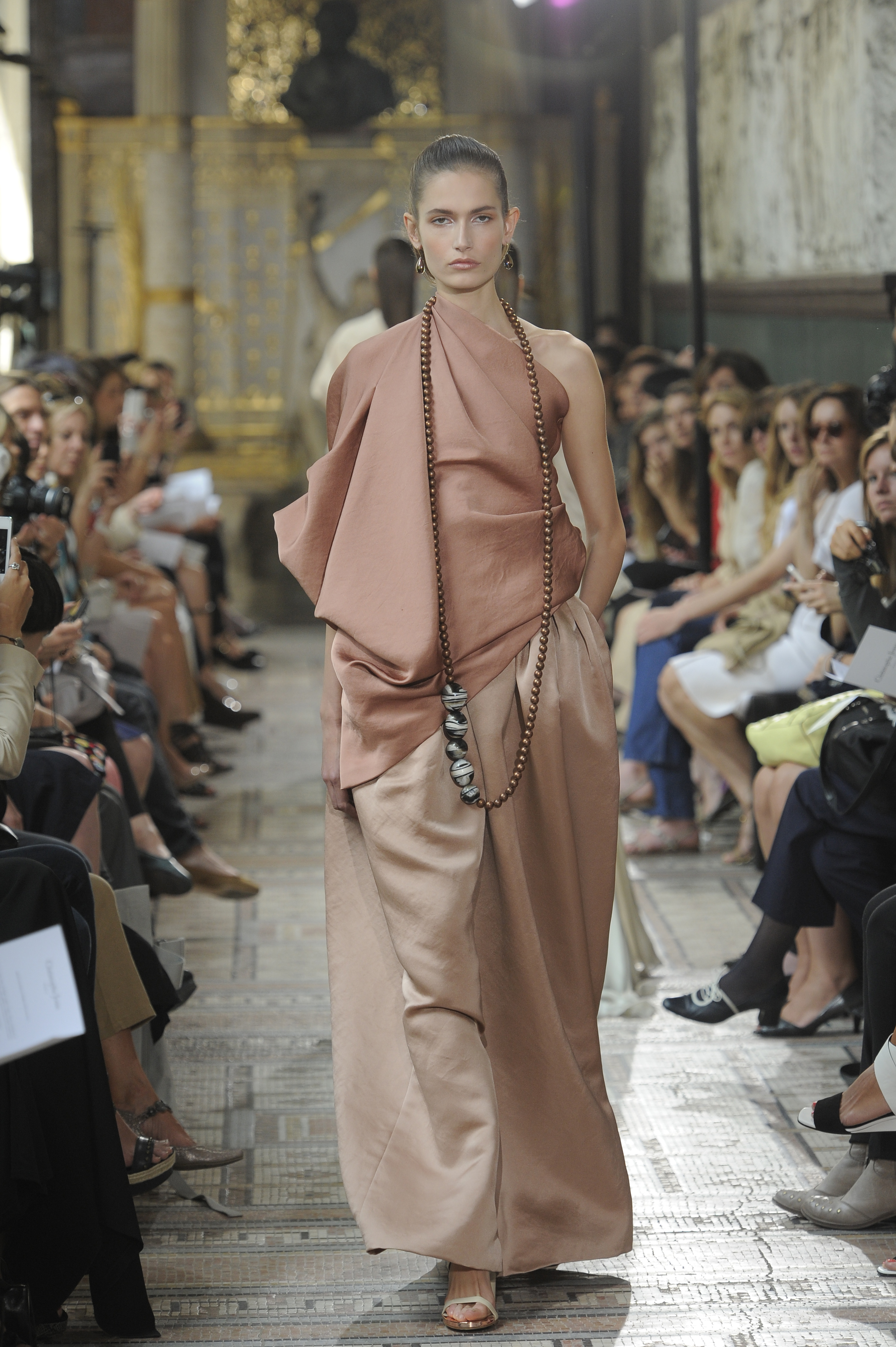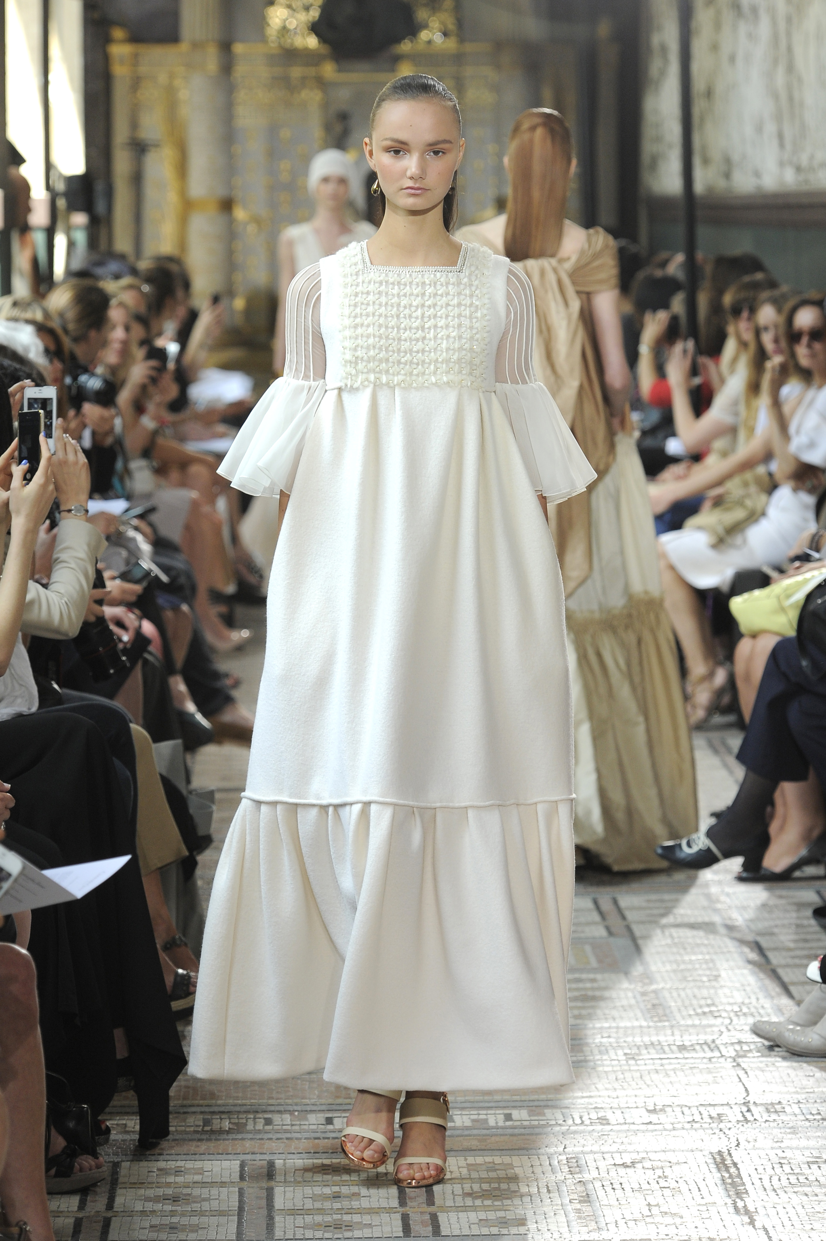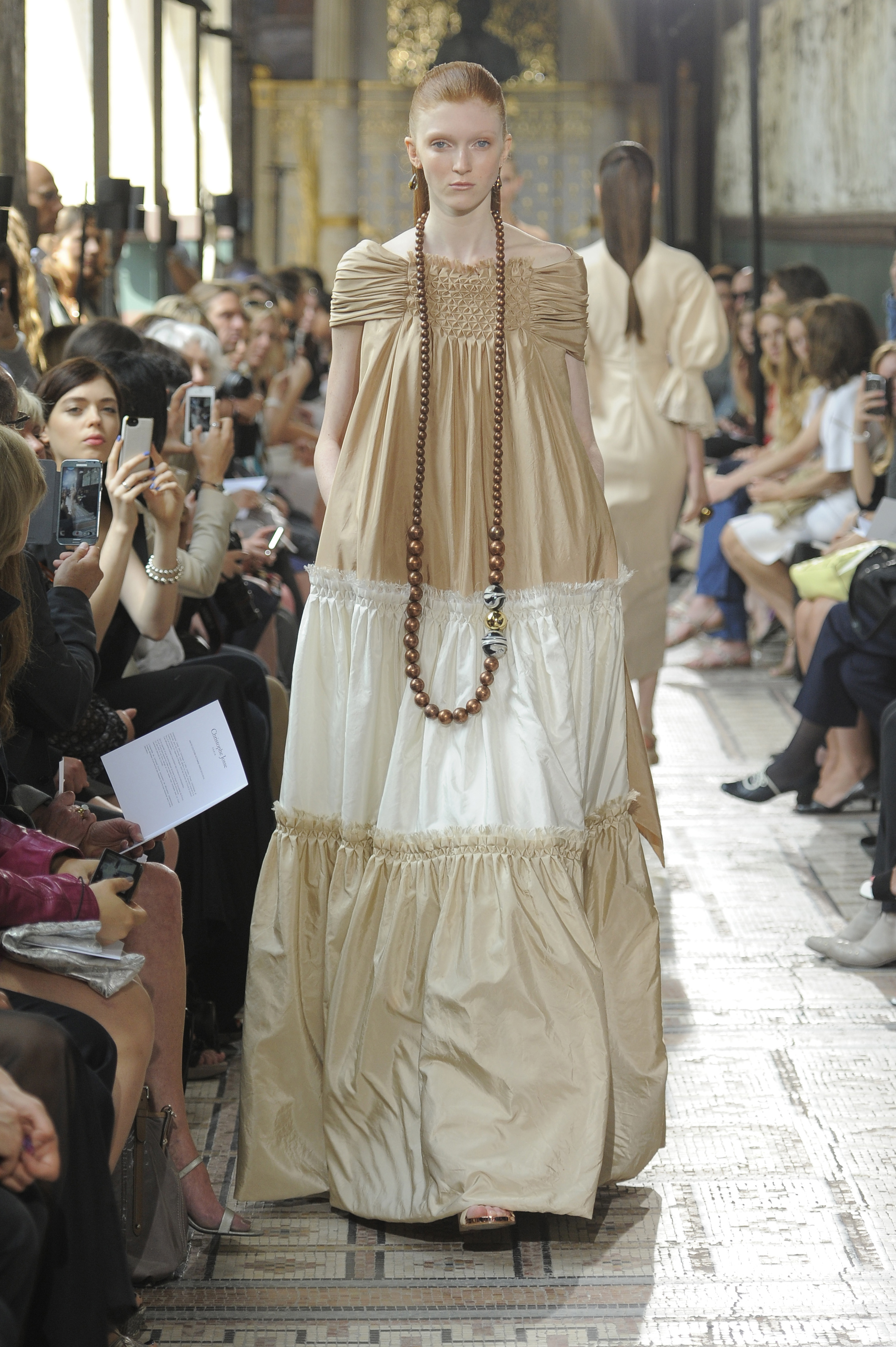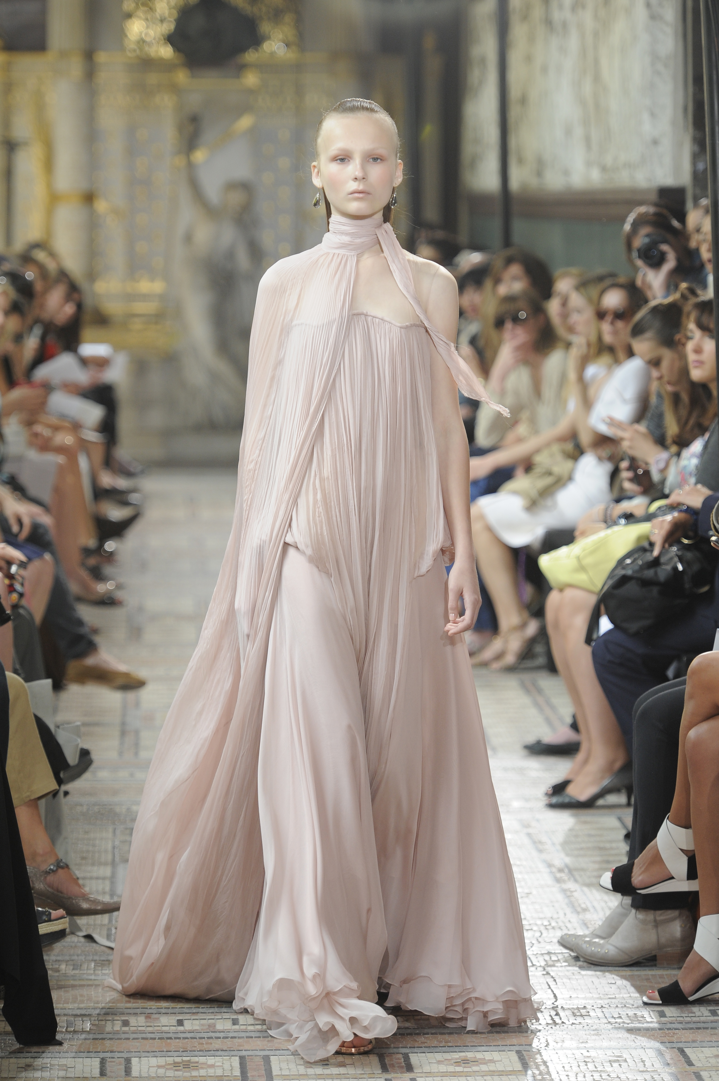 The ensemble consists of a succession of opalescent silhouettes, ethereal images of a steppe woman whose luxury lies in her infinite discretion.