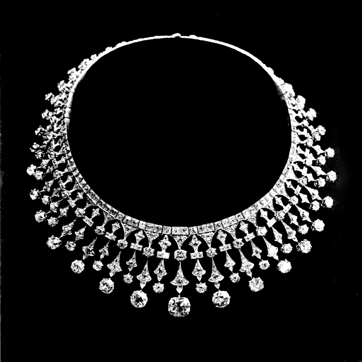 “What use is the sun if your eyes are closed?” wrote Salvador Dali. To savour the magic of this jewellery set, one must patiently observe its assembly. The brilliance of diamonds is enhanced by the variety of cuts. The baguette choker is shimmering with rays, alternating tapers, princesses, baguettes and rounds in a skilful arrangement. This meticulous setting, coupled with extraordinary suppleness when worn – all motifs are swaddled one by one so as to be mobile – contributes to the unique character of this set, which took over 1,000 hours to complete.