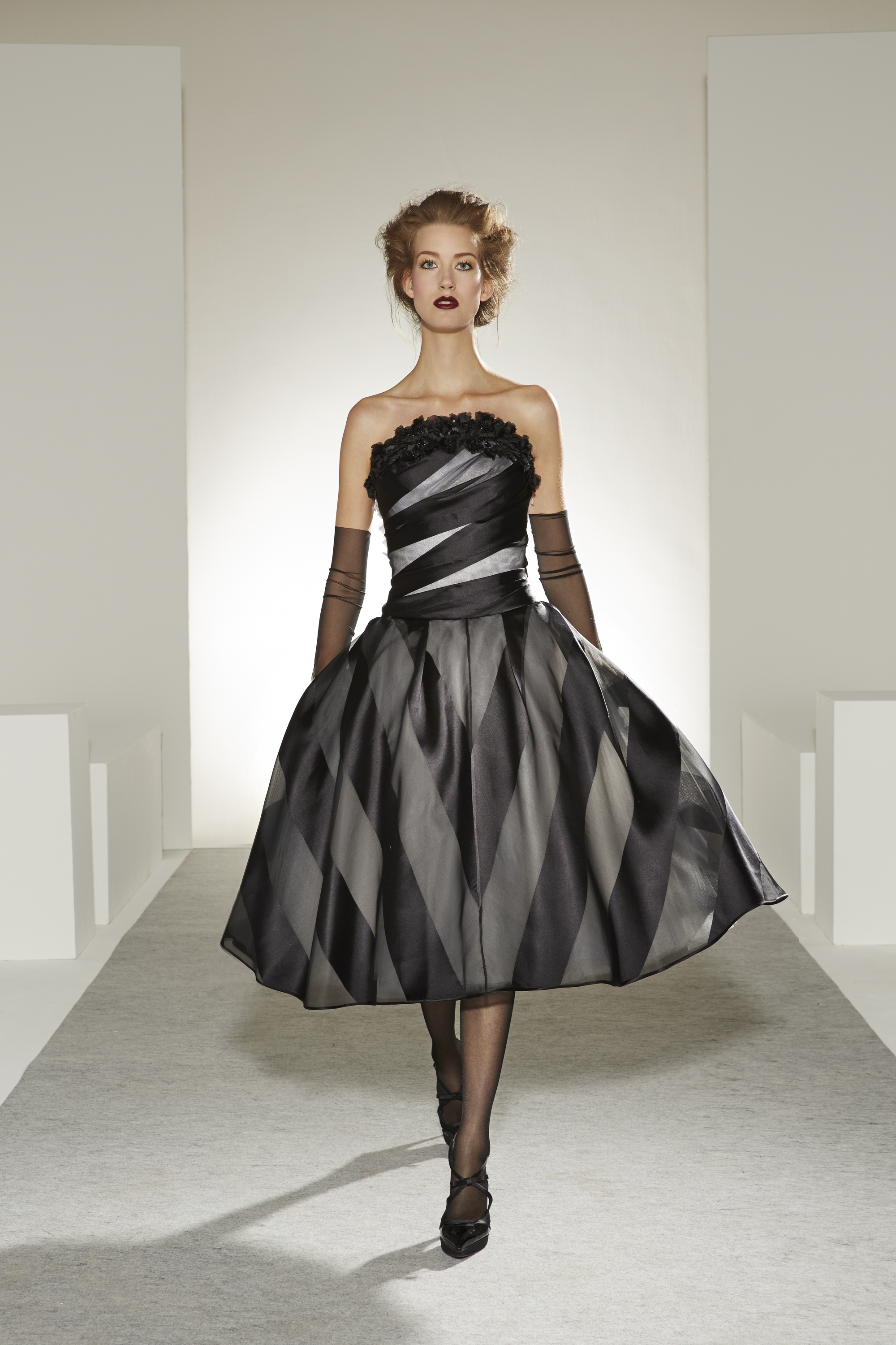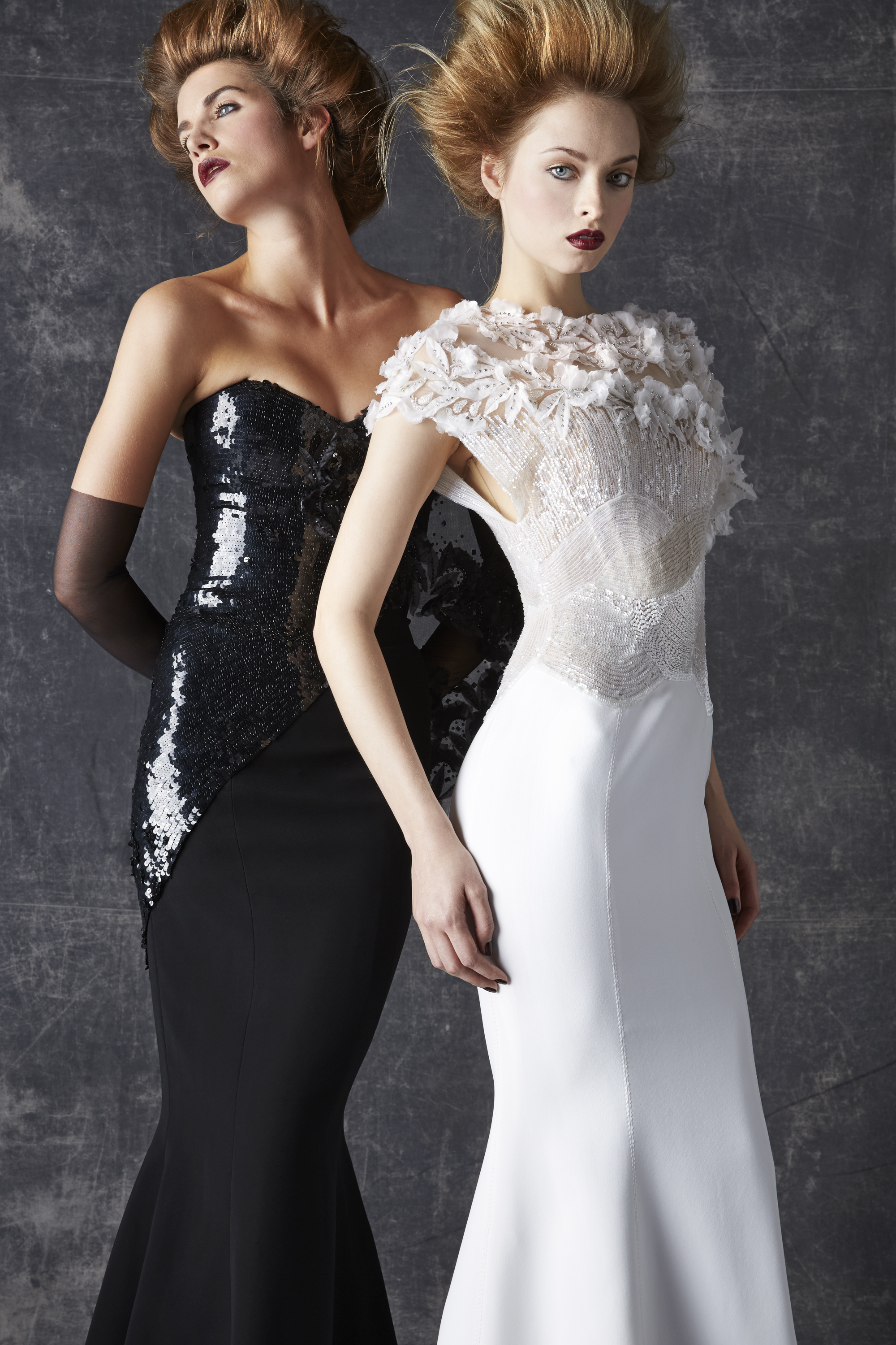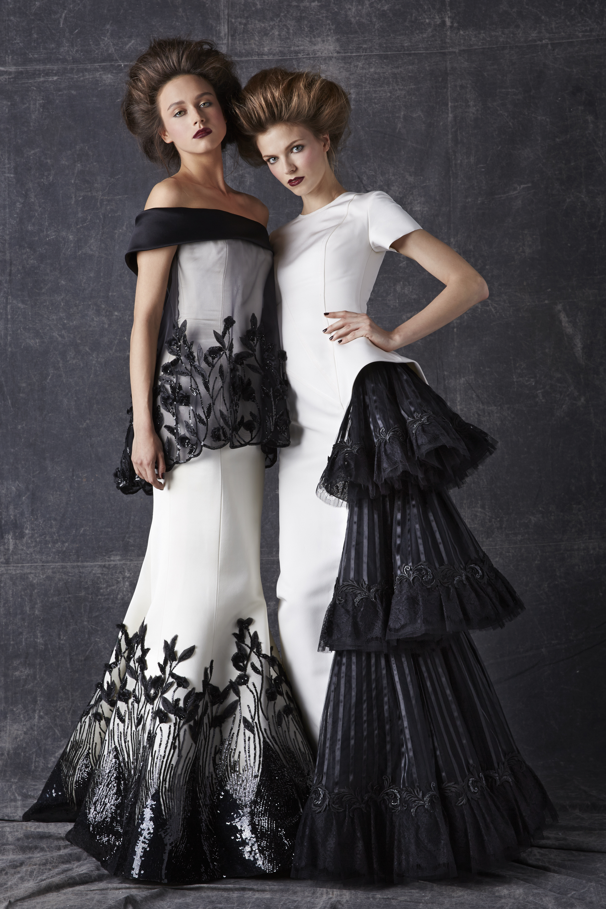 Bonheur: An artistic marriage of dreamy white and raw, inspired black, the wedding dress completes the contemporary picture of a collection that is happy to unite desires, pleasures and reality.