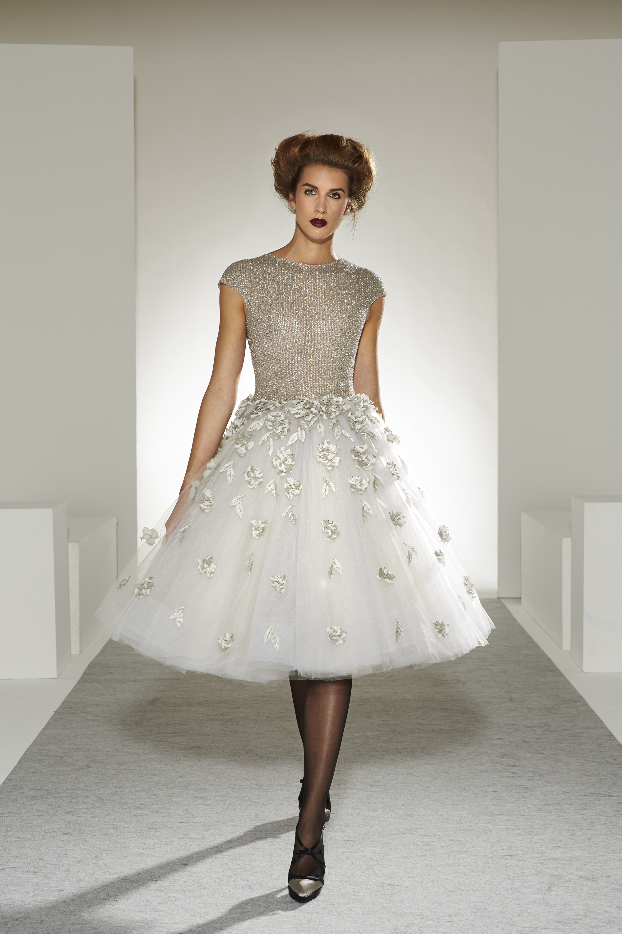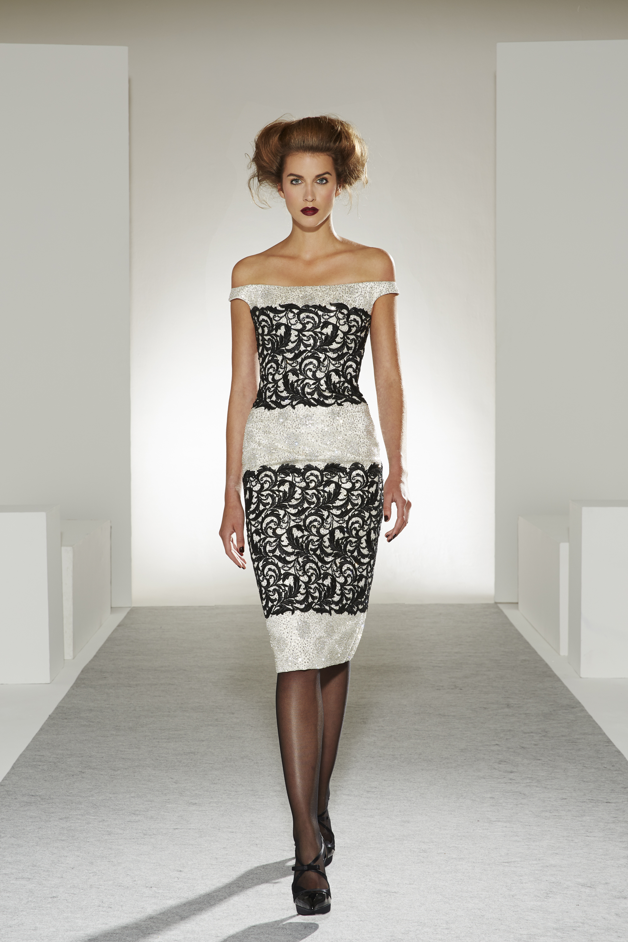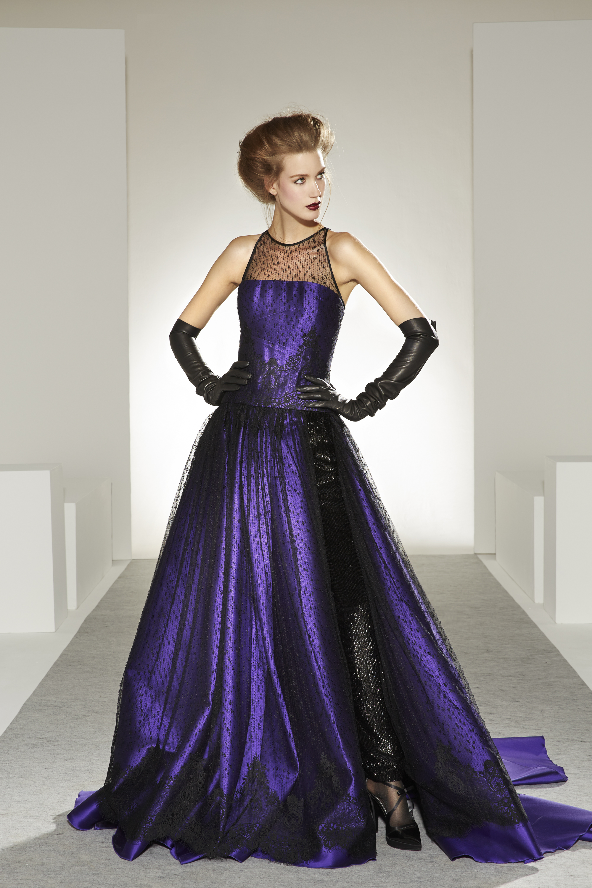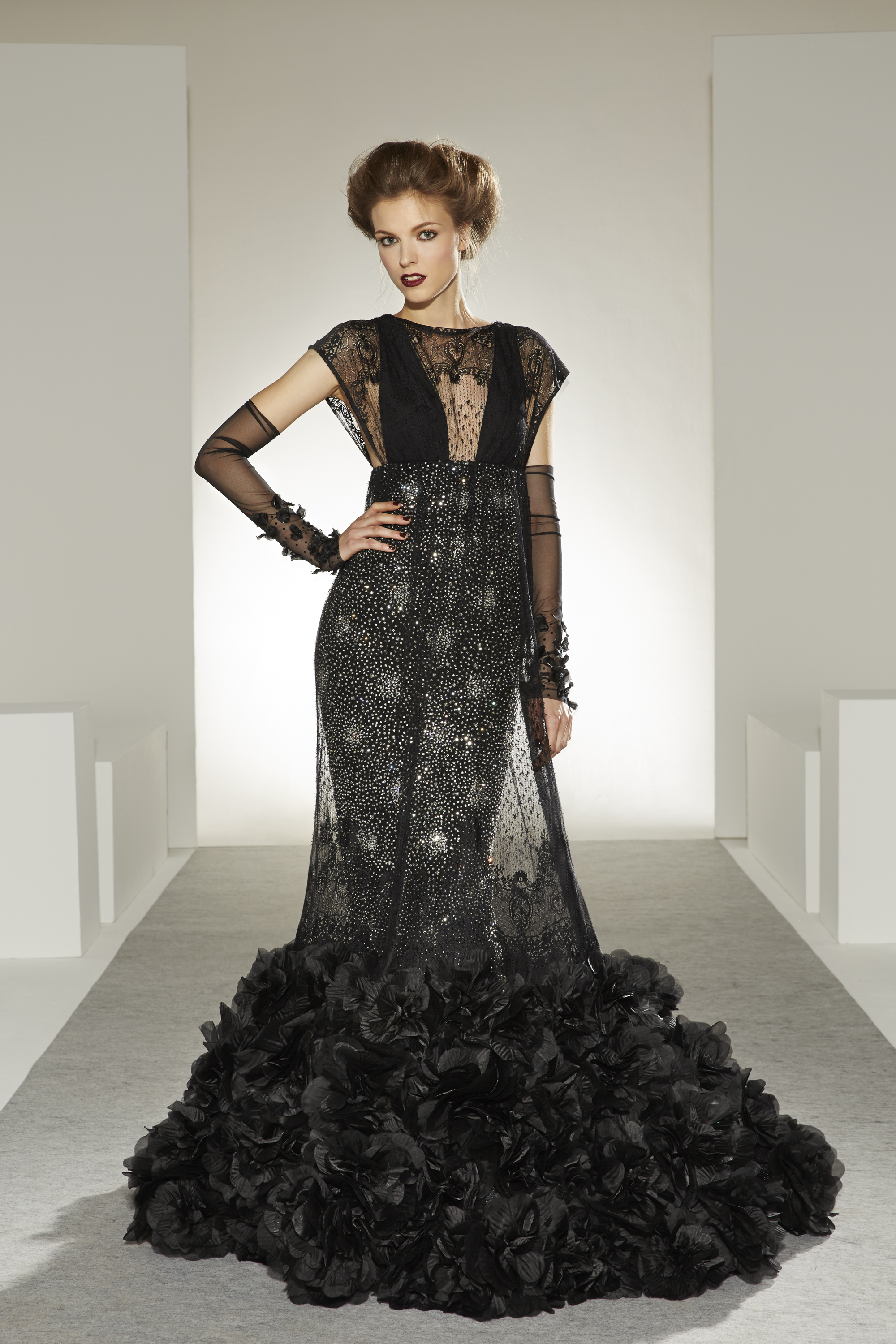 Bonheur: An artistic marriage of dreamy white and raw, inspired black, the wedding dress completes the contemporary picture of a collection that is happy to unite desires, pleasures and reality.