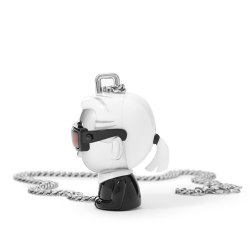 A case in the likeness of Karl, wearing his emblematic black glasses in which the time appears in digital. It is mounted on a long chain and its stainless steel details give it a fun, multifunctional touch. This new accessory completes the KARL LAGERFELD x tokidoki capsule collection.
