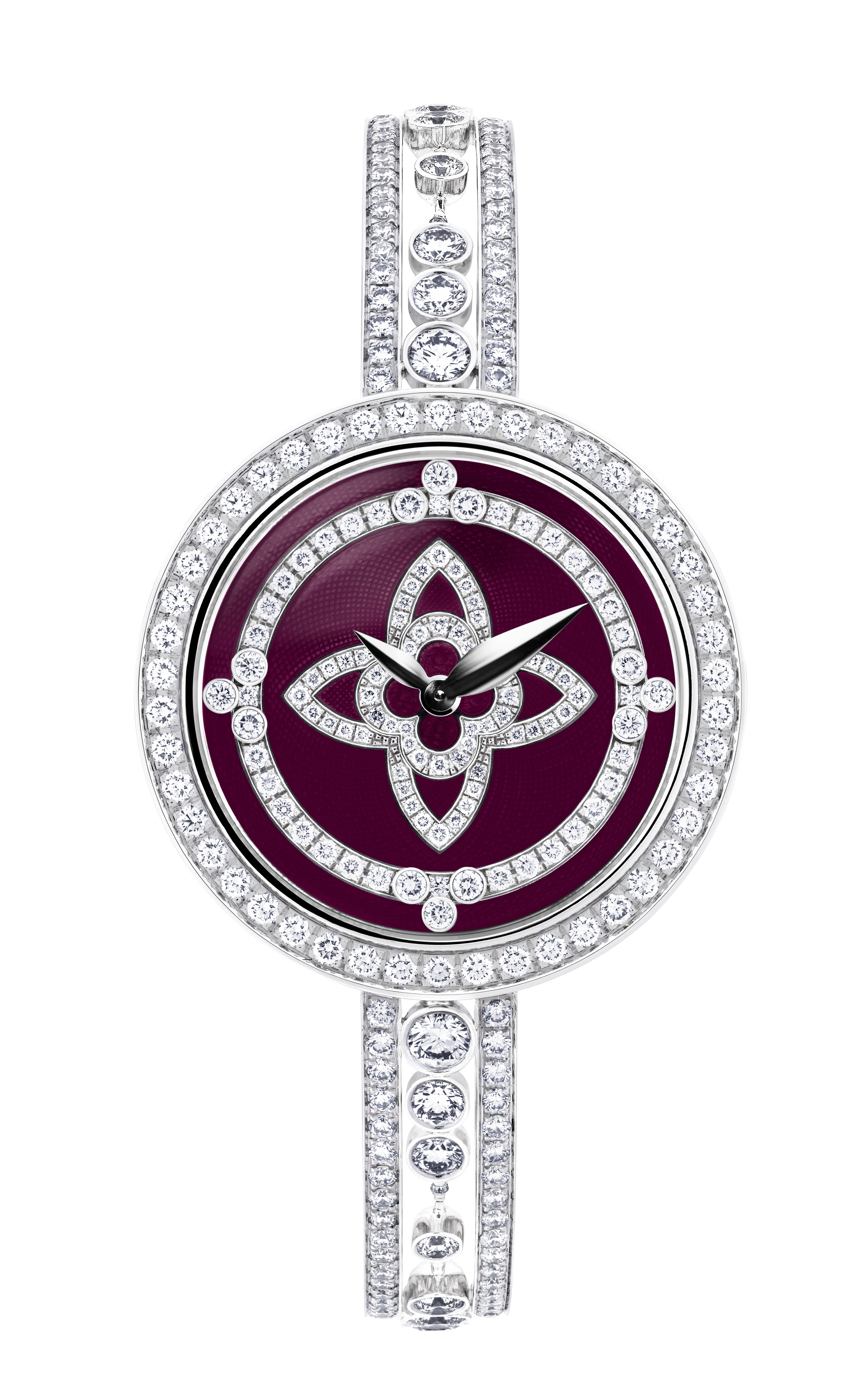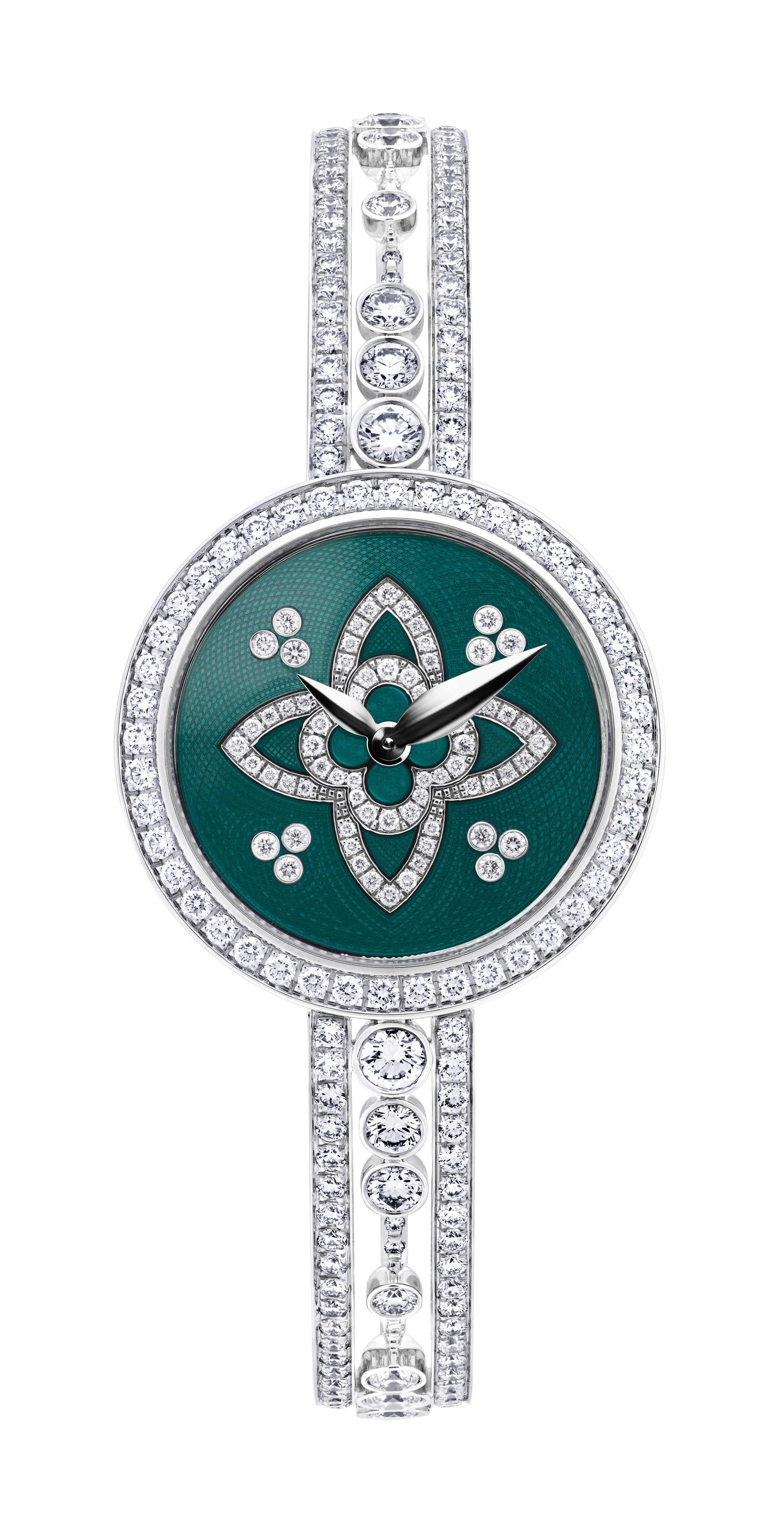 This inspiration has given rise to a watch collection comprising several models with exceptional, technical settings. A secret watch with a mother-of-pearl dial, offered on a satin strap or a diamond-set bracelet. And a watch with a refined grand feu enamel dial, available in four different colors: red, blue, pink and green, and in two dial sizes of 25mm and 30mm.