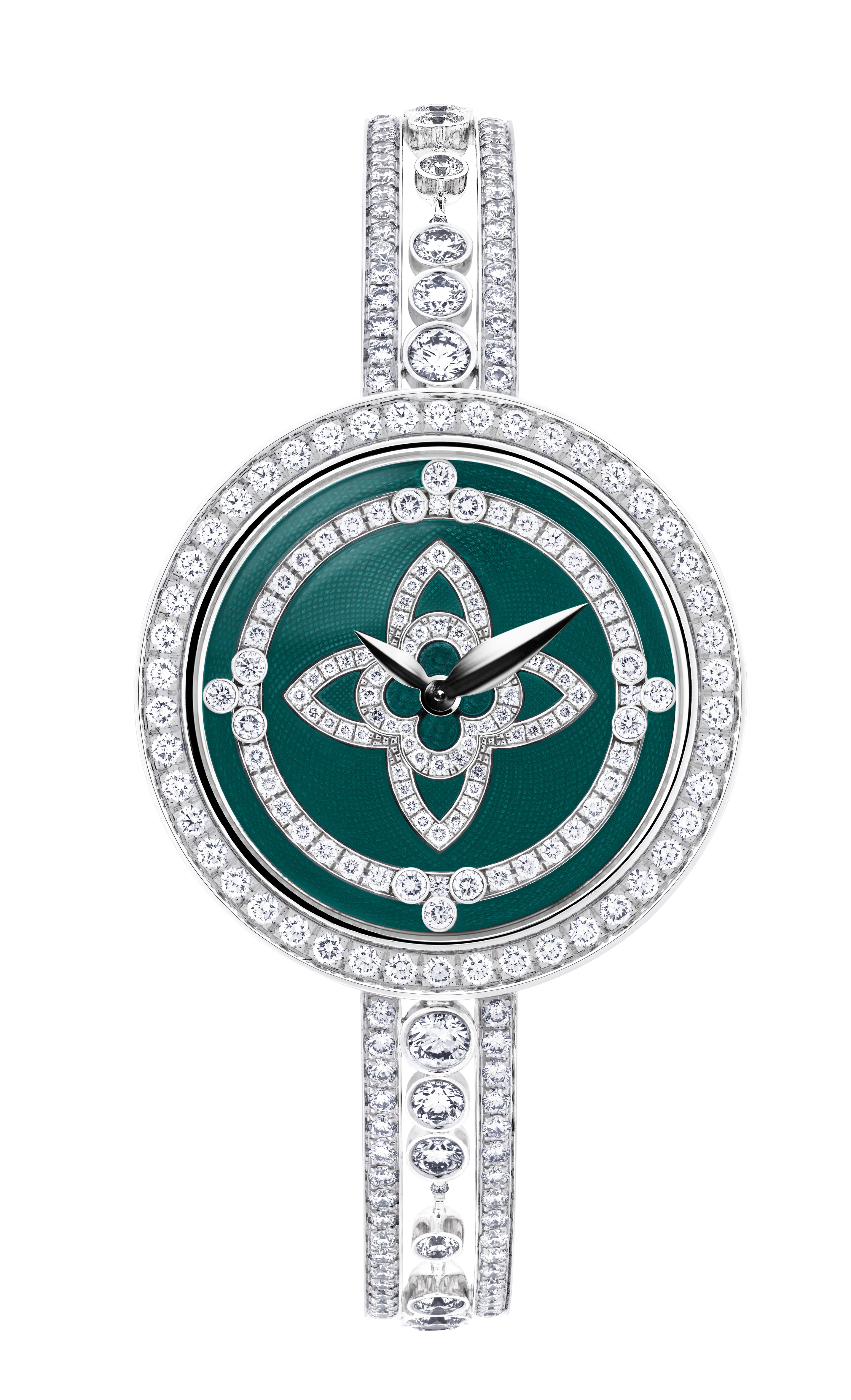 Les Ardentes is a timeless collection in white gold and diamonds inspired by Louis Vuitton’s iconic Monogram flowers, expressed through the setting of diamonds and the two diamonds Flower Cut and Star Cut. Hand-cut, they follow the sinuous contours of the rounded flower, or the sharp profile of the pointed flower.