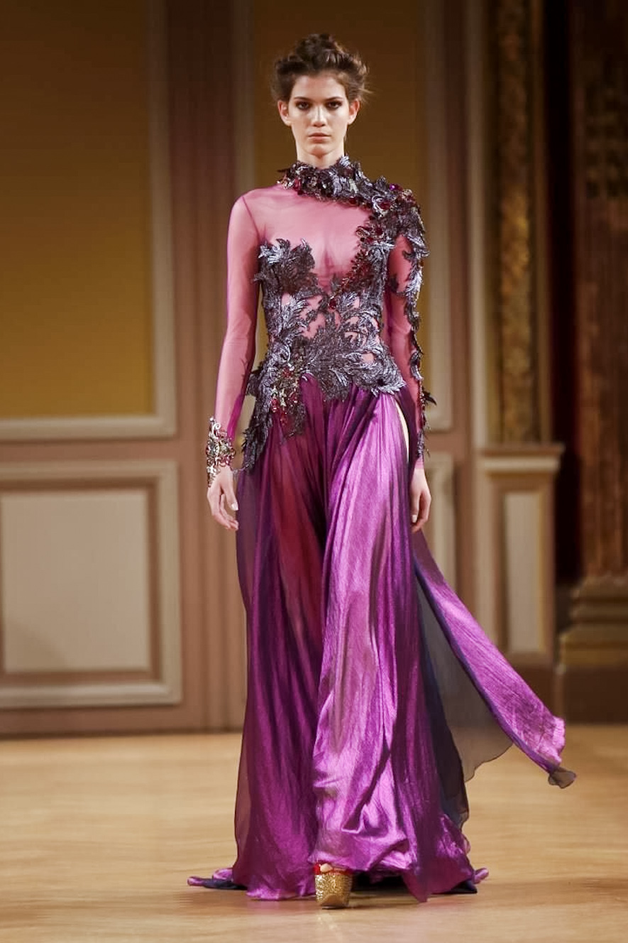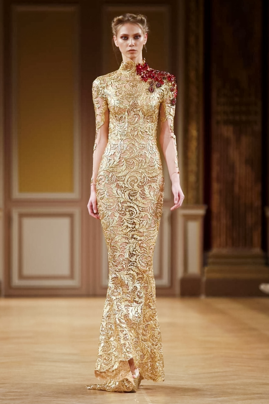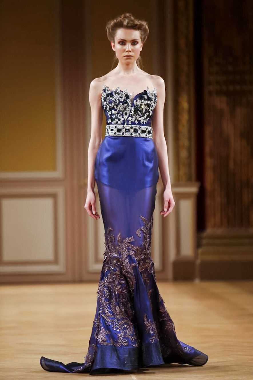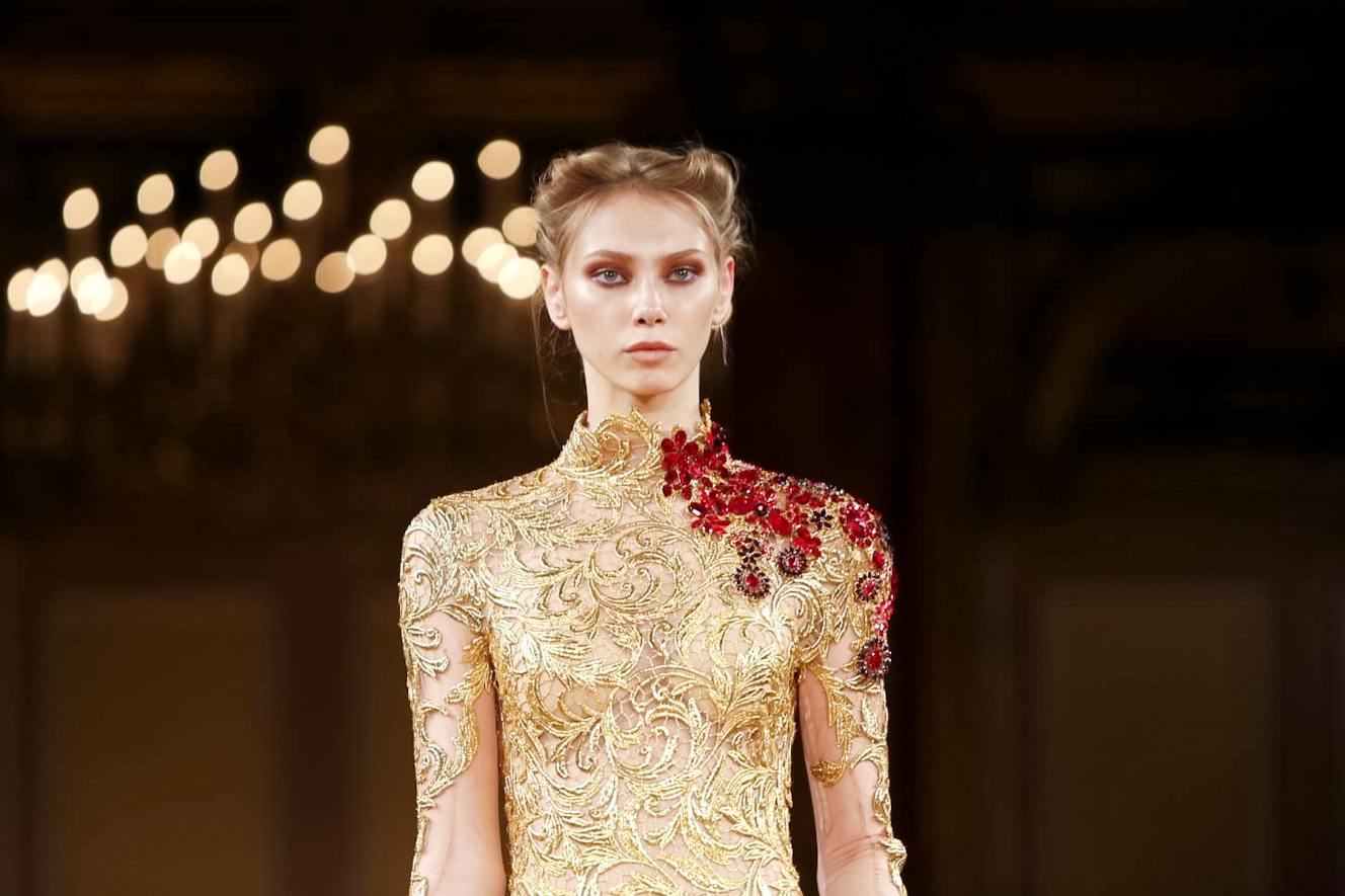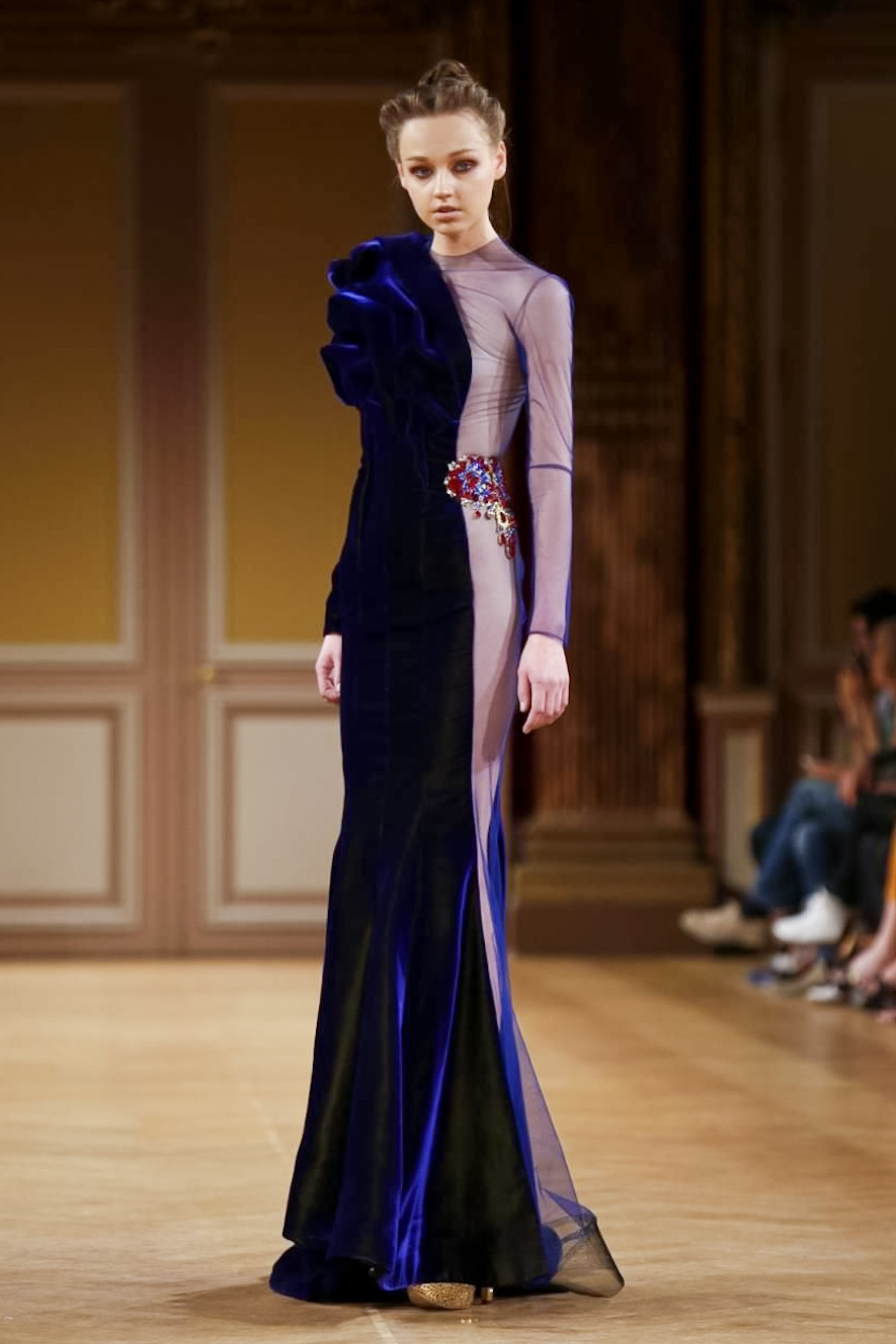 Here, jewelry takes on its full meaning in controlled opulence. Baroque pearl necklaces, crystal diamond bracelets and cabochon clips become embroidery. Like a treasure trove, in bold, precious “accumulations”, they ignite a bustier or cascade down the veil of a hip or shoulder. Colors are about emotion. They are the music of the eyes. Emerald, sapphire, ruby, garnet and amethyst play with brilliance and sparkle.