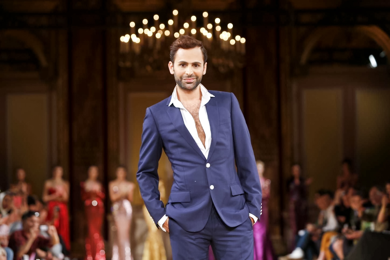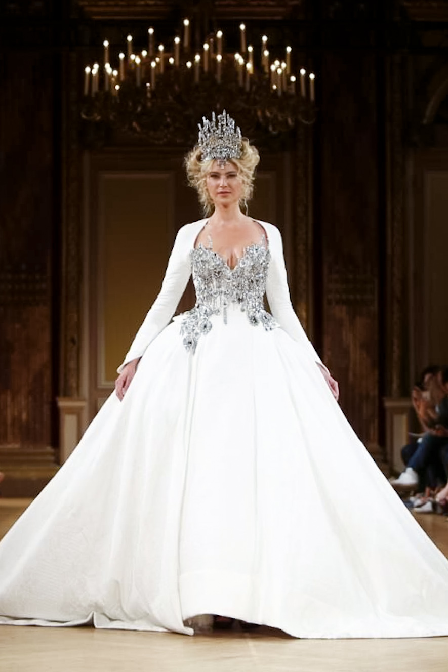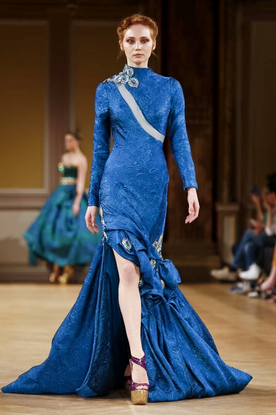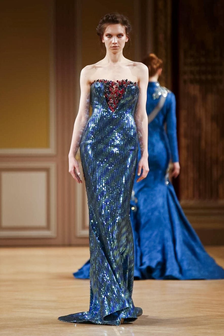 Here, jewelry takes on its full meaning in controlled opulence. Baroque pearl necklaces, crystal diamond bracelets and cabochon clips become embroidery. Like a treasure trove, in bold, precious “accumulations”, they ignite a bustier or cascade down the veil of a hip or shoulder. Colors are about emotion. They are the music of the eyes. Emerald, sapphire, ruby, garnet and amethyst play with brilliance and sparkle.