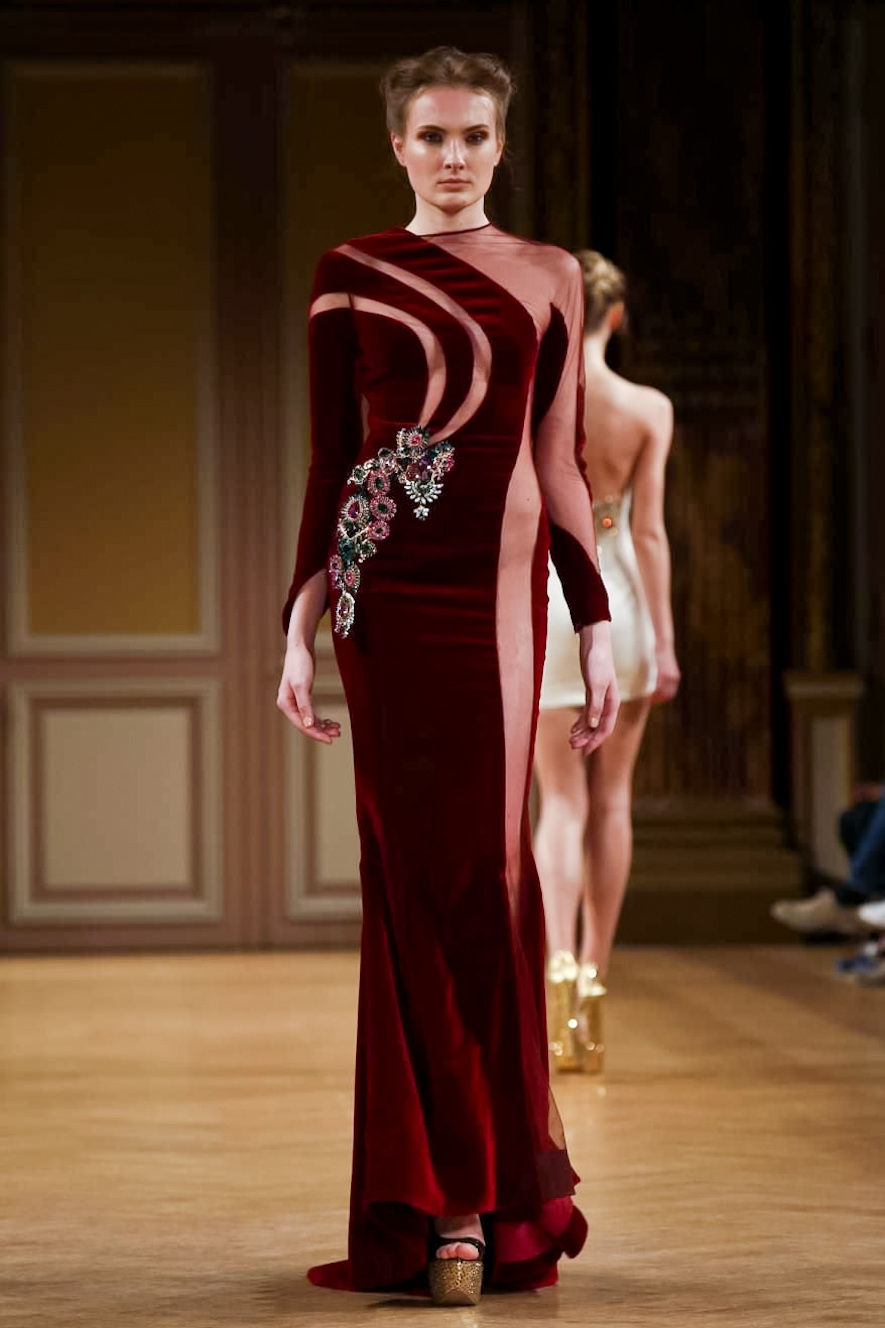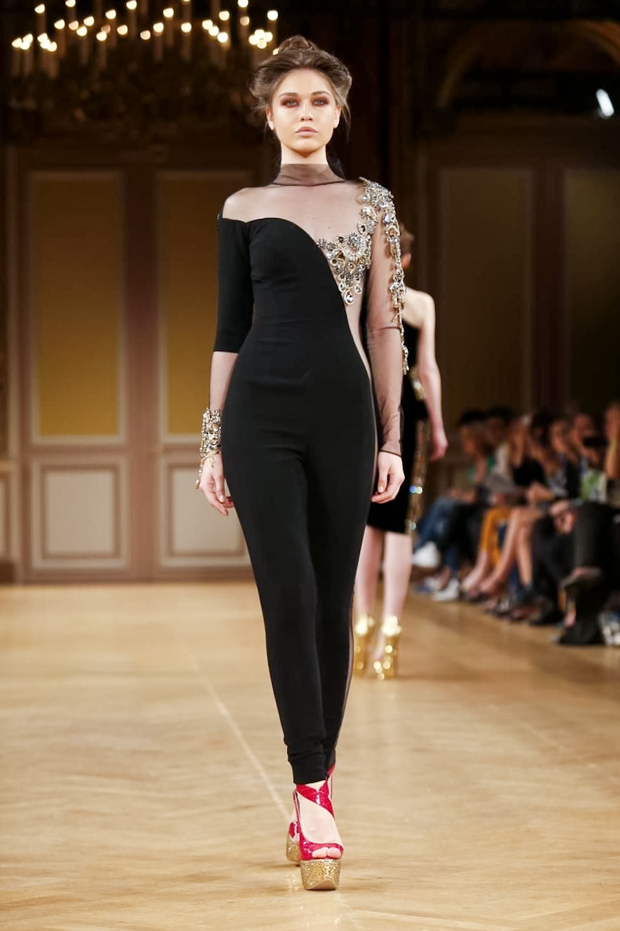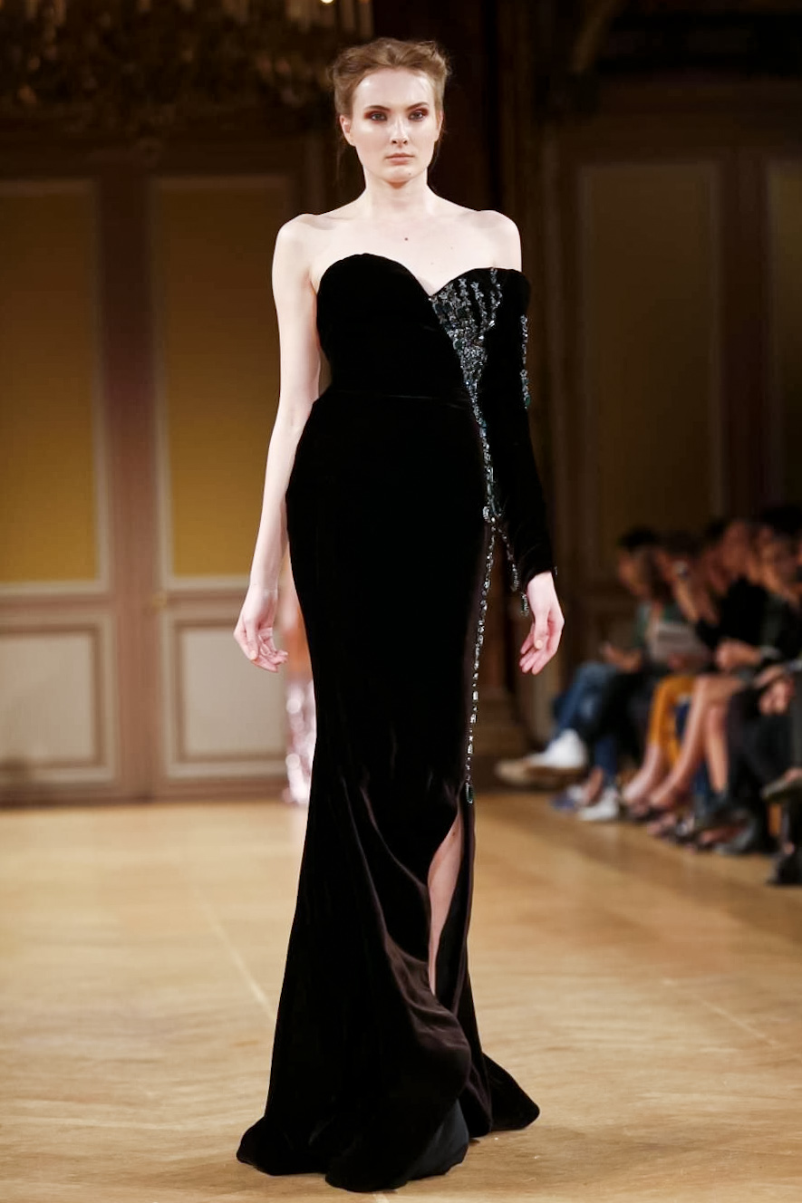 True to his philosophy, Tony Yaacoub’s autumn-winter silhouette is deliberately simplified and streamlined. Fine, almost liana-like lines, stretched to the sky, curl, break cleanly, give way to cut sections. Skilful constructions, subtle geometries, contrasting materials.