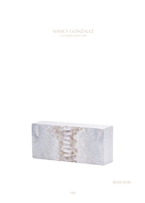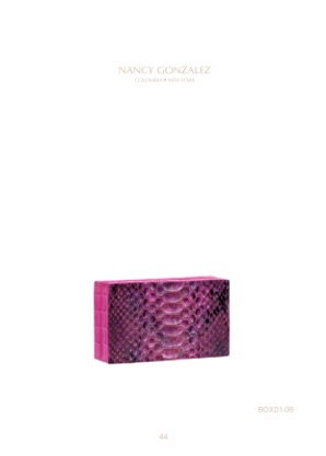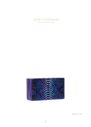 Nancy Gonzalez’s designs are always modern, yet inspired by classic elements. Nature is her greatest accomplice and her main source of inspiration. She tries always pushing the limits of what can be done with skins, precious skins. Her aim is to convey joy, kindness and strength through her designs, to create an emotional relationship between her customers and their bags. The box clutches are handmade by master craftsmen in Colombia, her country of origin. Always with the same leitmotiv, the deep desire to achieve the highest quality.