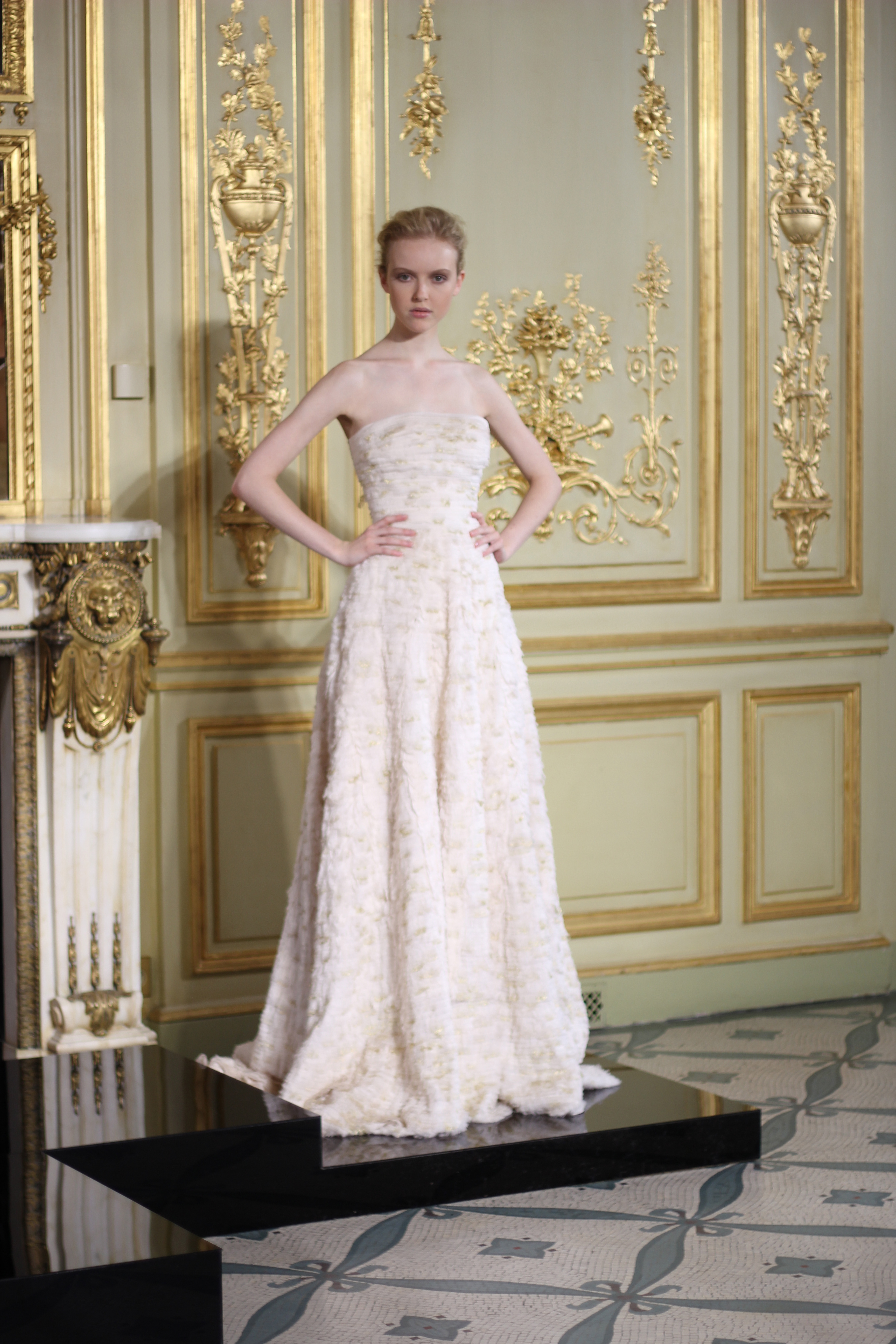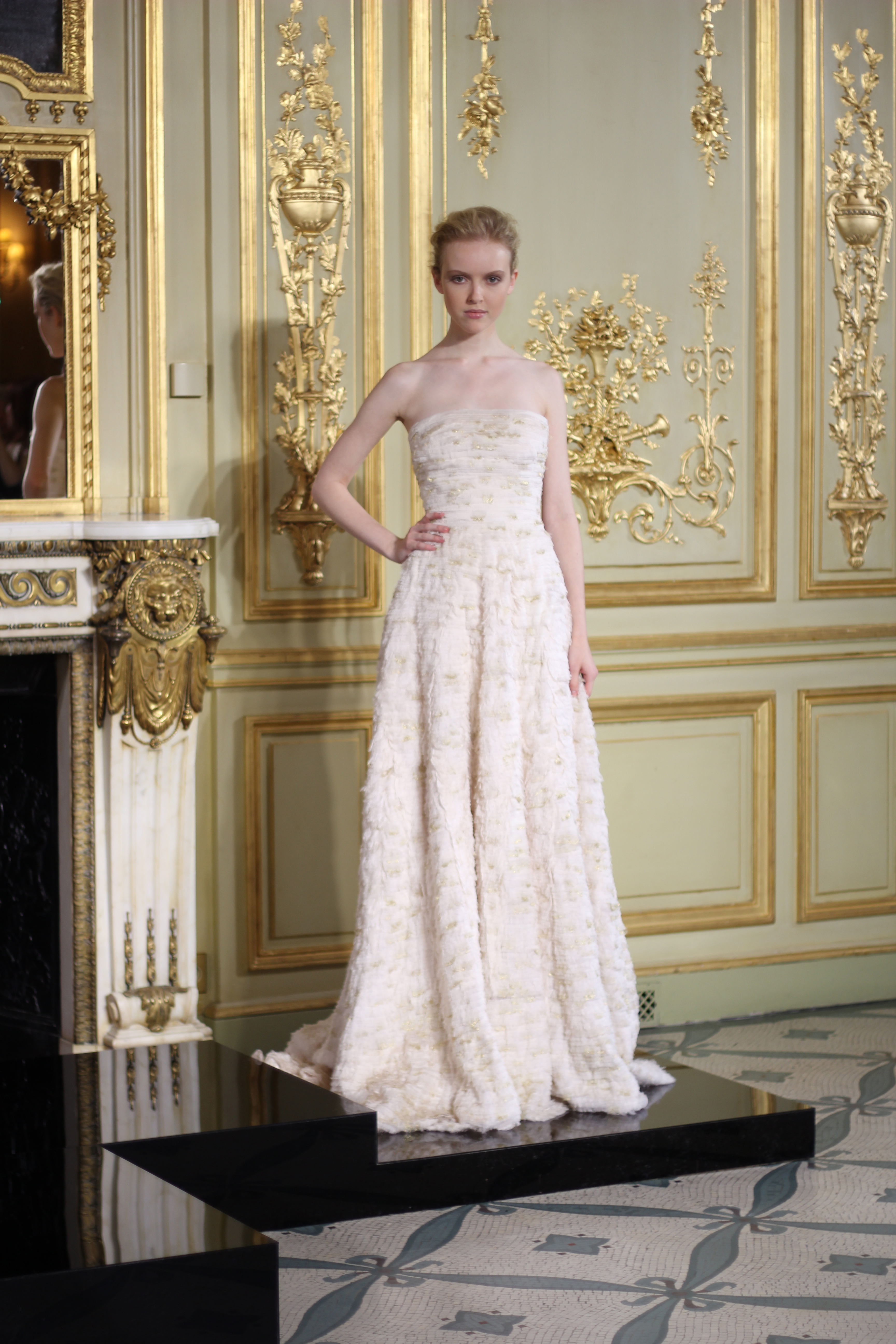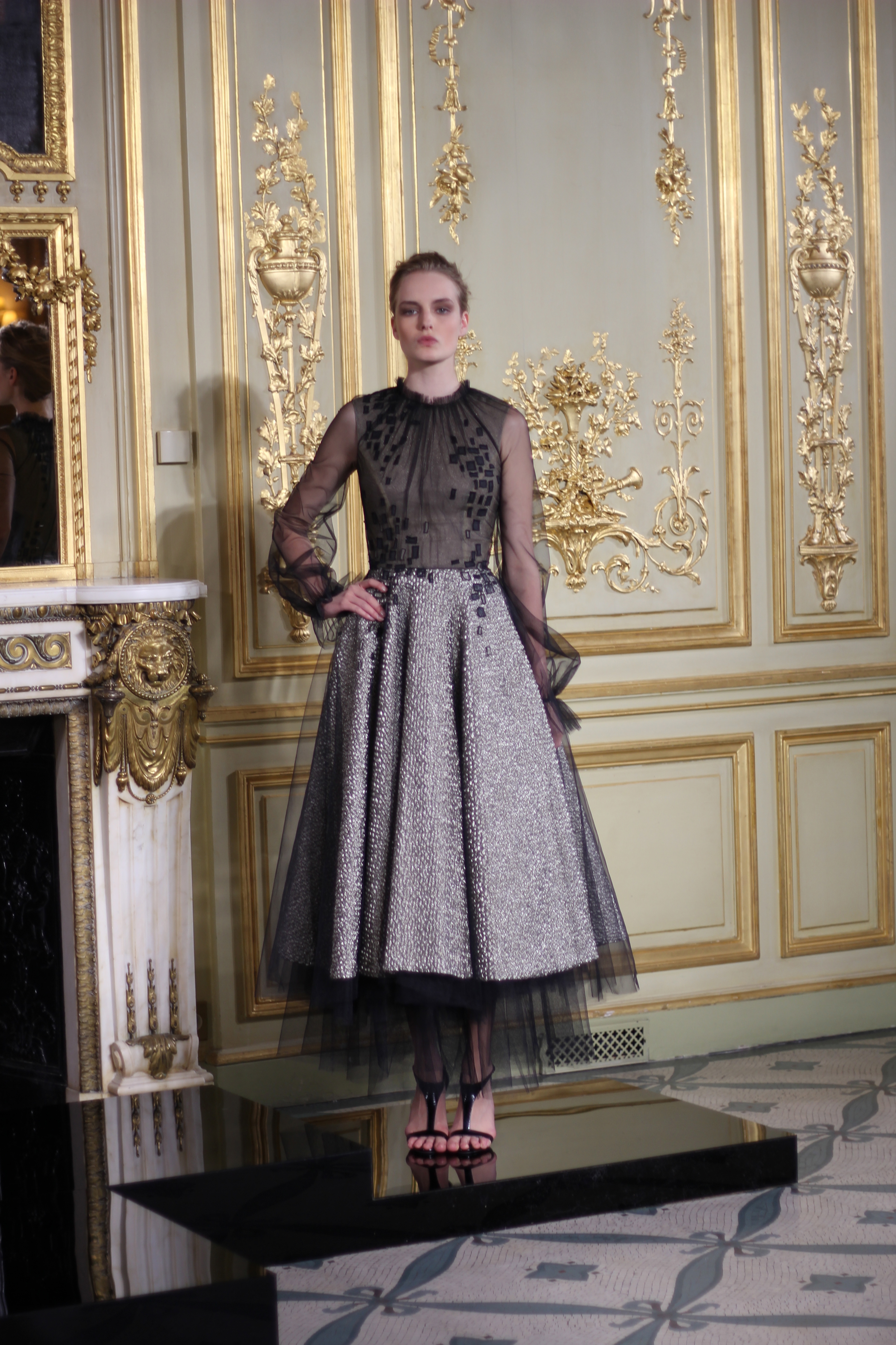 Inspired by the artist’s “Cycle Doré”, the collection takes shape in a harmony of tones, a rich alliance of gold, silver and platinum. Shades of lavender, old rose and champagne with country and vintage accents bring a touch of softness to the darker, deeper tones of black and violet to sublimate the line. Materials add opulence: the delicate fusion of contemporary lace, soft sheer tulle, chiffon and organza counterbalances the intensity of metallic textiles. Long, flared skirts with cinched waists embody the feminine ideals of Klimt’s masterpieces.