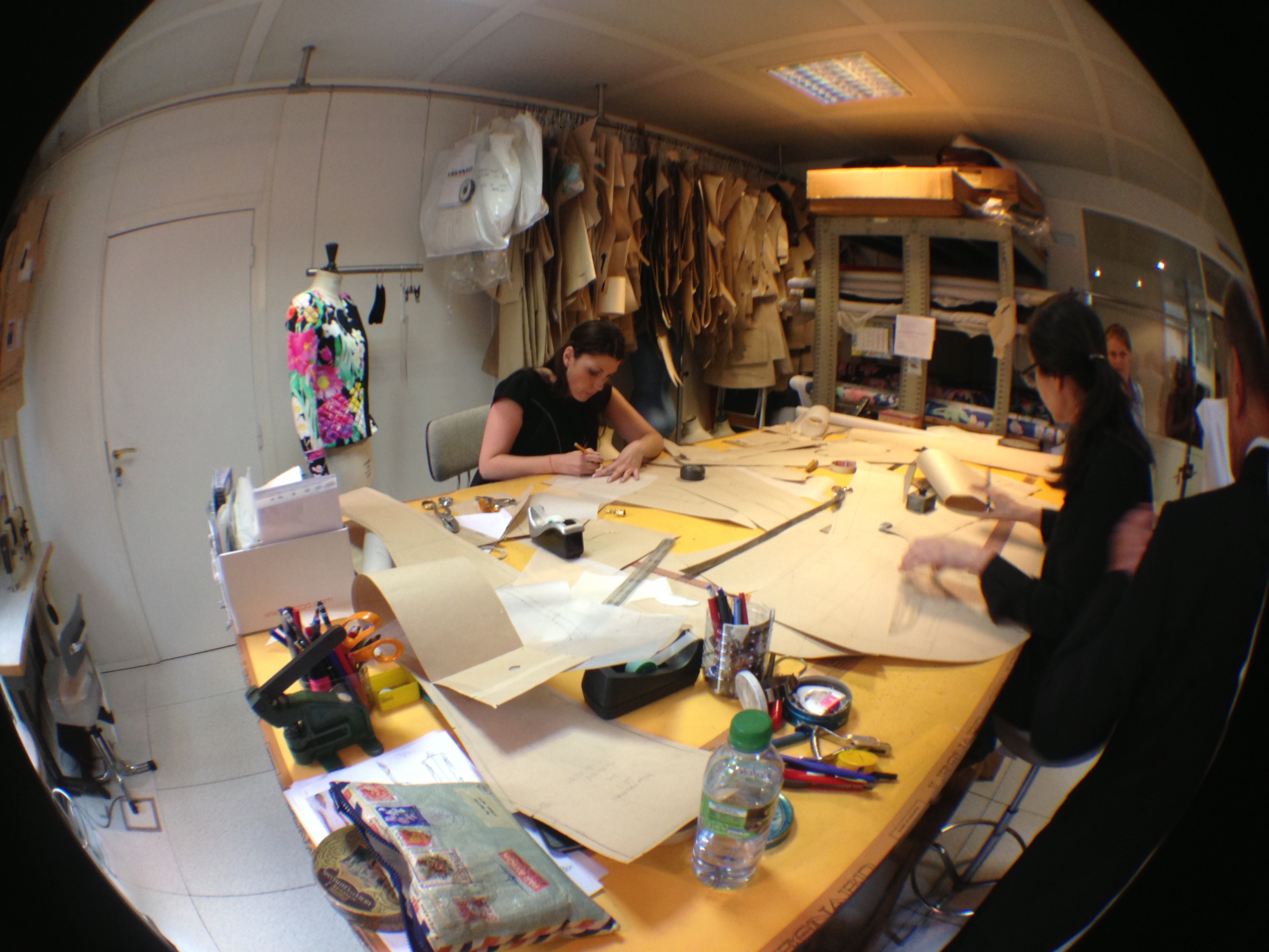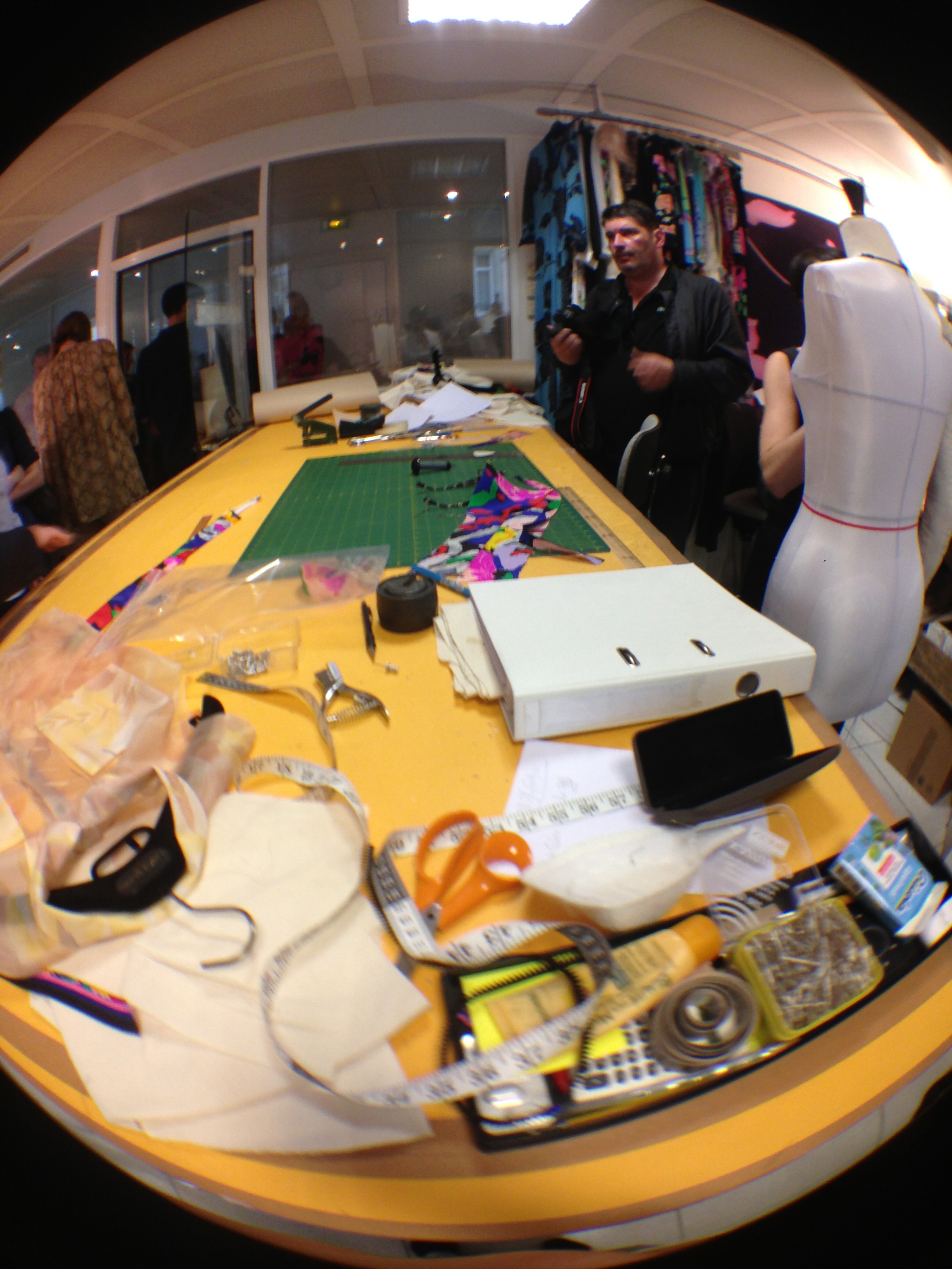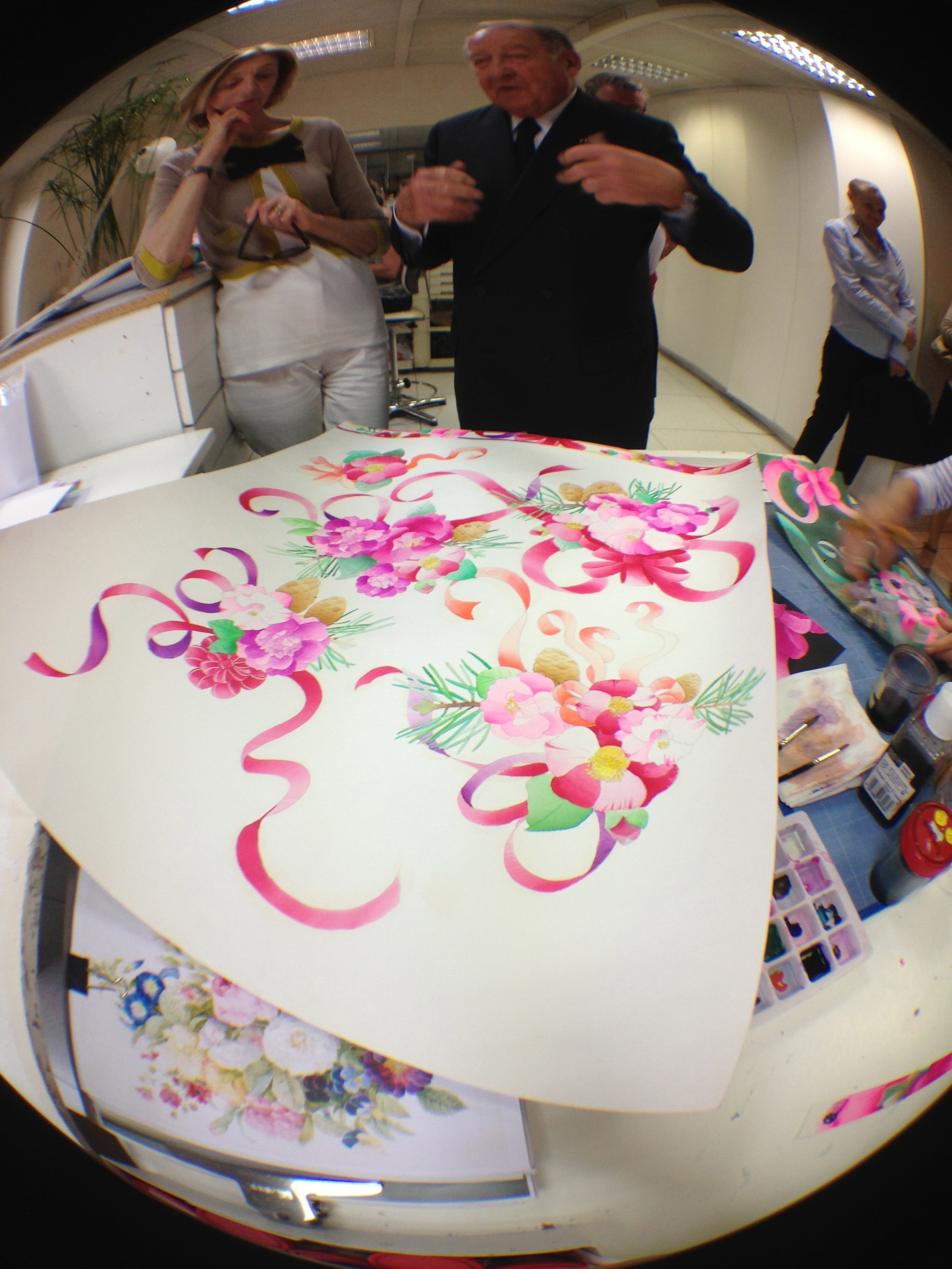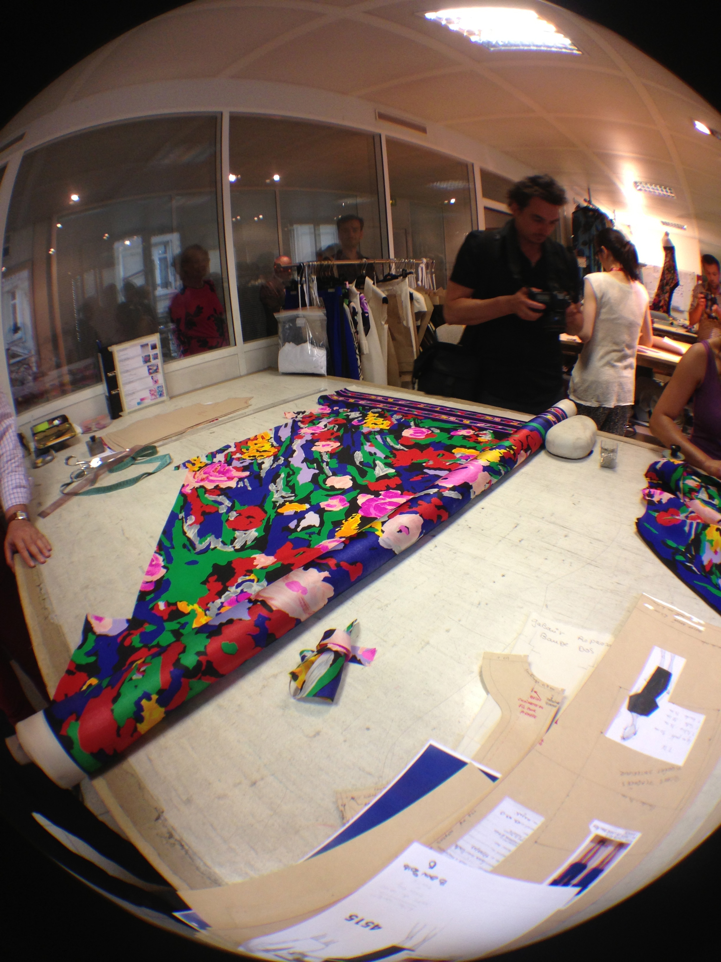 They also opened the doors of the workshops and garment studios to the Minister. Léonard is opposed to the use of computers for design, and therefore makes most of his designs and prints by hand in these workshops.