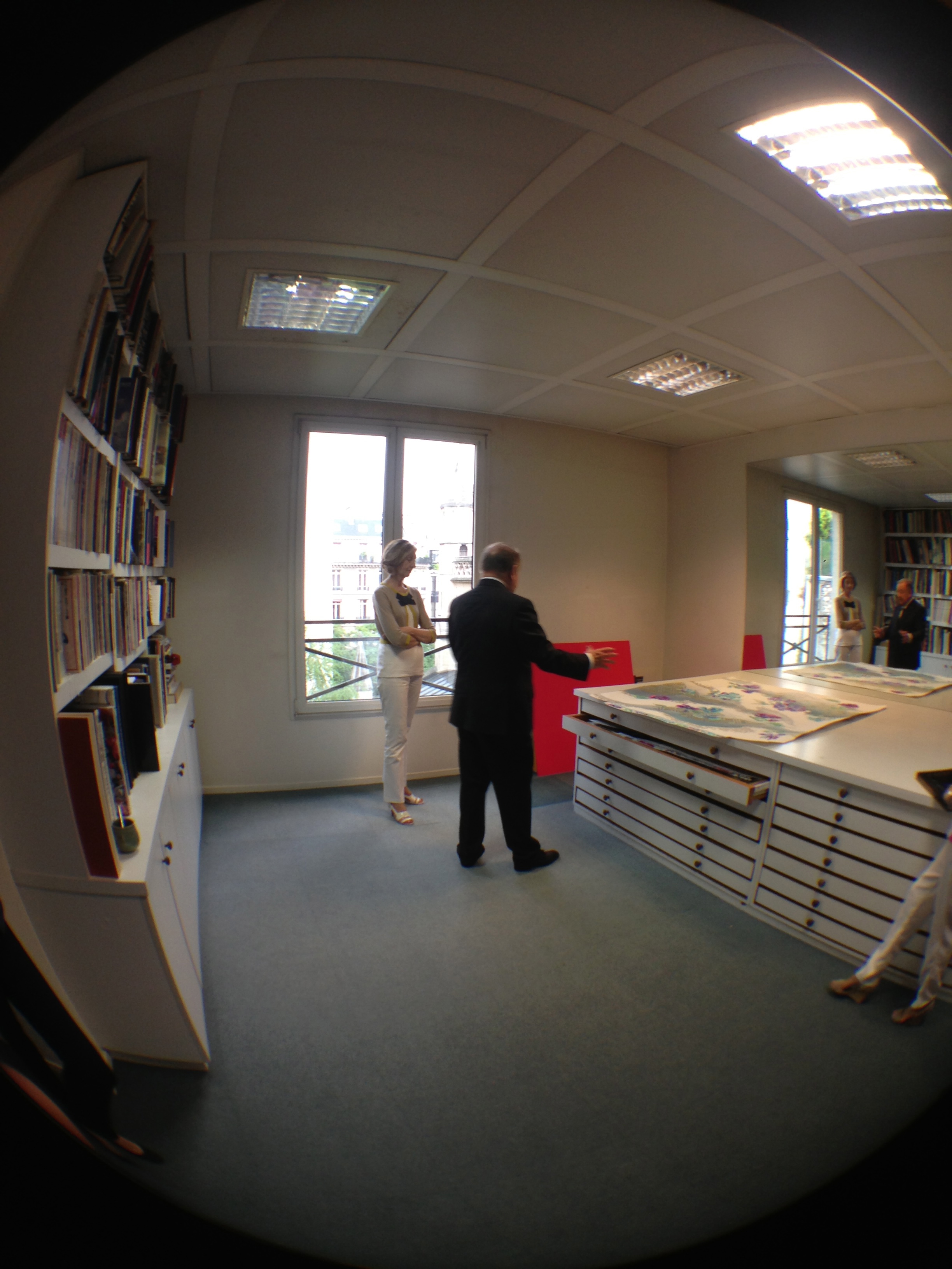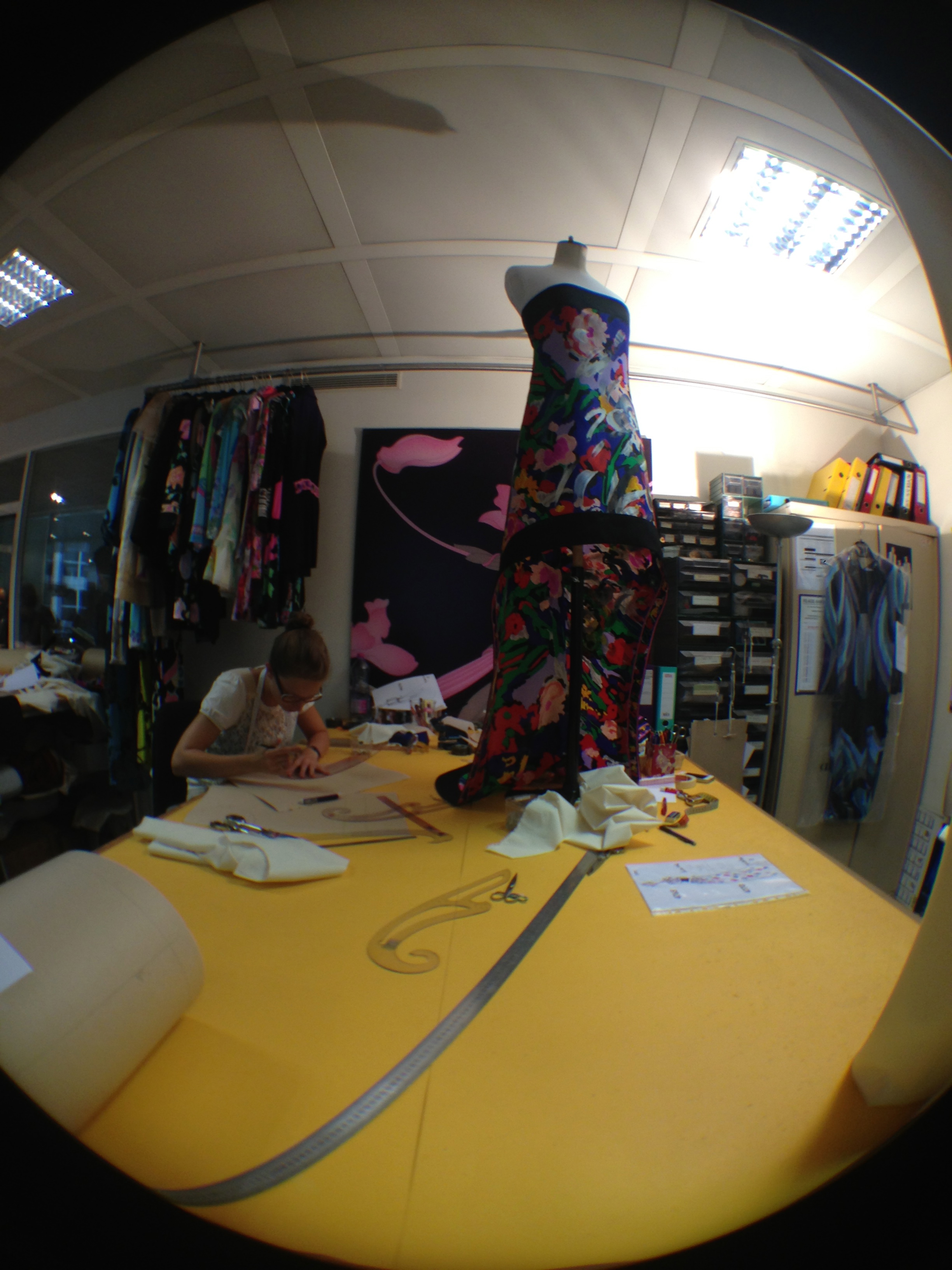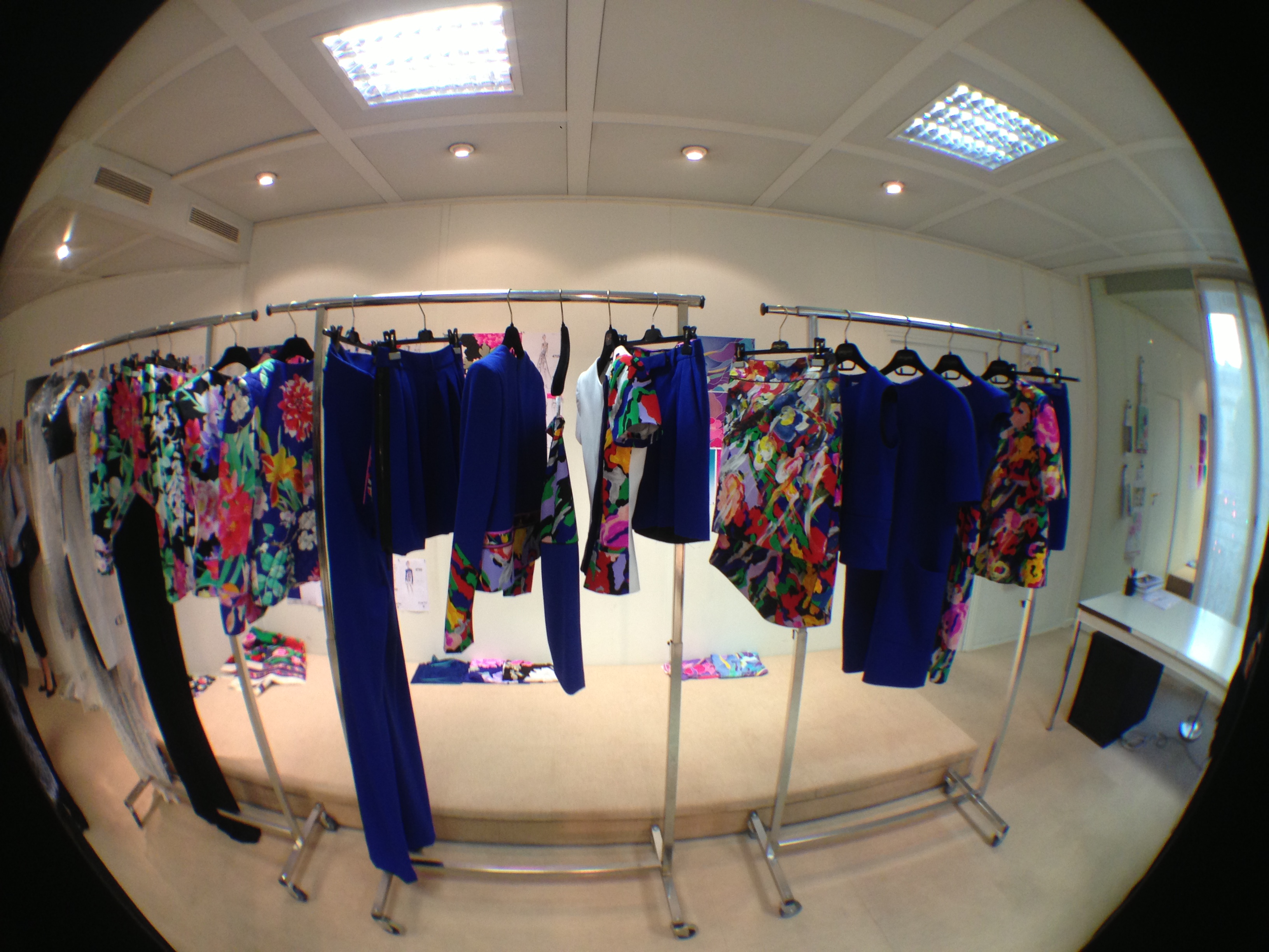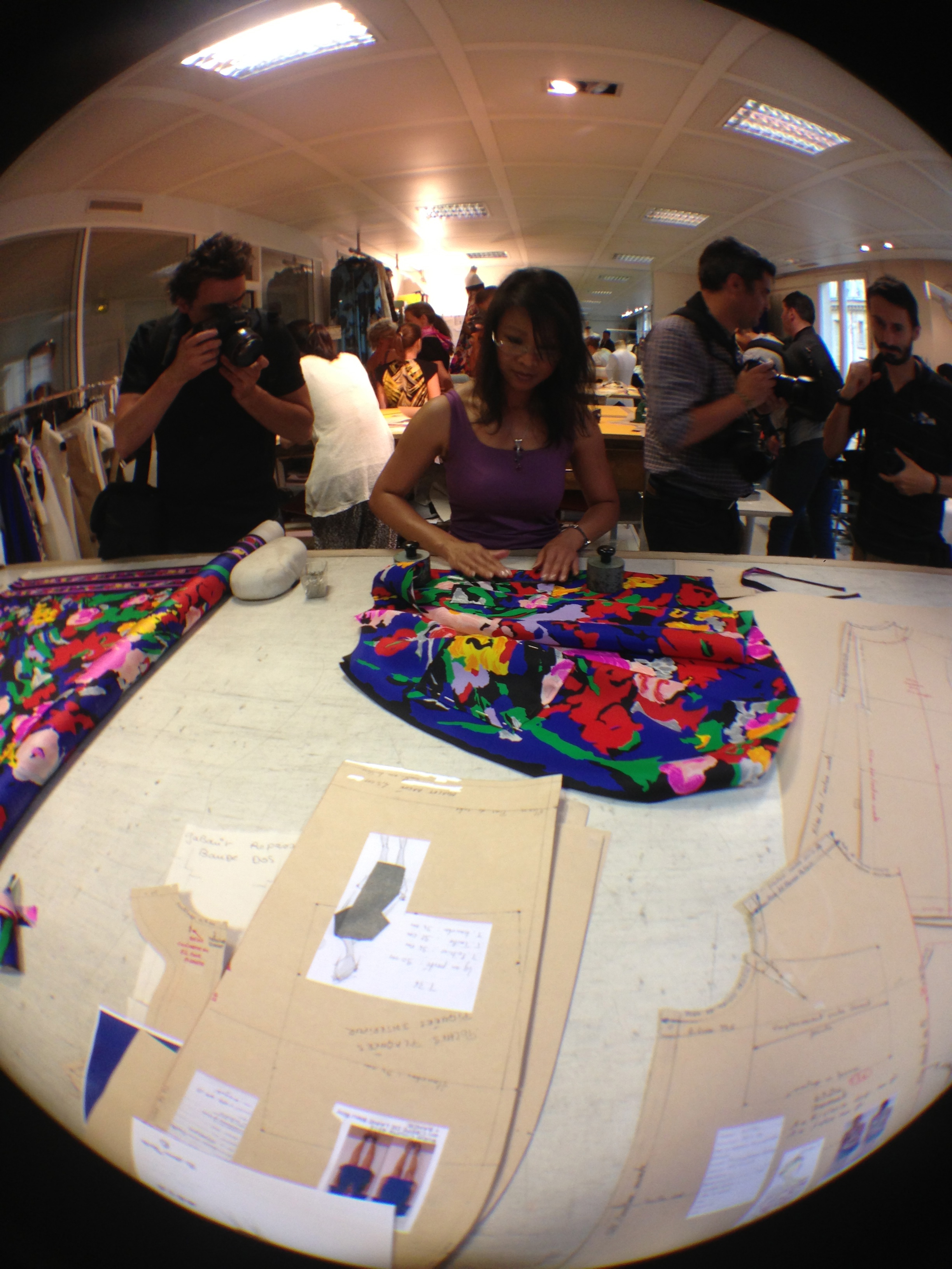 They also opened the doors of the workshops and garment studios to the Minister. Léonard is opposed to the use of computers for design, and therefore makes most of his designs and prints by hand in these workshops.