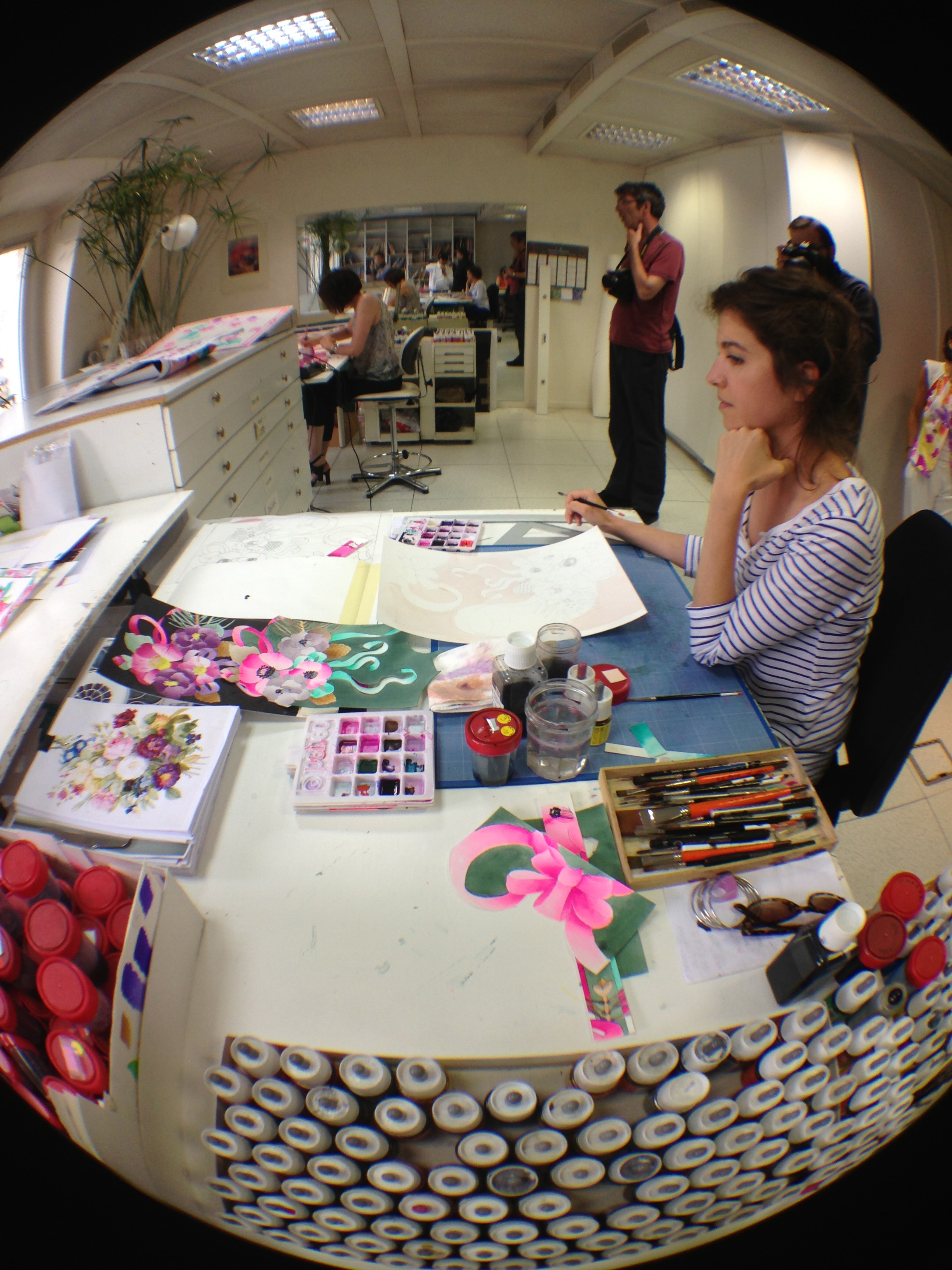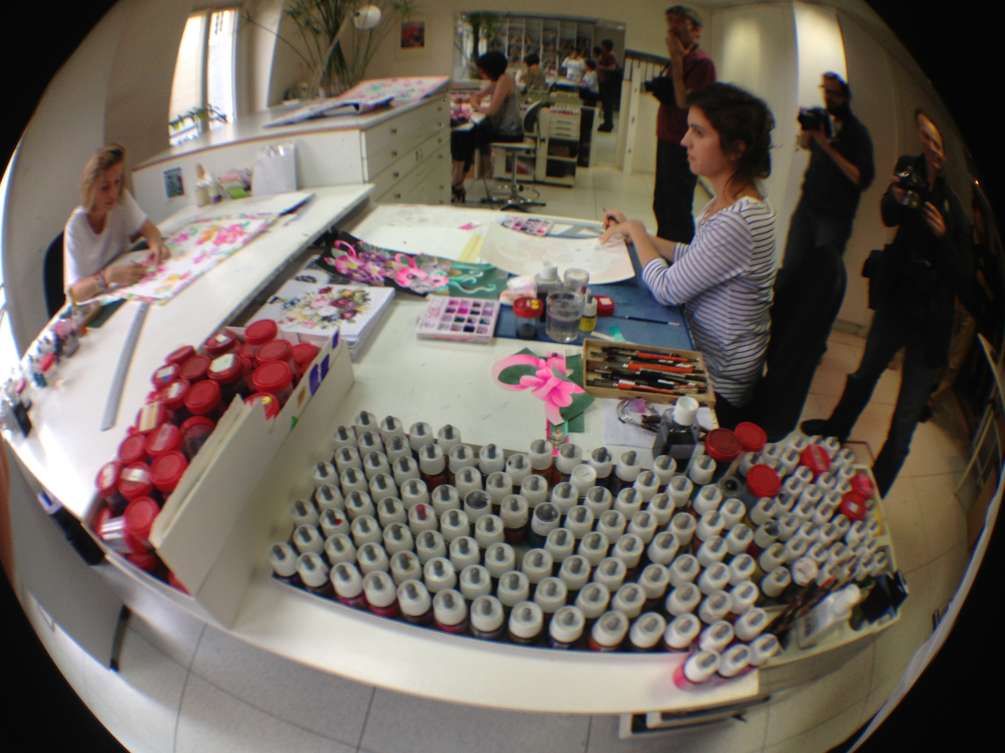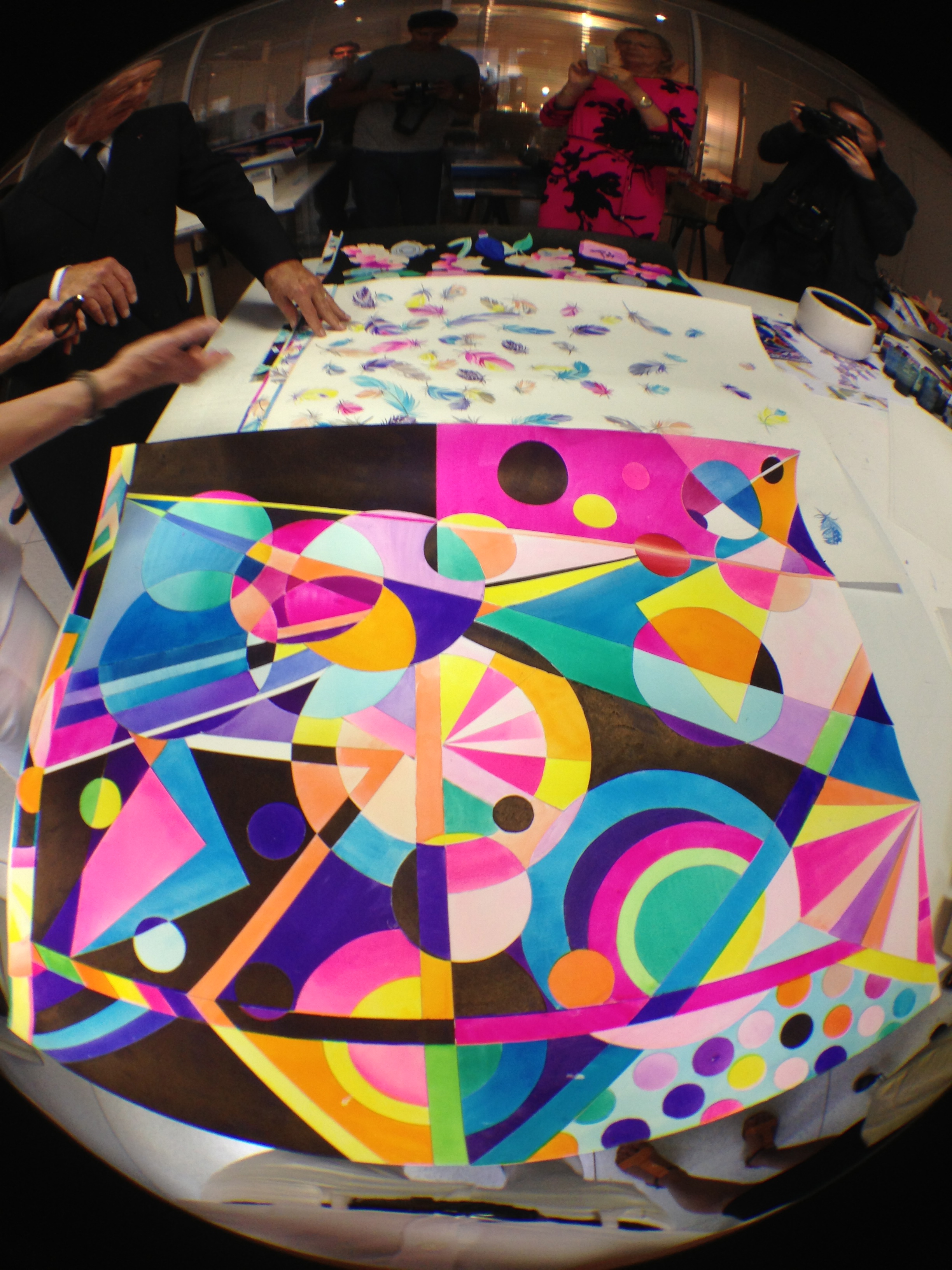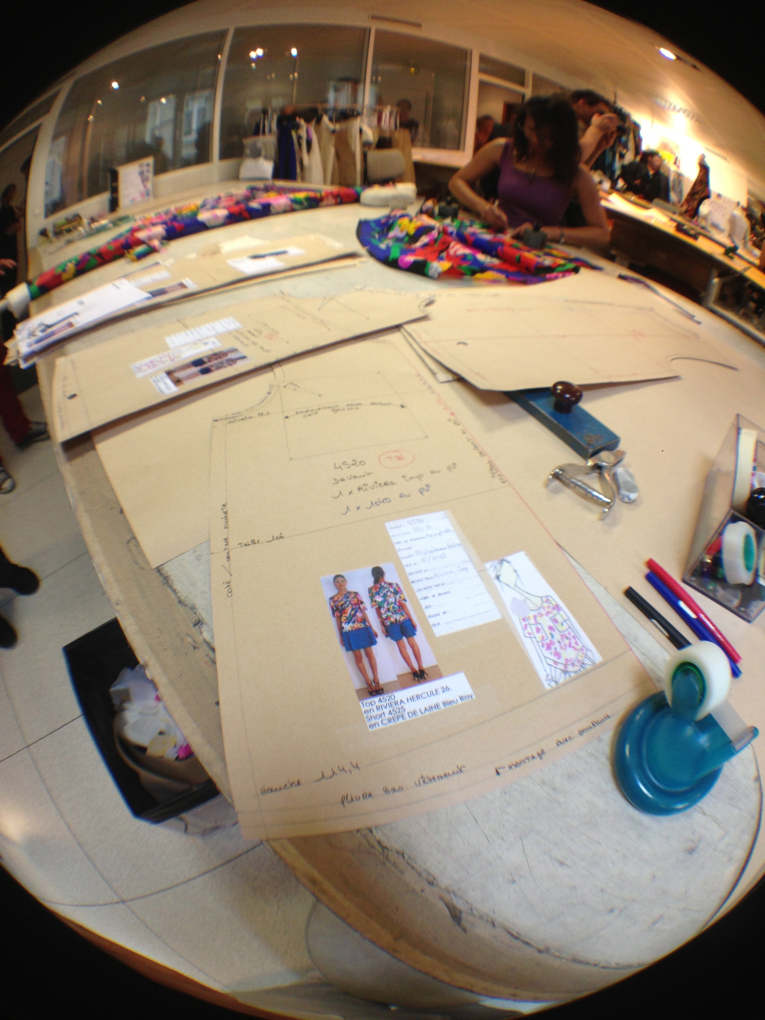 They also opened the doors of the workshops and garment studios to the Minister. Léonard is opposed to the use of computers for design, and therefore makes most of his designs and prints by hand in these workshops.