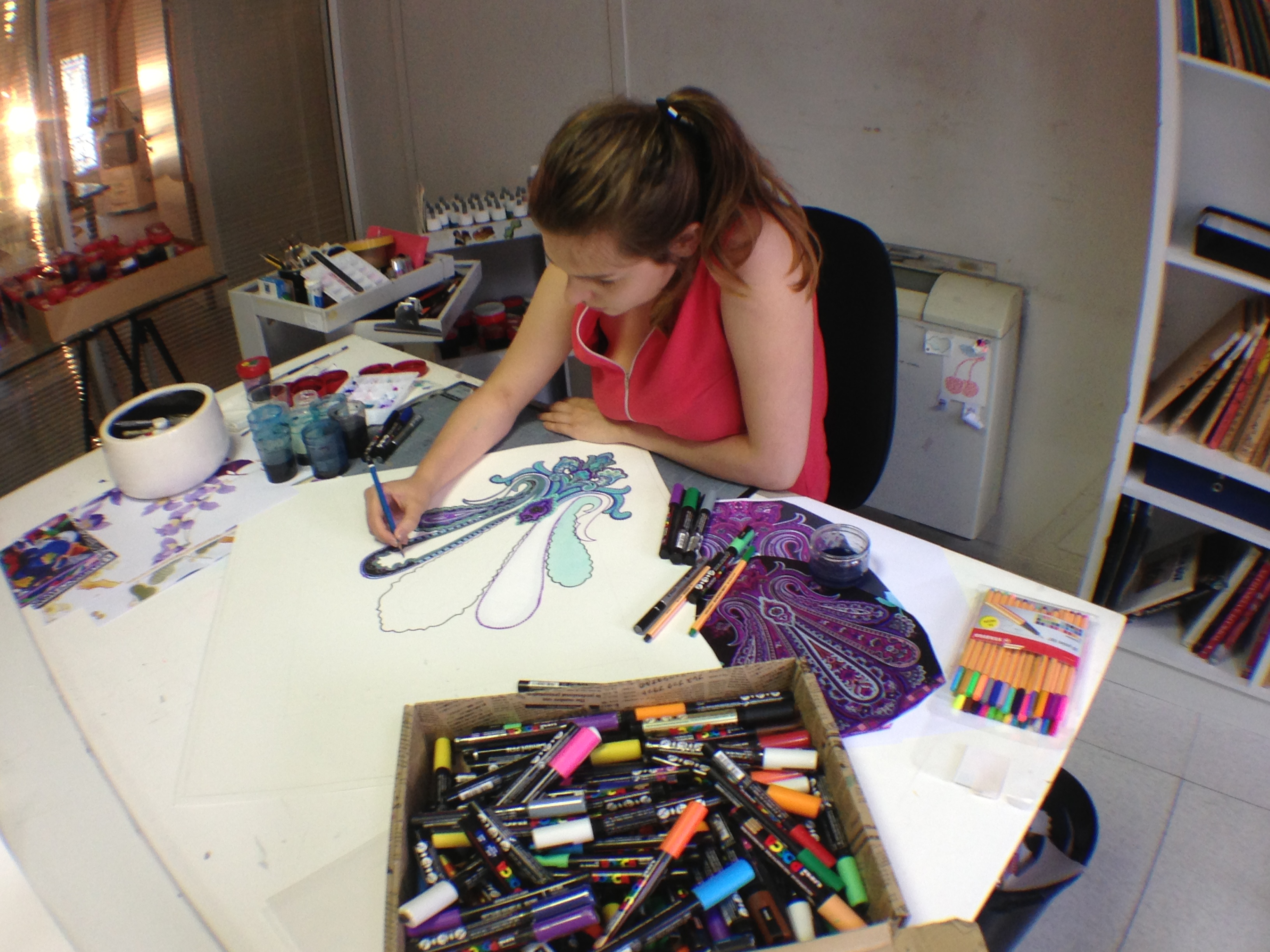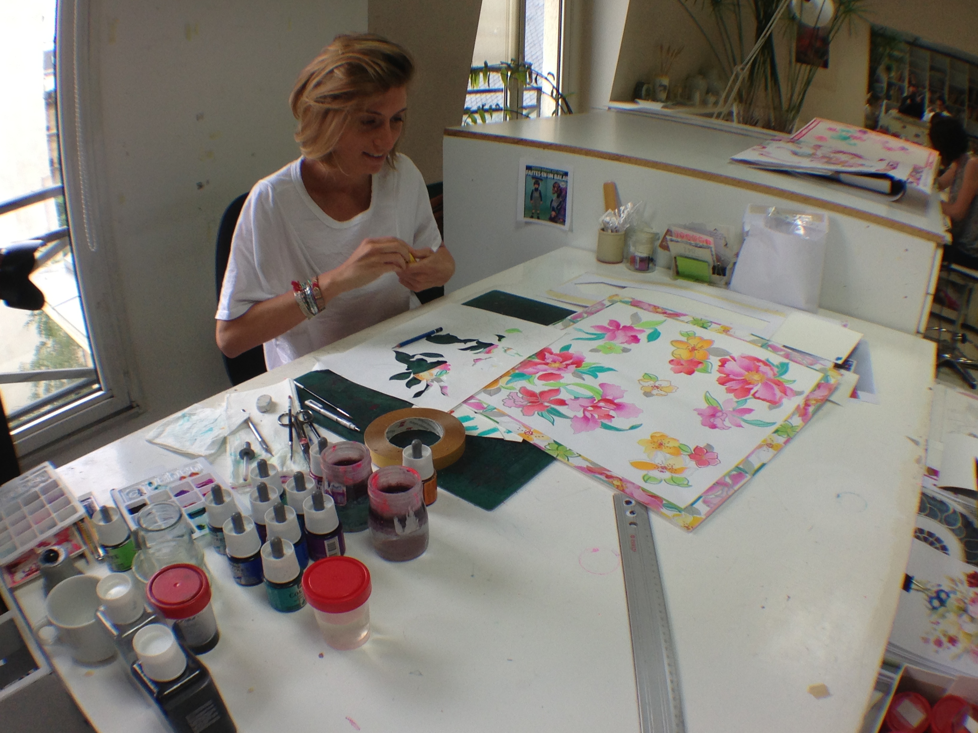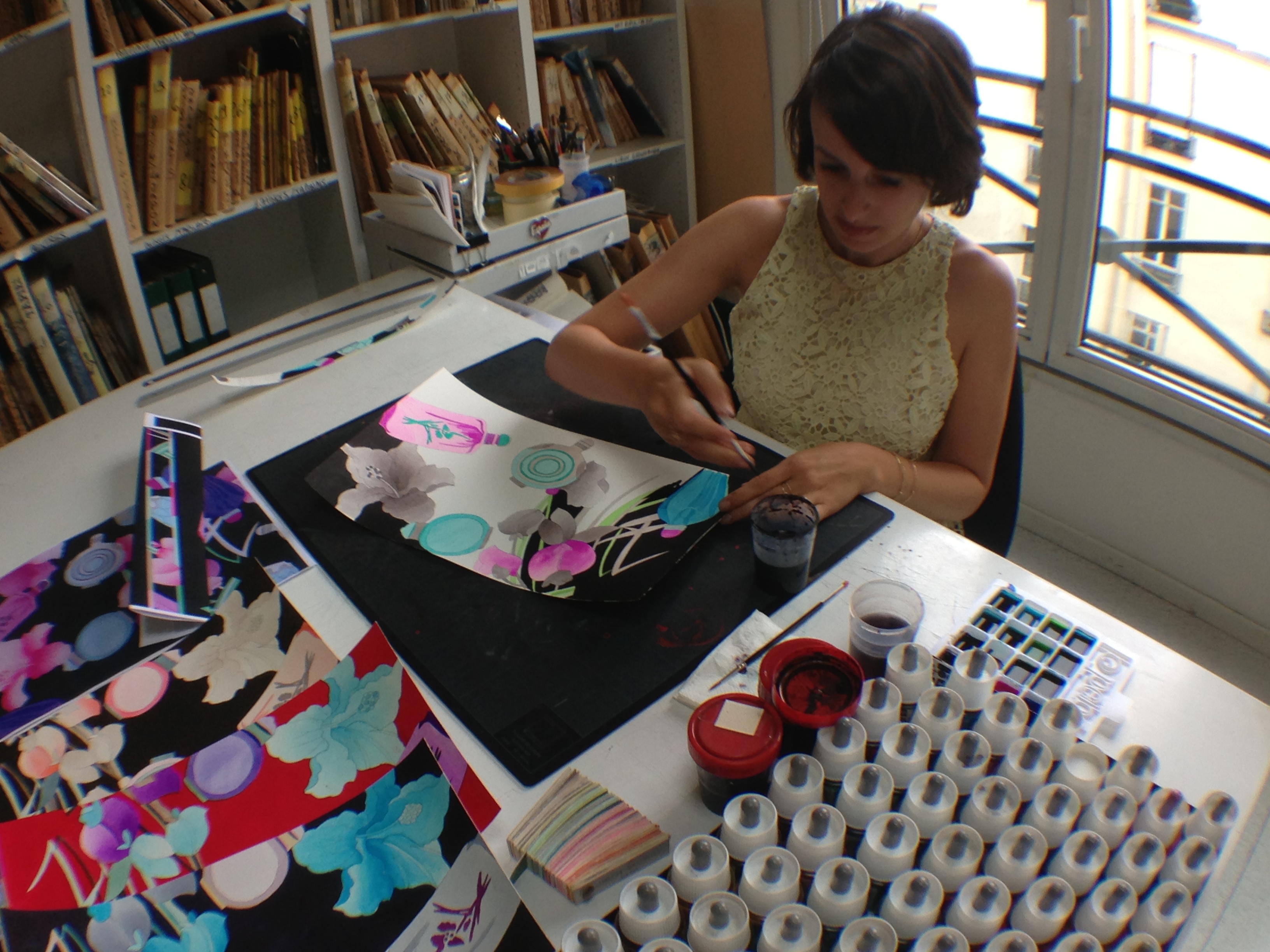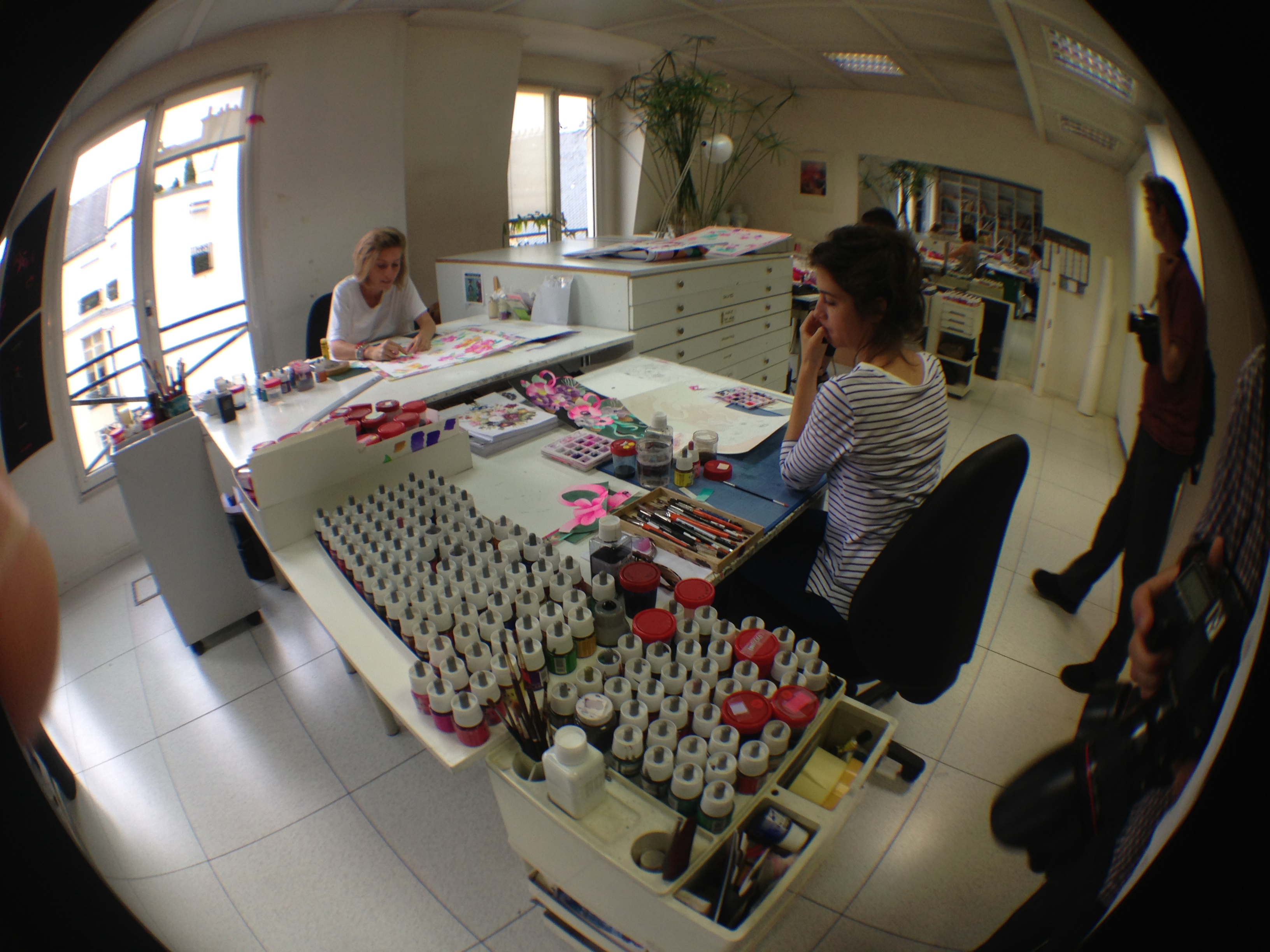 They also opened the doors of the workshops and garment studios to the Minister. Léonard is opposed to the use of computers for design, and therefore makes most of his designs and prints by hand in these workshops.