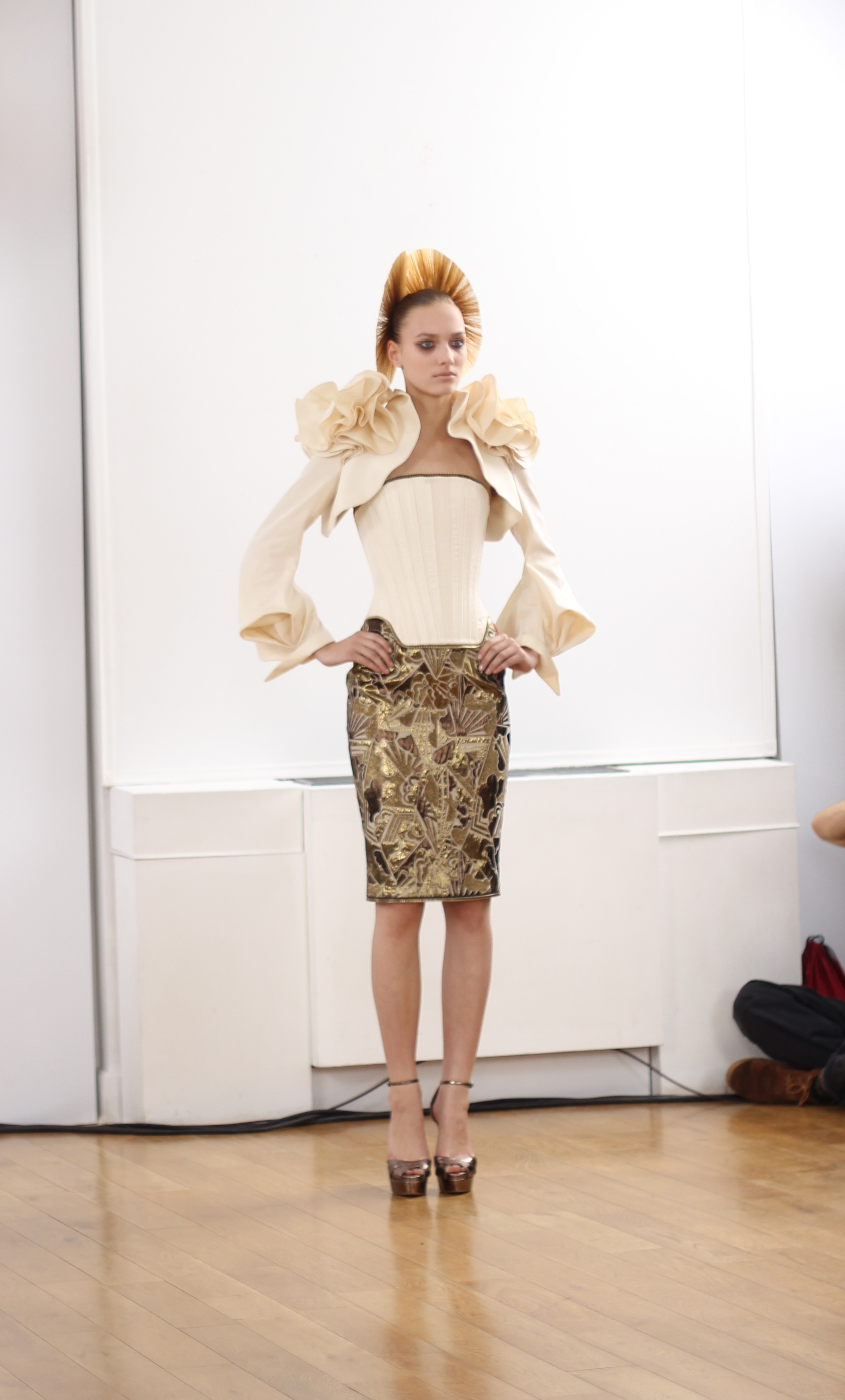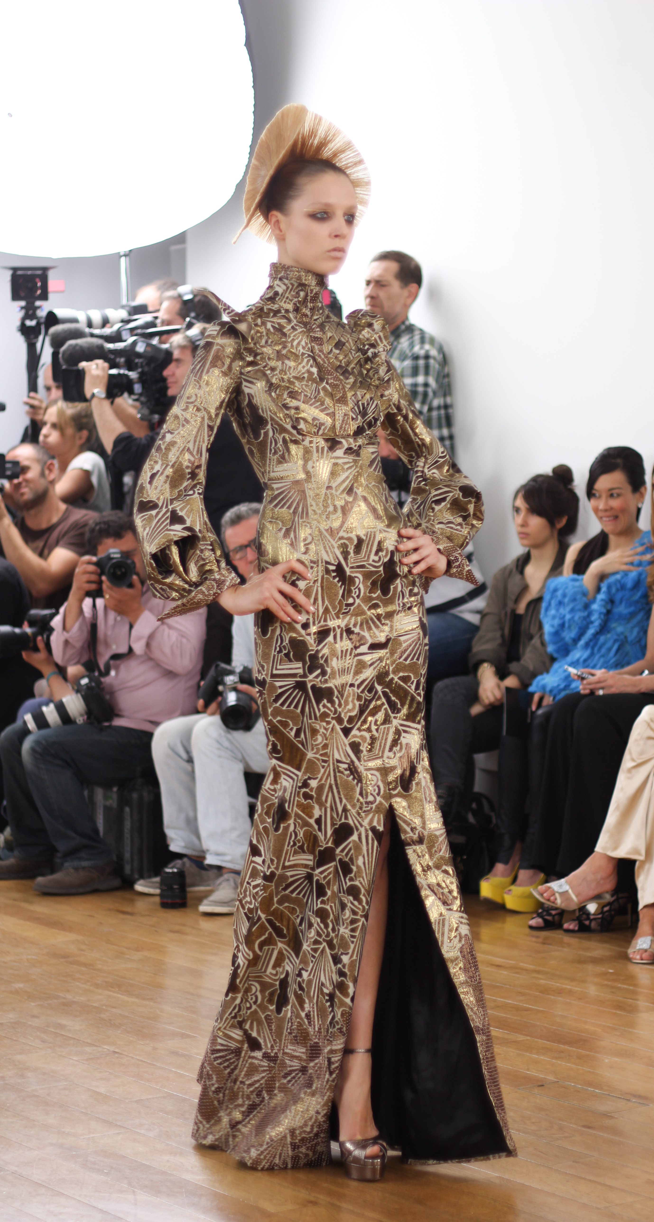 Julien Fournié recently presented his Winter 2013-2014 Couture collection. A collection called Premières Chimères that pays homage to Jules Verne and travel. Drawing inspiration from the 1930s, samurai, 19th century and tribal styles, Julien Fournié invites us on a veritable voyage. Silhouettes are close to the body, in shades of gold, cream and ivory. A powerful collection for women who embrace their strength and rediscovered femininity.