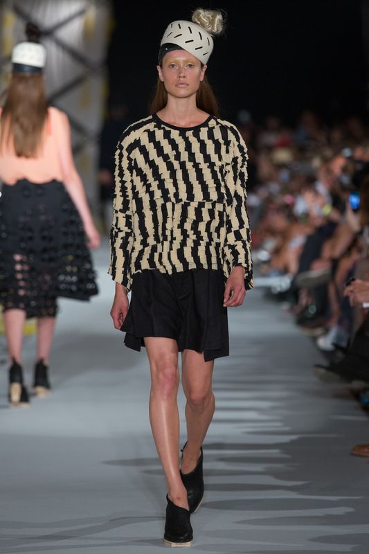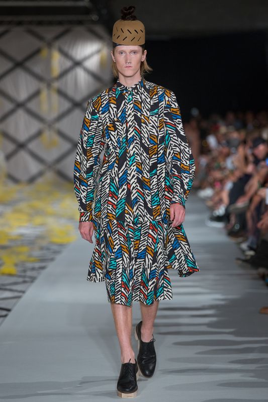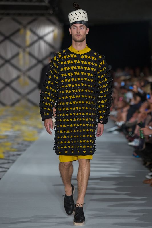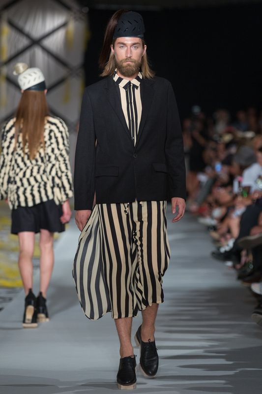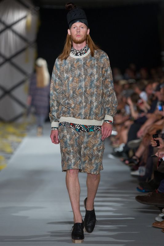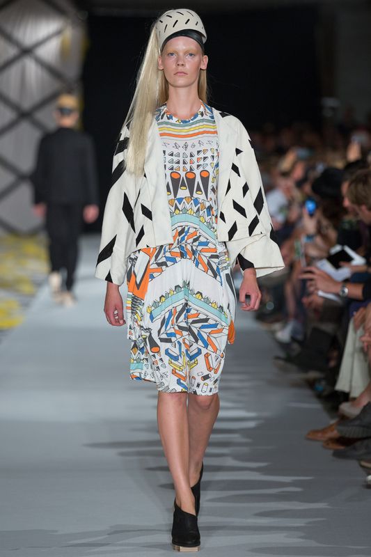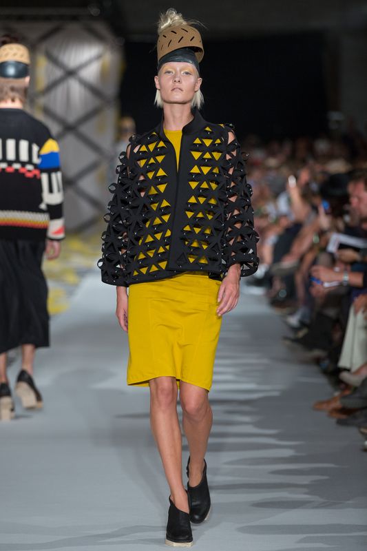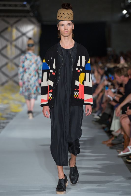 For this autumn-winter 2013/2014 season, Henrik Vibskov presented his new collection at Copenhagen Fashion Week. A collection that takes us into a world inspired by visual disorders and dysfunctions. Once again, strong graphic prints have been highlighted: Indian cotton with hand-printed stitches, large knitted patterns , magnified by herringbone on neoprene and linen, as well as patchworks of materials and colors that make their appearance in beautifully beautifully dysfunctional arrangements. From white beigeblack, shades of blue, mustard yellow hints of green and reds lightcamel… The s uperchery for this autumn-winter collection a source of inspiration for Henrik Vibskov. Henrik Vibskov.