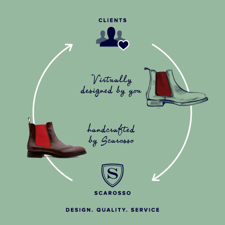 But the innovation doesn’t stop there. Scarosso offers the world a truly unique concept: the personalization of hand-made luxury shoes, in a virtual workshop. The relationship the brand maintains with its Italian production workshops enables it to offer you a fully personalized, made-to-measure service wherever you are in the world, bringing you closer to Italian know-how and including you in the process of creating your shoes.