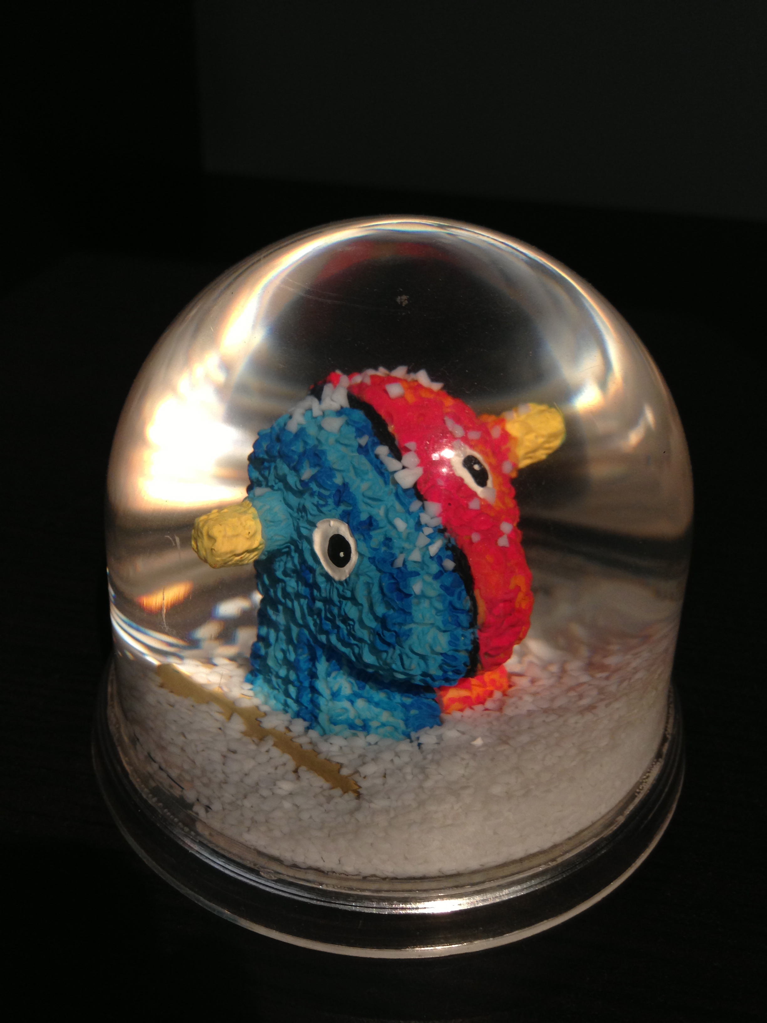 Also new, Kimiko modernizes colored glass in Murano to create “imageless” mirrors, blowing out her words and giving shape to the molding of her own skull, like so many modern vanities, where the dot and the comma hide identity…
