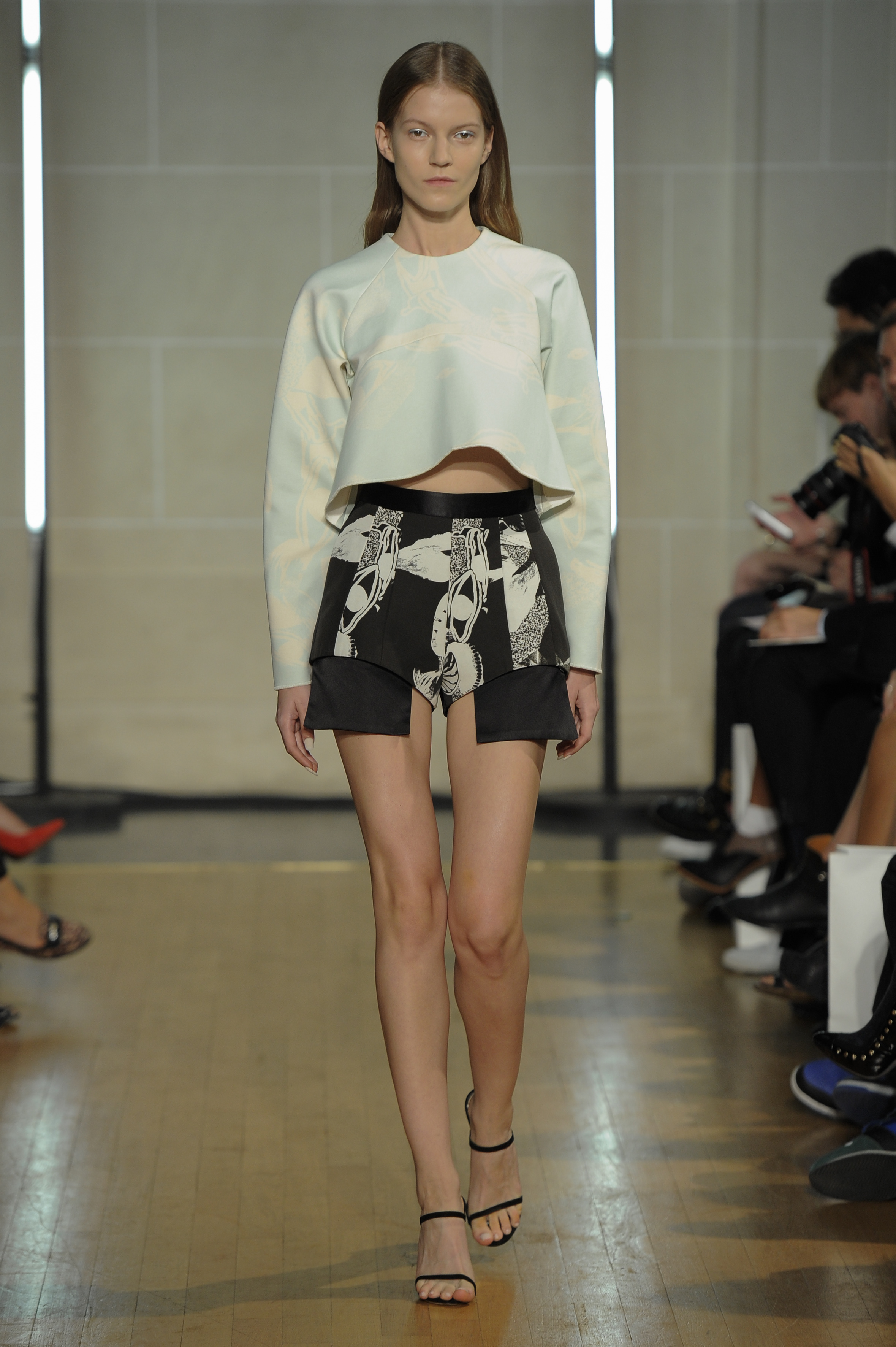 A Paris premiere for the designer, who presented her Spring/Summer 2014 collection at Fashion Week last week. A collection of dynamic, sophisticated creations, inspired by the world of interior architecture and 70s collages. Noble textures like light silk organza mingle with striped gauze, grained lamé, frothy satin and sequins on hand-sewn fishnet. Black and white predominate, joined by burgundy, garnet, pale flesh and metallic touches.