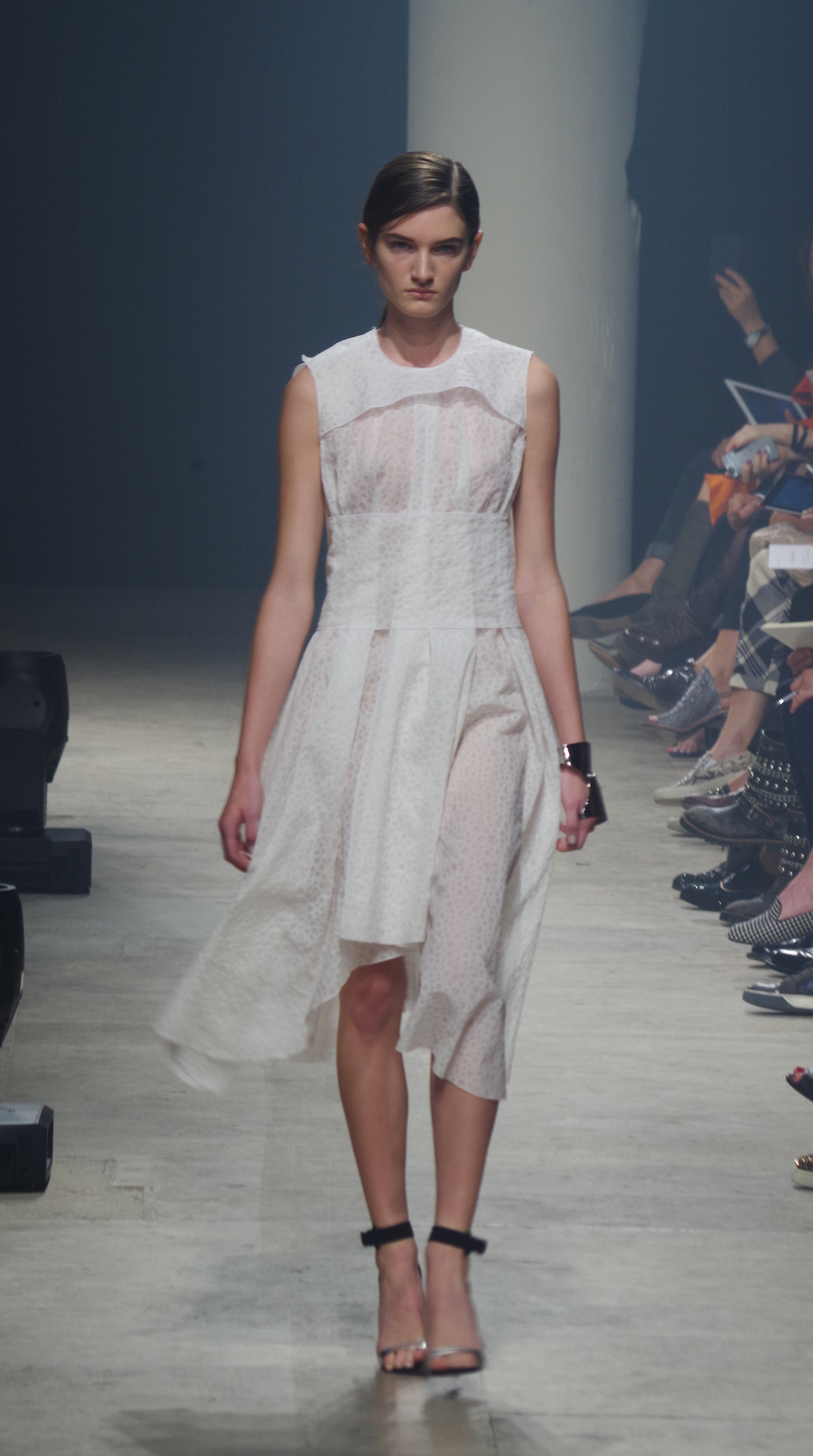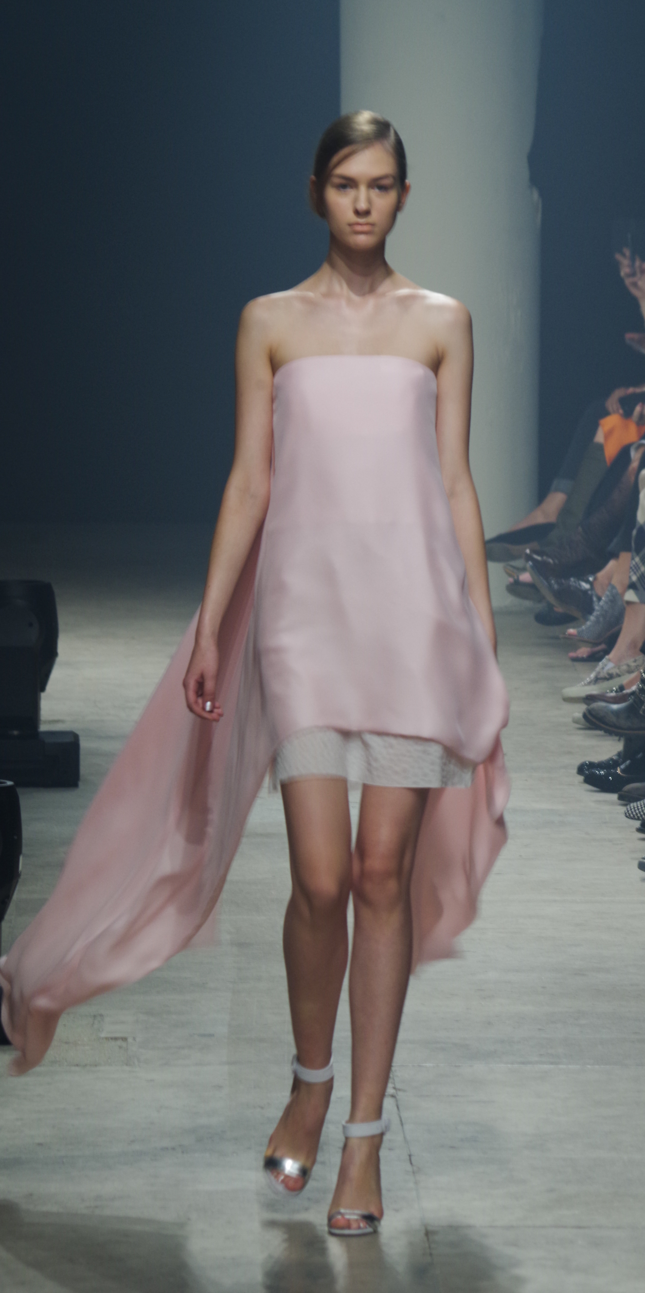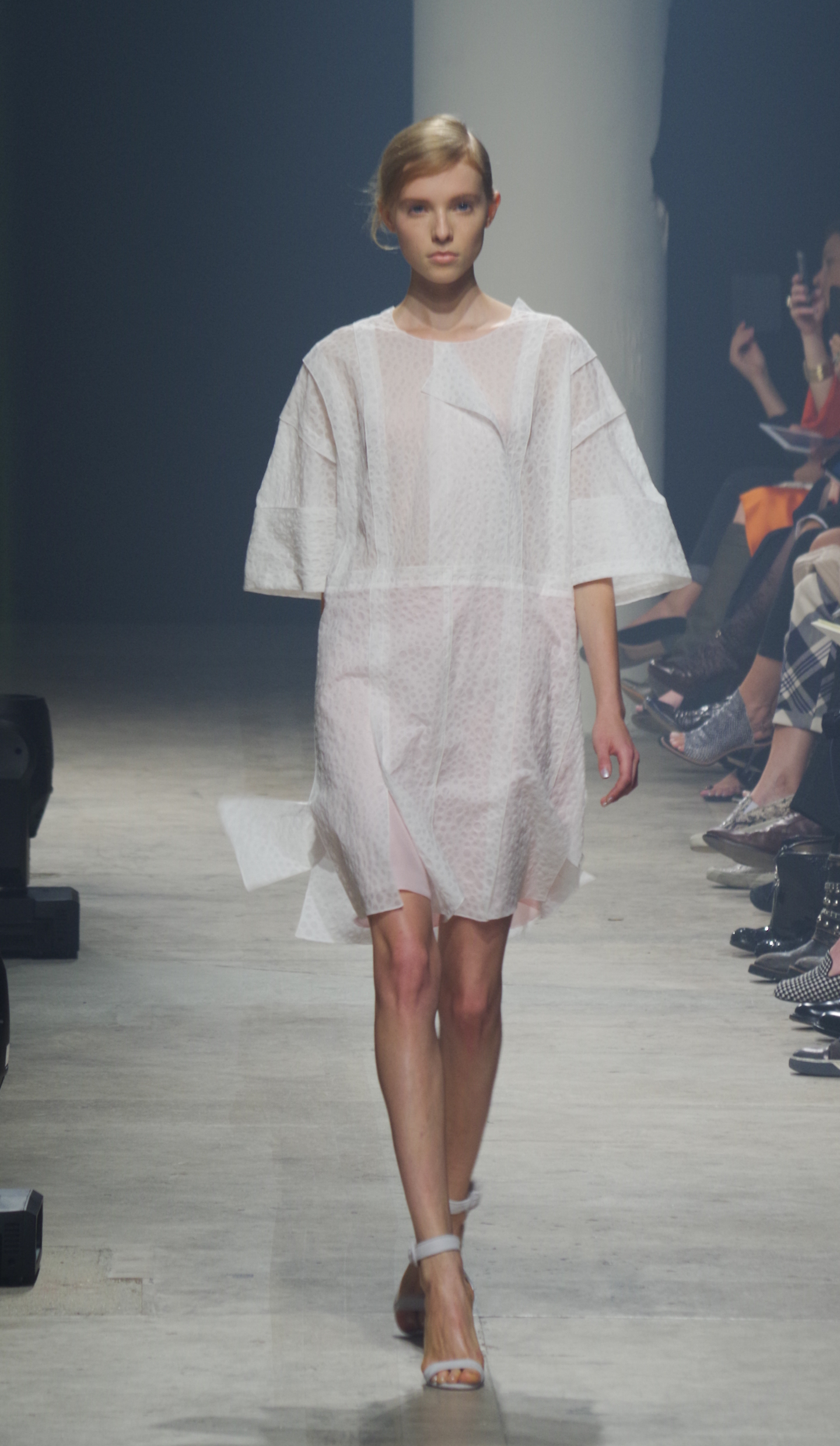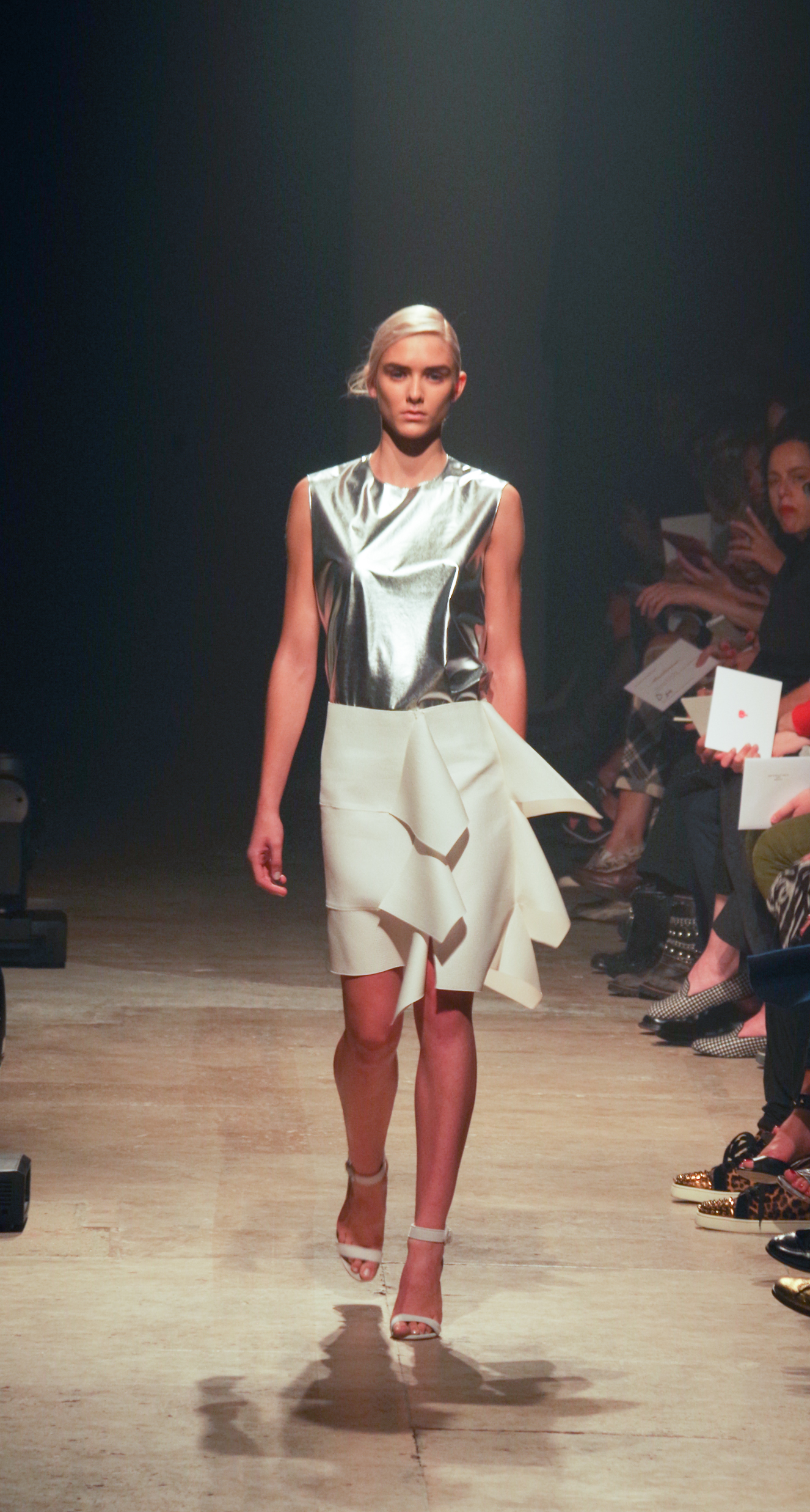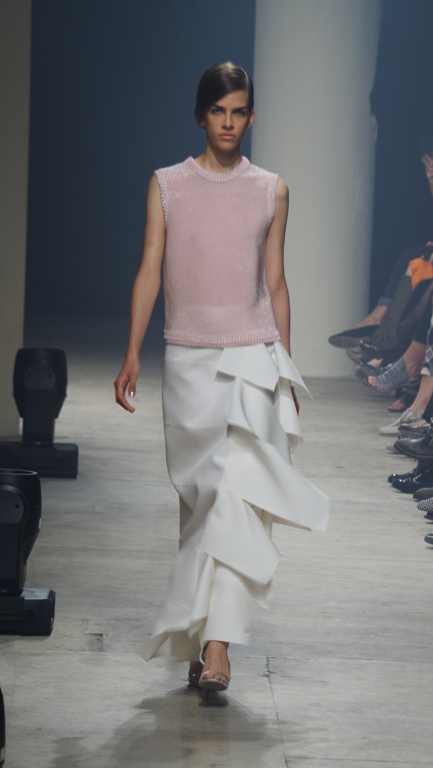 Maison Rabih Kayrouz presents a luminous collection for its Prêt à Porter Spring Summer 2014 collection. Playing with geometric shapes and, above all, materials, we are dazzled by these optical whites, by aluminum set against pink and black.
