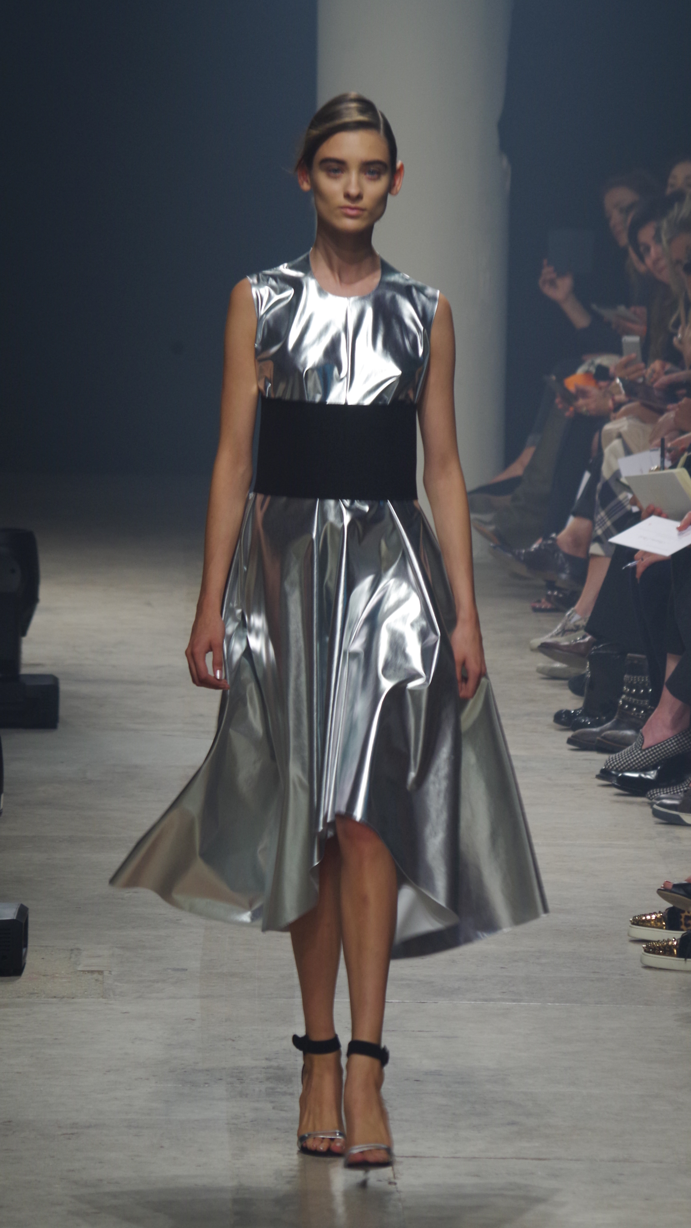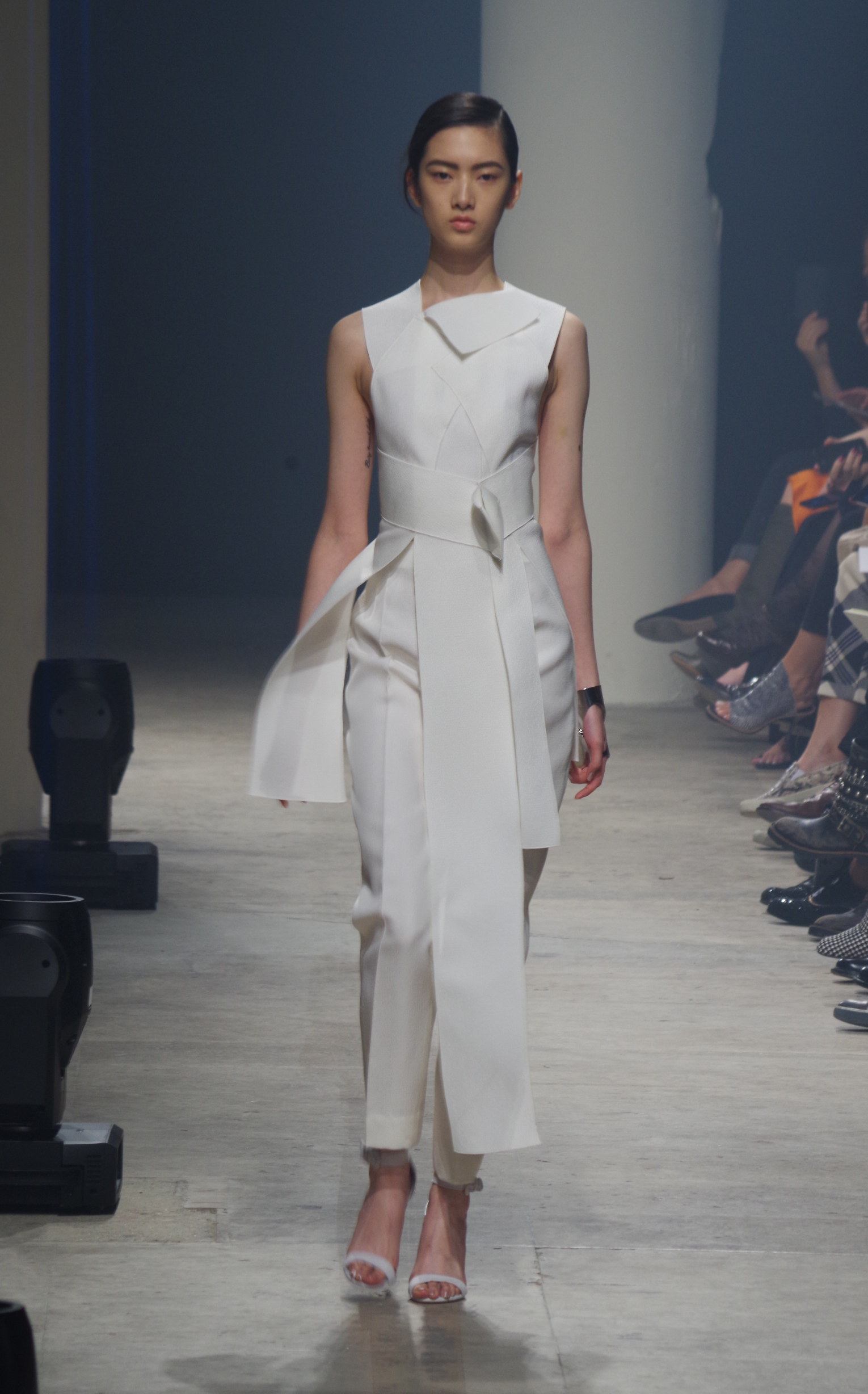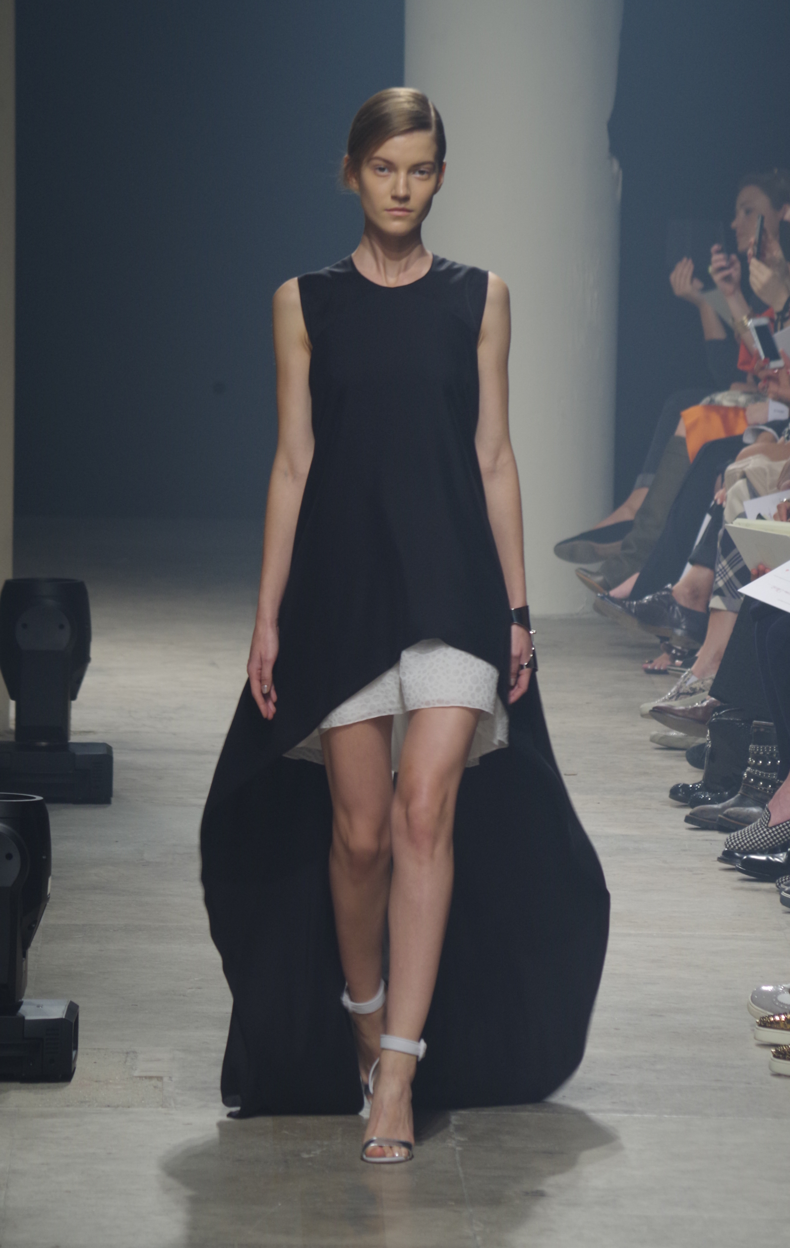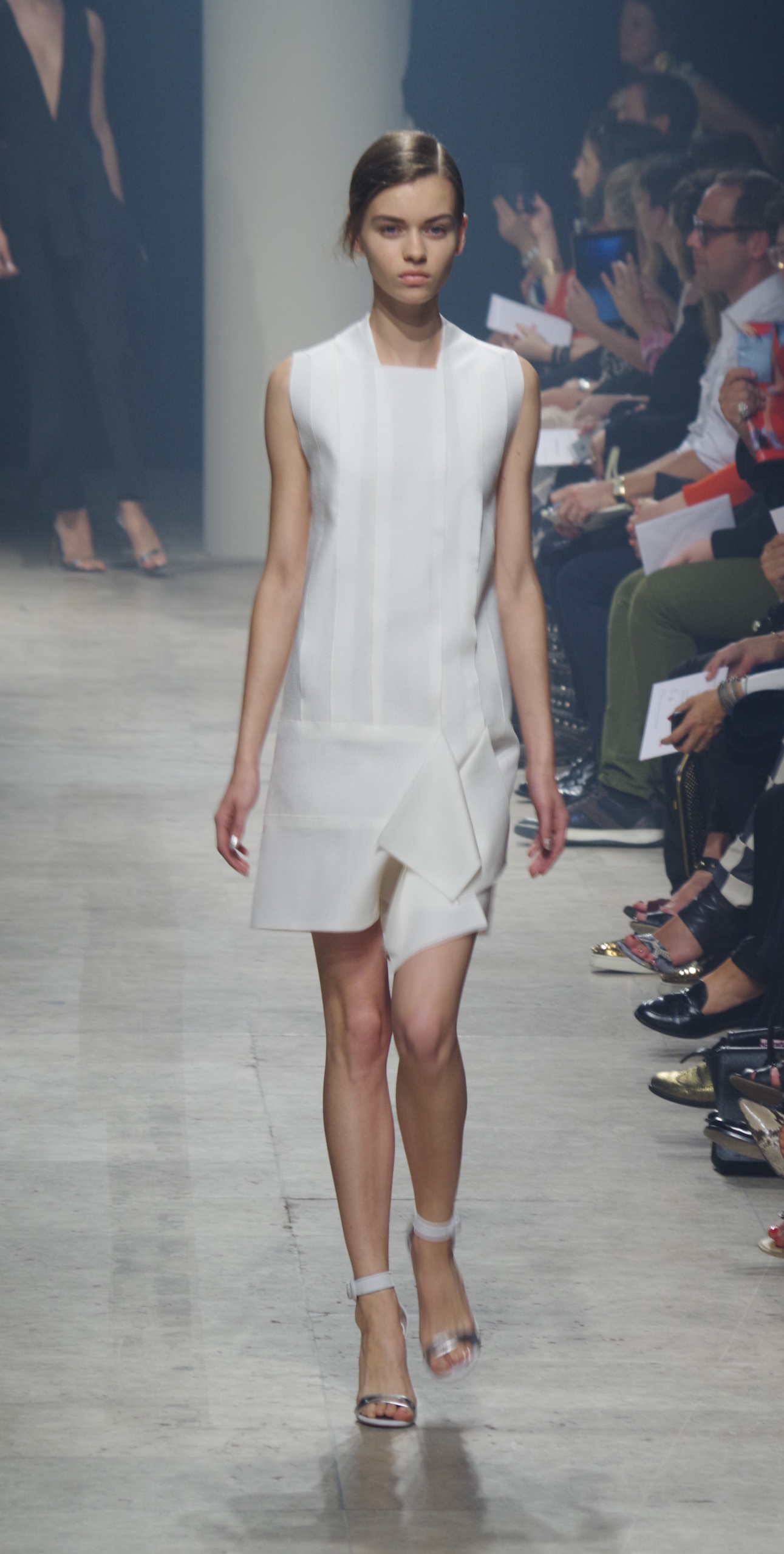 Maison Rabih Kayrouz presents a luminous collection for its Prêt à Porter Spring Summer 2014 collection. Playing with geometric shapes and, above all, materials, we are dazzled by these optical whites, by aluminum set against pink and black.