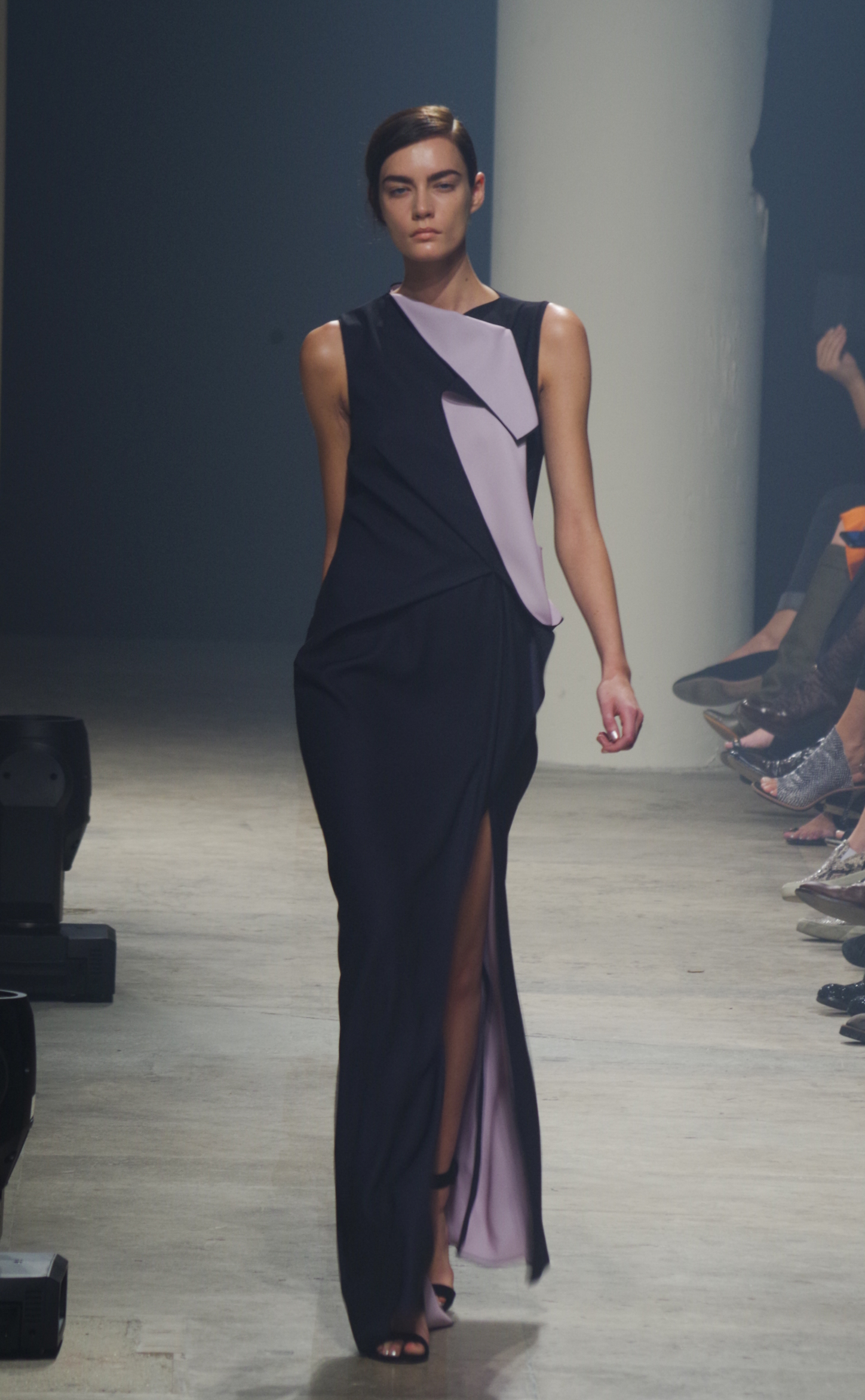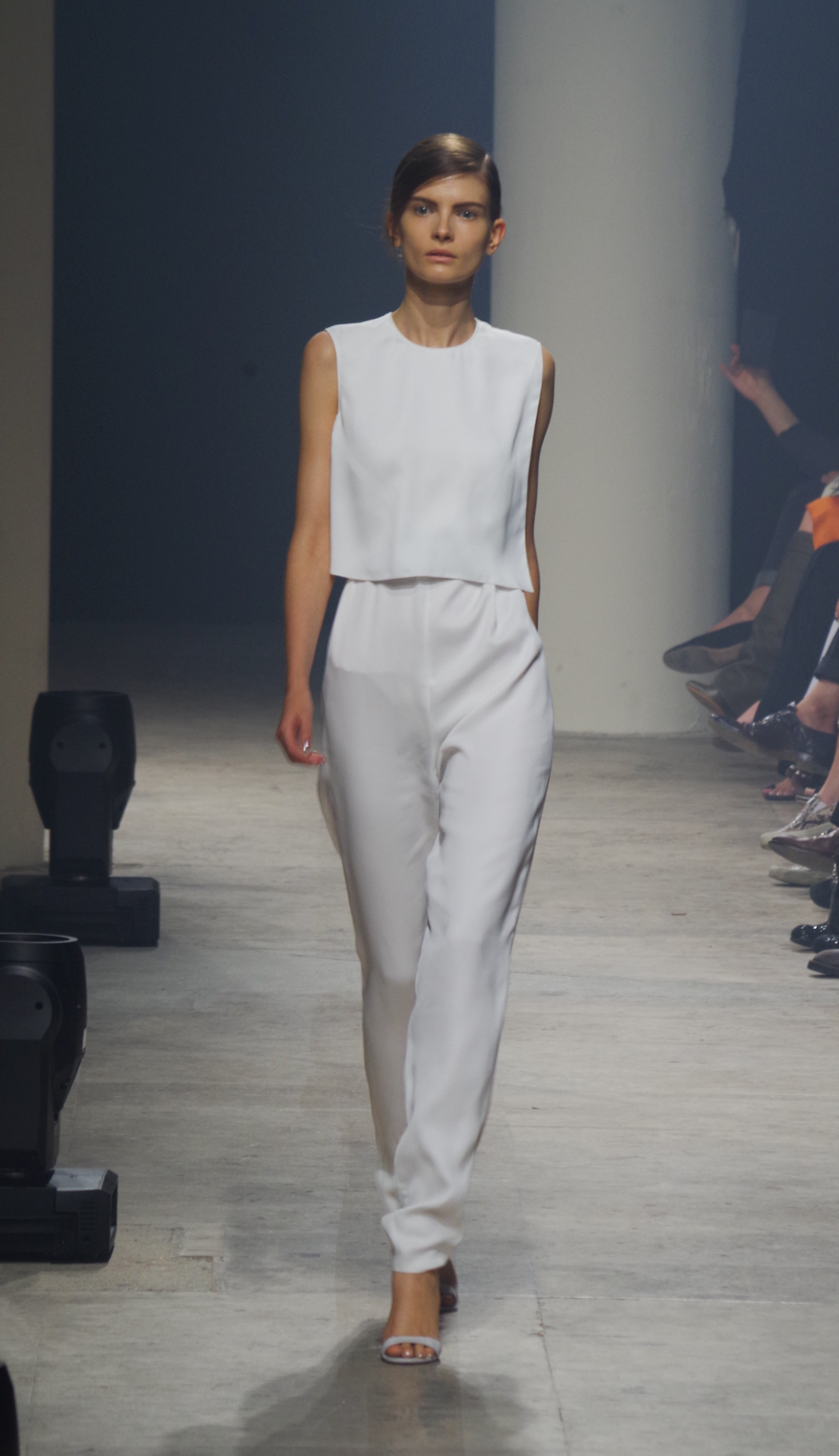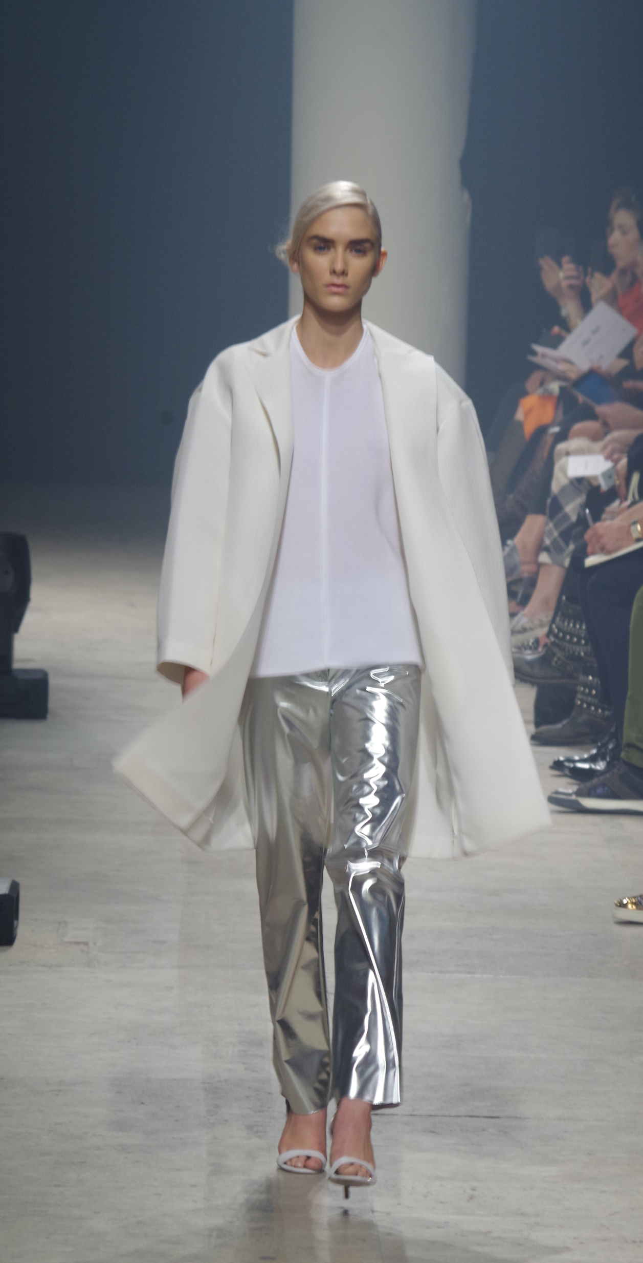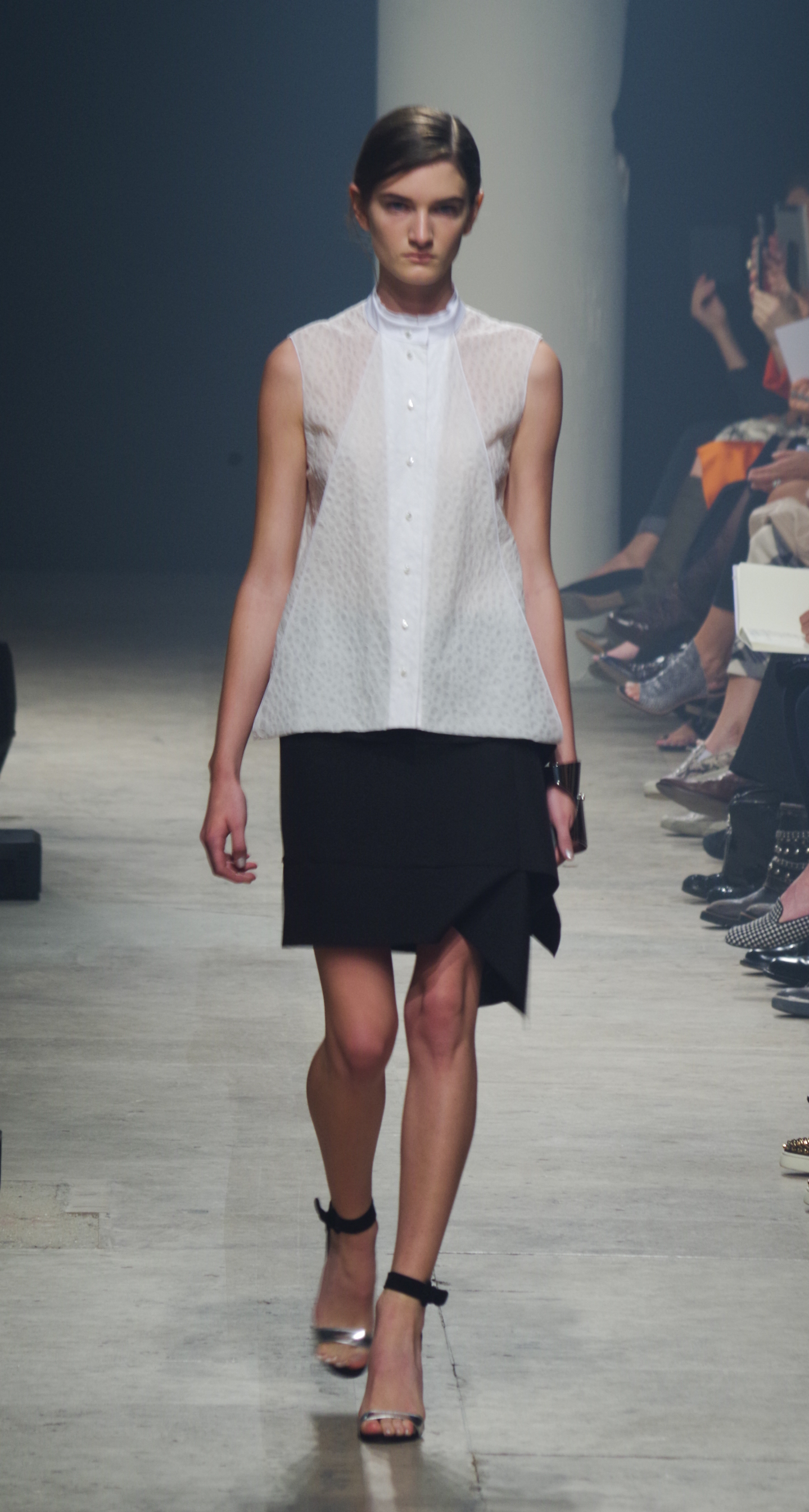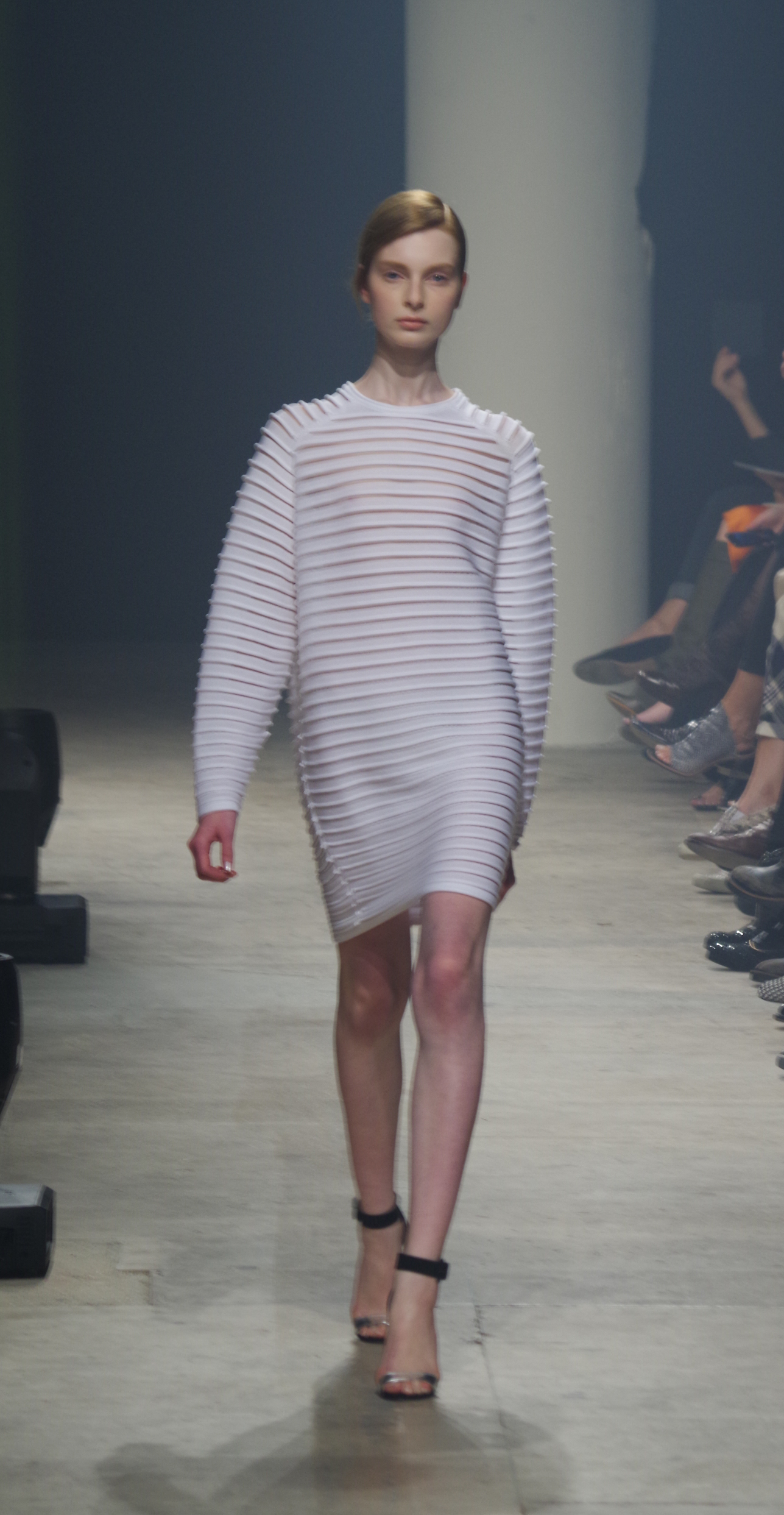 Maison Rabih Kayrouz presents a luminous collection for its Prêt à Porter Spring Summer 2014 collection. Playing with geometric shapes and, above all, materials, we are dazzled by these optical whites, by aluminum set against pink and black.