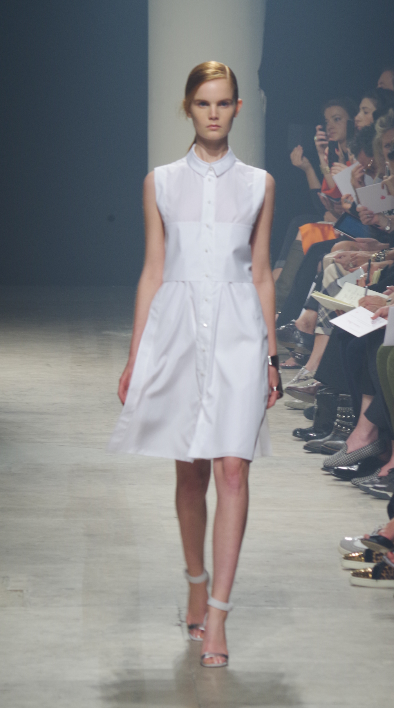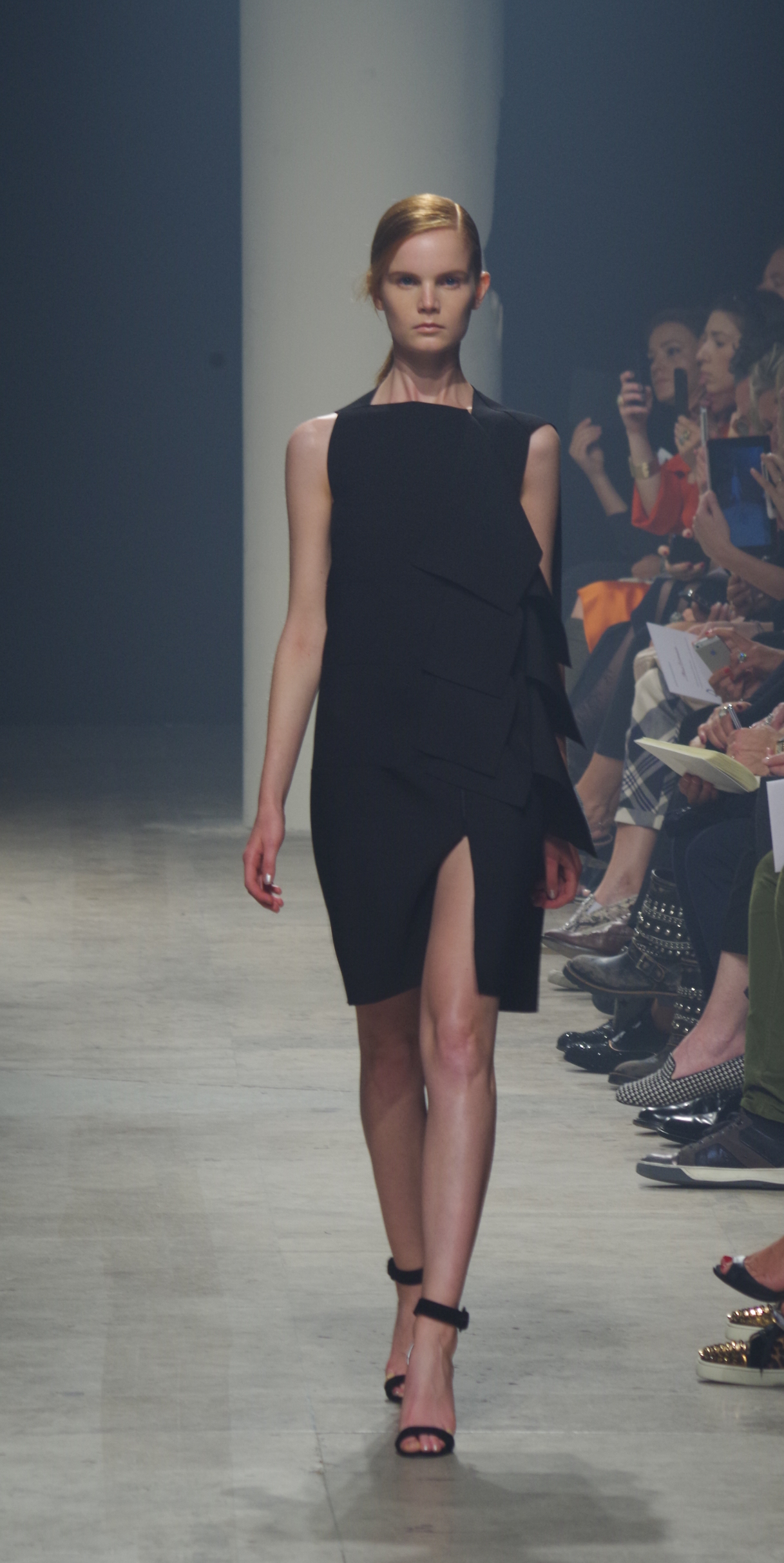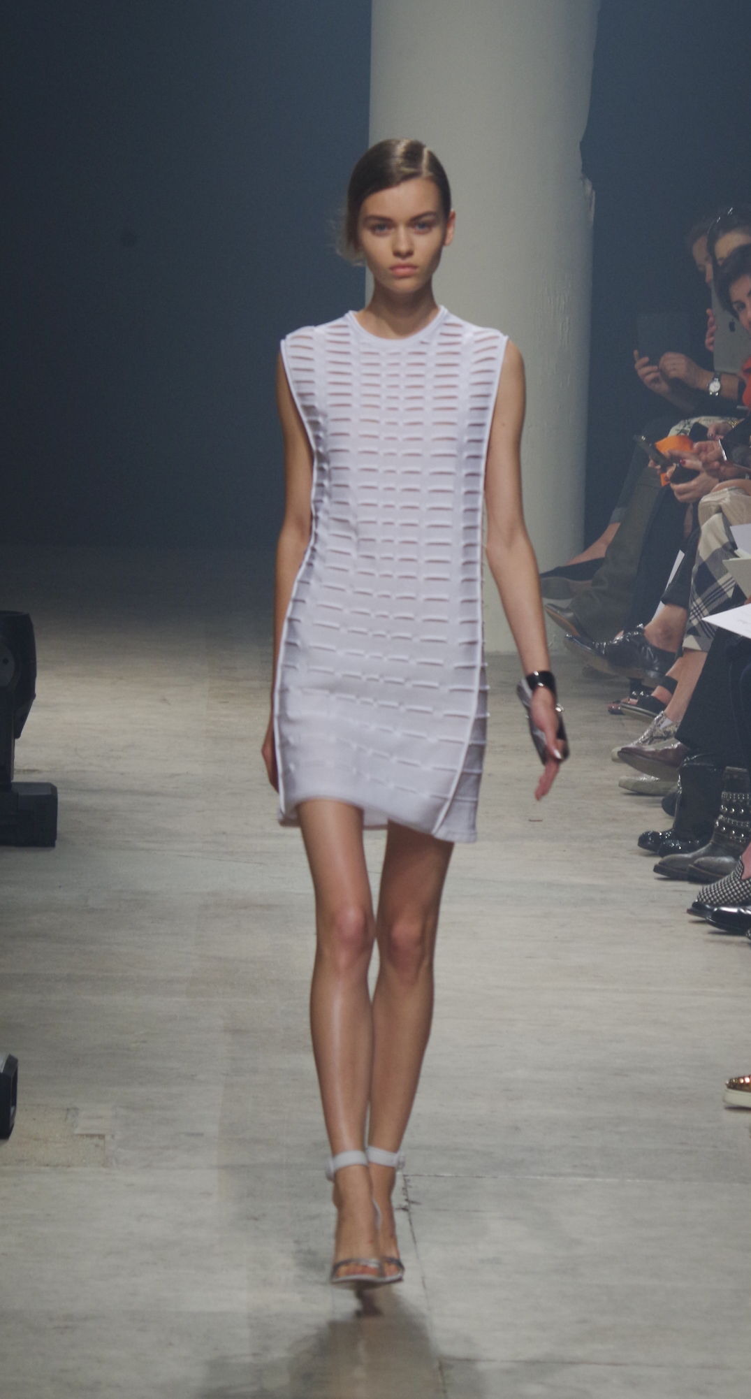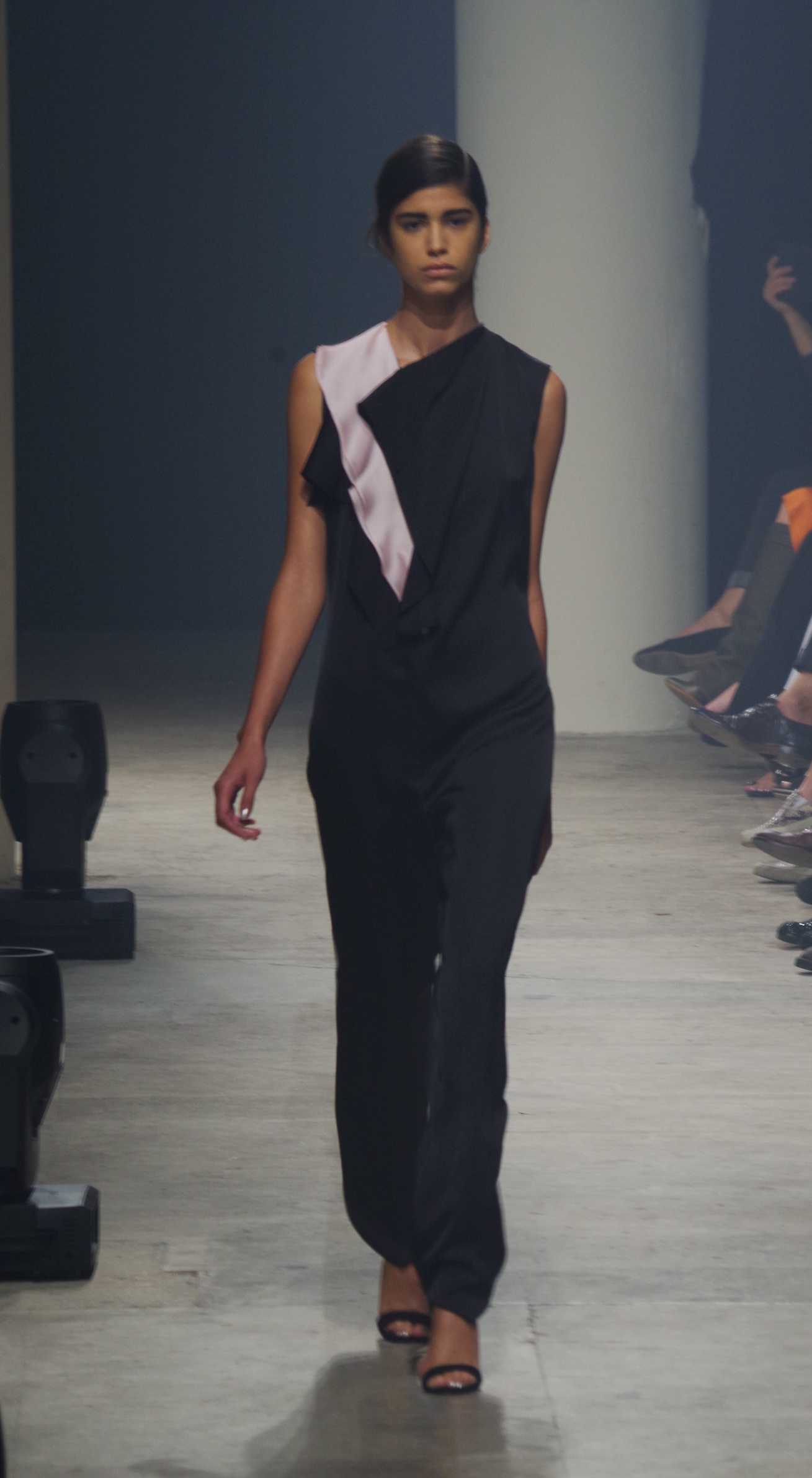 Maison Rabih Kayrouz presents a luminous collection for its Prêt à Porter Spring Summer 2014 collection. Playing with geometric shapes and, above all, materials, we are dazzled by these optical whites, by aluminum set against pink and black.