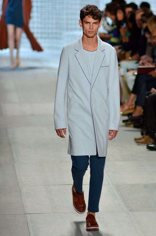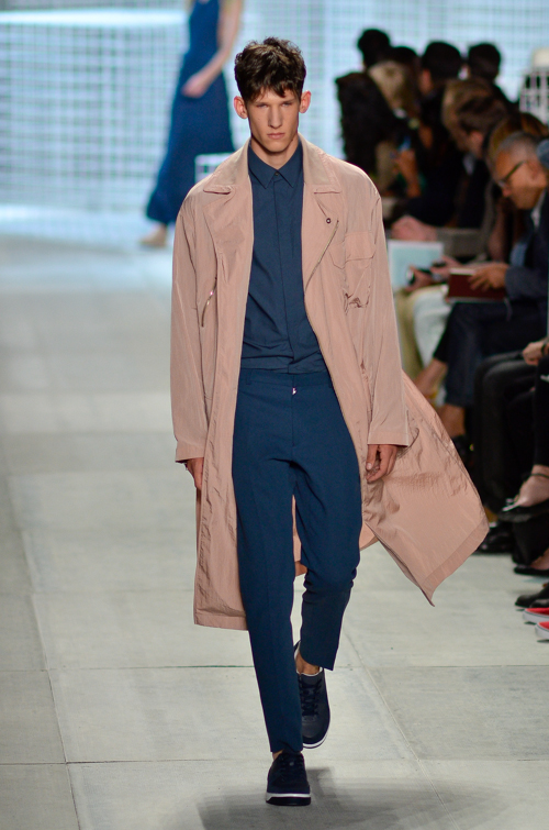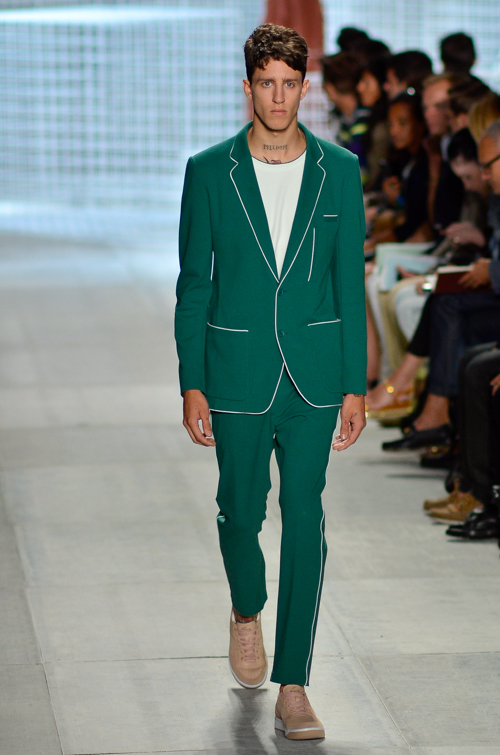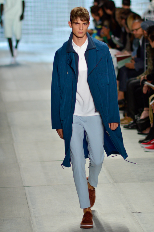 Year after year, Lacoste confirms its creative renewal. For this spring/summer 2014 season, Felipe Oliveira Baptista started with the white line, the one that delineates the tennis court or contrasts with the color on a garment. This sense of cut and line, inspired by architecture and trompe l’oeil, can be found throughout the collection, which revisits the house’s classics such as polo shirts, coats and flowing dresses with a modern twist. The spirit is lifestyle and light, magnifying sportswear.