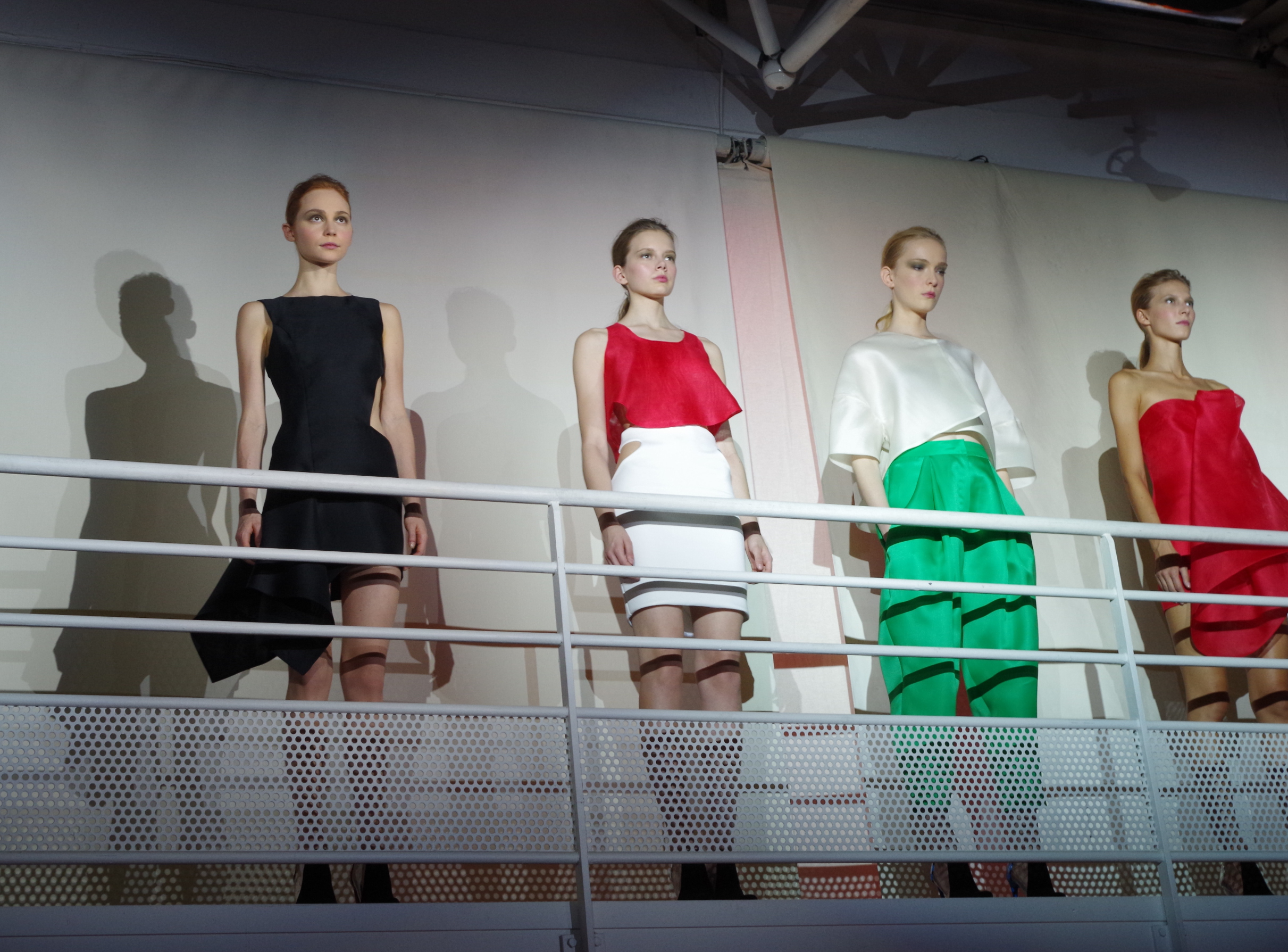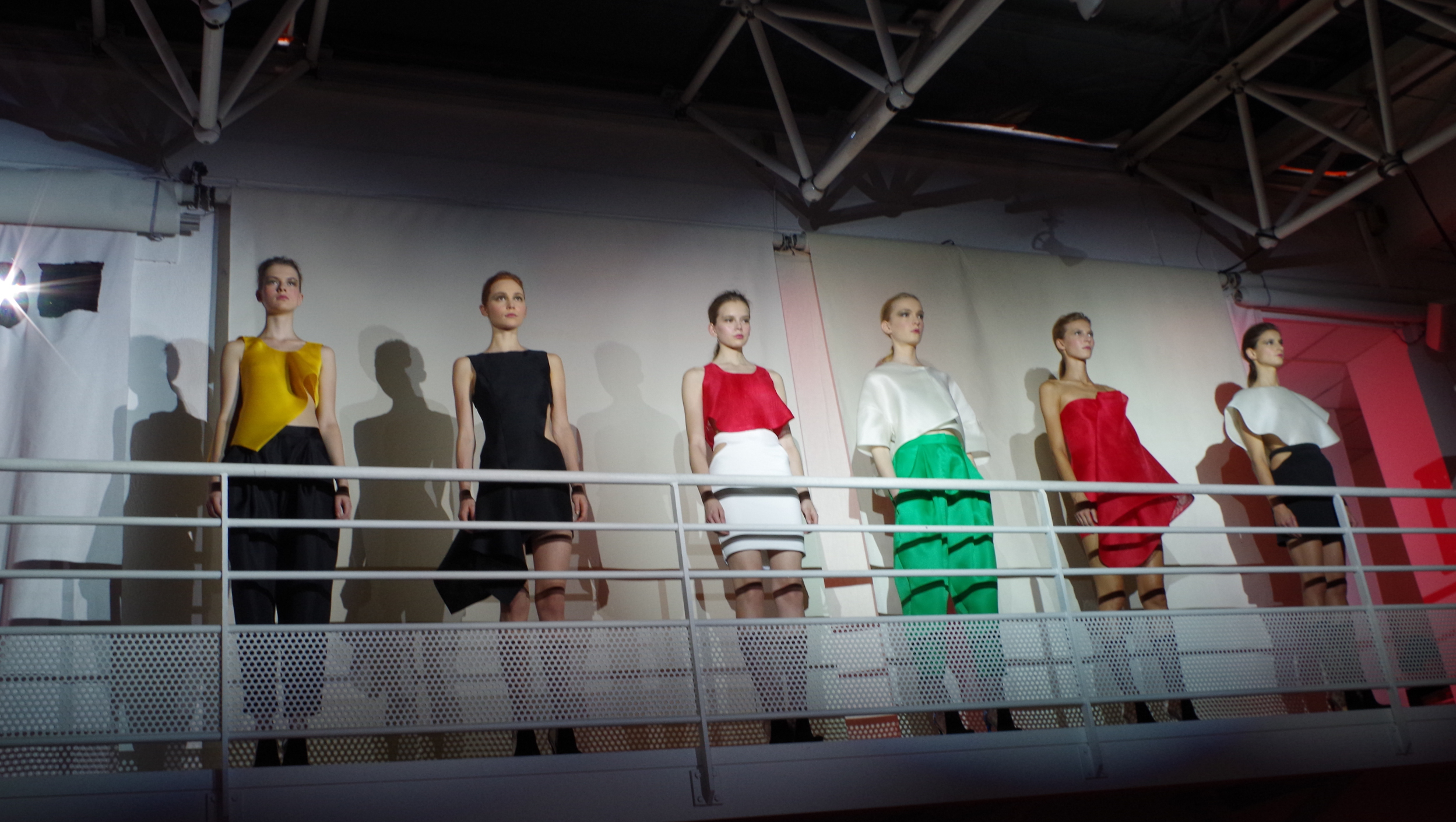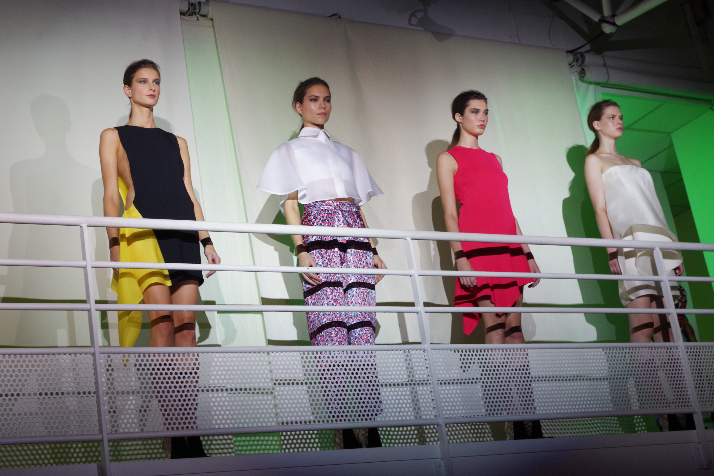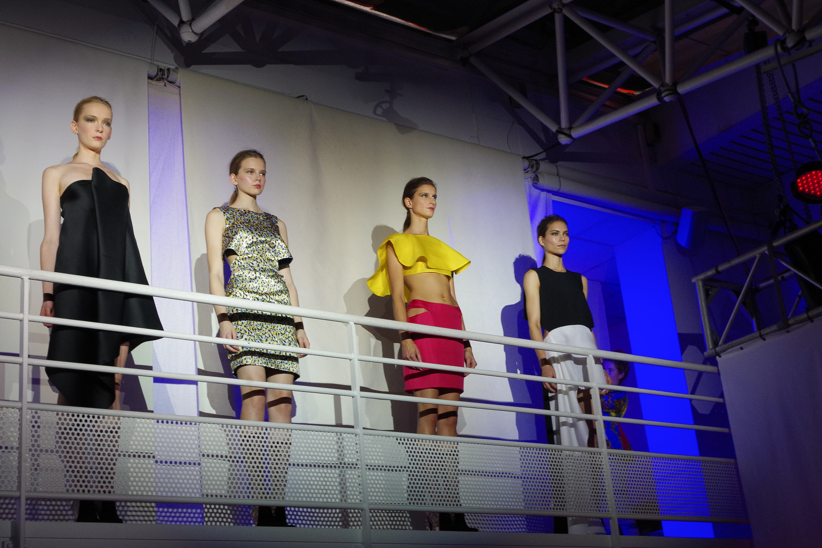 Amaya Arzuaga presented her collection in the form of an artistic performance combining audiovisual installation and catwalk shows. As for the clothes, the definitely modern and futuristic collection blends kaleidoscopic effects and origami. The colors are flashy and contrast with each other, while the materials: gazar, wild silk, neoprene and tri-acetate highlight reversible pieces and asymmetrical cuts. A modern, futuristic and sexy collection.