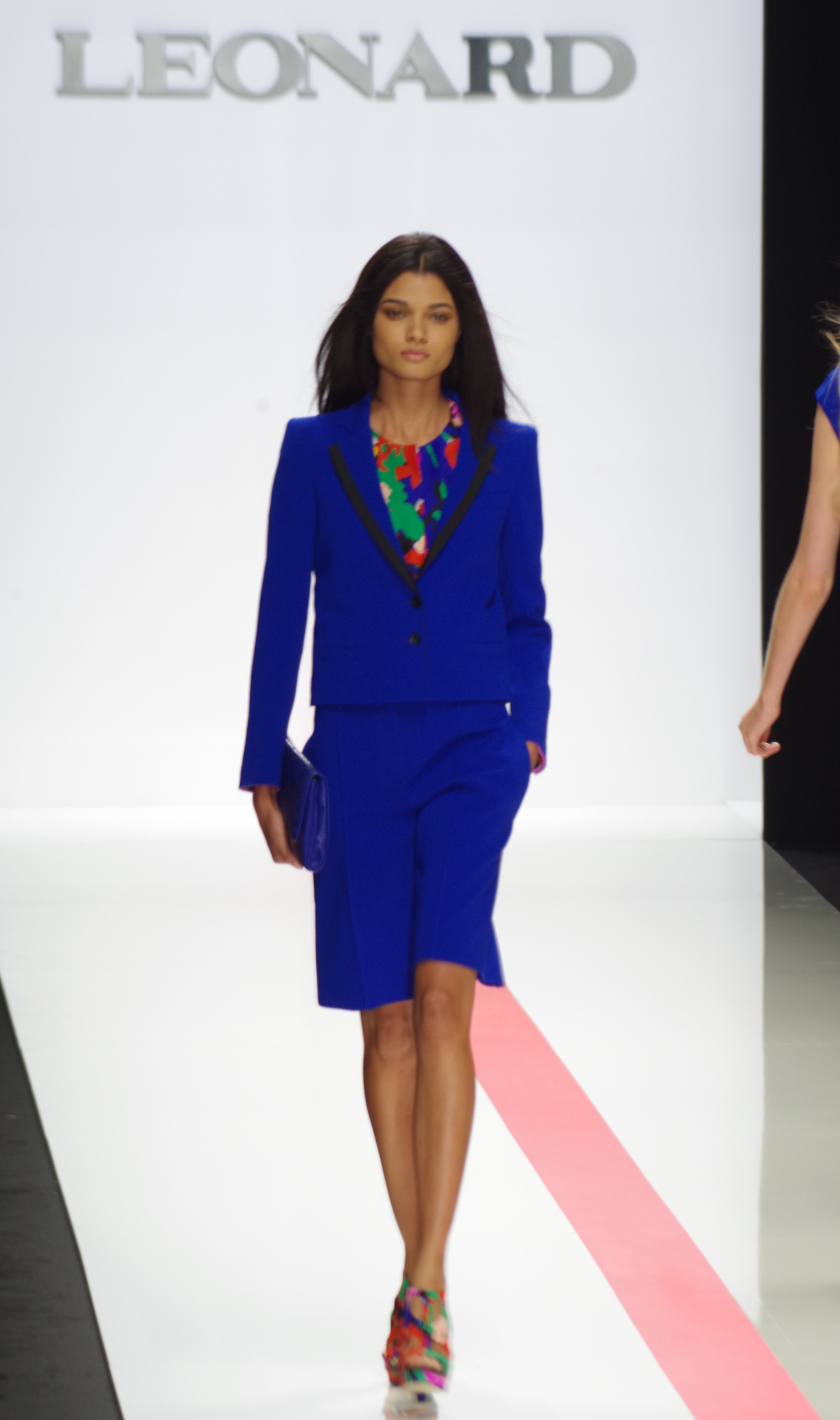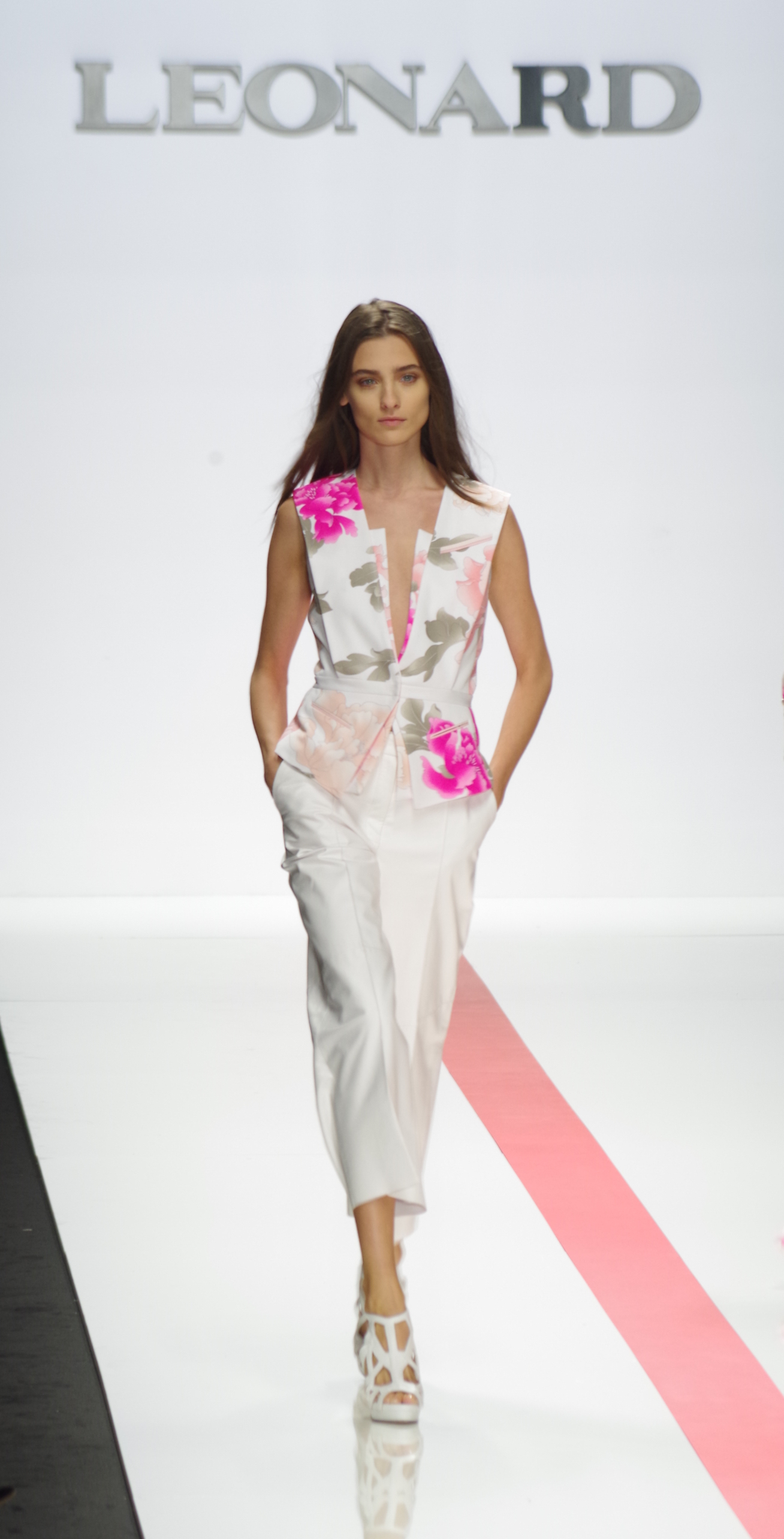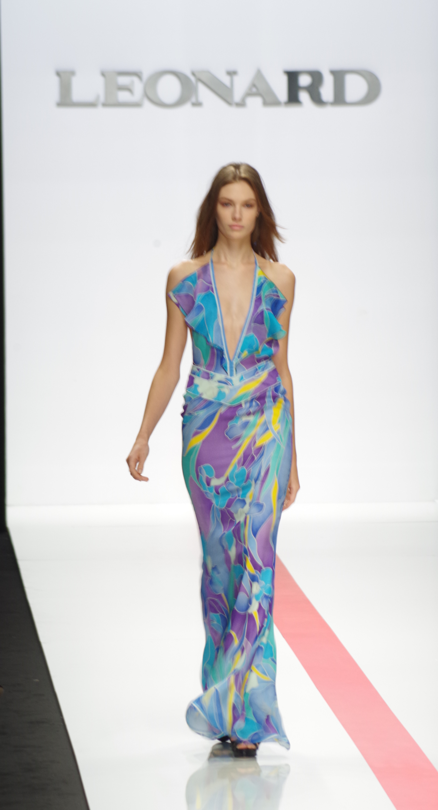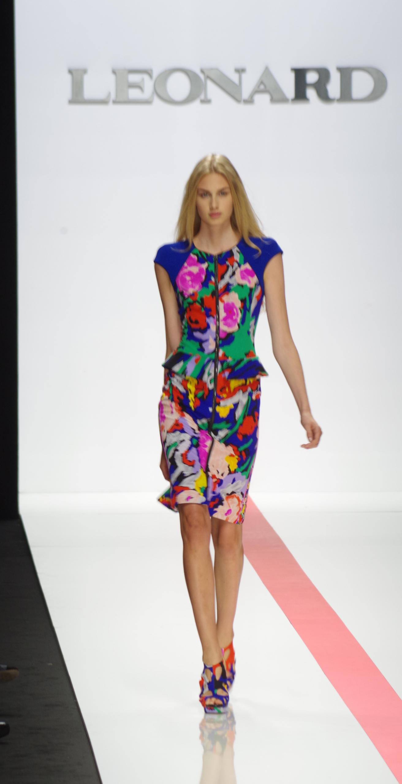 The Léonard woman of summer 2014 is sophisticated, mischievous and dynamic. She mixes elegant ease with a sportier allure. True to the house’s classics, it’s the prints that take center stage. This season’s inspiration is eighties. Urban and free, the Léonard woman combines asymmetrical skirts with a royal blue jacket and printed silk jersey, and becomes a work of art thanks to strong prints inspired by Art Nouveau and Tiffany stained glass. At night, she’s adorned in black and white with pointillist effects. It becomes sensual and feline in a tuxedo dress or bodysuit.
