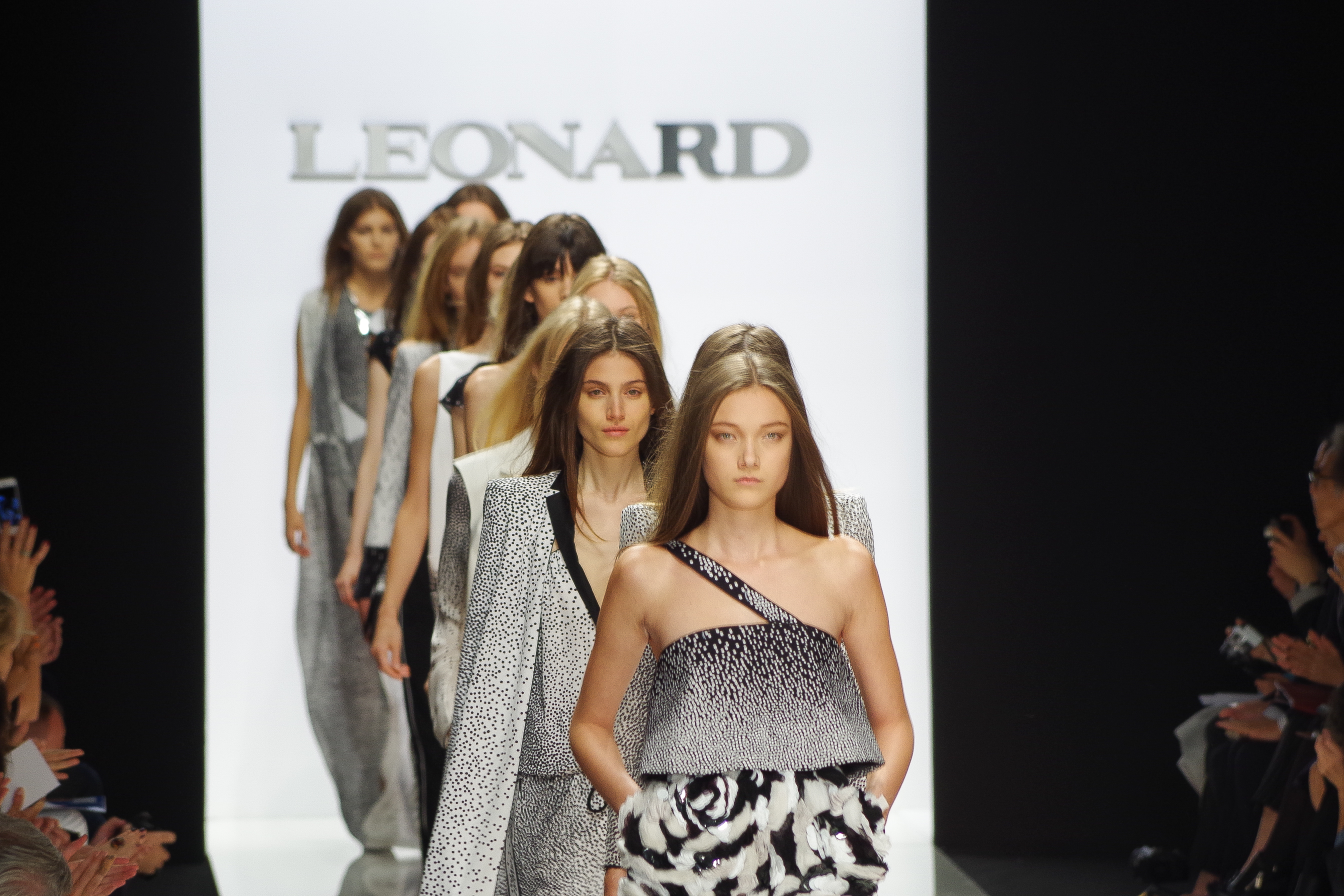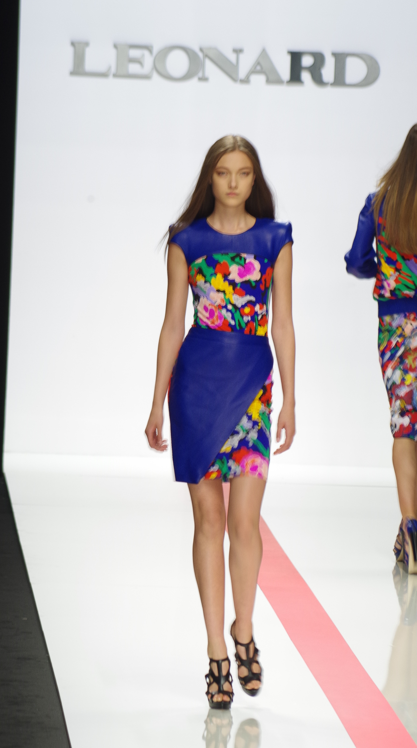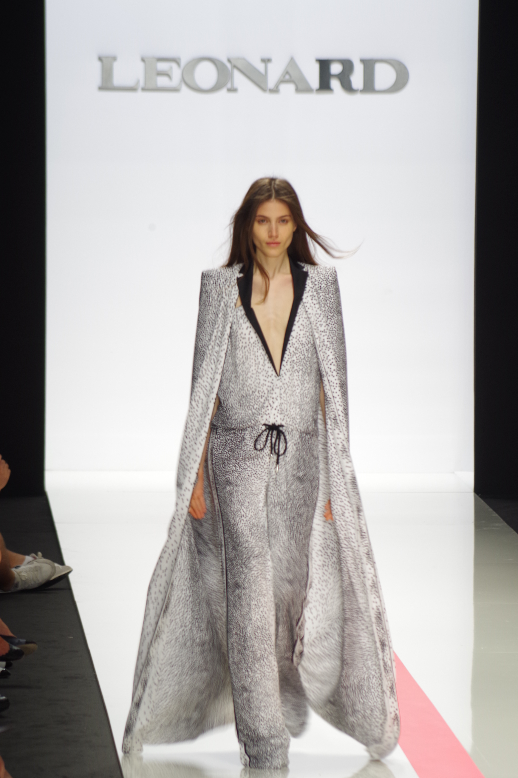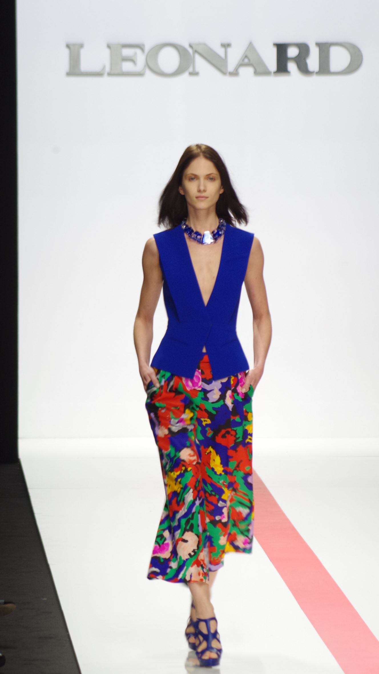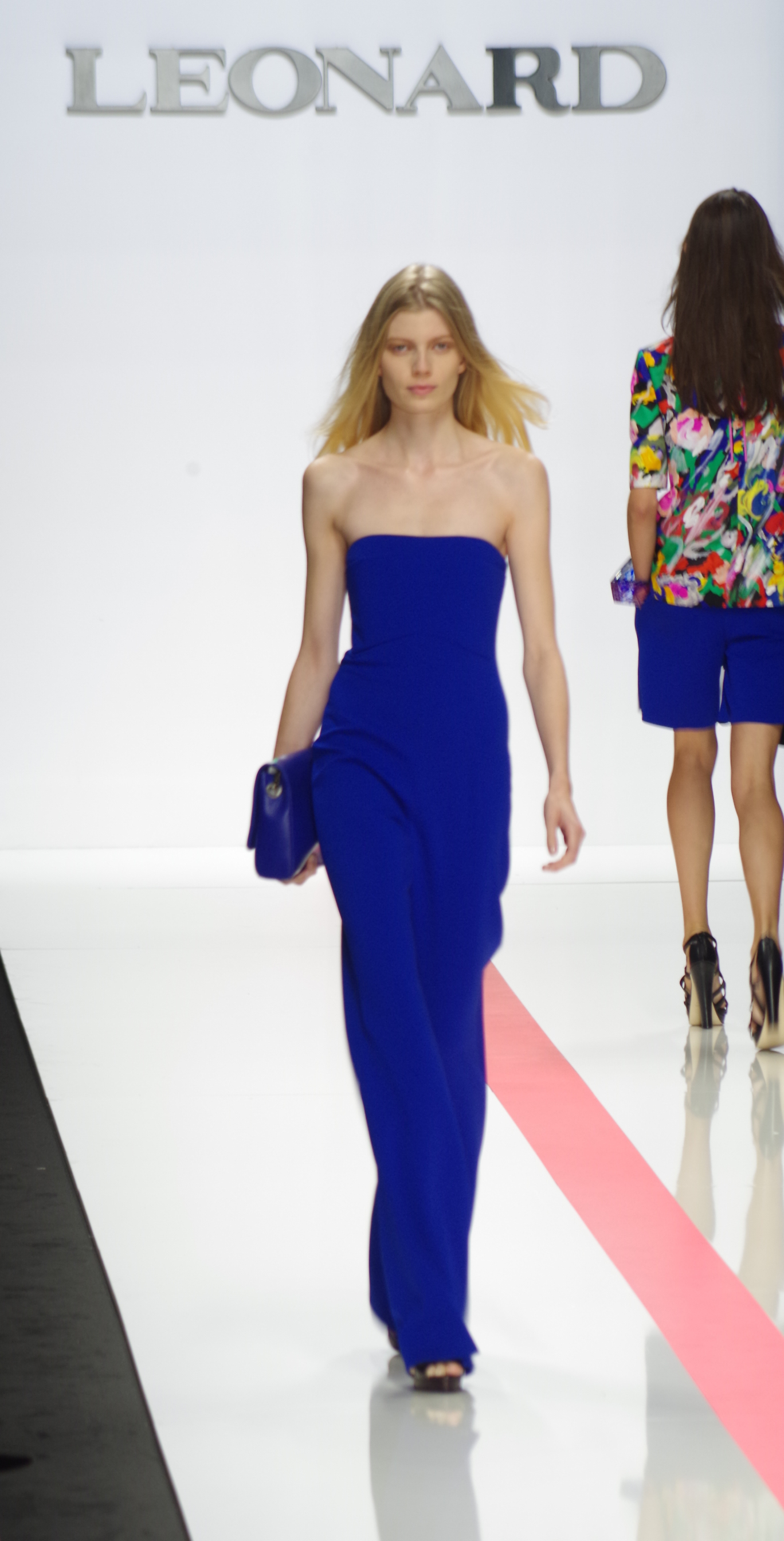 The Léonard woman of summer 2014 is sophisticated, mischievous and dynamic. She mixes elegant ease with a sportier allure. True to the house’s classics, it’s the prints that take center stage. This season’s inspiration is eighties. Urban and free, the Léonard woman combines asymmetrical skirts with a royal blue jacket and printed silk jersey, and becomes a work of art thanks to strong prints inspired by Art Nouveau and Tiffany stained glass. At night, she’s adorned in black and white with pointillist effects. It becomes sensual and feline in a tuxedo dress or bodysuit.