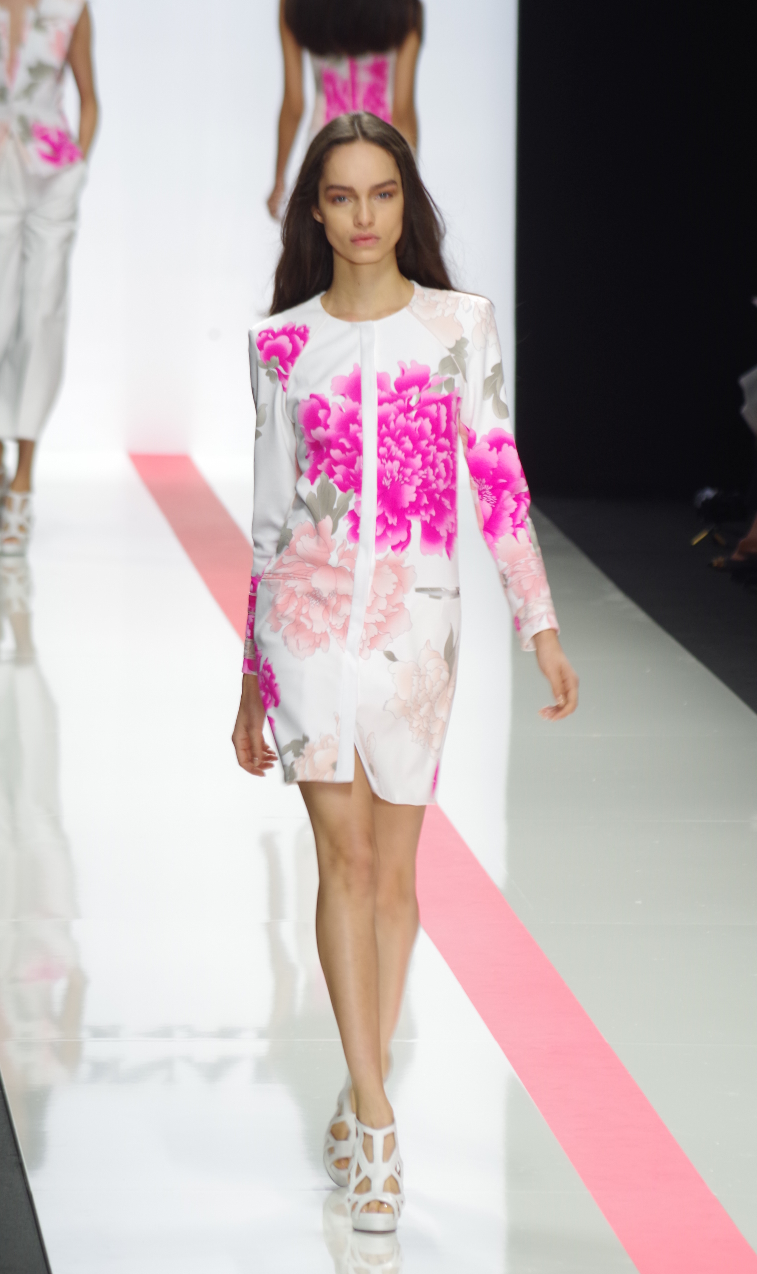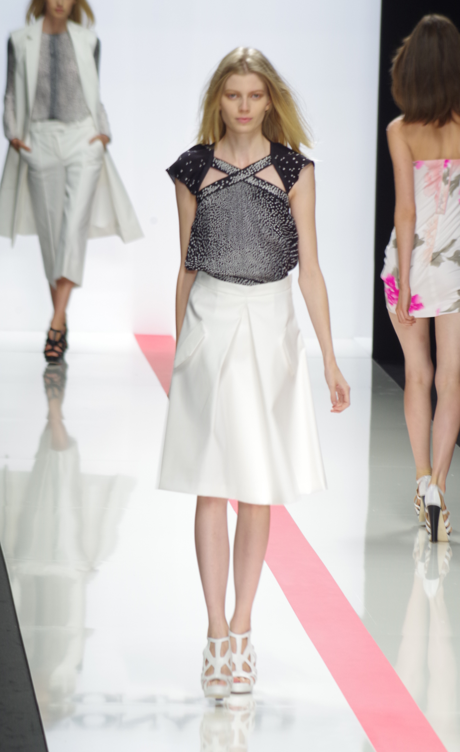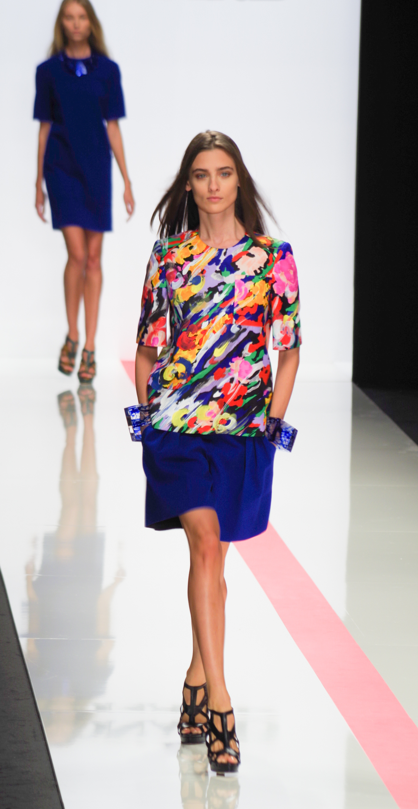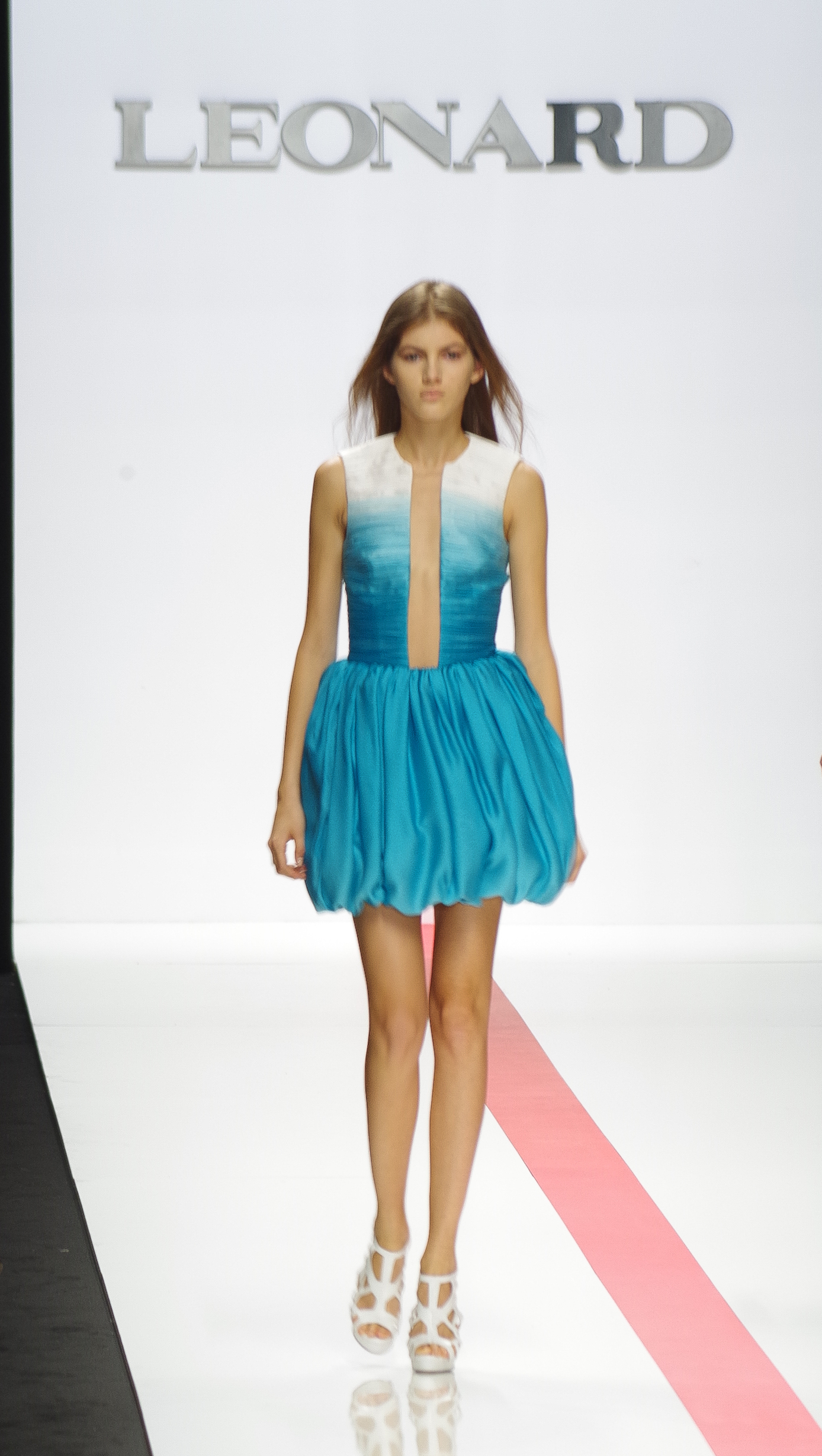 The Léonard woman of summer 2014 is sophisticated, mischievous and dynamic. She mixes elegant ease with a sportier allure. True to the house’s classics, it’s the prints that take center stage. This season’s inspiration is eighties. Urban and free, the Léonard woman combines asymmetrical skirts with a royal blue jacket and printed silk jersey, and becomes a work of art thanks to strong prints inspired by Art Nouveau and Tiffany stained glass. At night, she’s adorned in black and white with pointillist effects. It becomes sensual and feline in a tuxedo dress or bodysuit.
