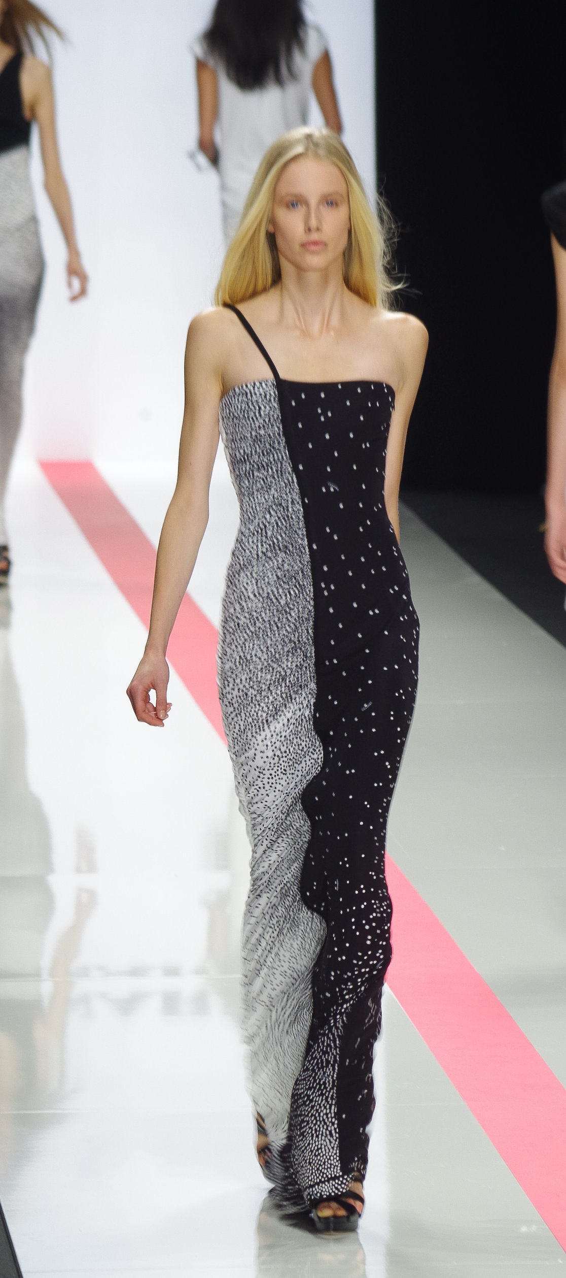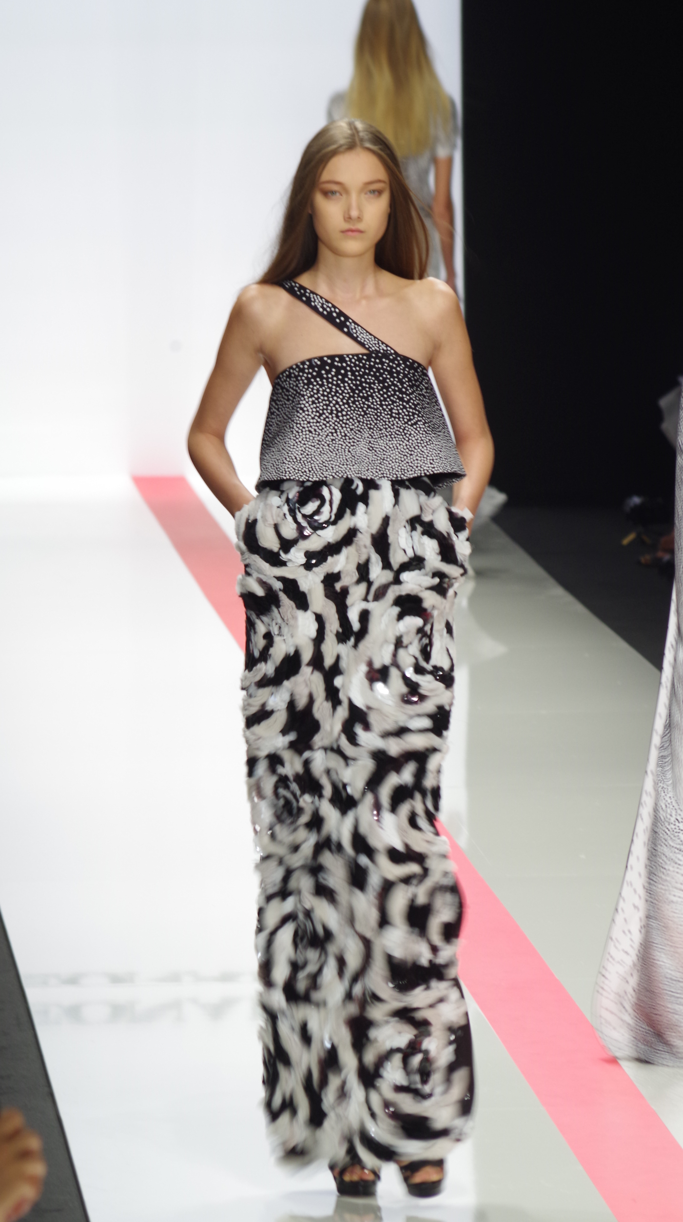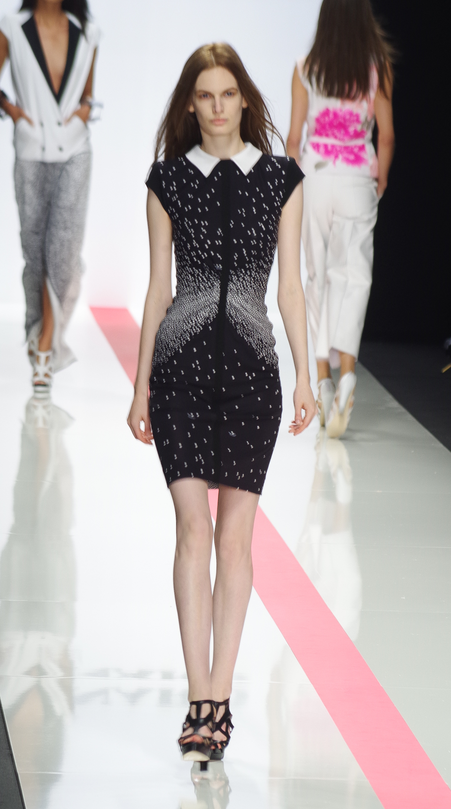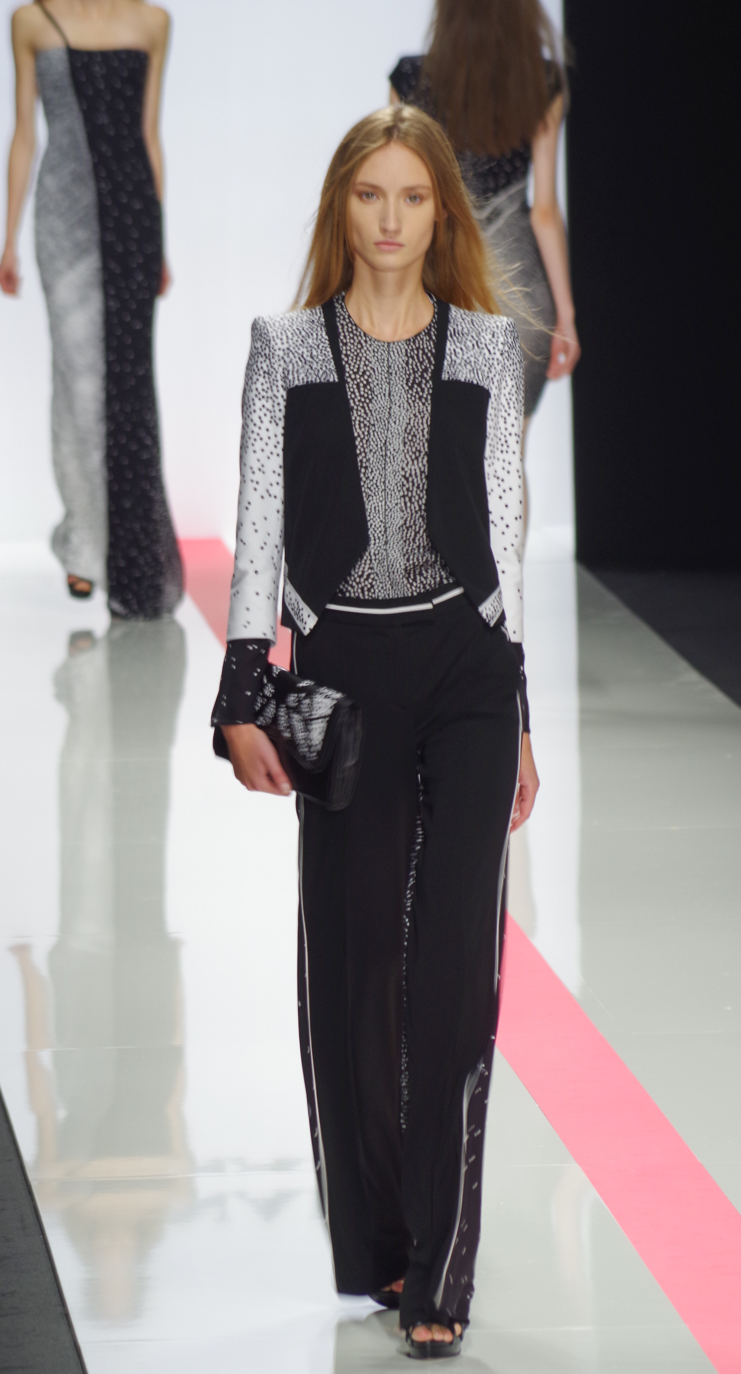 The Léonard woman of summer 2014 is sophisticated, mischievous and dynamic. She mixes elegant ease with a sportier allure. True to the house’s classics, it’s the prints that take center stage. This season’s inspiration is eighties. Urban and free, the Léonard woman combines asymmetrical skirts with a royal blue jacket and printed silk jersey, and becomes a work of art thanks to strong prints inspired by Art Nouveau and Tiffany stained glass. At night, she’s adorned in black and white with pointillist effects. It becomes sensual and feline in a tuxedo dress or bodysuit.