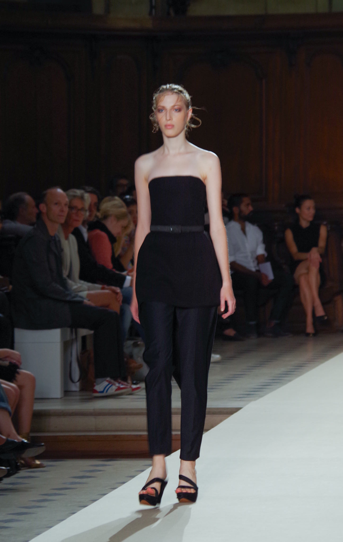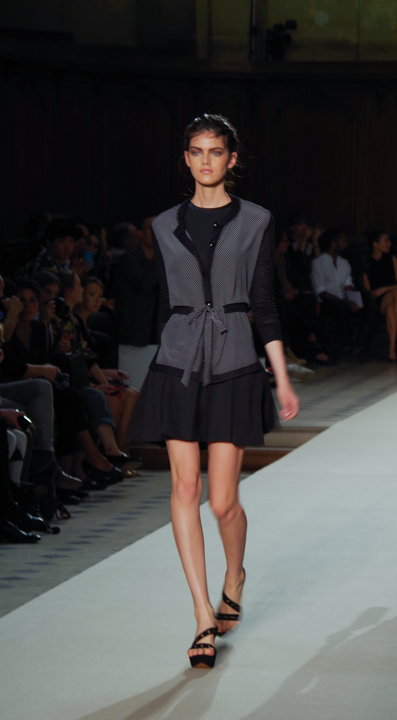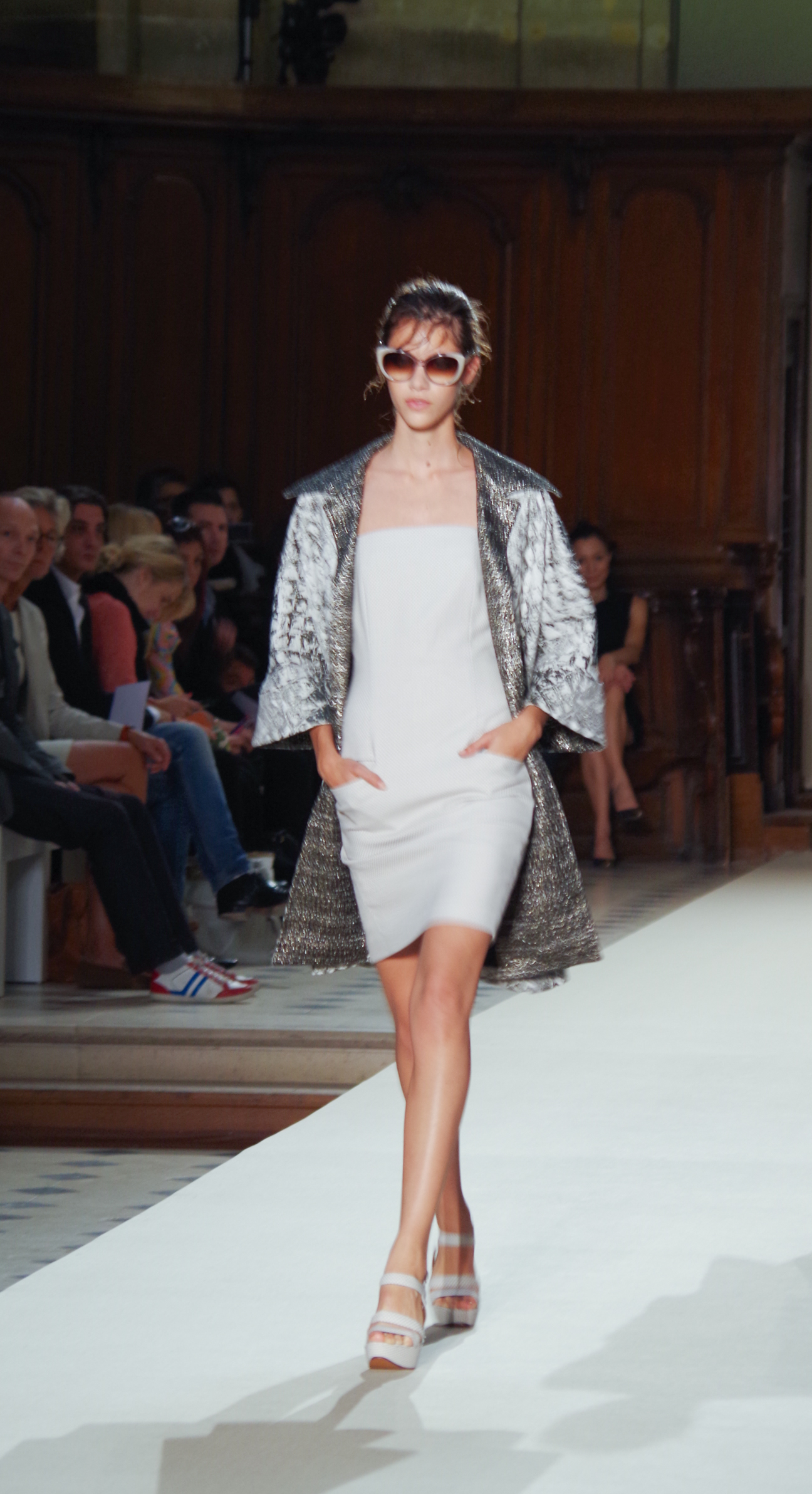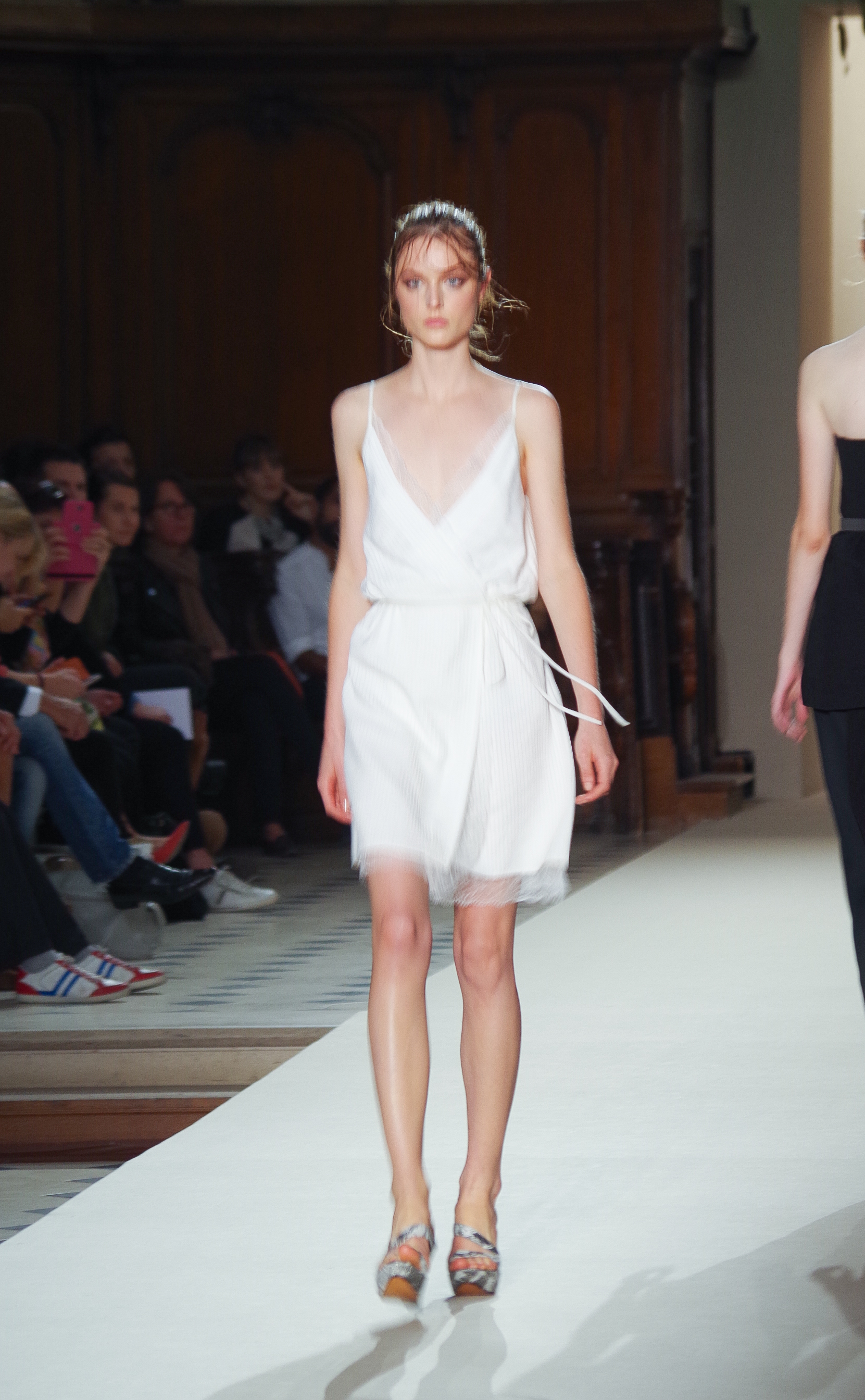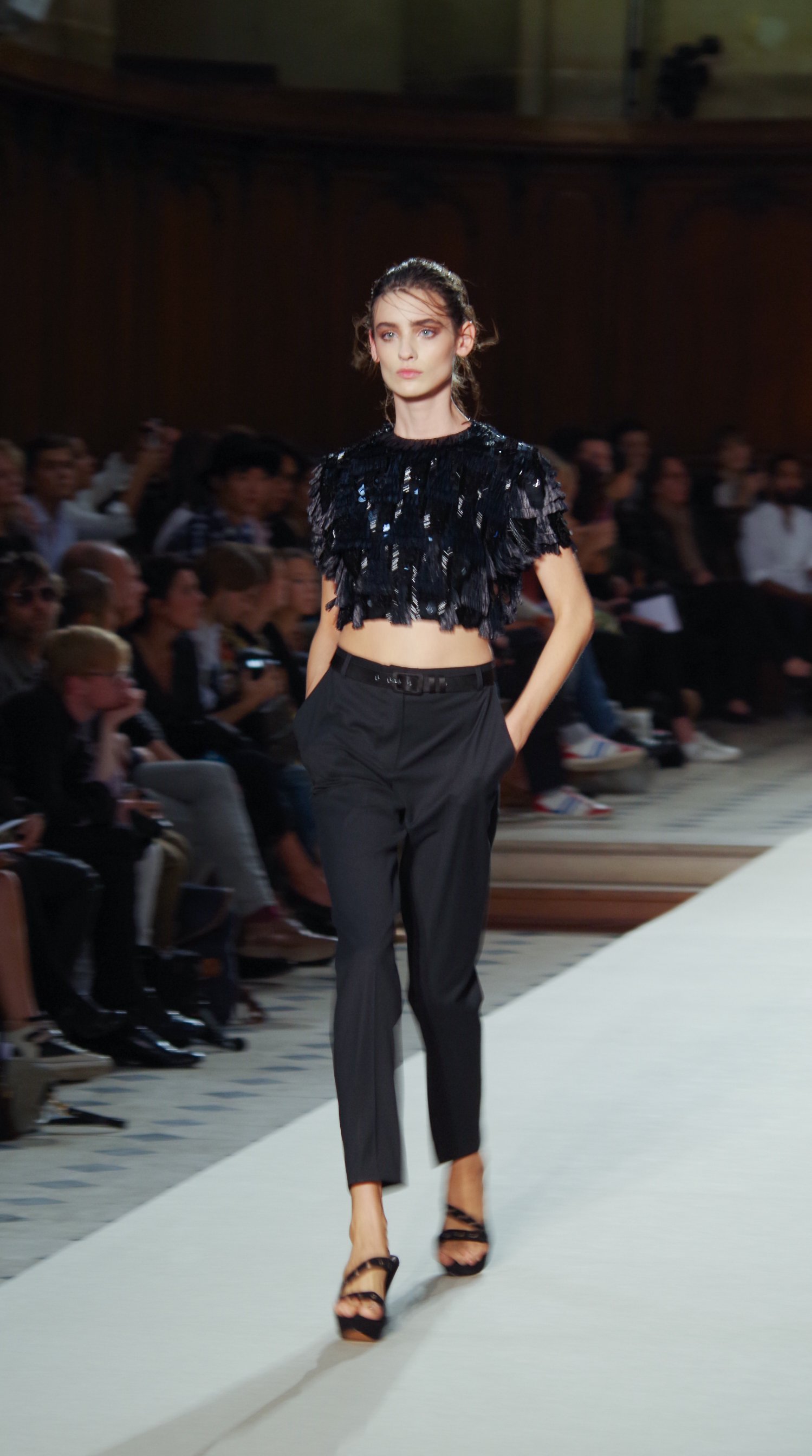 Pascal Millet presented his Spring Summer 2014 collection in Paris at the Oratoire de Paris. His collection, dark in color but sensual in material, focused on details. Millimetric cuts, fine embroidery, handkerchief dresses, short or long, light and feminine.