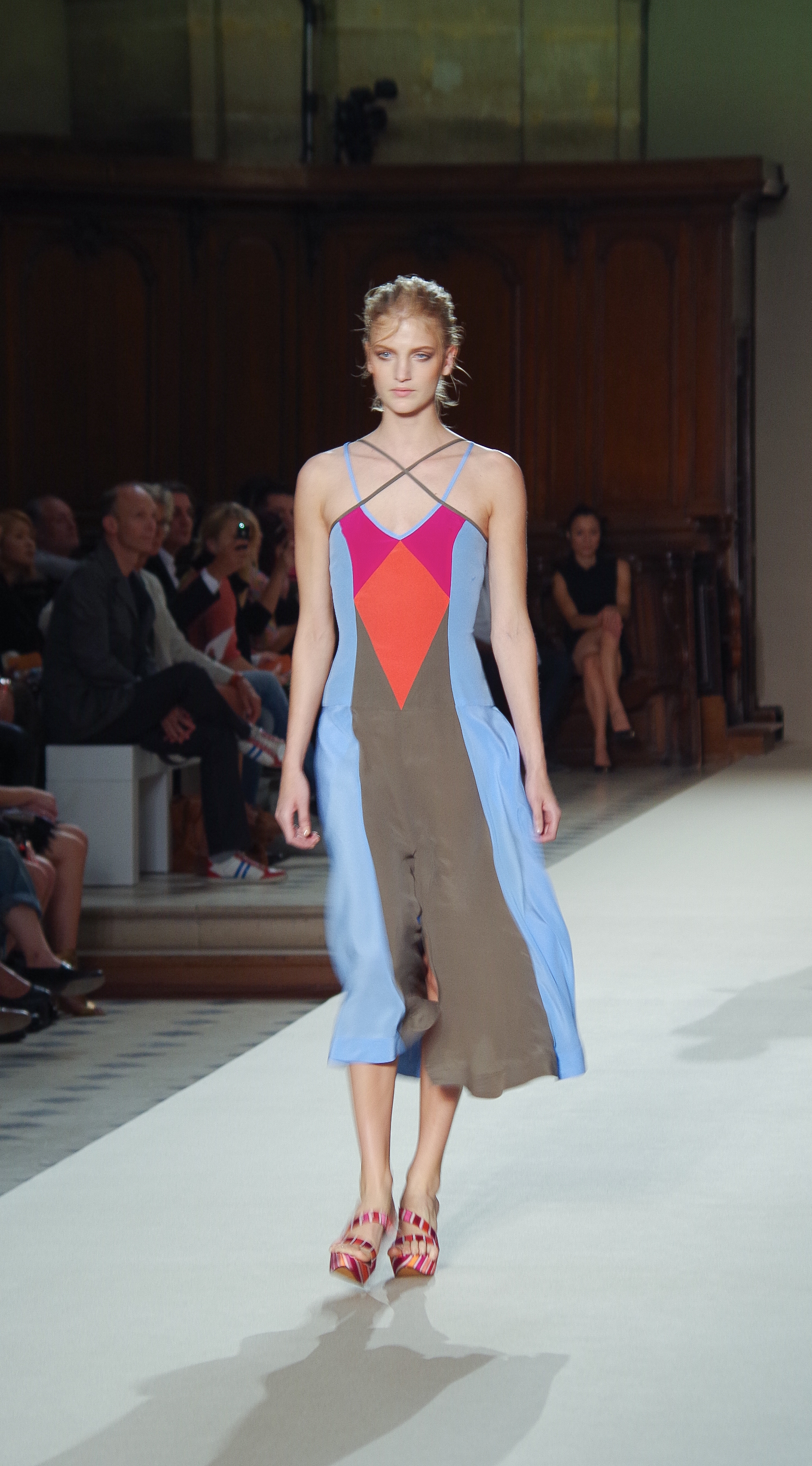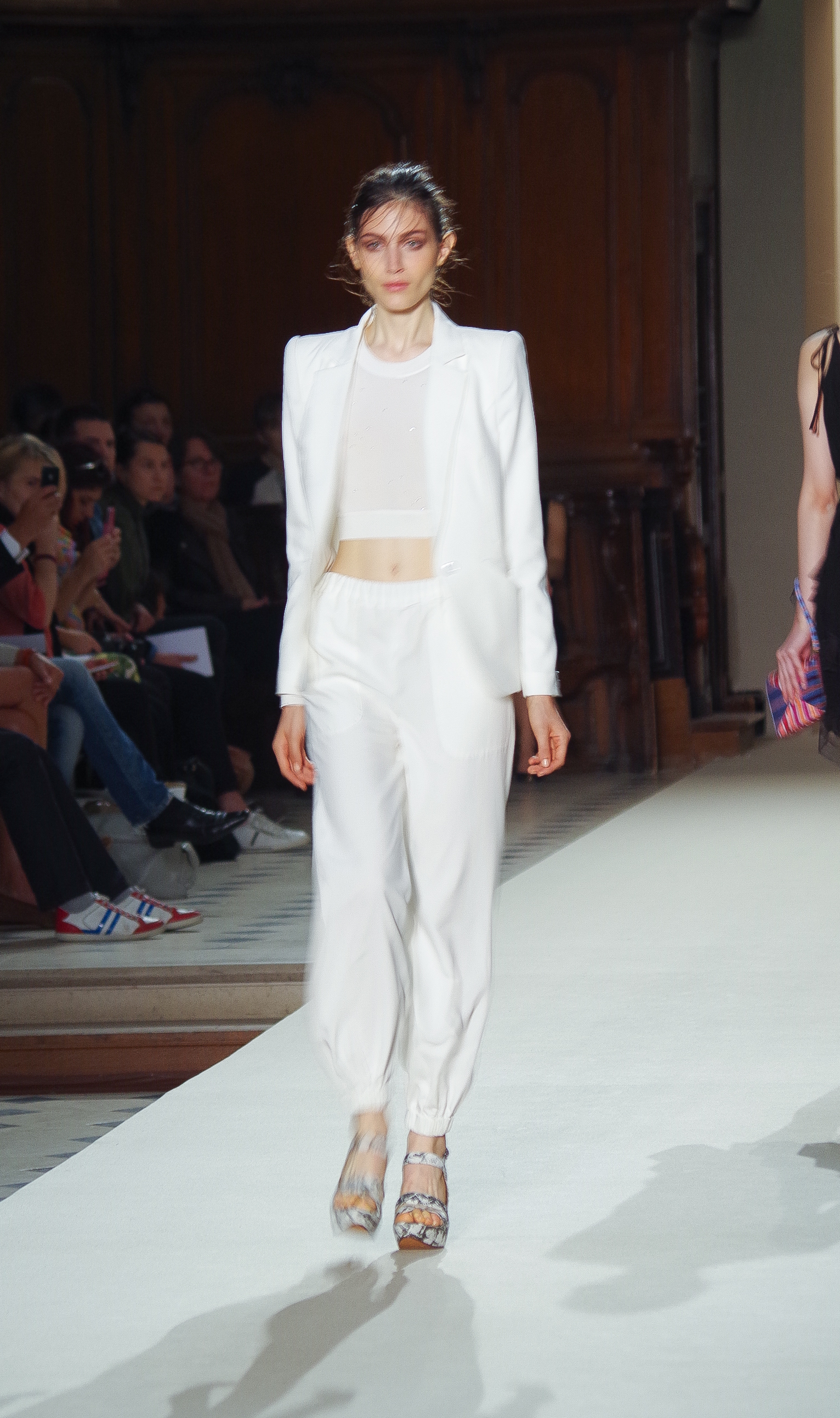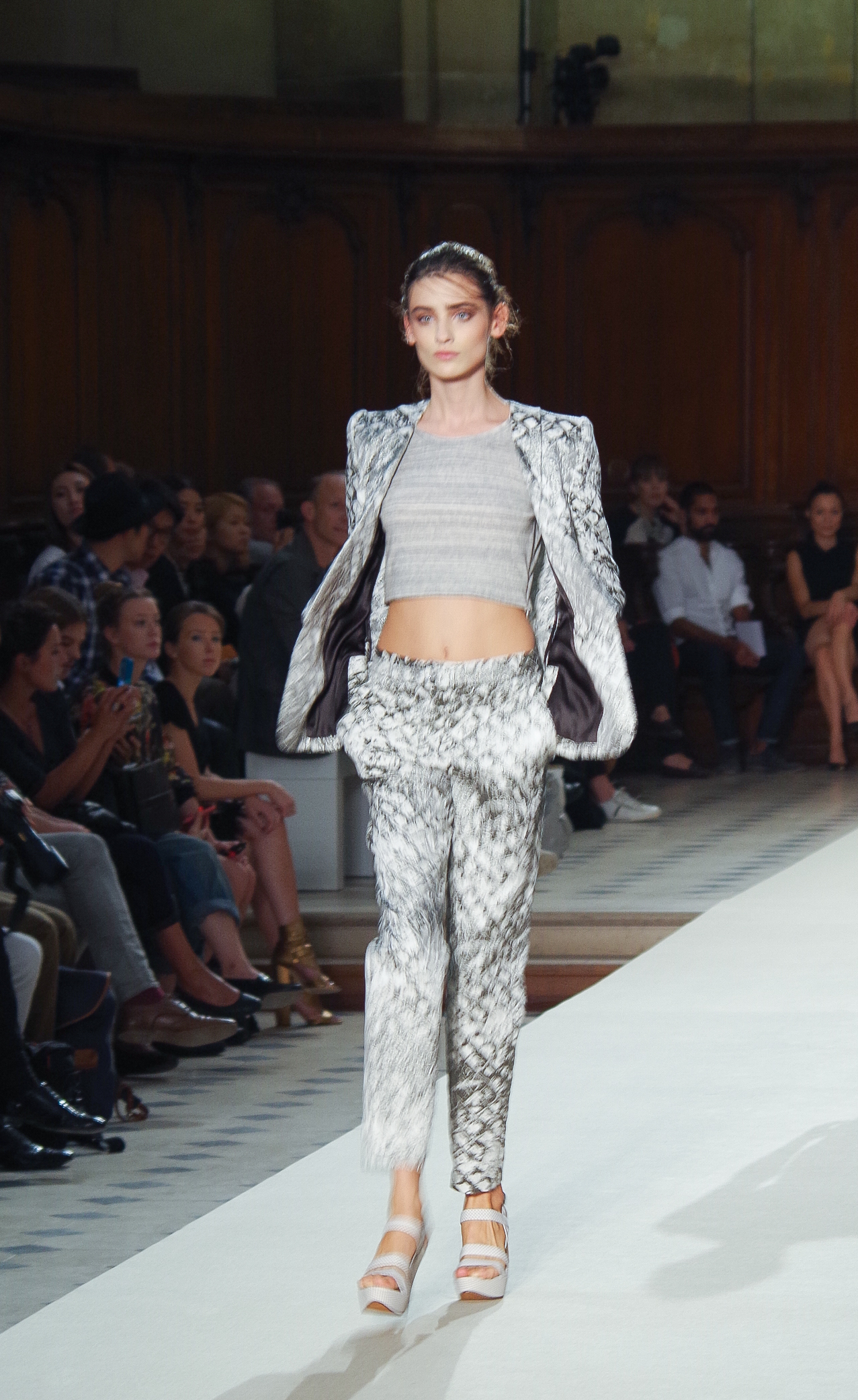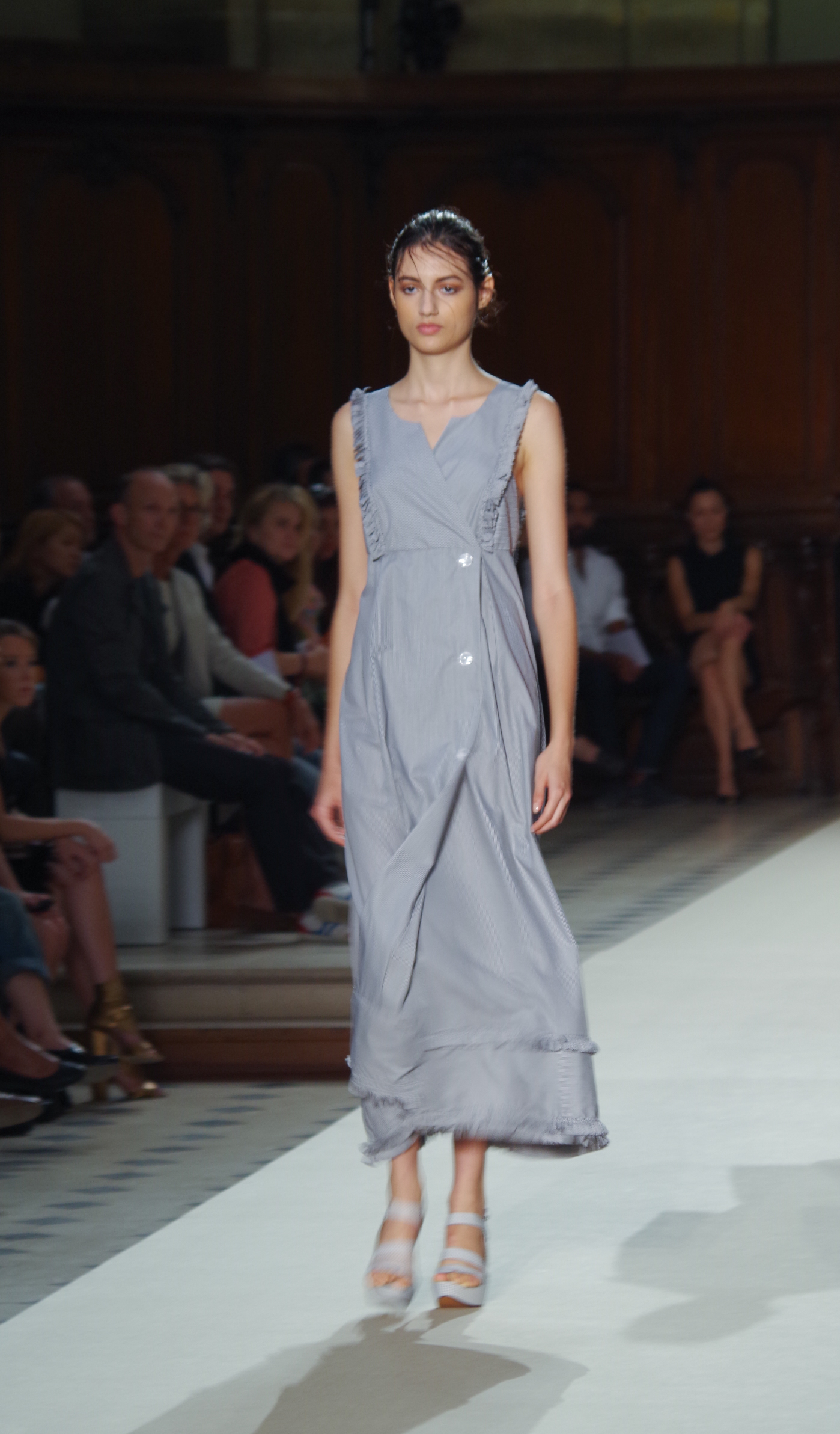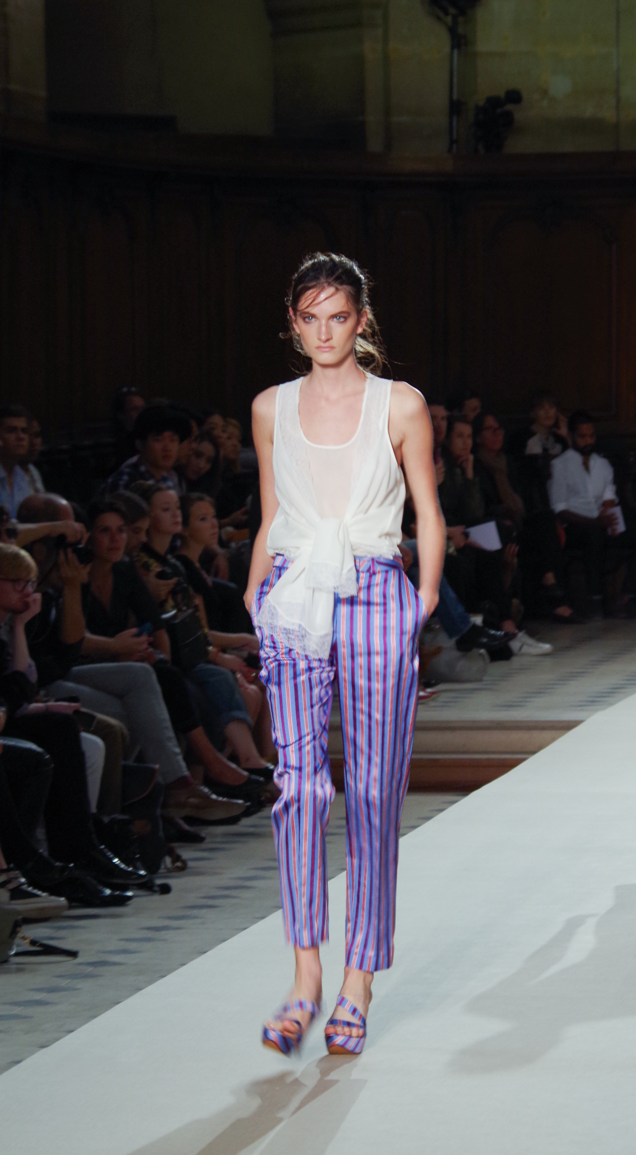 Pascal Millet presented his Spring Summer 2014 collection in Paris at the Oratoire de Paris. His collection, dark in color but sensual in material, focused on details. Millimetric cuts, fine embroidery, handkerchief dresses, short or long, light and feminine.