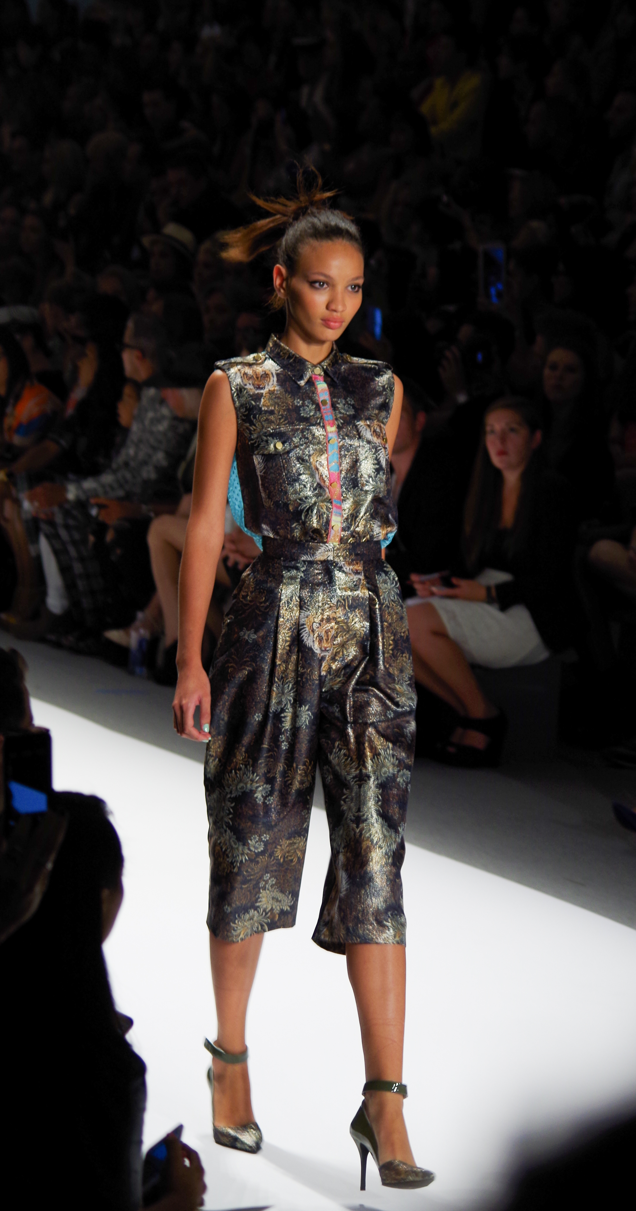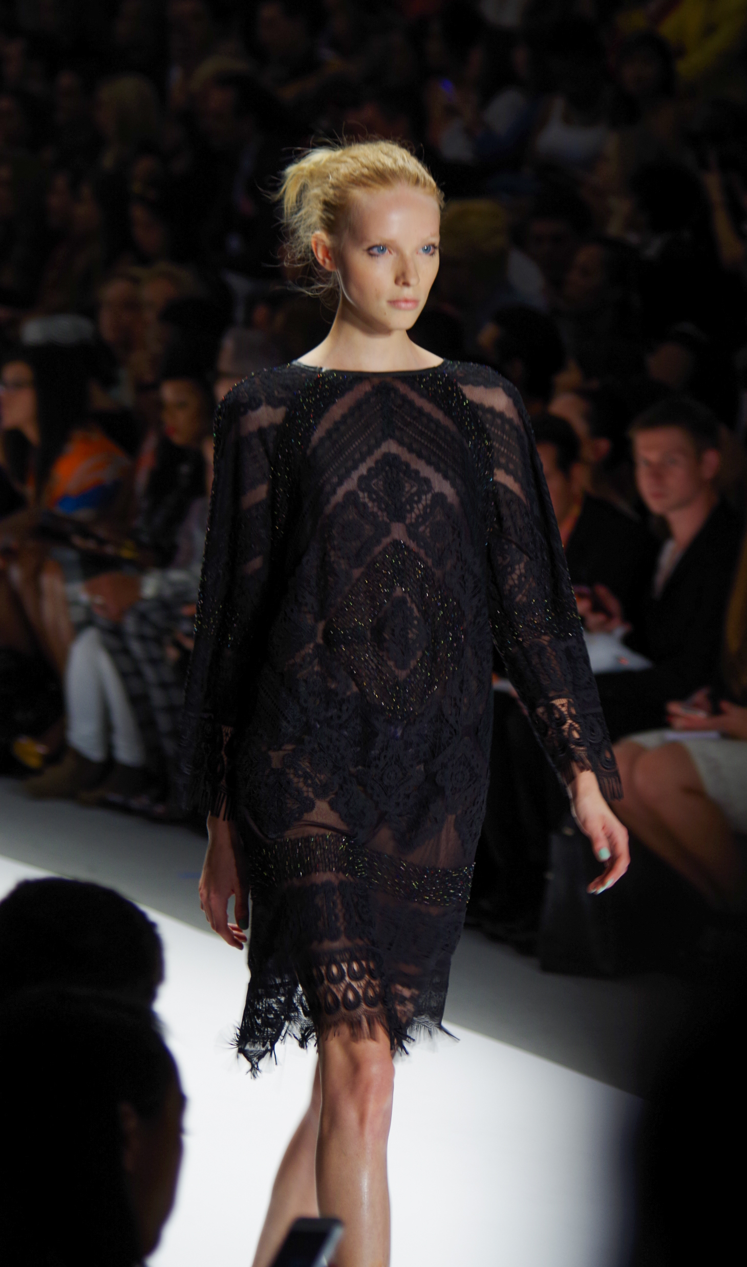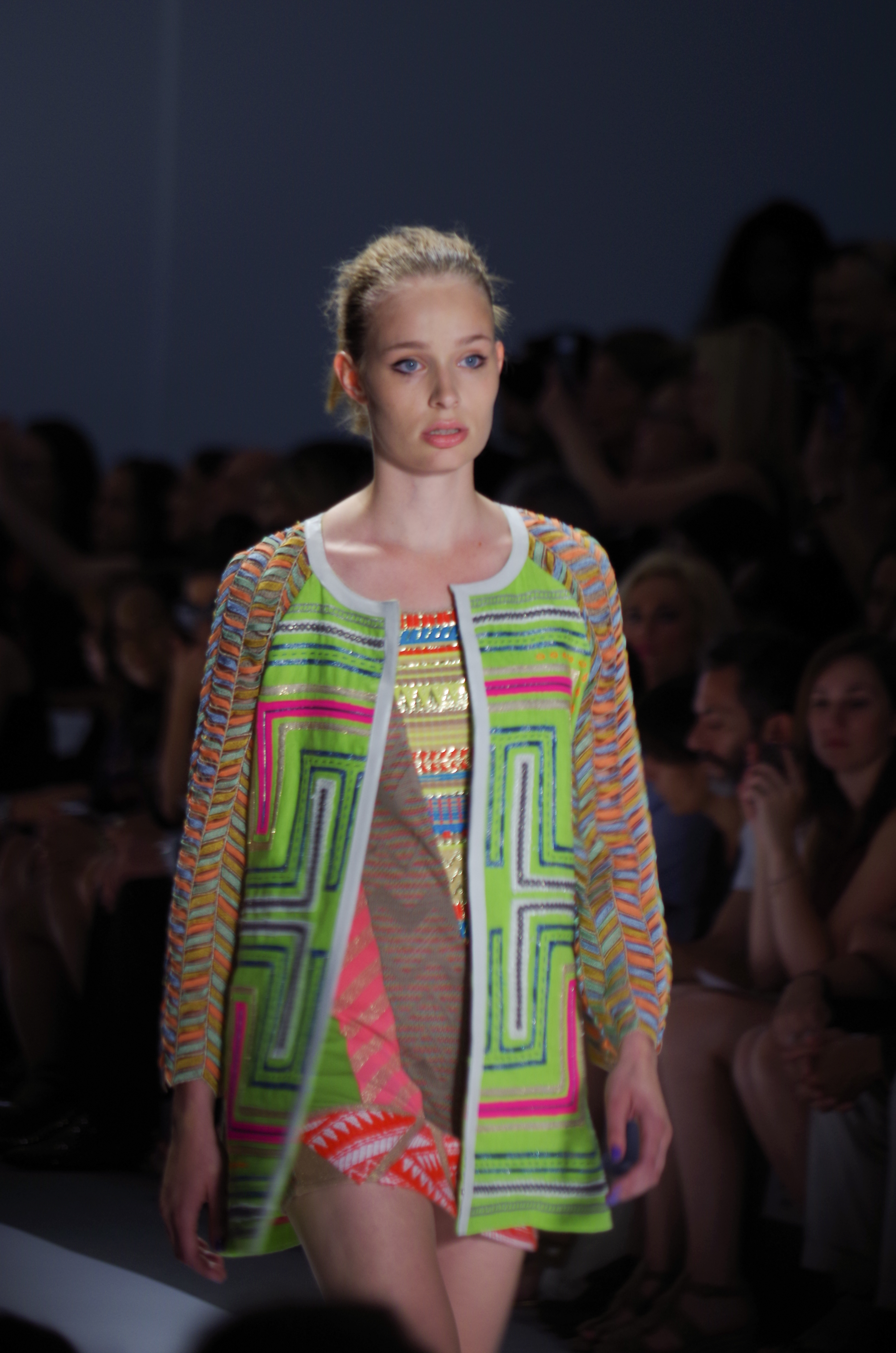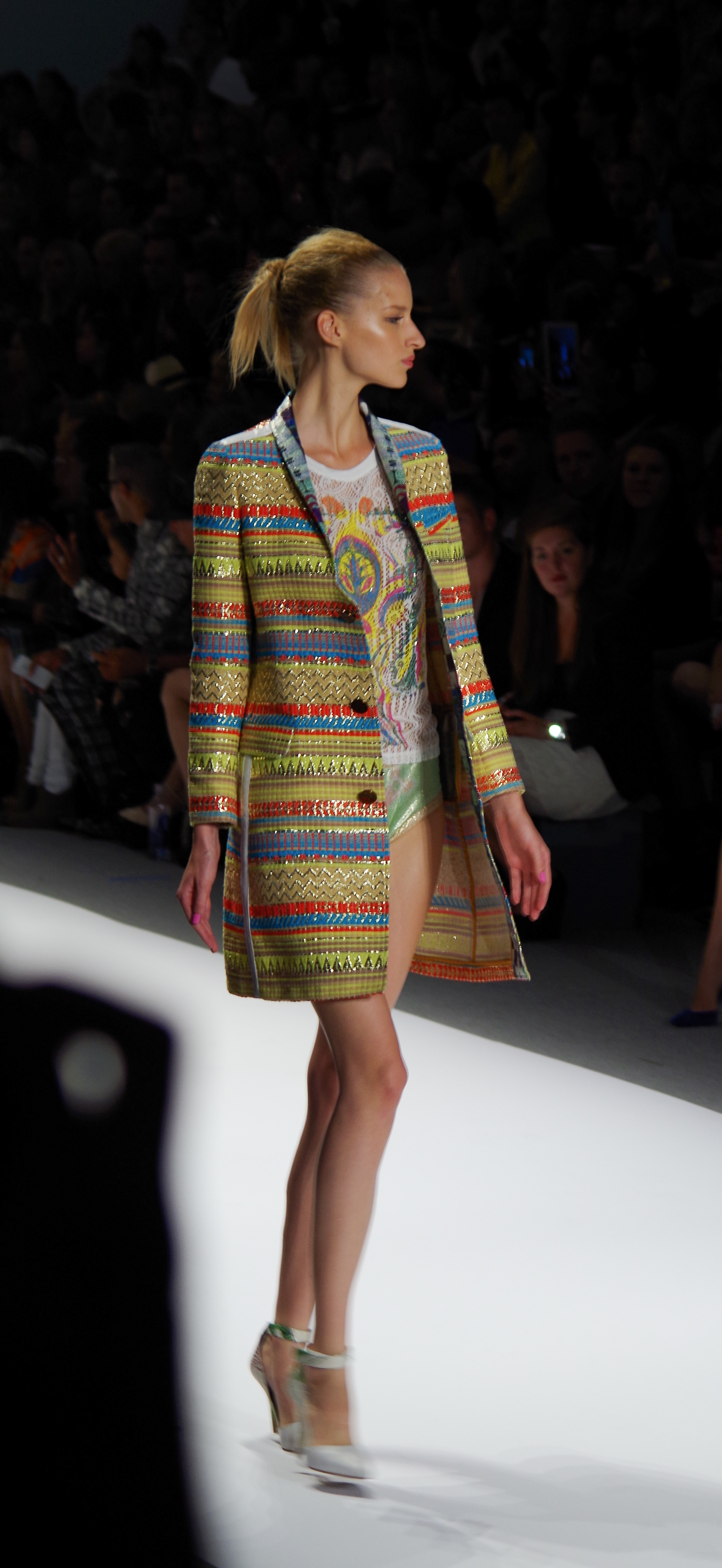 Custo Barcelona presented a soft, feminine Spring Summer 2014 collection in New York, thanks to a play of transparencies. Tribal inspirations are combined on oversized coats or cocooning pants. Swimsuits take their place in Custo’s wardrobe like a truly sophisticated garment. A colorful, tribal collection.
