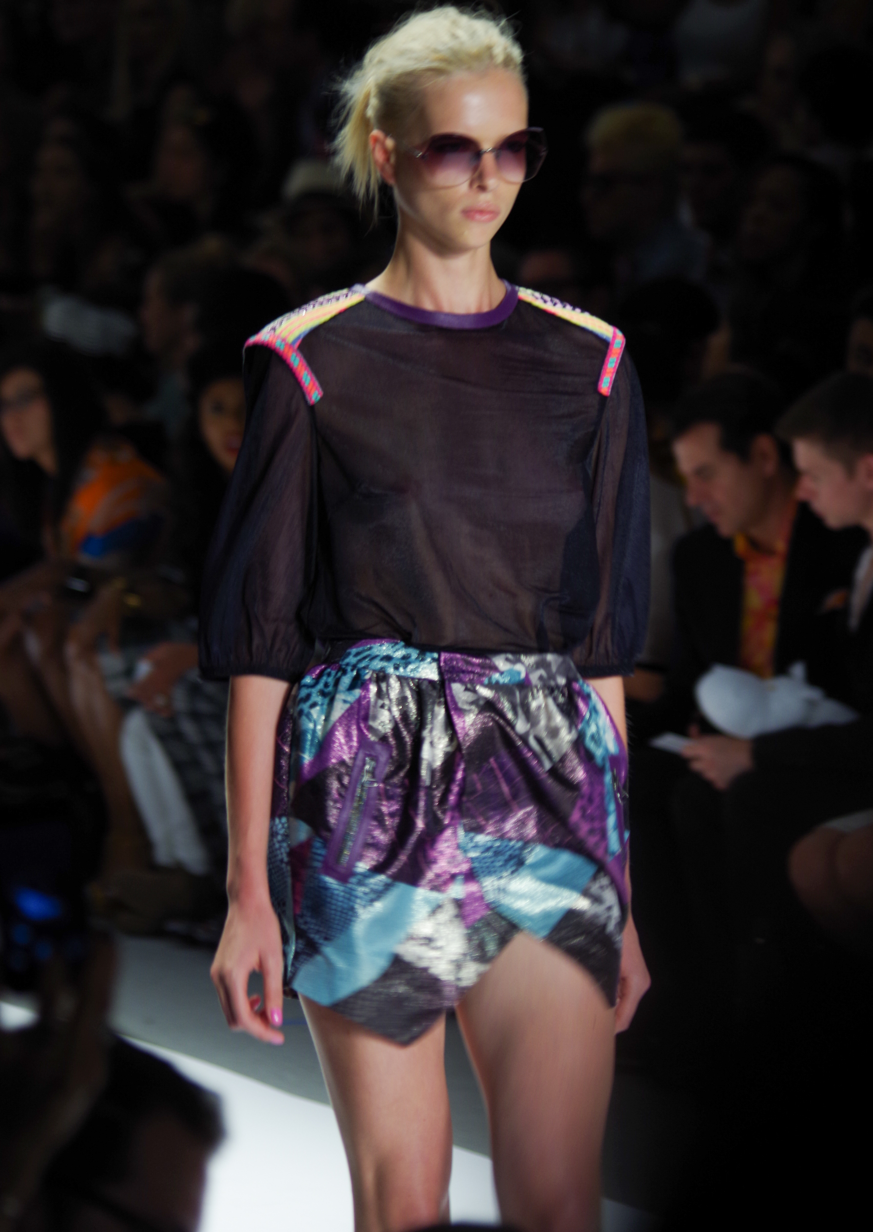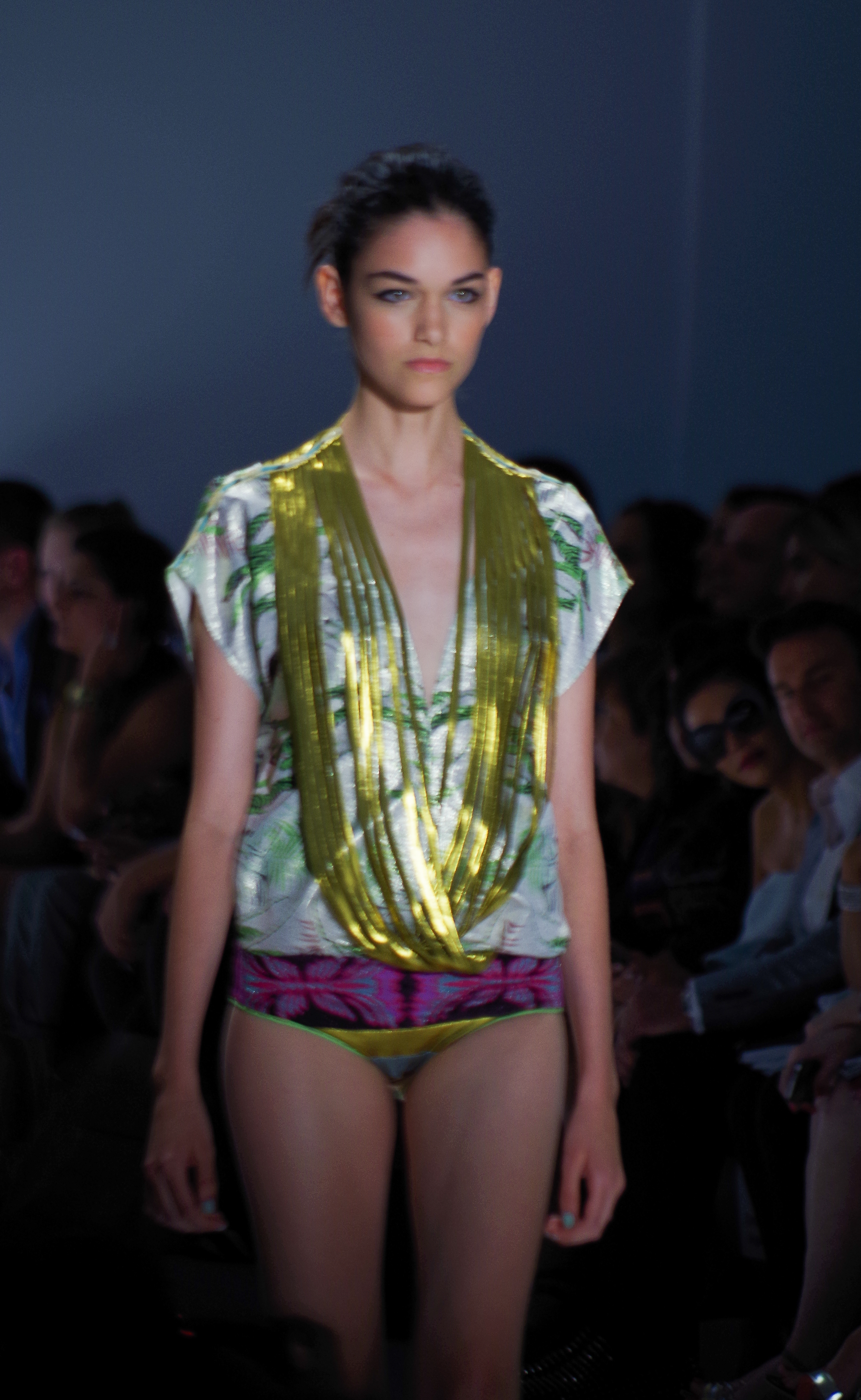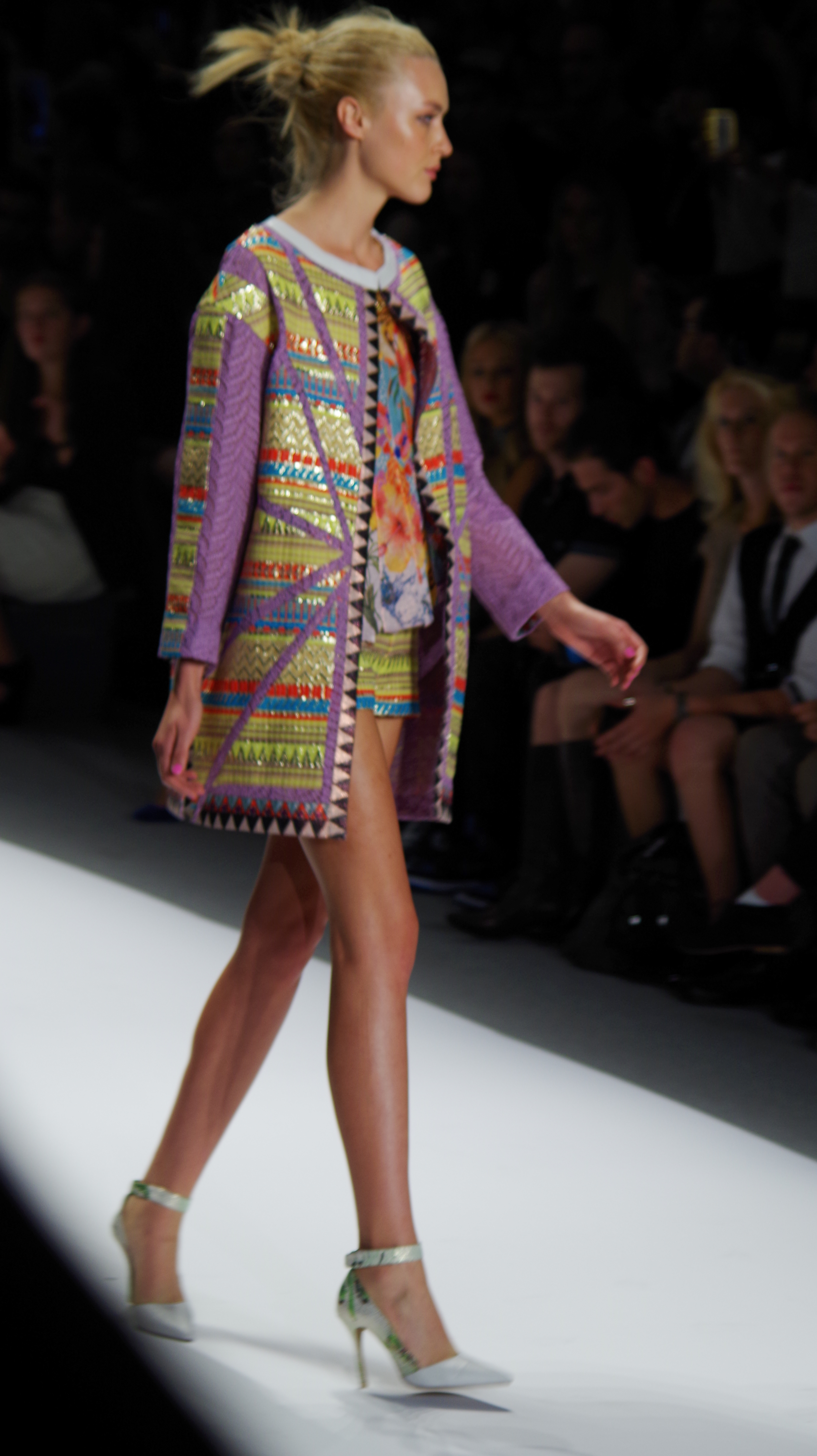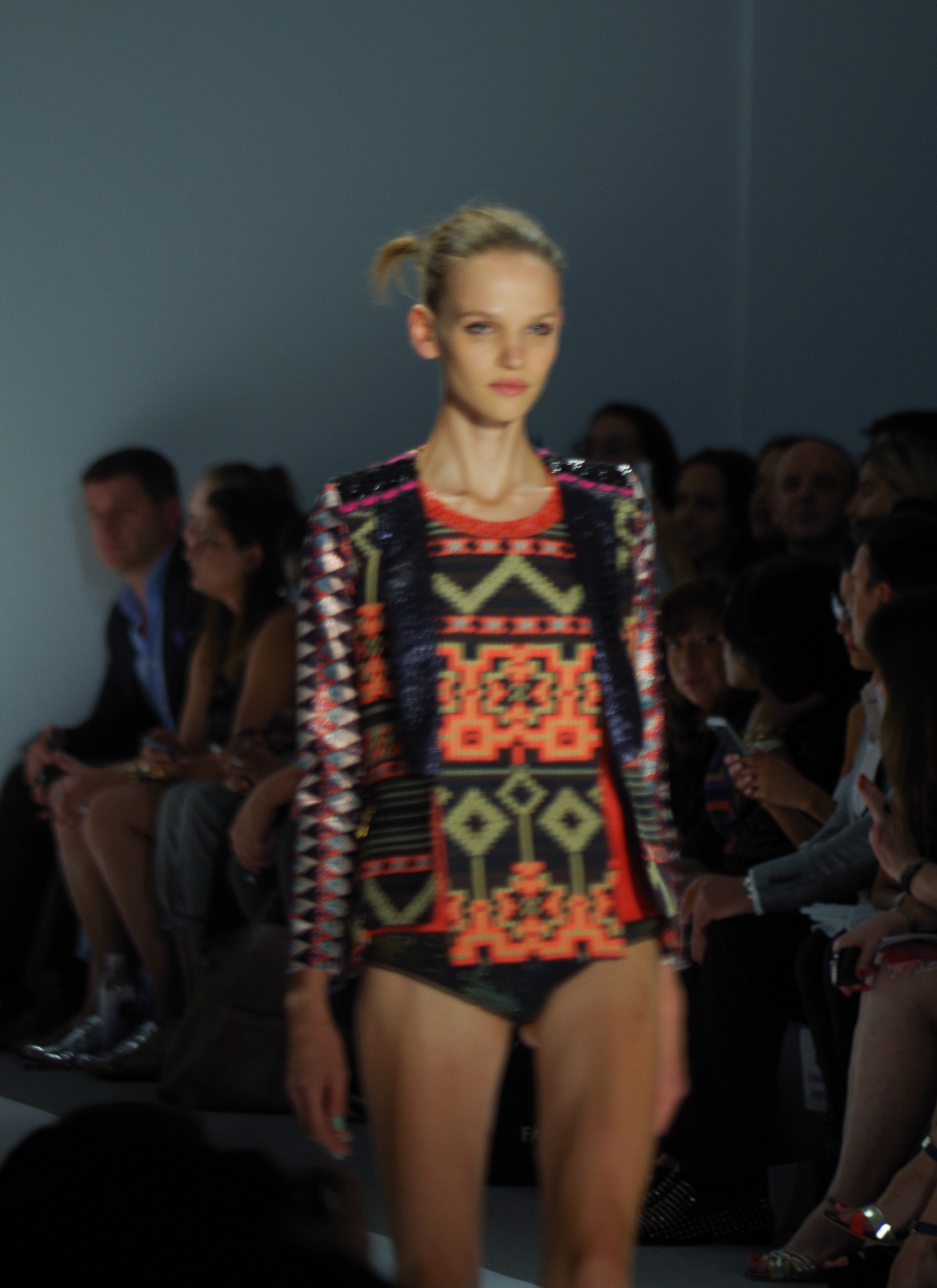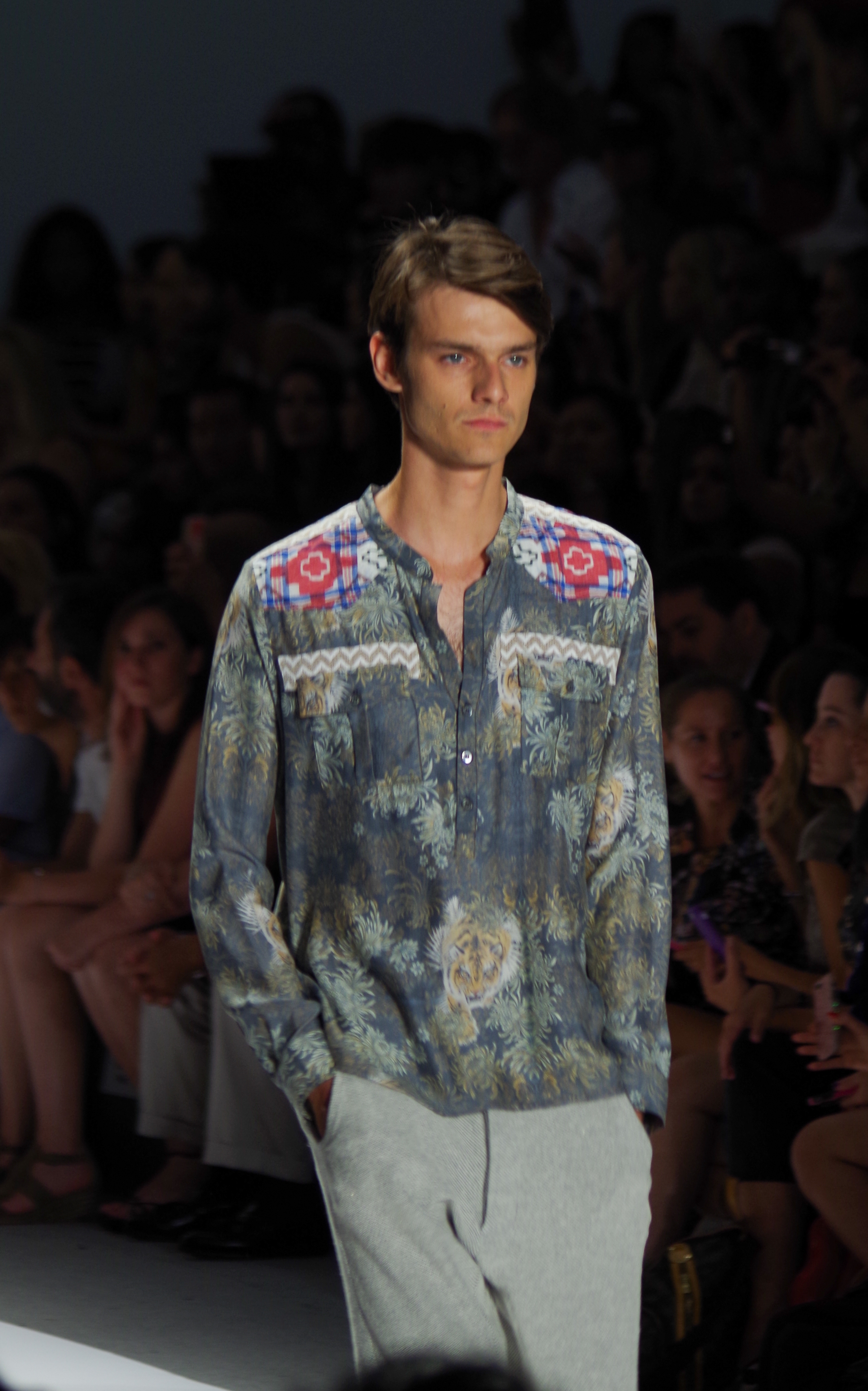 Custo Barcelona presented a soft, feminine Spring Summer 2014 collection in New York, thanks to a play of transparencies. Tribal inspirations are combined on oversized coats or cocooning pants. Swimsuits take their place in Custo’s wardrobe like a truly sophisticated garment. A colorful, tribal collection.