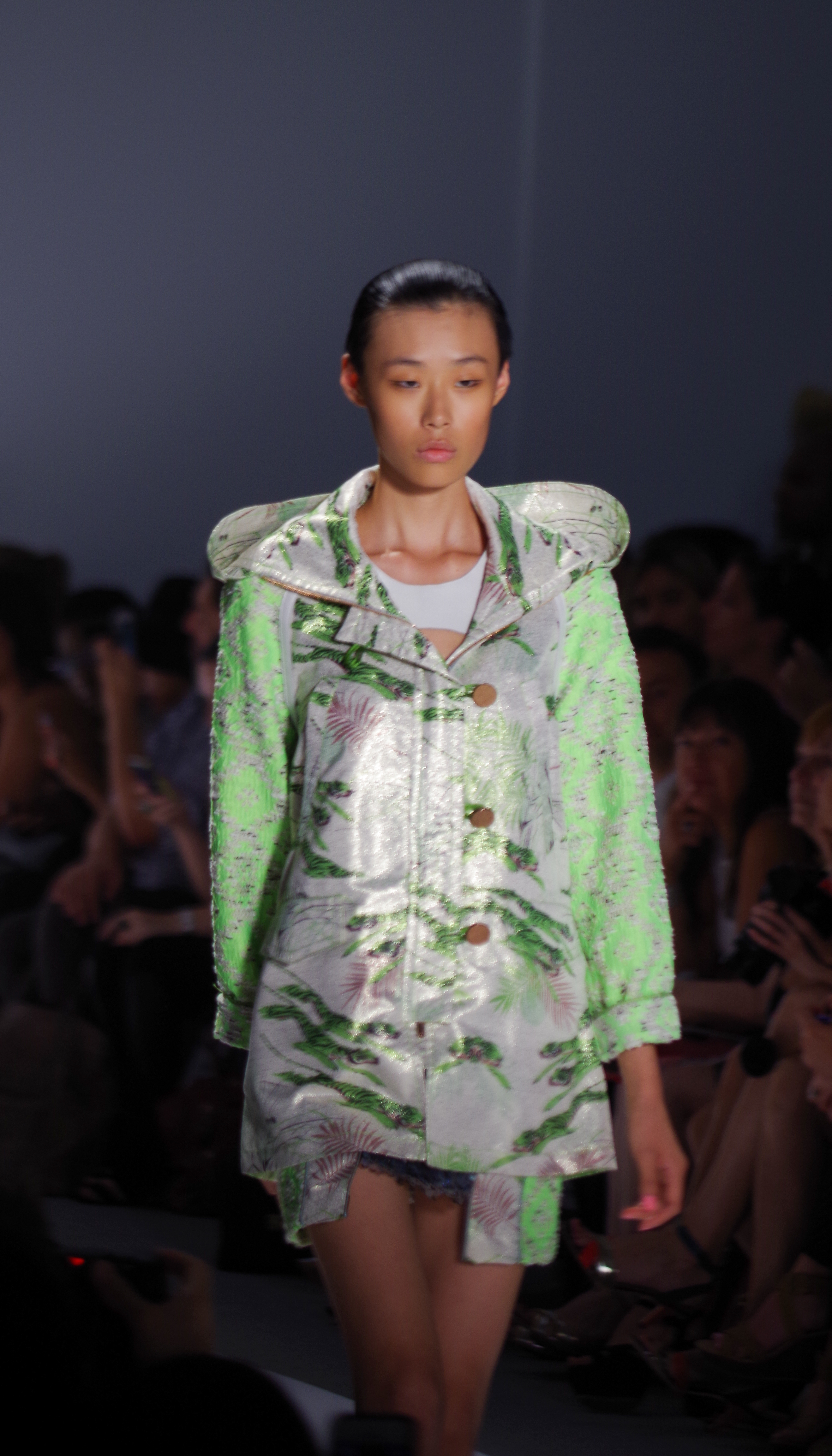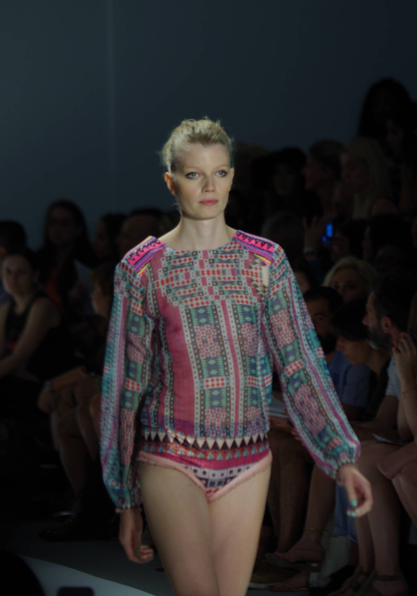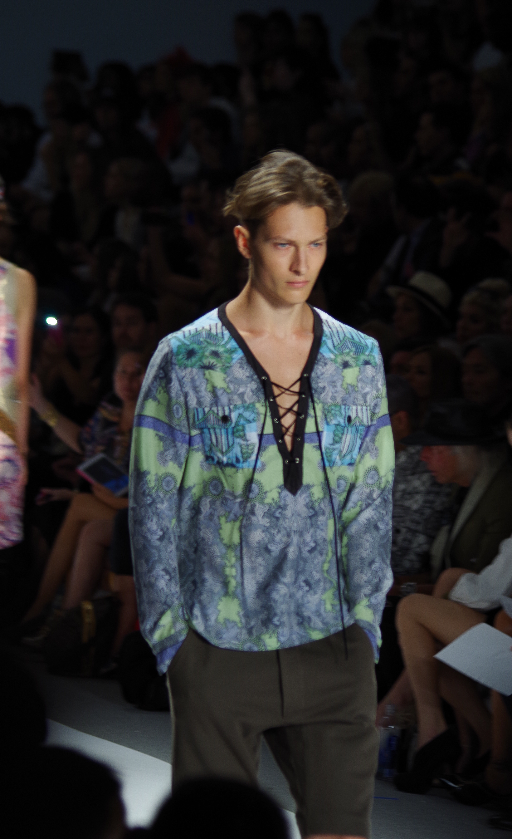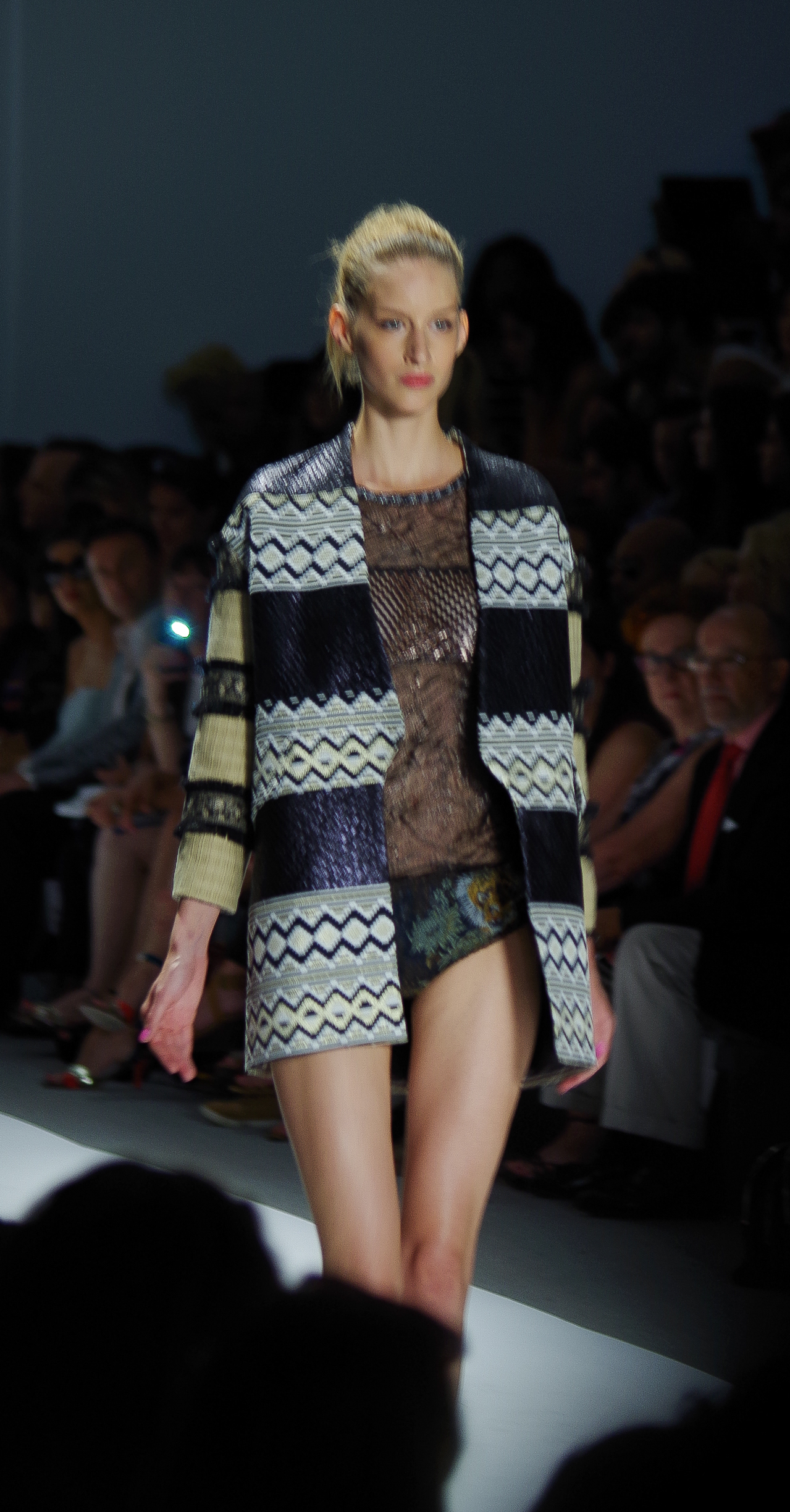Custo Barcelona presented a soft, feminine Spring Summer 2014 collection in New York, thanks to a play of transparencies. Tribal inspirations are combined on oversized coats or cocooning pants. Swimsuits take their place in Custo’s wardrobe like a truly sophisticated garment. A colorful, tribal collection.