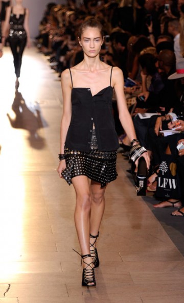 Inside New York’s magnificent Grand Central Station, Diesel Black Gold presented its summer 2014 collection. In front of a star-studded audience ( Kanye West, Iggy Azalea and a Jonas brother), Andreas Melbostad presented a definitely rock collection with white and black leather-jeans combos with sophisticated details as usual, but this season with a hint of color.