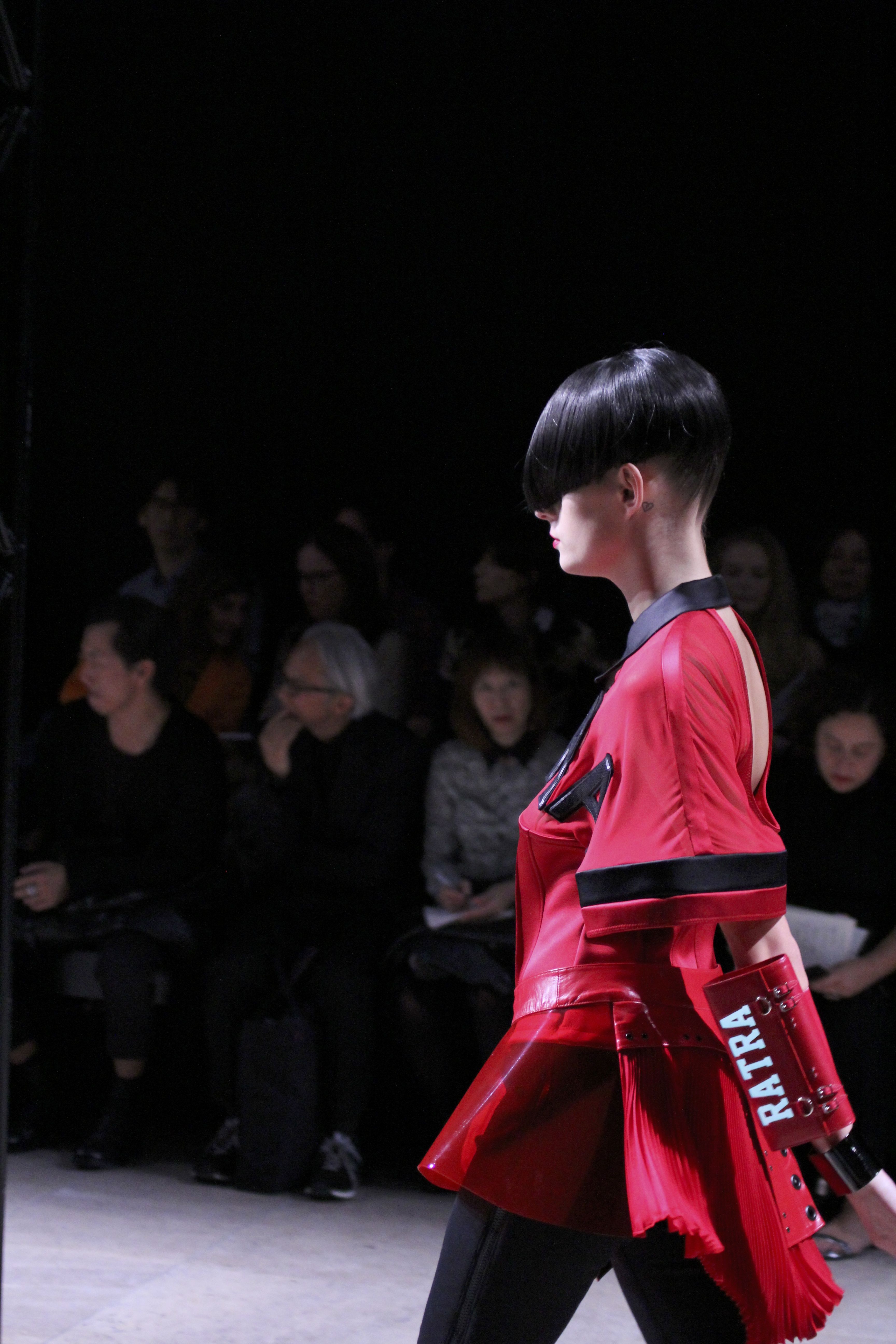 In today’s economic climate, Undercover is inspired by the anarchic woman, in the colors of combat, essentially composed of black and red, but also with a few touches of white and midnight blue. The addition of relevant embroidery confirms the show’s subtext, “CHAOS”.