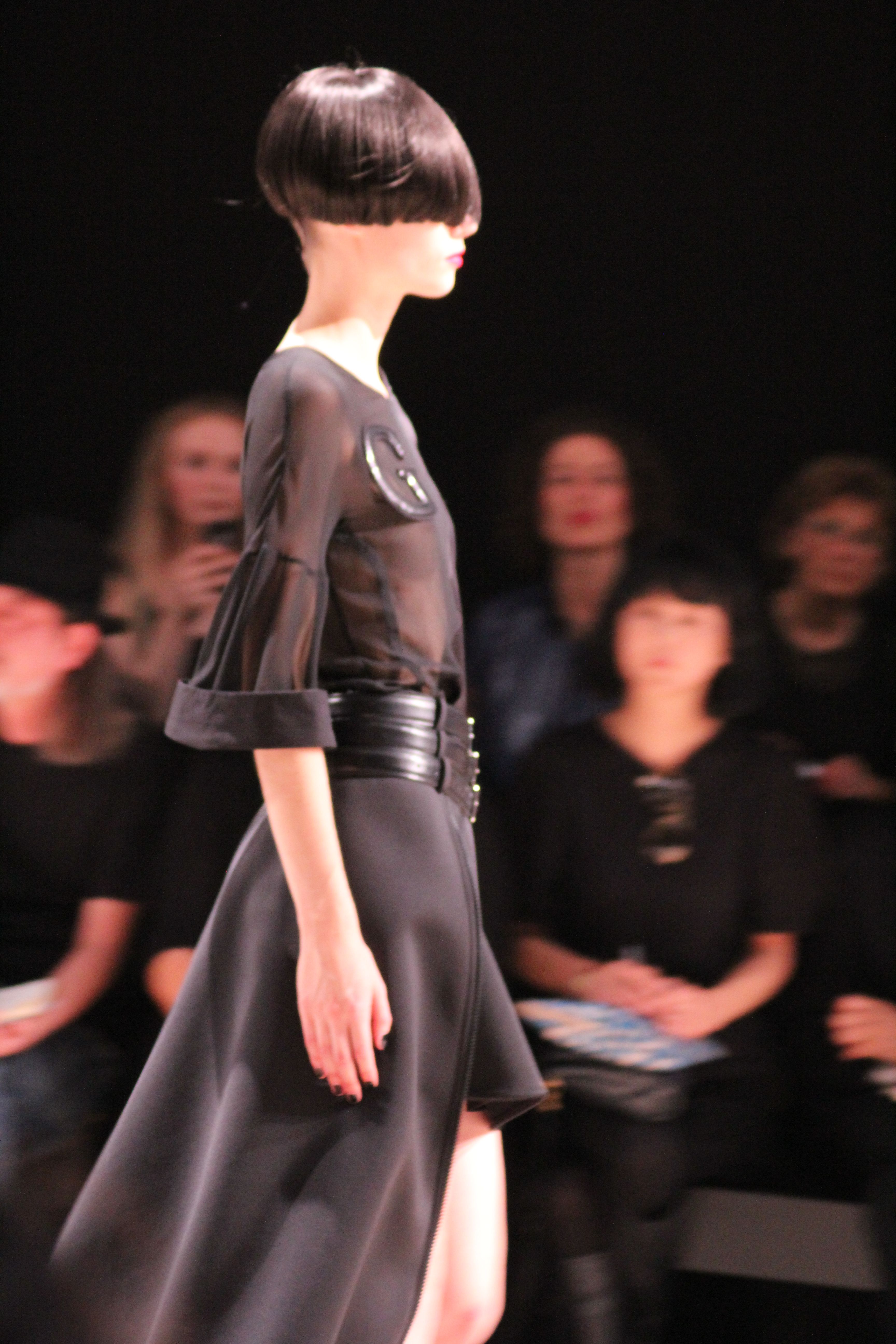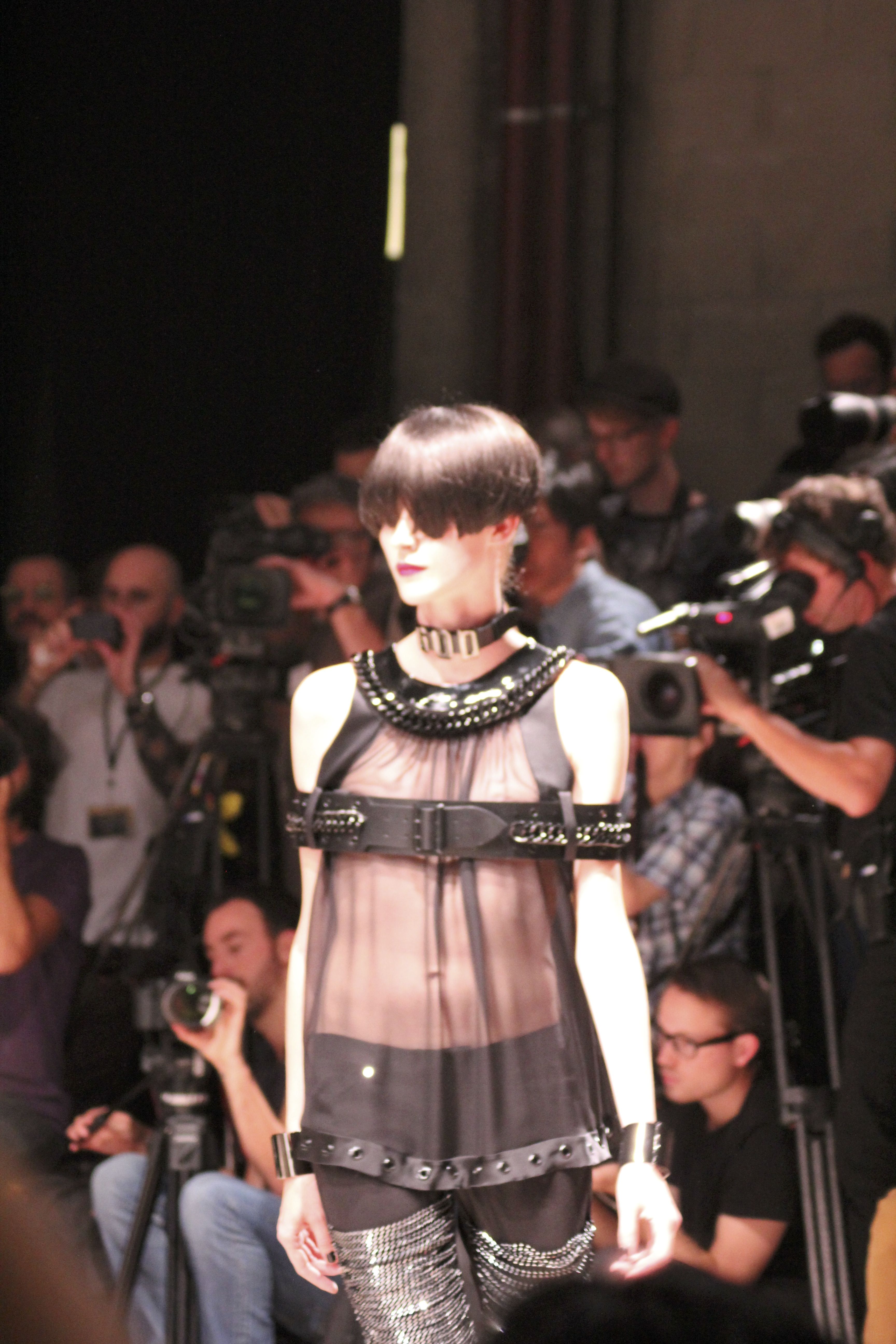 At Undercover, women proudly assert their “free electron” side, with asymmetrical pieces featuring transparency and neoprene, blending two of the four elements: Air and Earth.