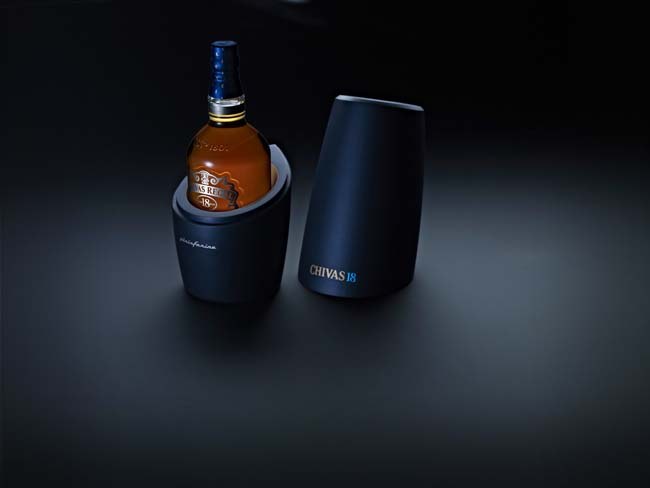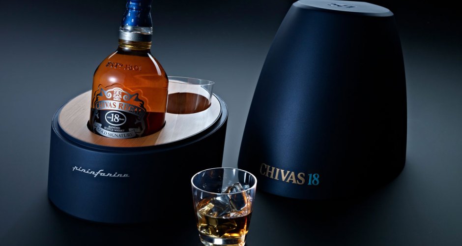 The “The Drop” limited-edition box contains a bottle of Chivas 18 Year Old in a case inspired by a raindrop, with the aerodynamics so dear to the designer’s heart.