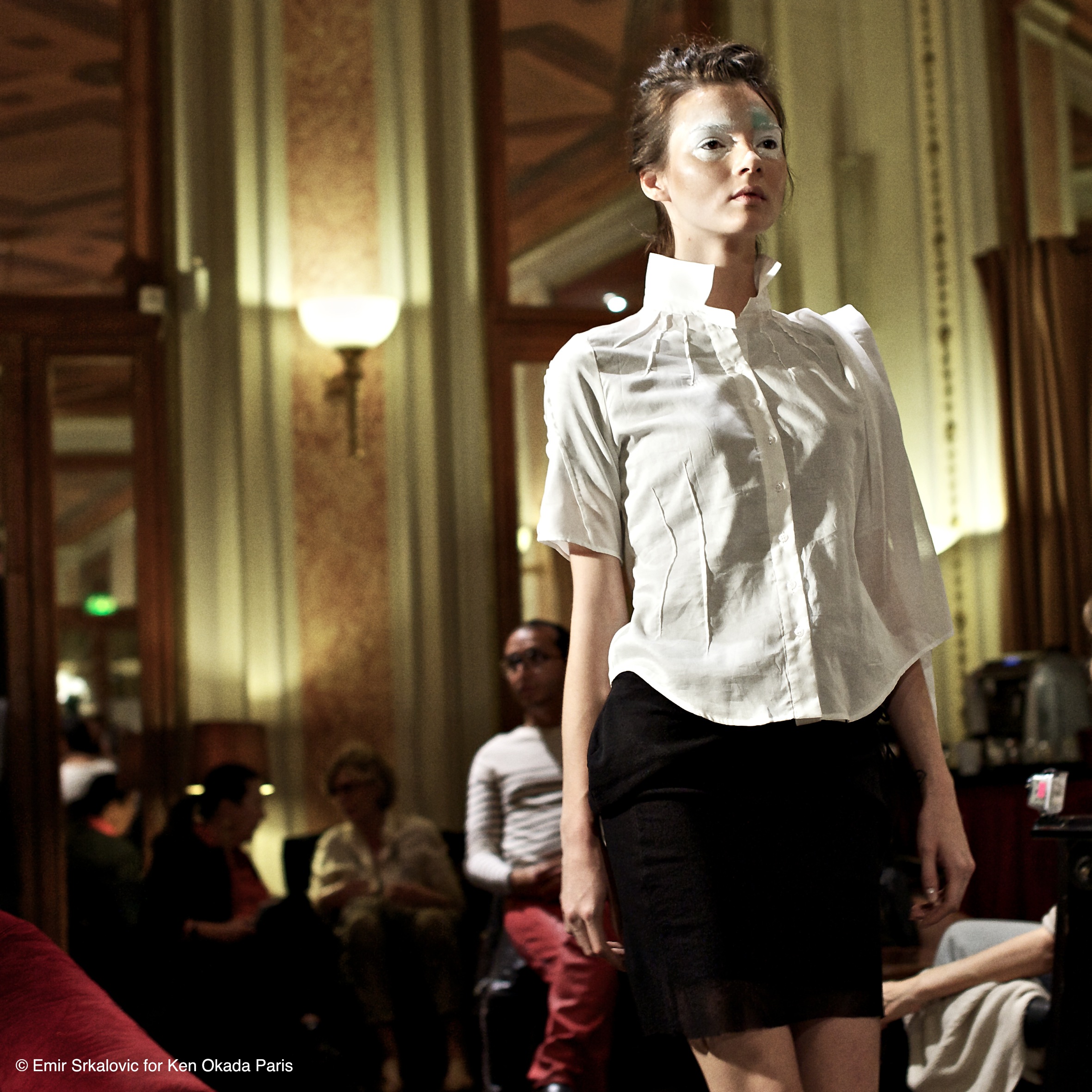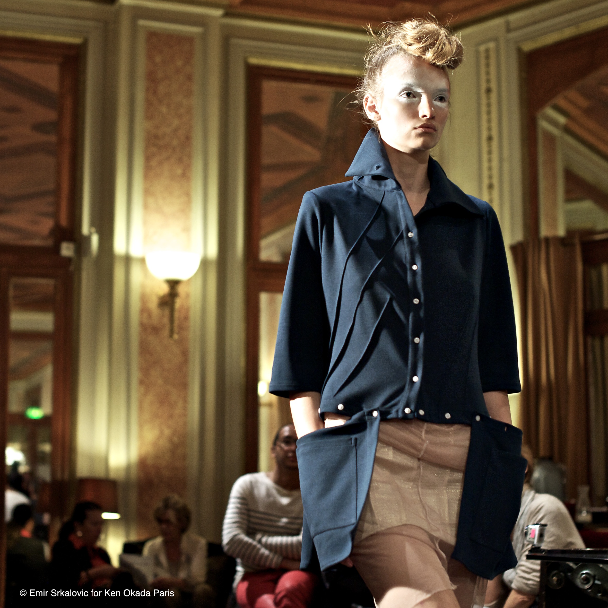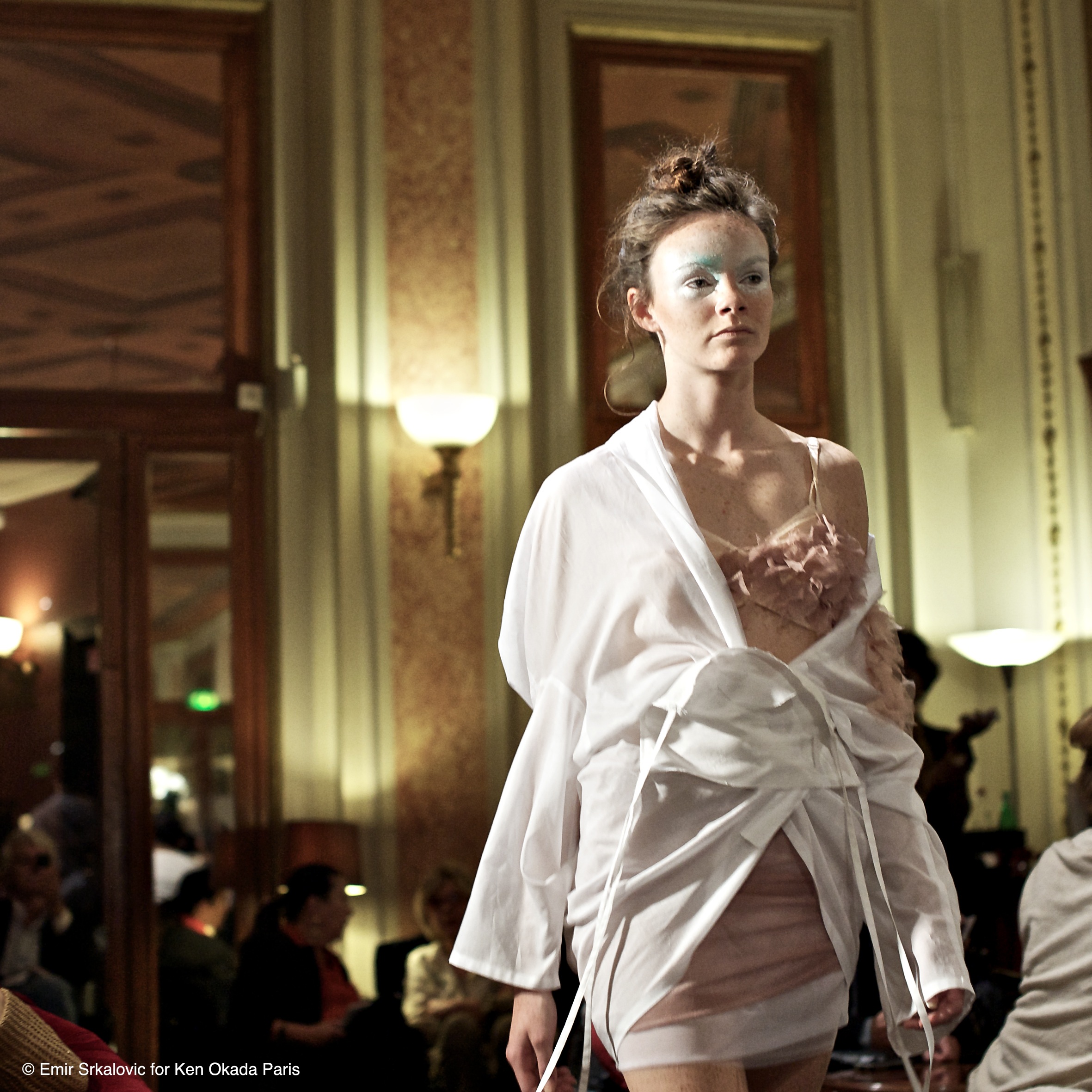 The fluidity of cotton tulle gives rise to new movements, an unrestrained quality that contrasts with the structured image of the shirt. The shirt itself transforms. It stretches, becomes vaporous, asserts itself in a poetic and trendy way in 2014, while retaining the chic and modern spirit of Ken