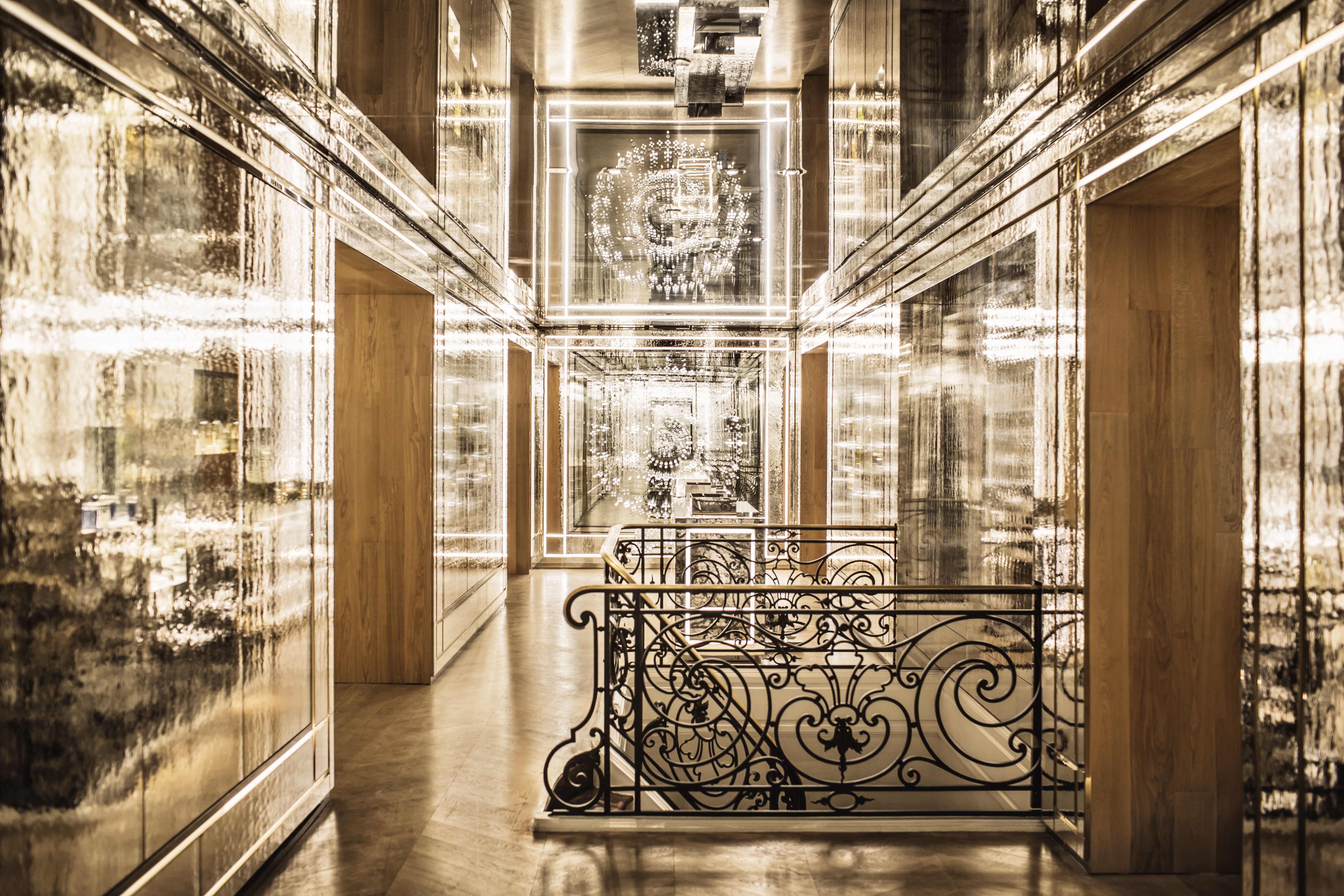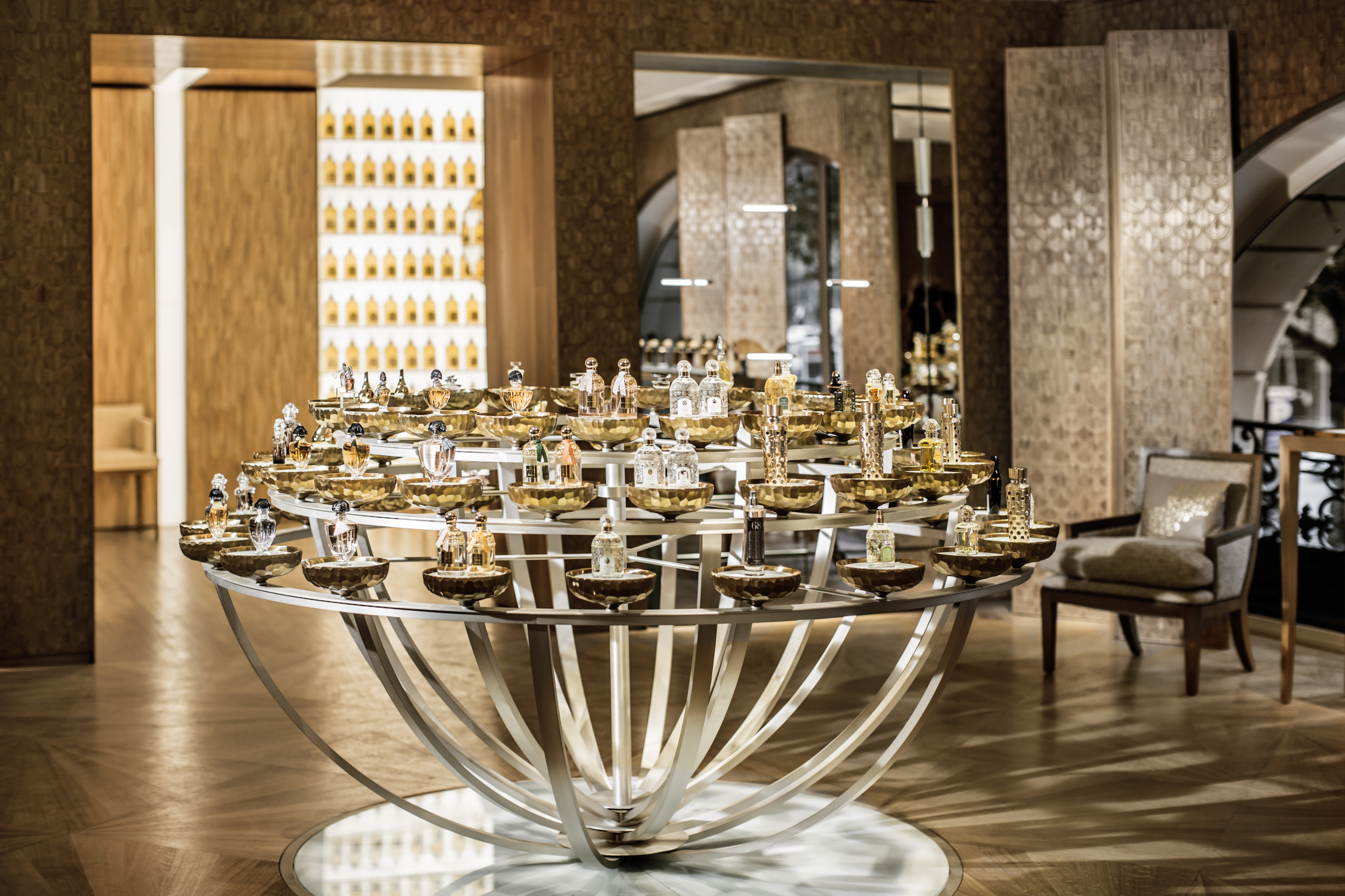In 1914, the House of Guerlain set up shop at 68 Champs Elysées. In 2013, Guerlain entrusted architect Peter Marino with the task of looking at the old part of the store and imagining the continuation of the story.