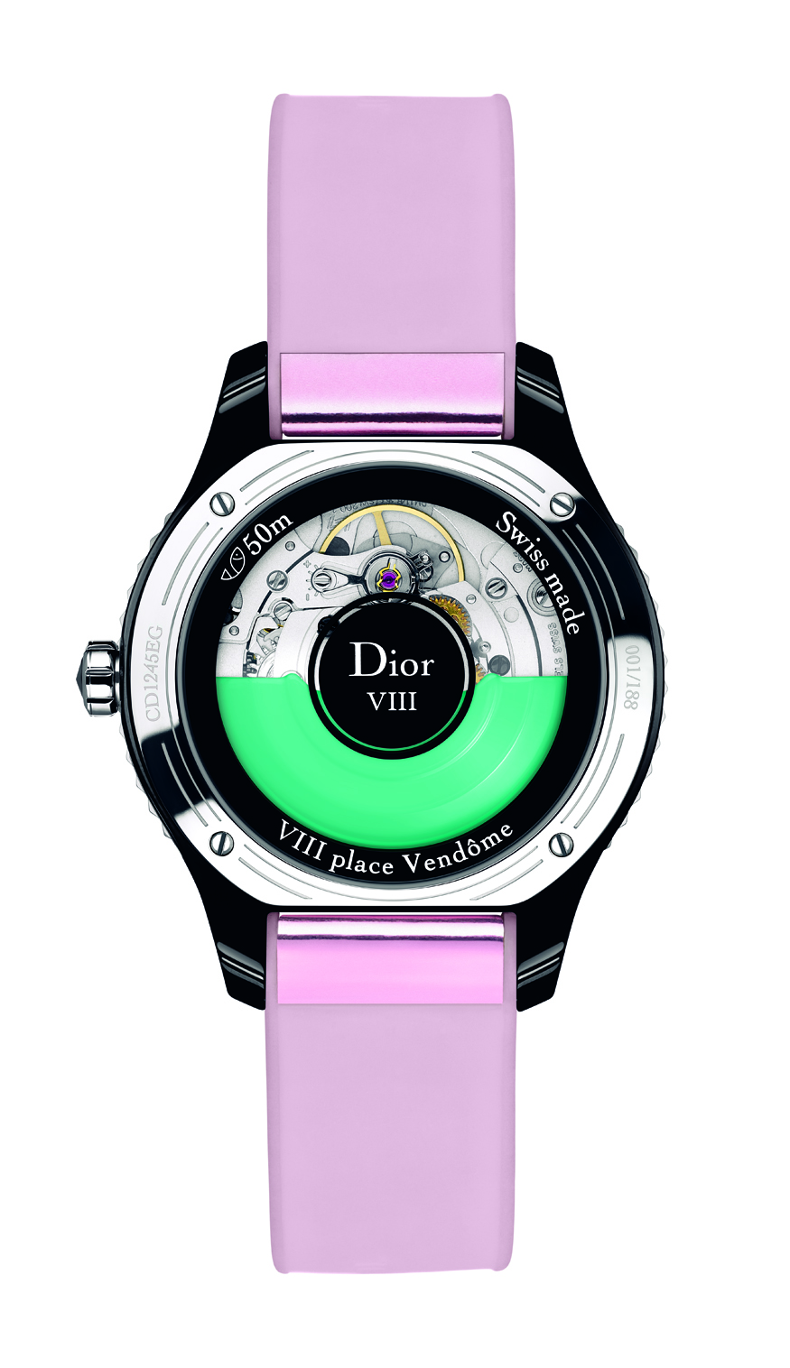 And that’s not all! Dior Horlogerie will also be offering a limited edition of the Dior VIII Grand Bal “Résille” model. A 33mm automatic in white ceramic and set with pink sapphires, 88 pieces will be offered for sale in January 2014.