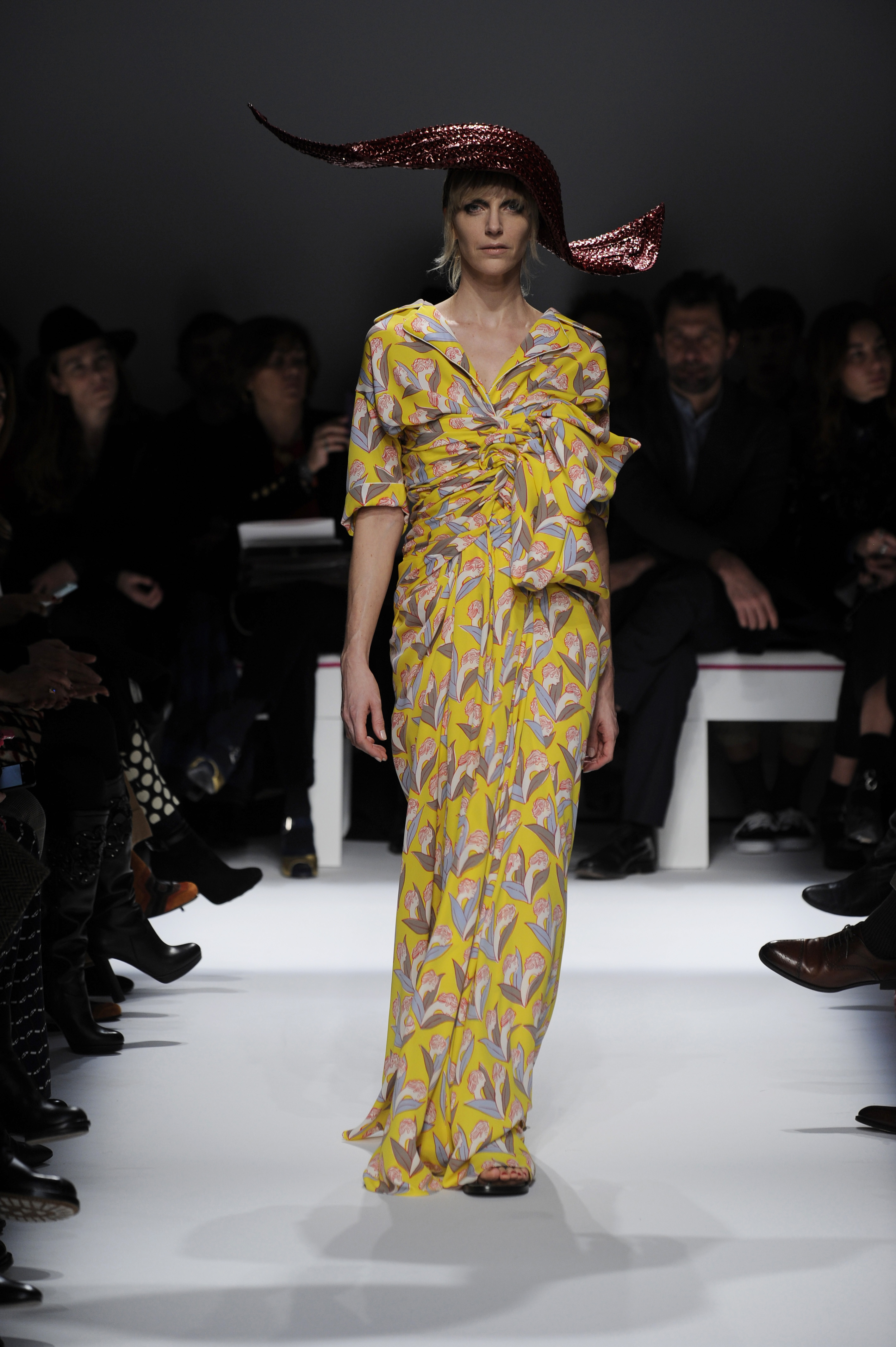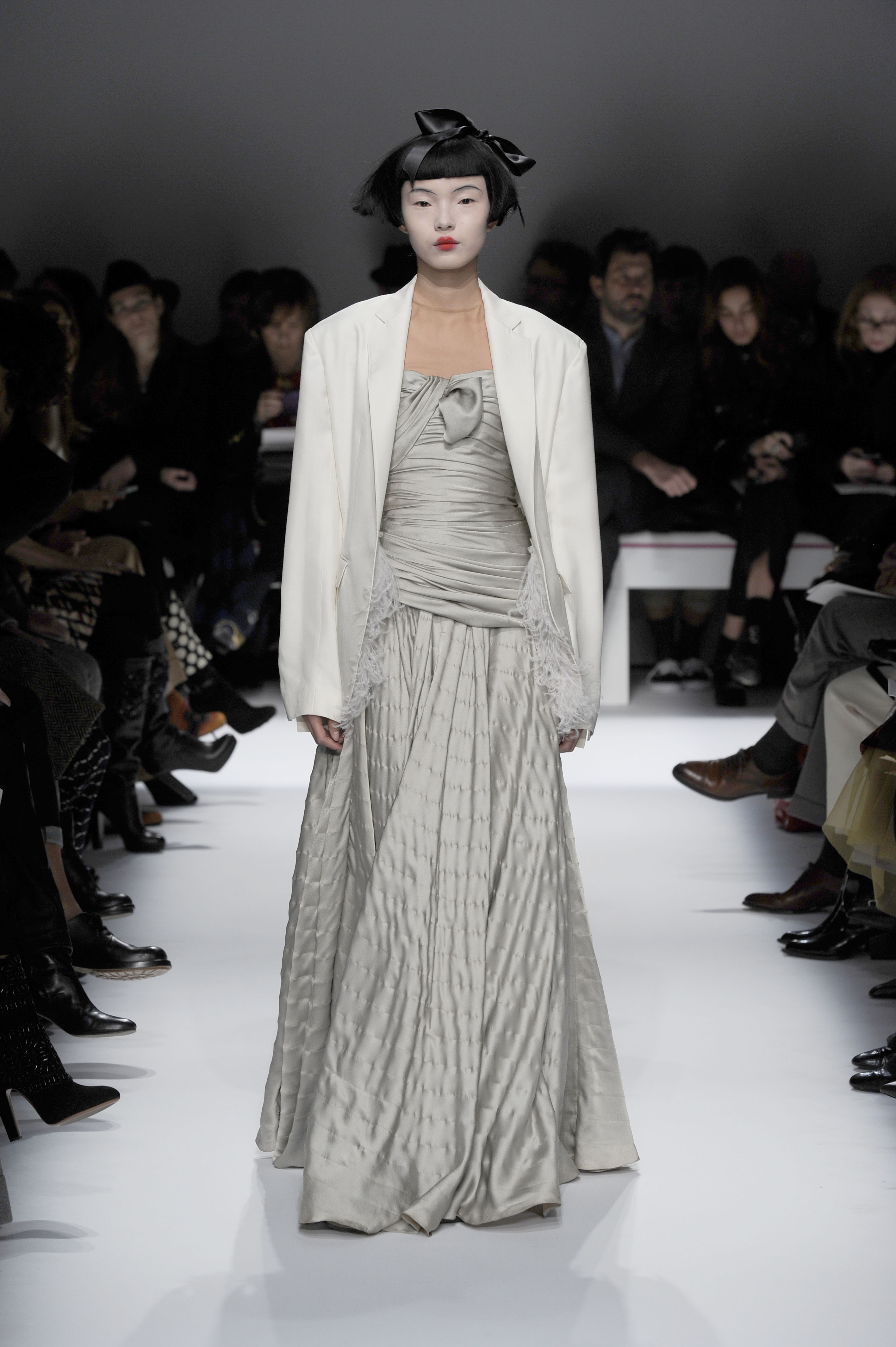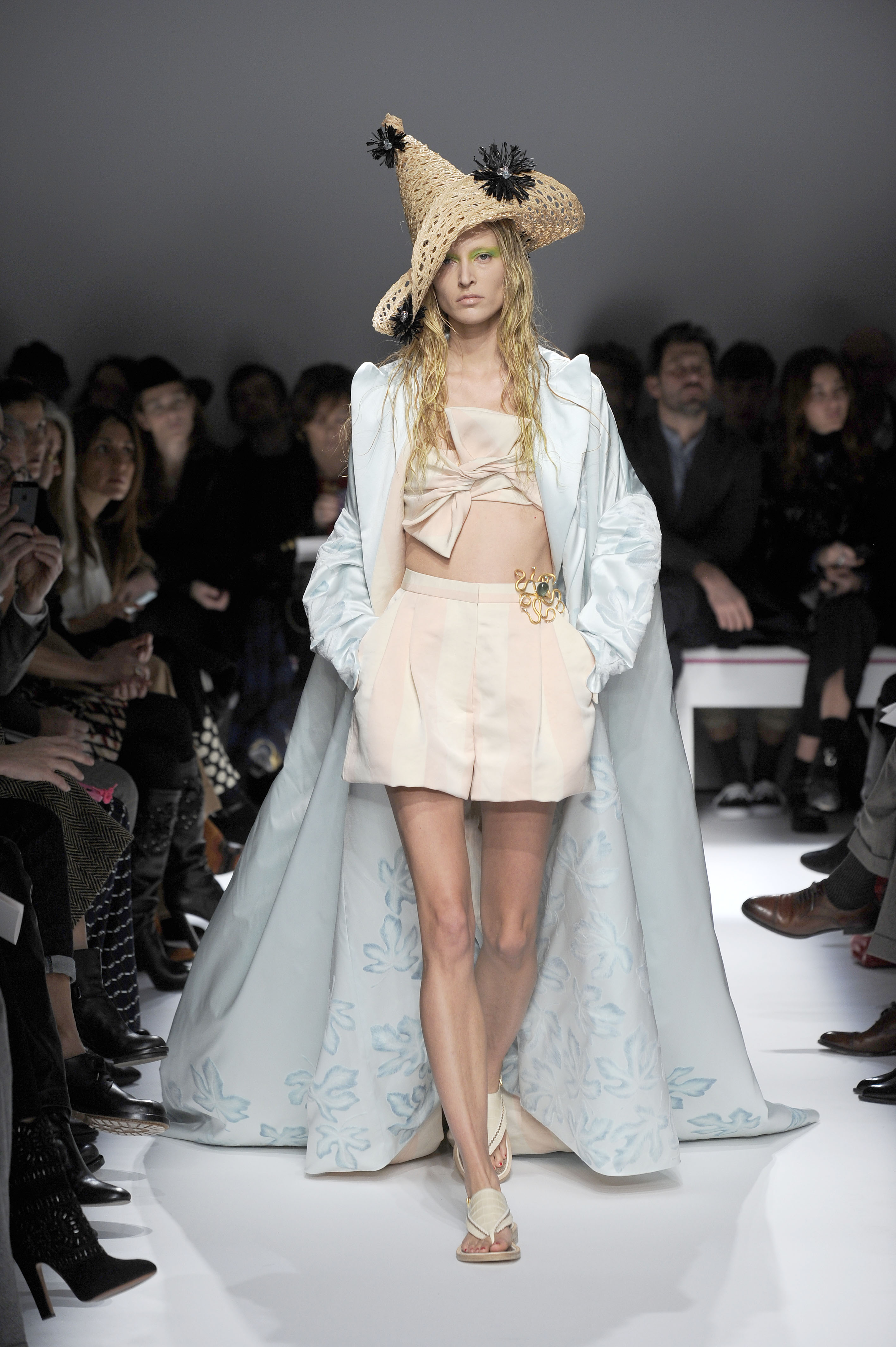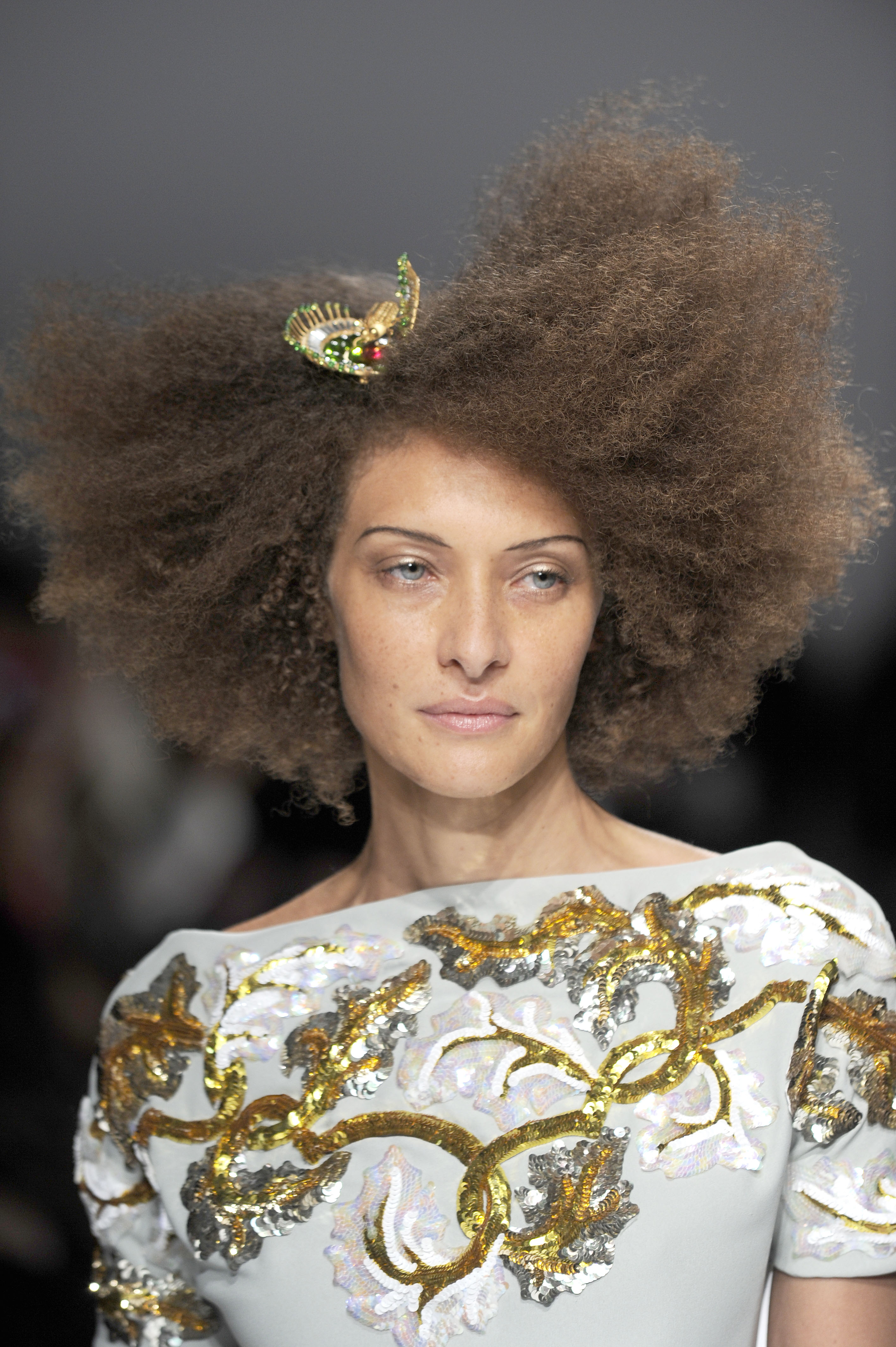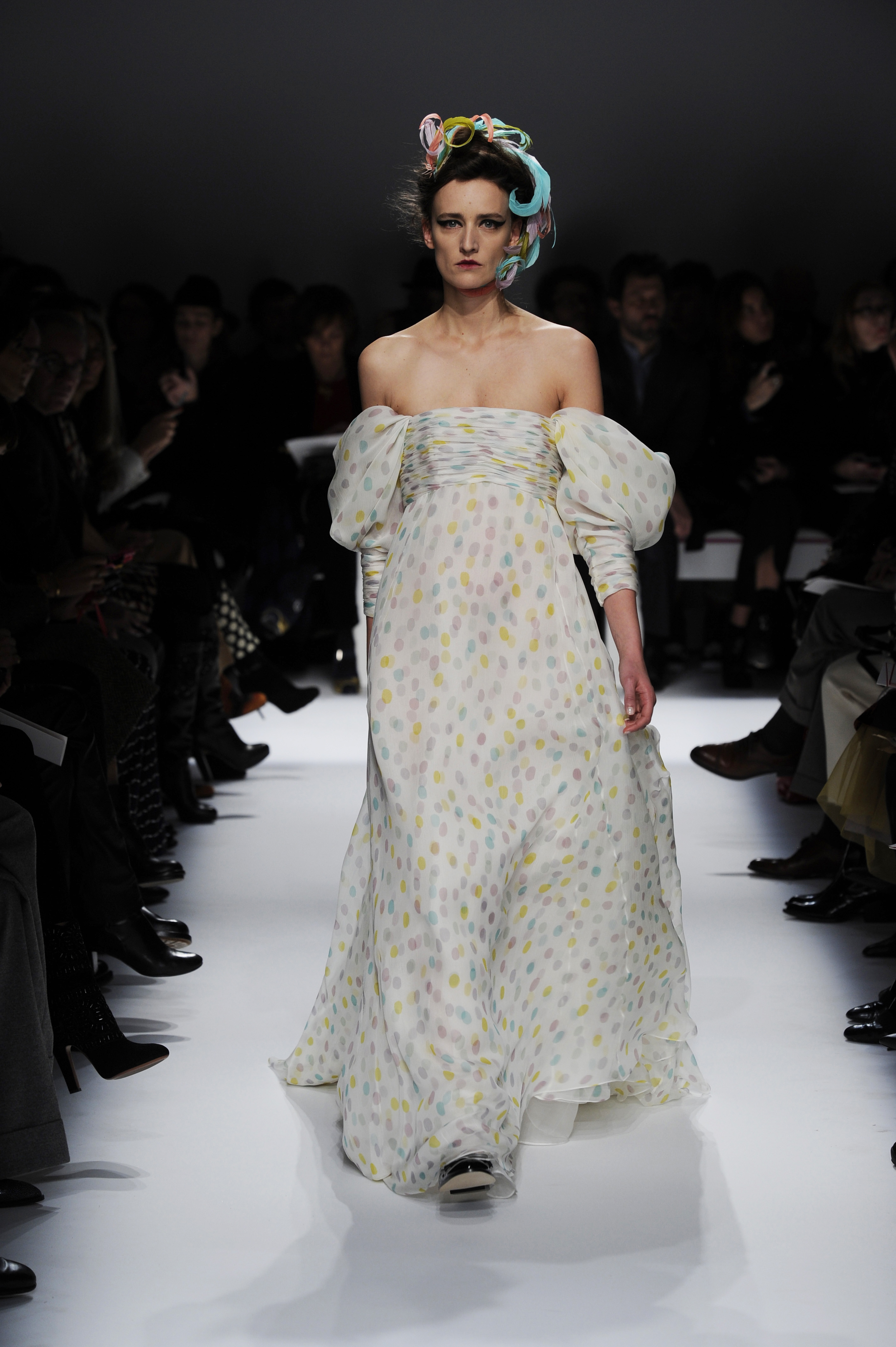 After a 60-year absence, La Maison Elsa Schiaparelli, returns with a splendid runway show for Paris Fashion Week on Monday, January 20. A revival of the brand with the presentation of the Spring-Summer 2014 collection. The creations celebrate today’s woman with exalting silhouettes, a renewed femininity. A highly original collection. There are lots of hand-painted prints, large motifs, embroidery and bright colors contrasted with neutral and pastel tones. Many creations play on the masculine/feminine card. Designed by Marco Zanini.