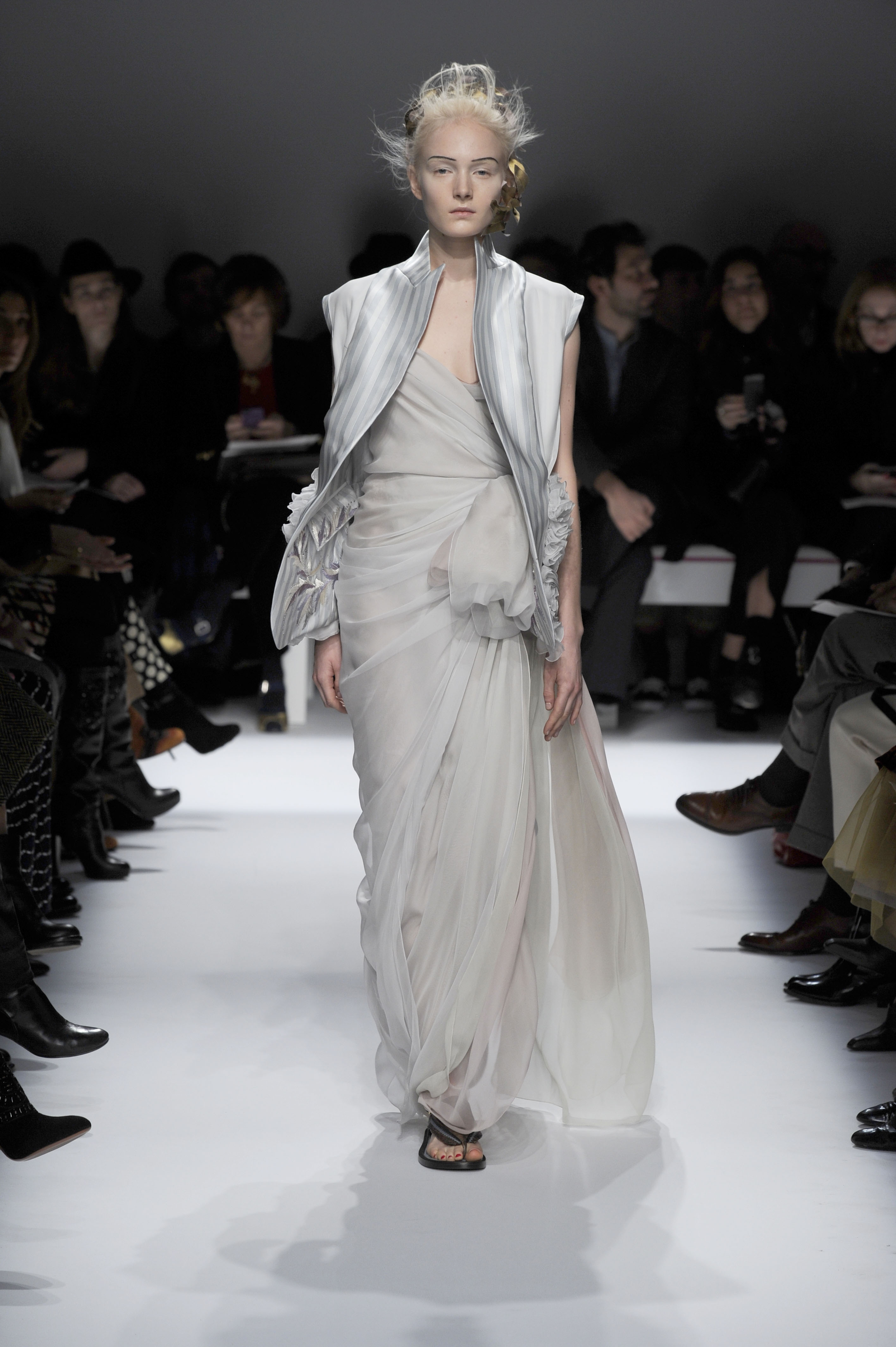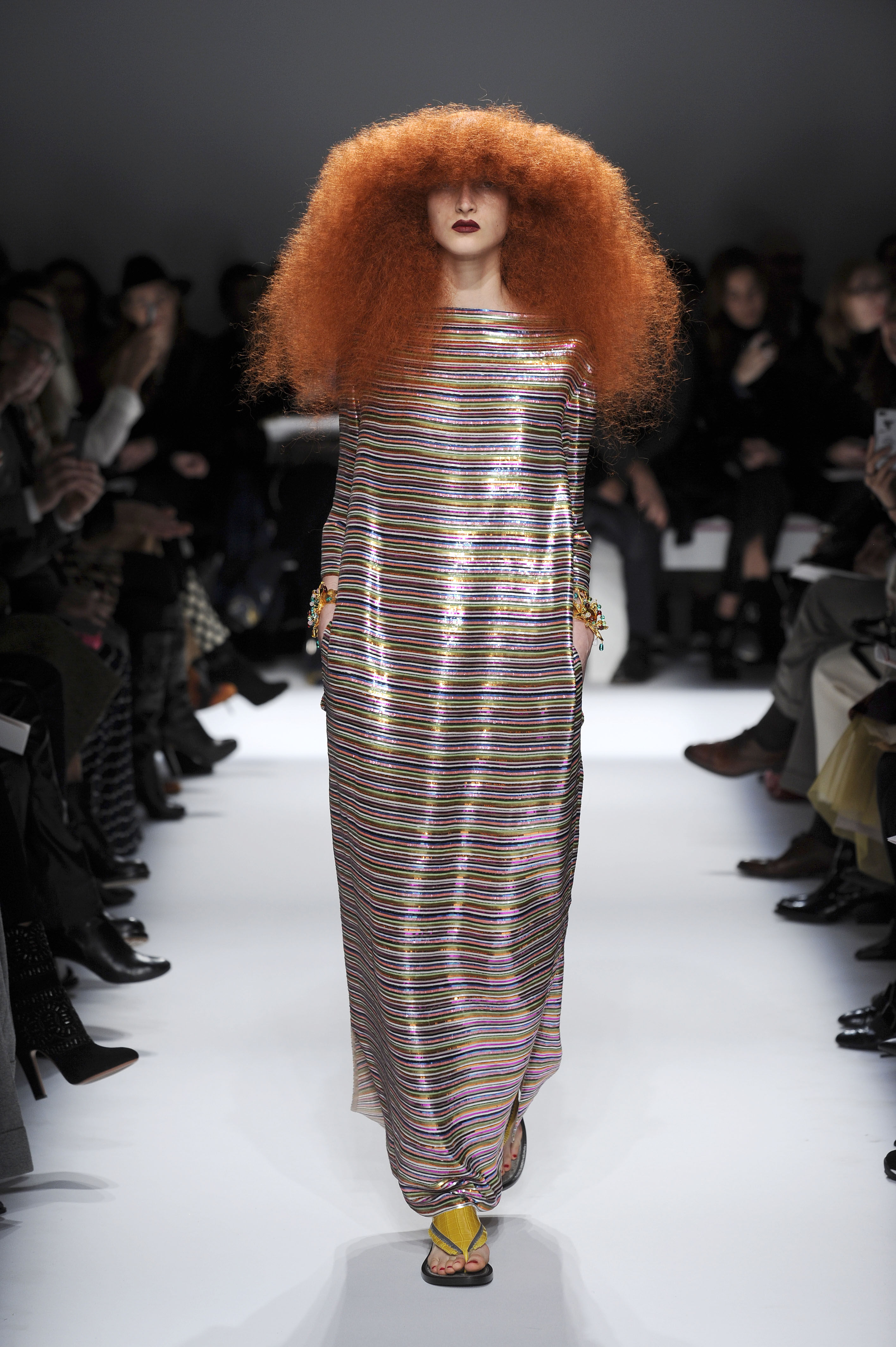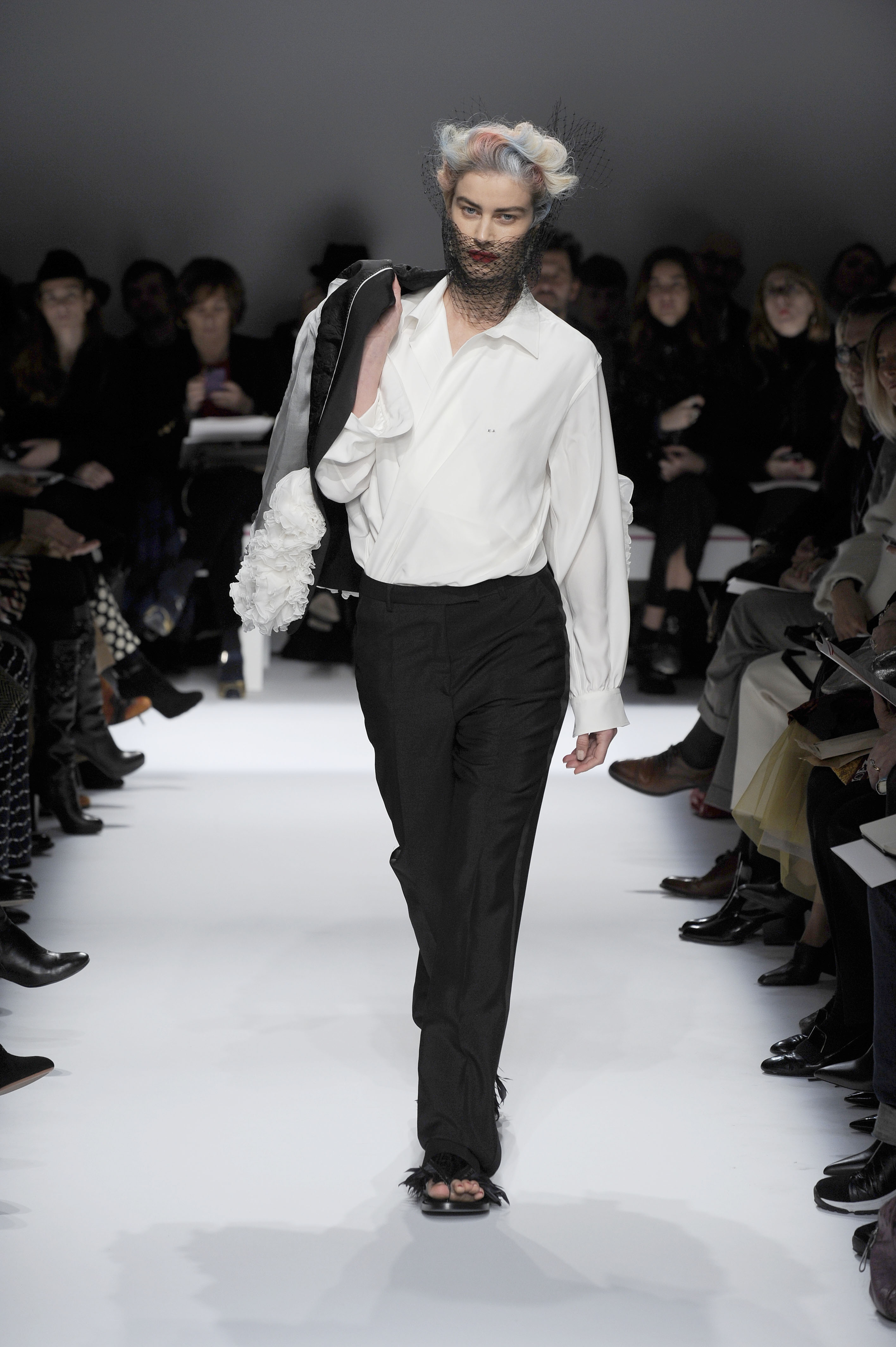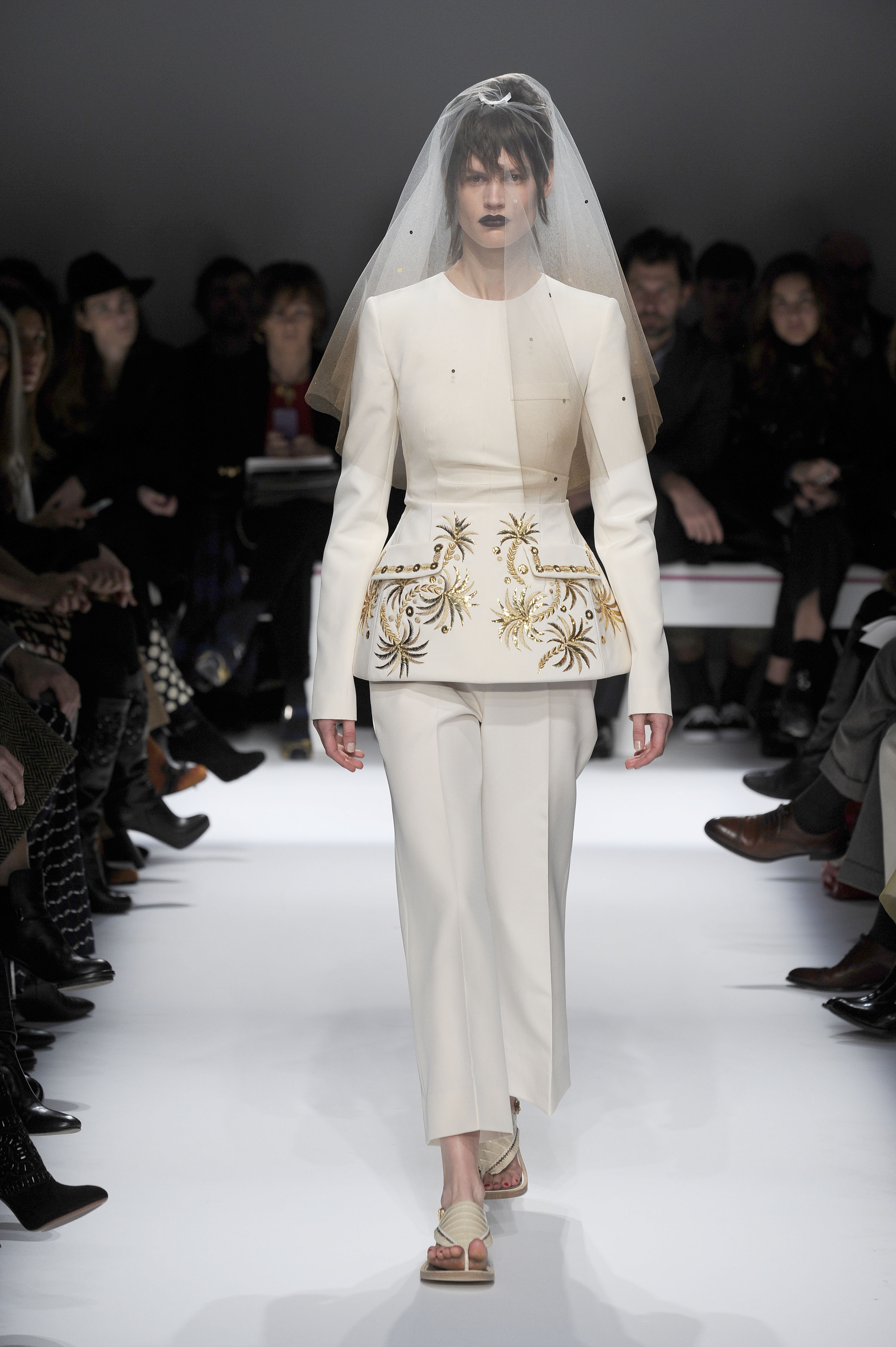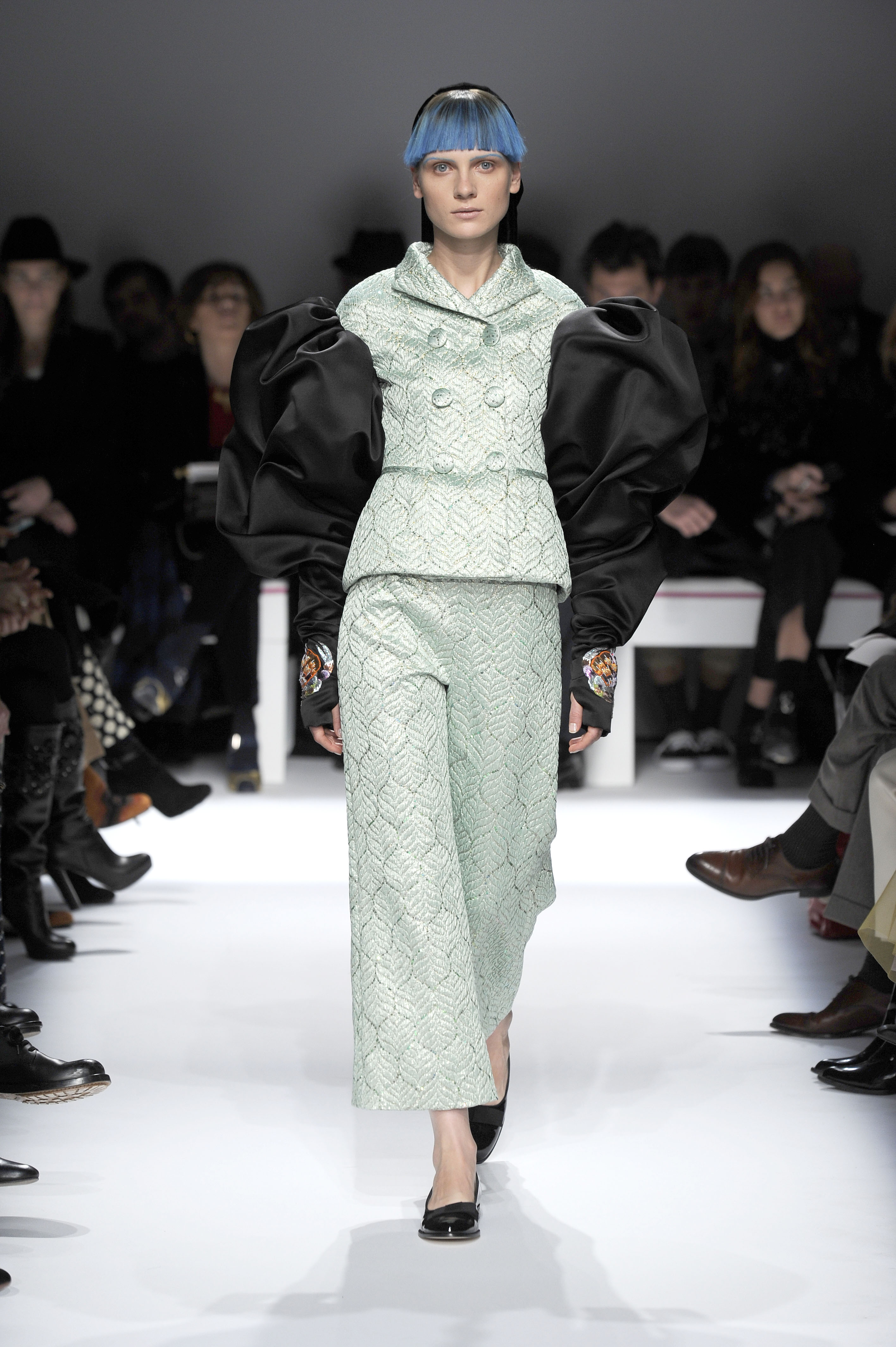After a 60-year absence, La Maison Elsa Schiaparelli, returns with a splendid runway show for Paris Fashion Week on Monday, January 20. A revival of the brand with the presentation of the Spring-Summer 2014 collection. The creations celebrate today’s woman with exalting silhouettes, a renewed femininity. A highly original collection. There are lots of hand-painted prints, large motifs, embroidery and bright colors contrasted with neutral and pastel tones. Many creations play on the masculine/feminine card. Designed by Marco Zanini.